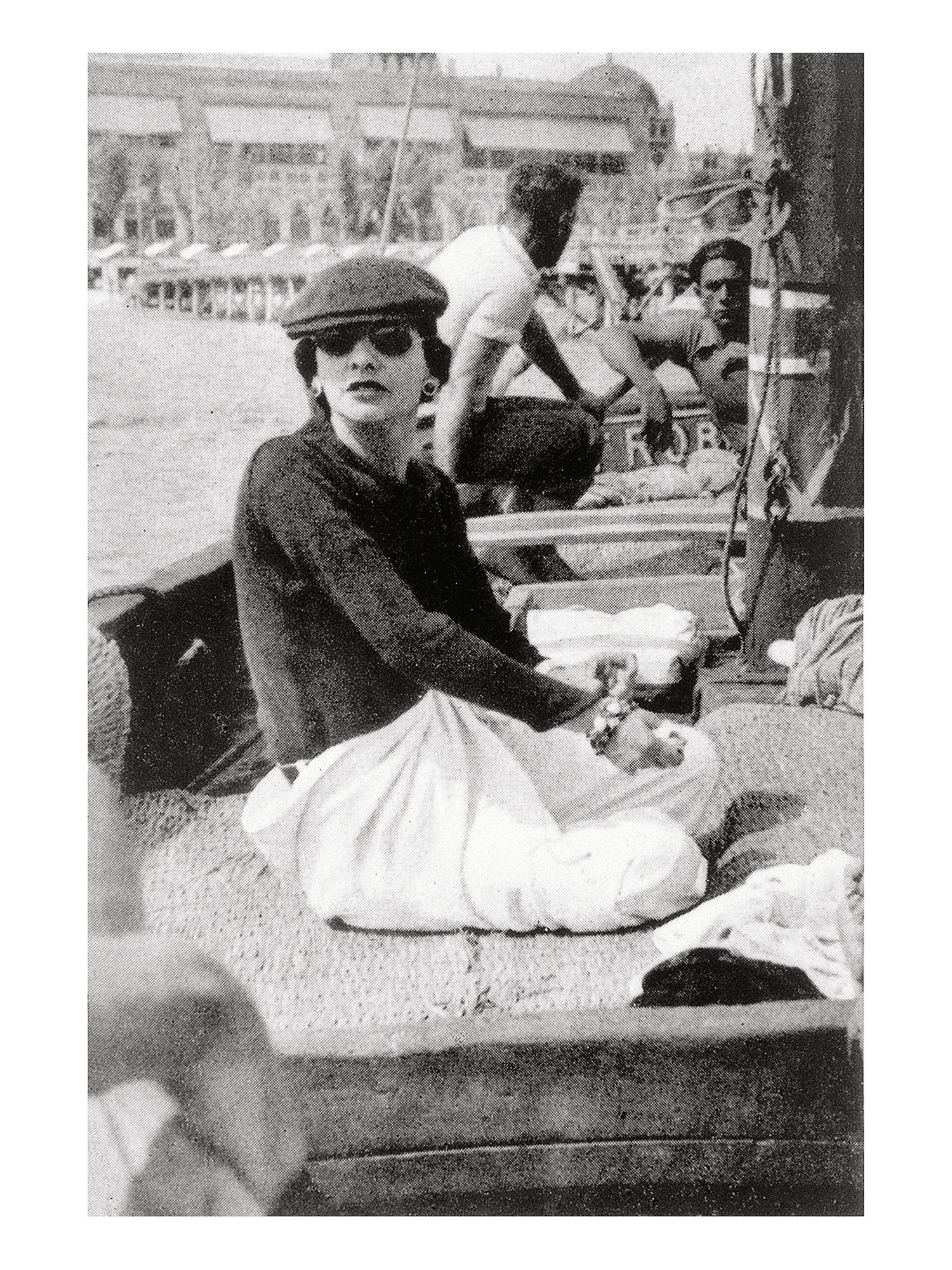 La lumière et le calme de la Sérénissime apaisent enfin Gabrielle. Les mondanités lui rendent le sourire et sa joie de vivre : Misia l’entraîne dans le monde aristocratique et artistique de Venise. Ensemble, dans la journée, elles se retrouvent sur la plage du Lido. Amoureuse du soleil, Gabrielle y bronze en pyjama de plage et invente une sandale à semelle de liège et simples lanières qu’elle a commandée à un bottier vénitien. Son élégance désinvolte séduit immédiatement la haute société vénitienne et la jet-set en villégiature.