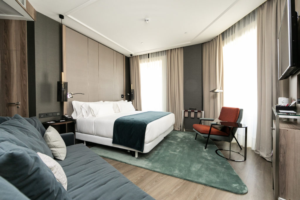 NH Collection Gran Vía dispose de 94 chambres aux tons sobres, lumineuses et spacieuses, décorées par l’architecte d’intérieur Mercedes Isasa sur le thème des années 50.