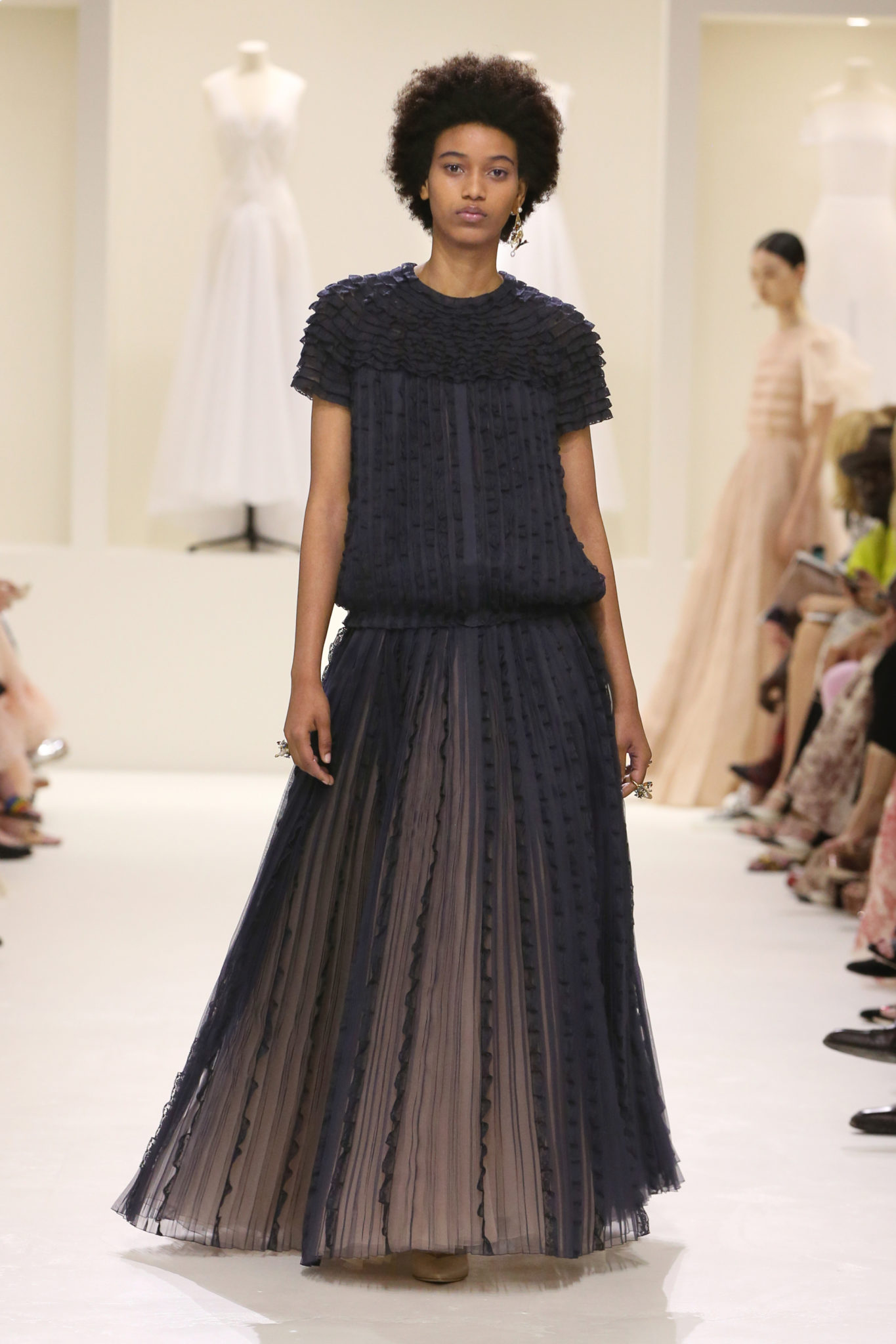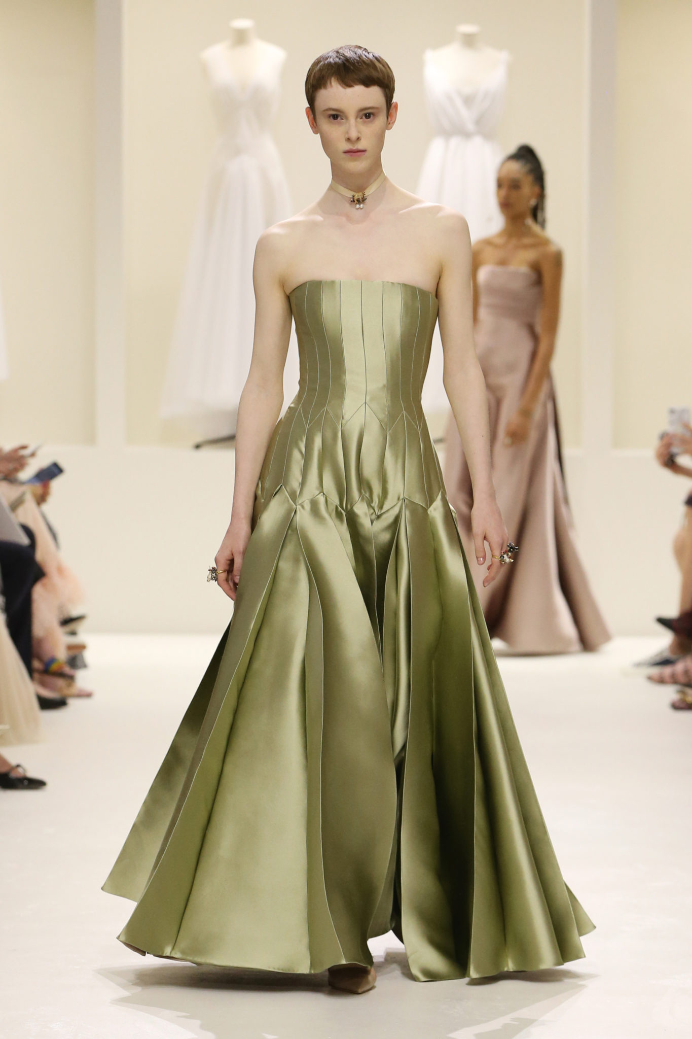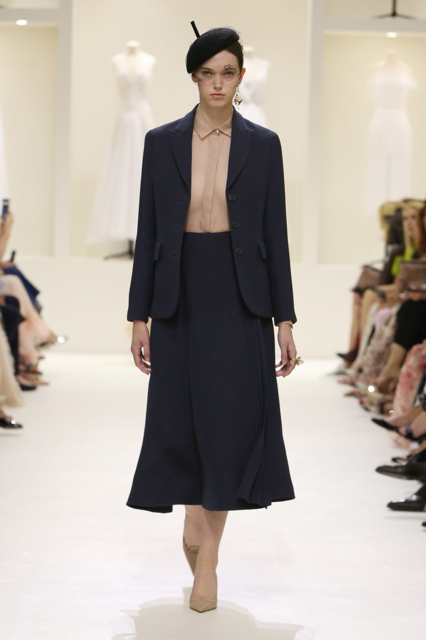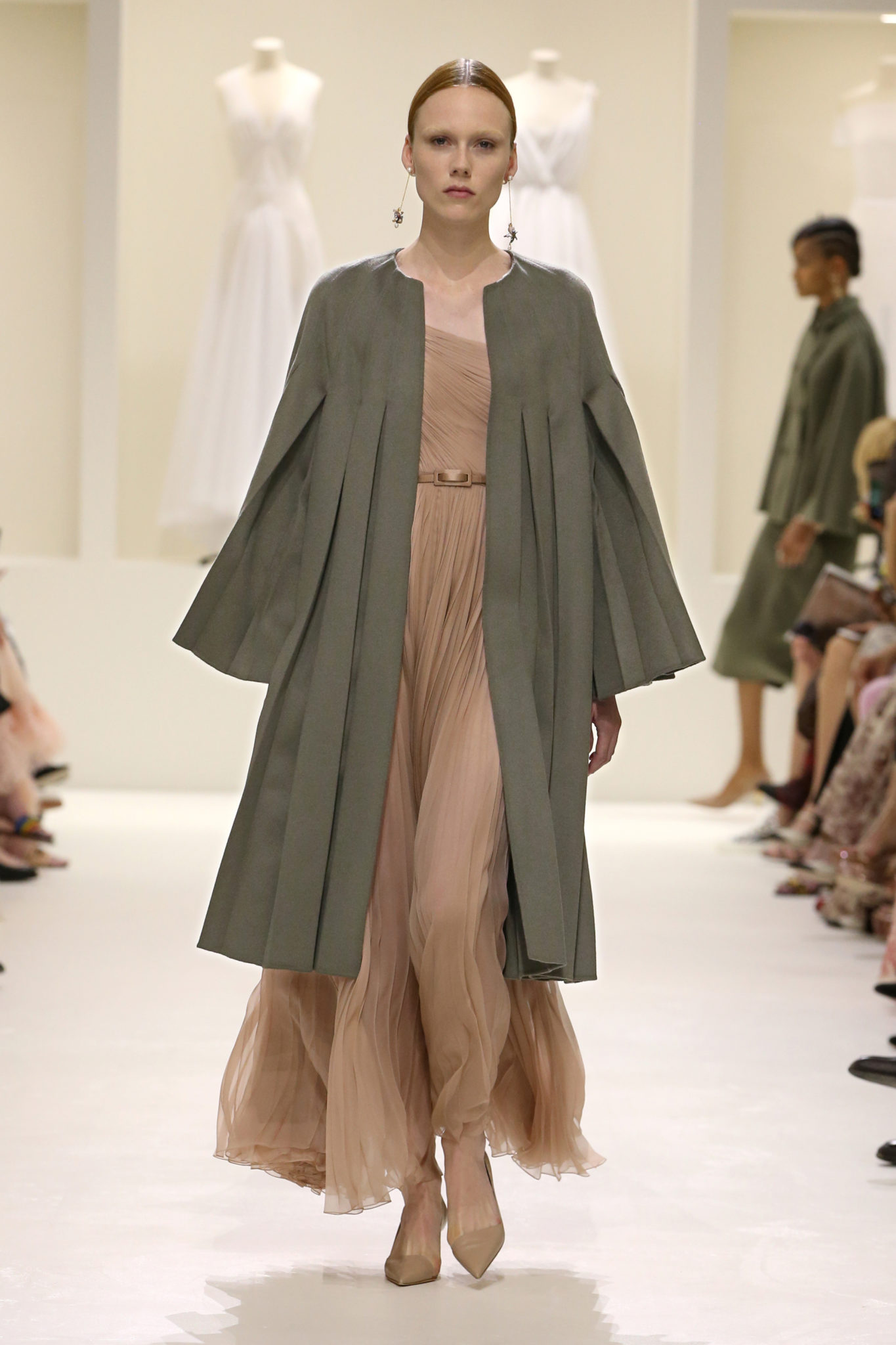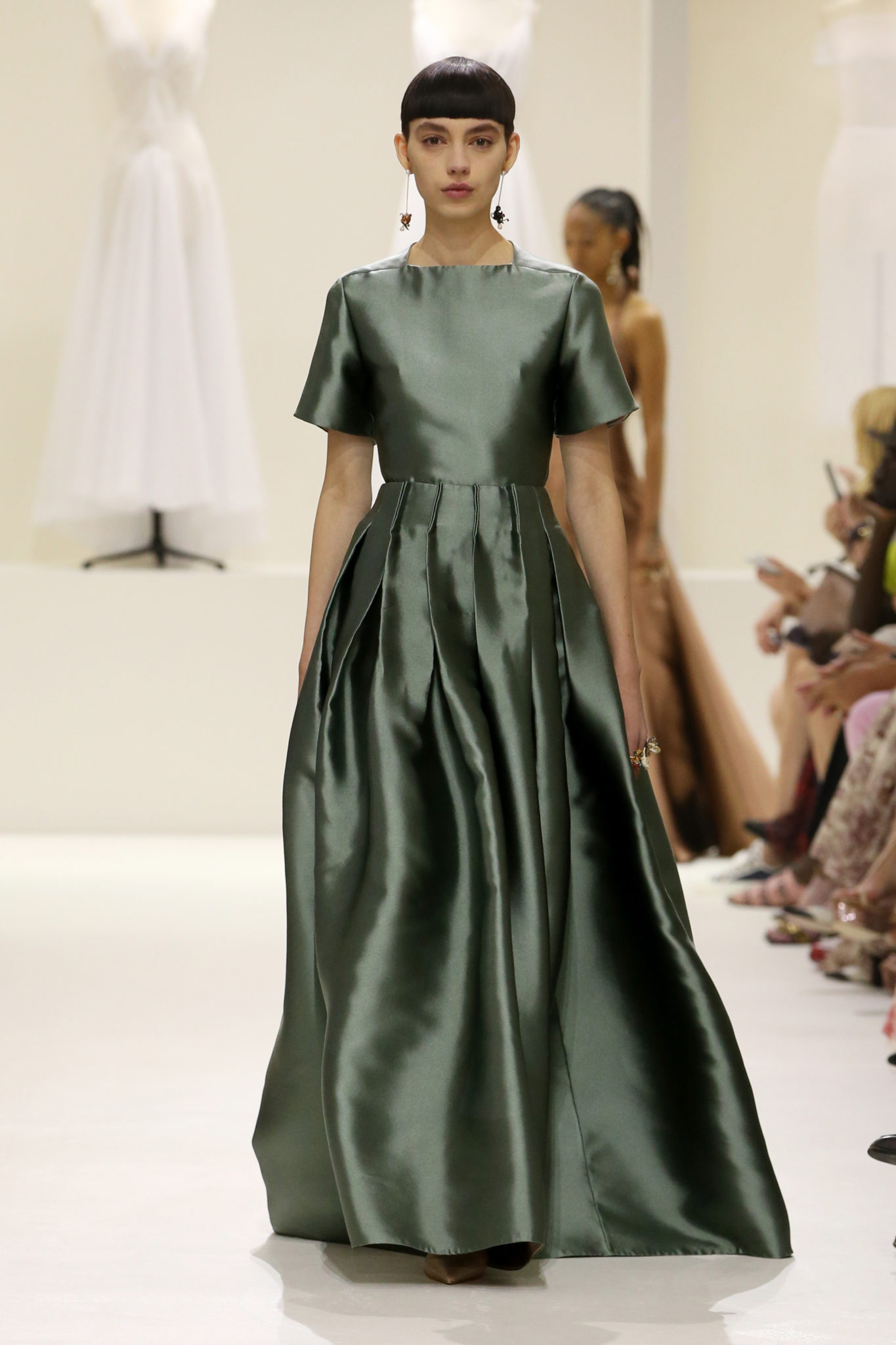 «Curieusement, c’est peut-être le désordre inhérent au désir et à la subjectivité qui rend la psychanalyse lacanienne et l’art d’avant-garde si remarquablement radicaux, faisant de tous deux des idéaux pour une négociation des créations étranges de la couture.» Alison Bancroft*Est-il possible de célébrer la haute couture tout en faisant une lecture critique de celle-ci ? Est-il possible d’être fidèle aux règles strictes édictées par la Chambre syndicale de la haute couture** tout en les décomposant pour créer un ordre nouveau ? Ce sont ces interrogations que Maria Grazia Chiuri a soulevées pour cette collection haute couture automne-hiver 2018-2019, à l’issue de l’exposition Christian Dior, couturier du rêve, qui a mis en lumière, au musée des Arts décoratifs, les créations de la haute couture en rendant hommage à ce lieu sacré et intemporel : l’atelier. Les ateliers sont des temples, gardiens de la pensée. C’est au cœur de cette mémoire de la couture – cette série d’images, de formes, de couleurs et d’attitudes – que se déploie la vision créative de Maria Grazia Chiuri. La couture est une instance de l’avant-garde, une forme d’art qui se développe grâce à l’imagination. Une réflexion qui cultive l’audace de répéter des gestes codifiés tout en cherchant à les enfreindre. Car la couture est aujourd’hui, avant tout, un geste conceptuel. A l’image d’un ready-made de Marcel Duchamp. Ce sont parfois des tissus qui guident le projet, qui sont travaillés dans d’anciennes manufactures qui ne peuvent produire que quelques mètres à la fois et auxquelles on a demandé d’introduire un élément inhabituel ou un nouveau savoir-faire ; chaque matière pouvant subir des modifications qui accentuent ses effets de manière inattendue. D’autres fois, l’idée première vient de la volonté de reconstruire le rituel et la façon de s’habiller au gré des occasions qui rythment une journée. La haute couture, c’est la possibilité de porter une qualité unique, d’adapter l’œuvre parfaite à son propre corps. Maria Grazia Chiuri revient aux fondamentaux et imagine des tailleurs dans lesquels les manches de la veste Bar deviennent des ailes de chauve-souris. La véritable transgression étant de se référer aux règles d’usage tout en détournant leur syntaxe. La palette des couleurs poudrées (brique, vert, rose ou orange), en dialogue avec le Nude, colore les vêtements, mais aussi les accessoires – bijoux fantaisie raffinés, voilettes et chapeaux – telle une continuité complémentaire du corps que la couture met à l’honneur. Les robes du soir, éblouissantes par leurs différents plissés, ou par leurs jeux de superpositions, contrastent avec des bustiers simples qui offrent une dissonance surprenante. La forme sculpturale d’une robe de soie rouge cousue d’une seule pièce ouvre la voie à une série de créations majestueuses et intimes, à la fois retenues et explosives : la couture devient alors un lieu psychologique de résistance féminine. Alison Bancroft assimile, dans un sens lacanien, la couture au mode d’expression des avant-gardes : réappropriation de pratiques séculaires rejetées par le désir de nouveauté et réinterprétation des traditions par des valeurs contemporaines. C’est par cette rencontre entre un système de règles établies et la créativité la plus libre que, pour Maria Grazia Chiuri, la couture devient rébellion : une sorte de « guérilla » idéologique qui explose aux frontières d’une tradition ancrée, sans jamais les outrepasser.