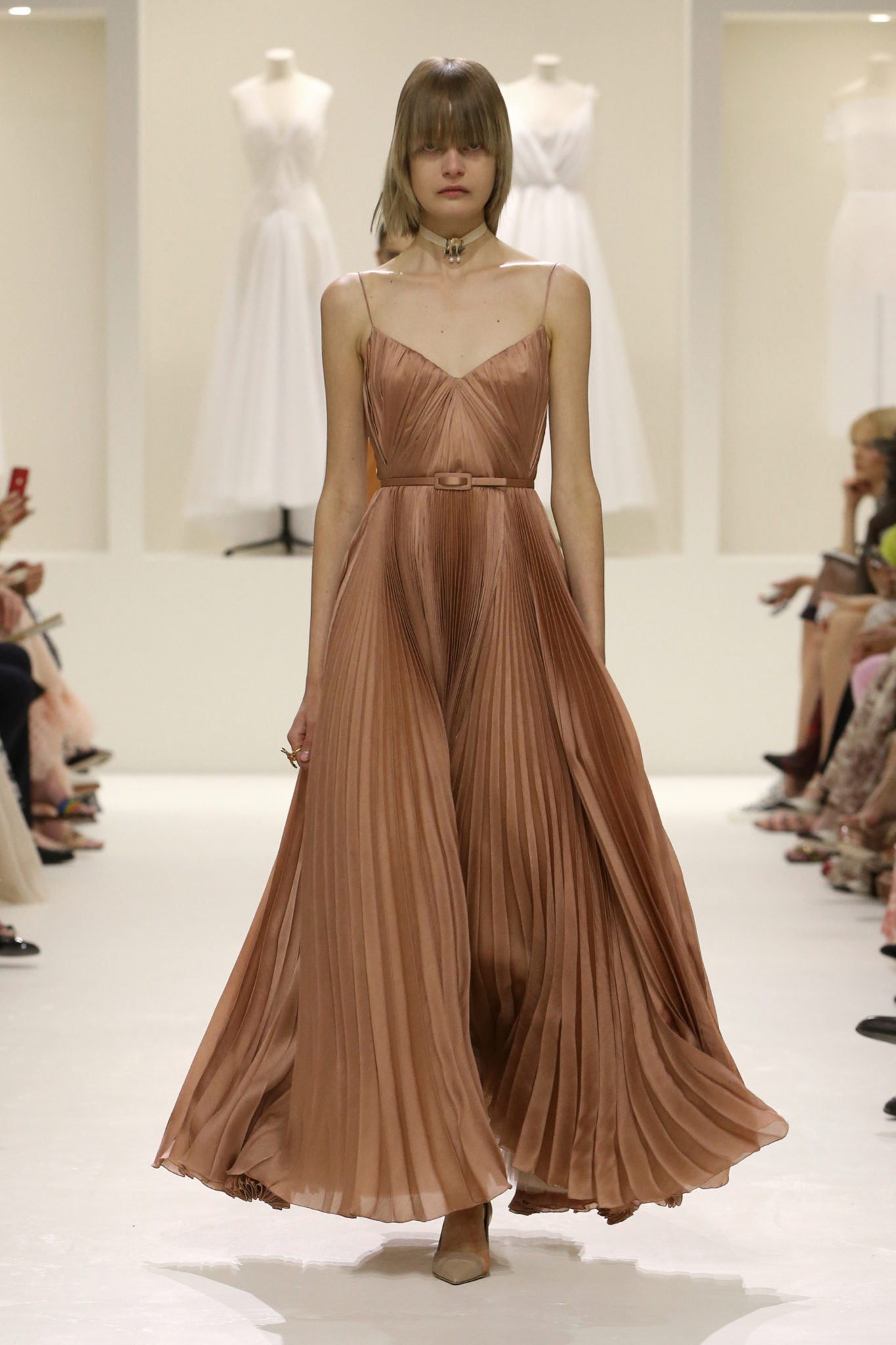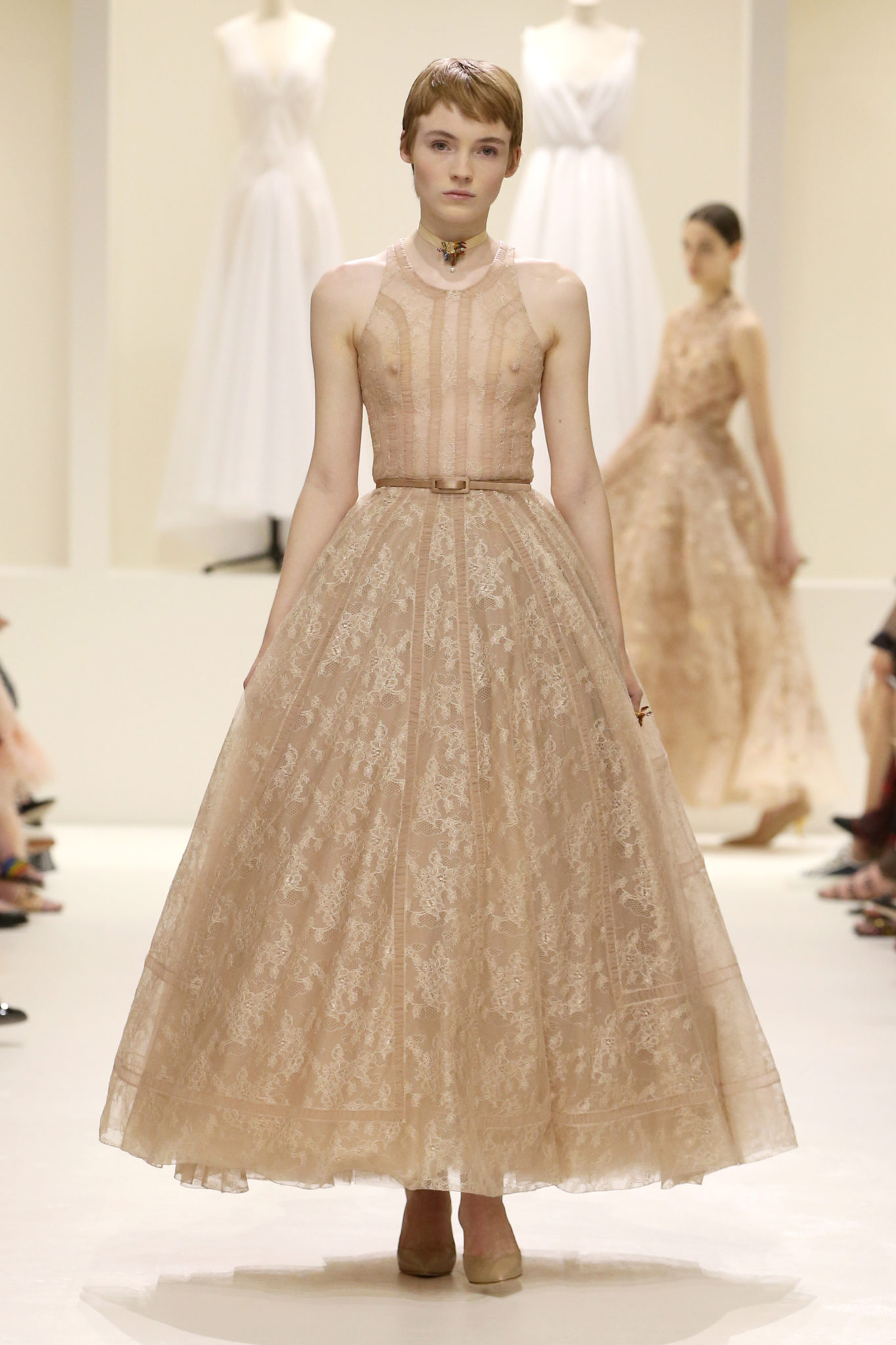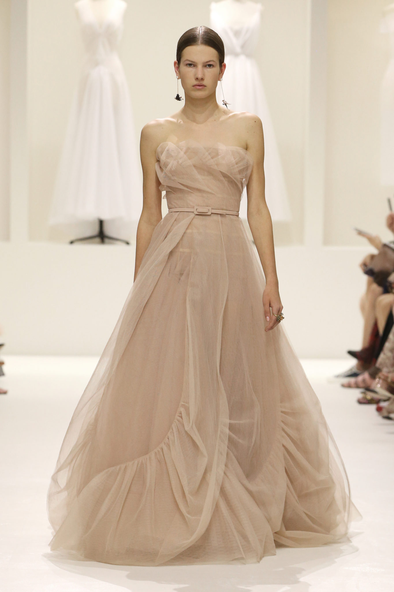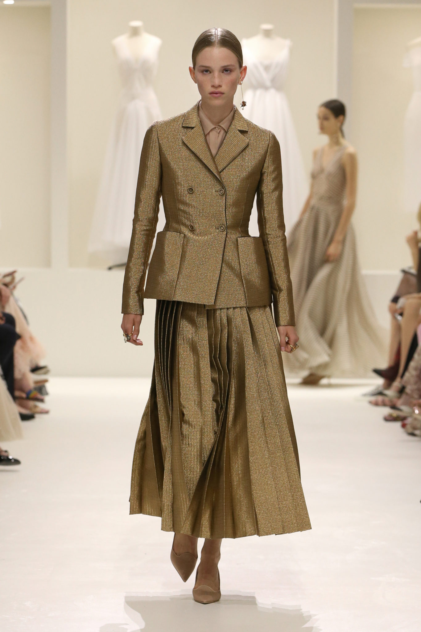 «Curieusement, c’est peut-être le désordre inhérent au désir et à la subjectivité qui rend la psychanalyse lacanienne et l’art d’avant-garde si remarquablement radicaux, faisant de tous deux des idéaux pour une négociation des créations étranges de la couture.» Alison Bancroft*Est-il possible de célébrer la haute couture tout en faisant une lecture critique de celle-ci ? Est-il possible d’être fidèle aux règles strictes édictées par la Chambre syndicale de la haute couture** tout en les décomposant pour créer un ordre nouveau ? Ce sont ces interrogations que Maria Grazia Chiuri a soulevées pour cette collection haute couture automne-hiver 2018-2019, à l’issue de l’exposition Christian Dior, couturier du rêve, qui a mis en lumière, au musée des Arts décoratifs, les créations de la haute couture en rendant hommage à ce lieu sacré et intemporel : l’atelier. Les ateliers sont des temples, gardiens de la pensée. C’est au cœur de cette mémoire de la couture – cette série d’images, de formes, de couleurs et d’attitudes – que se déploie la vision créative de Maria Grazia Chiuri. La couture est une instance de l’avant-garde, une forme d’art qui se développe grâce à l’imagination. Une réflexion qui cultive l’audace de répéter des gestes codifiés tout en cherchant à les enfreindre. Car la couture est aujourd’hui, avant tout, un geste conceptuel. A l’image d’un ready-made de Marcel Duchamp. Ce sont parfois des tissus qui guident le projet, qui sont travaillés dans d’anciennes manufactures qui ne peuvent produire que quelques mètres à la fois et auxquelles on a demandé d’introduire un élément inhabituel ou un nouveau savoir-faire ; chaque matière pouvant subir des modifications qui accentuent ses effets de manière inattendue. D’autres fois, l’idée première vient de la volonté de reconstruire le rituel et la façon de s’habiller au gré des occasions qui rythment une journée. La haute couture, c’est la possibilité de porter une qualité unique, d’adapter l’œuvre parfaite à son propre corps. Maria Grazia Chiuri revient aux fondamentaux et imagine des tailleurs dans lesquels les manches de la veste Bar deviennent des ailes de chauve-souris. La véritable transgression étant de se référer aux règles d’usage tout en détournant leur syntaxe. La palette des couleurs poudrées (brique, vert, rose ou orange), en dialogue avec le Nude, colore les vêtements, mais aussi les accessoires – bijoux fantaisie raffinés, voilettes et chapeaux – telle une continuité complémentaire du corps que la couture met à l’honneur. Les robes du soir, éblouissantes par leurs différents plissés, ou par leurs jeux de superpositions, contrastent avec des bustiers simples qui offrent une dissonance surprenante. La forme sculpturale d’une robe de soie rouge cousue d’une seule pièce ouvre la voie à une série de créations majestueuses et intimes, à la fois retenues et explosives : la couture devient alors un lieu psychologique de résistance féminine. Alison Bancroft assimile, dans un sens lacanien, la couture au mode d’expression des avant-gardes : réappropriation de pratiques séculaires rejetées par le désir de nouveauté et réinterprétation des traditions par des valeurs contemporaines. C’est par cette rencontre entre un système de règles établies et la créativité la plus libre que, pour Maria Grazia Chiuri, la couture devient rébellion : une sorte de « guérilla » idéologique qui explose aux frontières d’une tradition ancrée, sans jamais les outrepasser.