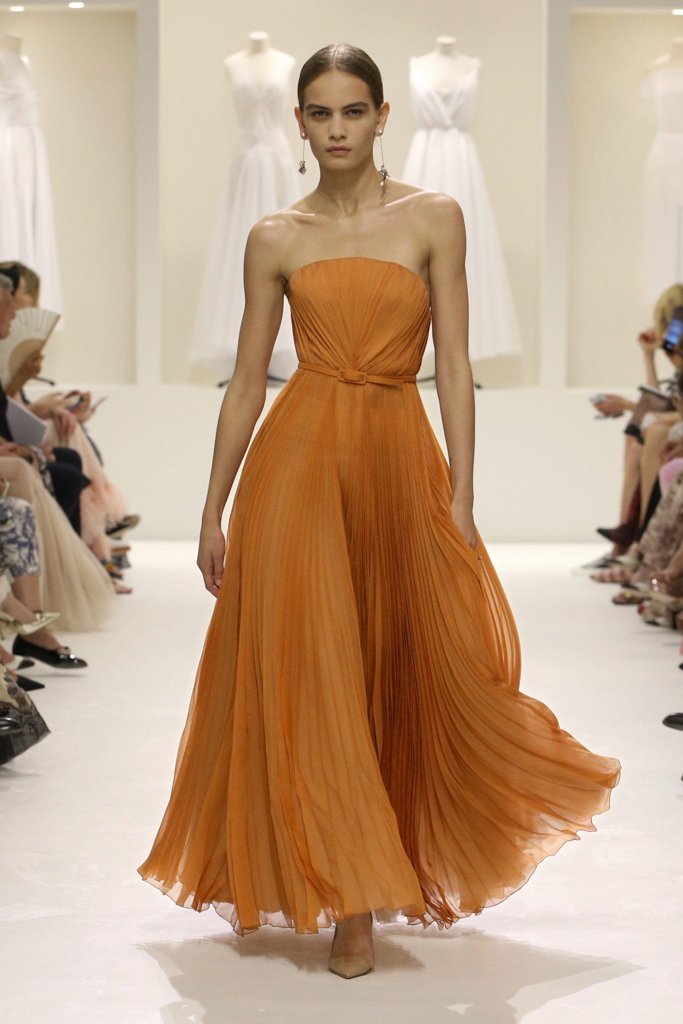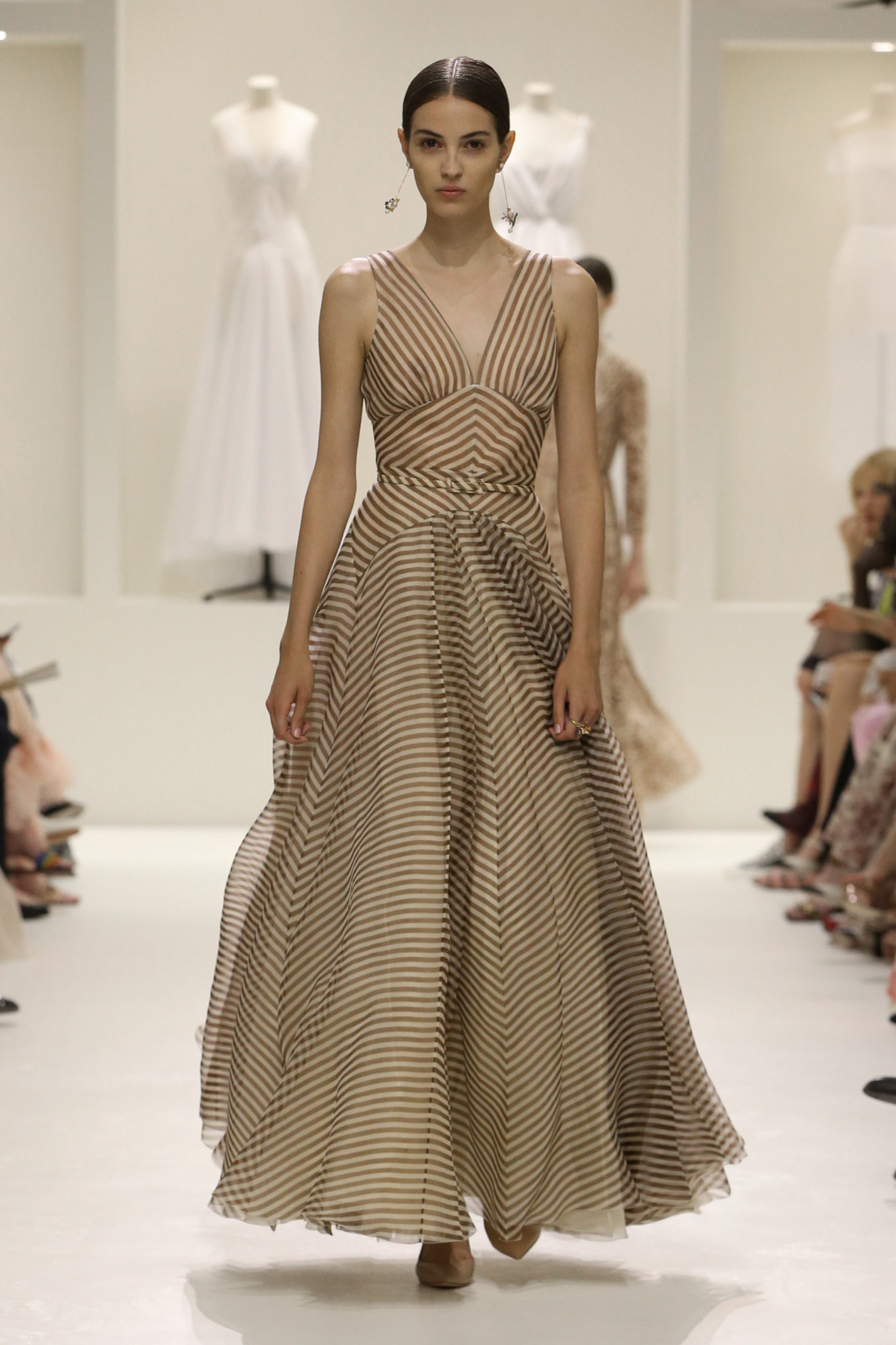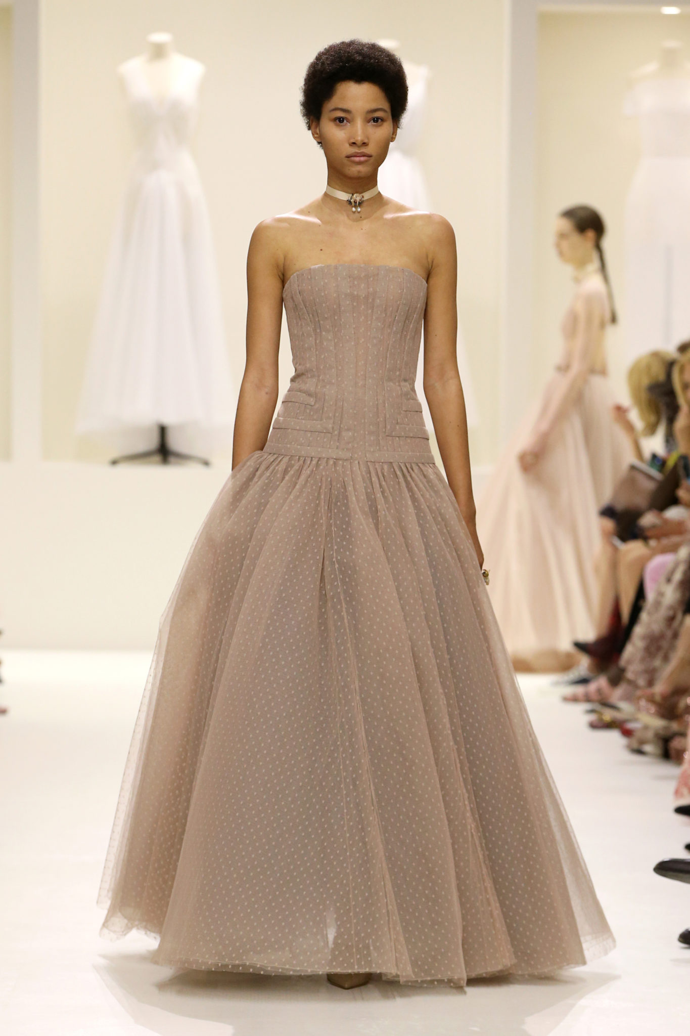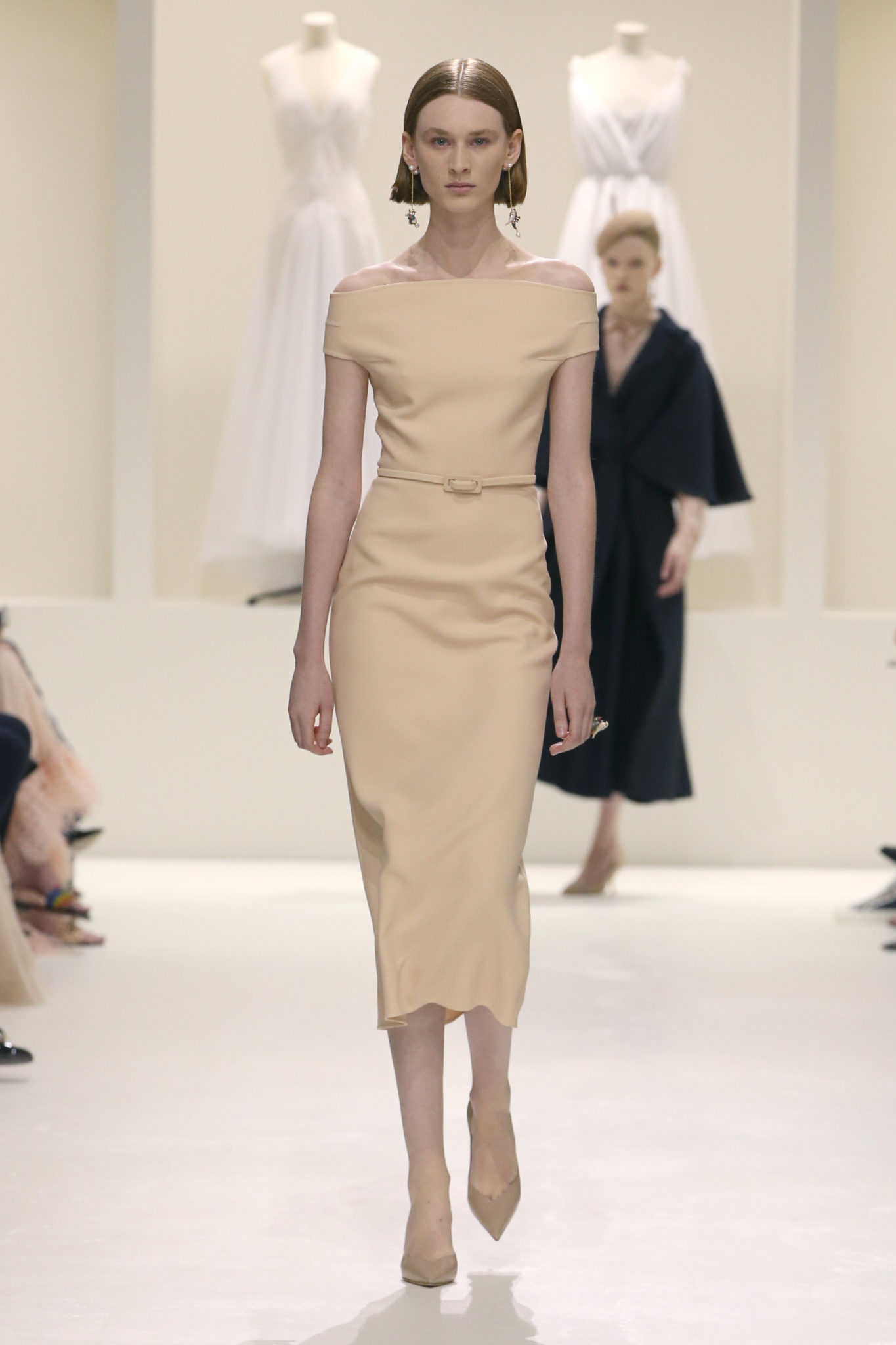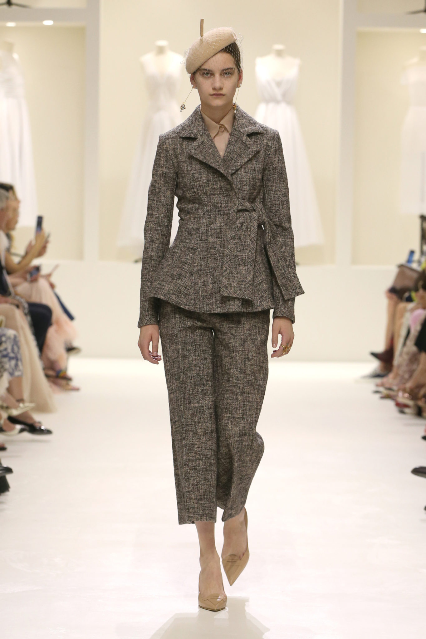 «Curieusement, c’est peut-être le désordre inhérent au désir et à la subjectivité qui rend la psychanalyse lacanienne et l’art d’avant-garde si remarquablement radicaux, faisant de tous deux des idéaux pour une négociation des créations étranges de la couture.» Alison Bancroft*Est-il possible de célébrer la haute couture tout en faisant une lecture critique de celle-ci ? Est-il possible d’être fidèle aux règles strictes édictées par la Chambre syndicale de la haute couture** tout en les décomposant pour créer un ordre nouveau ? Ce sont ces interrogations que Maria Grazia Chiuri a soulevées pour cette collection haute couture automne-hiver 2018-2019, à l’issue de l’exposition Christian Dior, couturier du rêve, qui a mis en lumière, au musée des Arts décoratifs, les créations de la haute couture en rendant hommage à ce lieu sacré et intemporel : l’atelier. Les ateliers sont des temples, gardiens de la pensée. C’est au cœur de cette mémoire de la couture – cette série d’images, de formes, de couleurs et d’attitudes – que se déploie la vision créative de Maria Grazia Chiuri. La couture est une instance de l’avant-garde, une forme d’art qui se développe grâce à l’imagination. Une réflexion qui cultive l’audace de répéter des gestes codifiés tout en cherchant à les enfreindre. Car la couture est aujourd’hui, avant tout, un geste conceptuel. A l’image d’un ready-made de Marcel Duchamp. Ce sont parfois des tissus qui guident le projet, qui sont travaillés dans d’anciennes manufactures qui ne peuvent produire que quelques mètres à la fois et auxquelles on a demandé d’introduire un élément inhabituel ou un nouveau savoir-faire ; chaque matière pouvant subir des modifications qui accentuent ses effets de manière inattendue. D’autres fois, l’idée première vient de la volonté de reconstruire le rituel et la façon de s’habiller au gré des occasions qui rythment une journée. La haute couture, c’est la possibilité de porter une qualité unique, d’adapter l’œuvre parfaite à son propre corps. Maria Grazia Chiuri revient aux fondamentaux et imagine des tailleurs dans lesquels les manches de la veste Bar deviennent des ailes de chauve-souris. La véritable transgression étant de se référer aux règles d’usage tout en détournant leur syntaxe. La palette des couleurs poudrées (brique, vert, rose ou orange), en dialogue avec le Nude, colore les vêtements, mais aussi les accessoires – bijoux fantaisie raffinés, voilettes et chapeaux – telle une continuité complémentaire du corps que la couture met à l’honneur. Les robes du soir, éblouissantes par leurs différents plissés, ou par leurs jeux de superpositions, contrastent avec des bustiers simples qui offrent une dissonance surprenante. La forme sculpturale d’une robe de soie rouge cousue d’une seule pièce ouvre la voie à une série de créations majestueuses et intimes, à la fois retenues et explosives : la couture devient alors un lieu psychologique de résistance féminine. Alison Bancroft assimile, dans un sens lacanien, la couture au mode d’expression des avant-gardes : réappropriation de pratiques séculaires rejetées par le désir de nouveauté et réinterprétation des traditions par des valeurs contemporaines. C’est par cette rencontre entre un système de règles établies et la créativité la plus libre que, pour Maria Grazia Chiuri, la couture devient rébellion : une sorte de « guérilla » idéologique qui explose aux frontières d’une tradition ancrée, sans jamais les outrepasser.