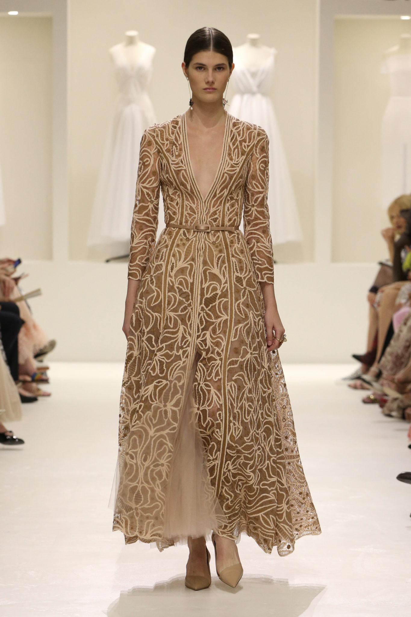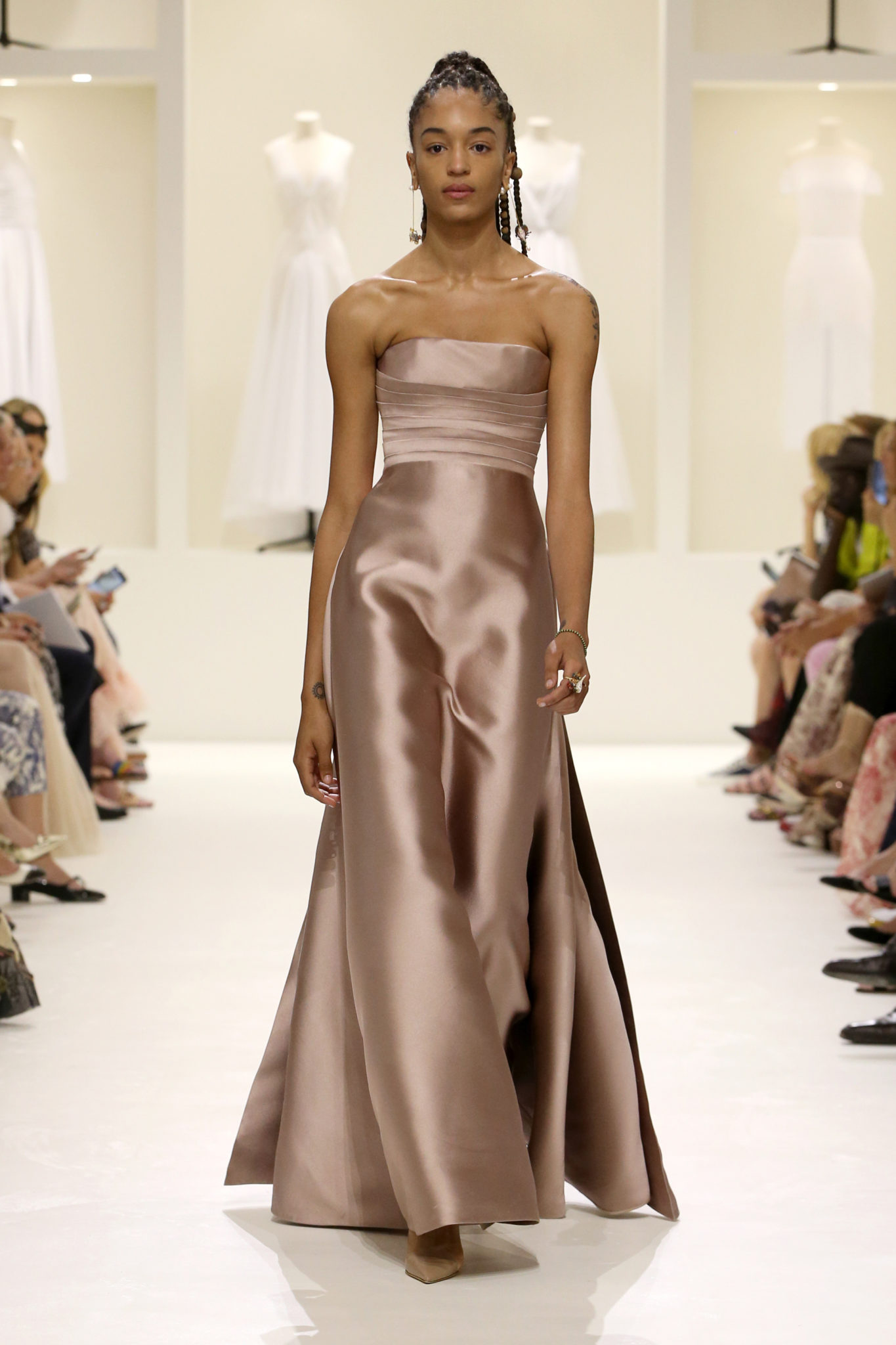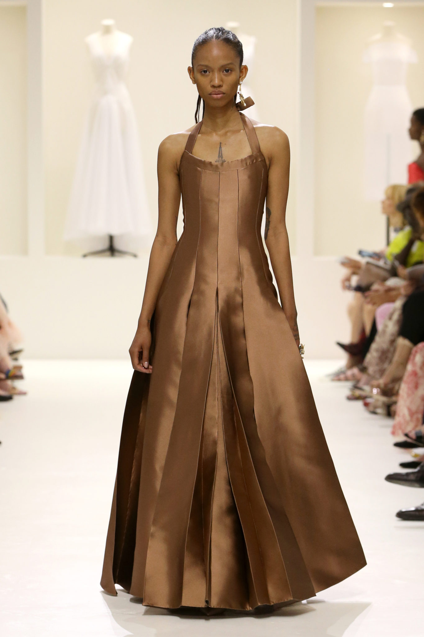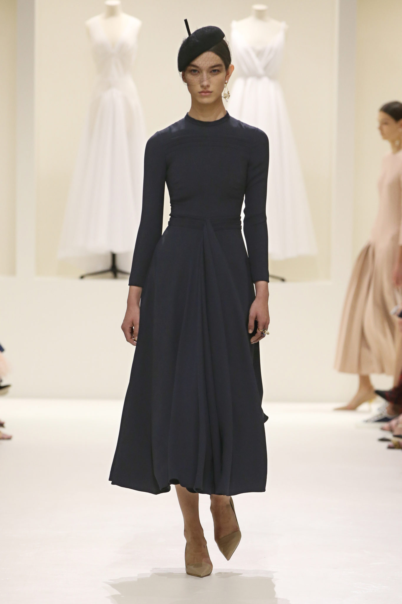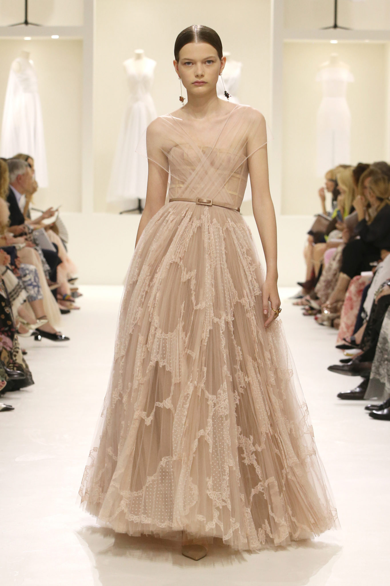 «Curieusement, c’est peut-être le désordre inhérent au désir et à la subjectivité qui rend la psychanalyse lacanienne et l’art d’avant-garde si remarquablement radicaux, faisant de tous deux des idéaux pour une négociation des créations étranges de la couture.» Alison Bancroft*Est-il possible de célébrer la haute couture tout en faisant une lecture critique de celle-ci ? Est-il possible d’être fidèle aux règles strictes édictées par la Chambre syndicale de la haute couture** tout en les décomposant pour créer un ordre nouveau ? Ce sont ces interrogations que Maria Grazia Chiuri a soulevées pour cette collection haute couture automne-hiver 2018-2019, à l’issue de l’exposition Christian Dior, couturier du rêve, qui a mis en lumière, au musée des Arts décoratifs, les créations de la haute couture en rendant hommage à ce lieu sacré et intemporel : l’atelier. Les ateliers sont des temples, gardiens de la pensée. C’est au cœur de cette mémoire de la couture – cette série d’images, de formes, de couleurs et d’attitudes – que se déploie la vision créative de Maria Grazia Chiuri. La couture est une instance de l’avant-garde, une forme d’art qui se développe grâce à l’imagination. Une réflexion qui cultive l’audace de répéter des gestes codifiés tout en cherchant à les enfreindre. Car la couture est aujourd’hui, avant tout, un geste conceptuel. A l’image d’un ready-made de Marcel Duchamp. Ce sont parfois des tissus qui guident le projet, qui sont travaillés dans d’anciennes manufactures qui ne peuvent produire que quelques mètres à la fois et auxquelles on a demandé d’introduire un élément inhabituel ou un nouveau savoir-faire ; chaque matière pouvant subir des modifications qui accentuent ses effets de manière inattendue. D’autres fois, l’idée première vient de la volonté de reconstruire le rituel et la façon de s’habiller au gré des occasions qui rythment une journée. La haute couture, c’est la possibilité de porter une qualité unique, d’adapter l’œuvre parfaite à son propre corps. Maria Grazia Chiuri revient aux fondamentaux et imagine des tailleurs dans lesquels les manches de la veste Bar deviennent des ailes de chauve-souris. La véritable transgression étant de se référer aux règles d’usage tout en détournant leur syntaxe. La palette des couleurs poudrées (brique, vert, rose ou orange), en dialogue avec le Nude, colore les vêtements, mais aussi les accessoires – bijoux fantaisie raffinés, voilettes et chapeaux – telle une continuité complémentaire du corps que la couture met à l’honneur. Les robes du soir, éblouissantes par leurs différents plissés, ou par leurs jeux de superpositions, contrastent avec des bustiers simples qui offrent une dissonance surprenante. La forme sculpturale d’une robe de soie rouge cousue d’une seule pièce ouvre la voie à une série de créations majestueuses et intimes, à la fois retenues et explosives : la couture devient alors un lieu psychologique de résistance féminine. Alison Bancroft assimile, dans un sens lacanien, la couture au mode d’expression des avant-gardes : réappropriation de pratiques séculaires rejetées par le désir de nouveauté et réinterprétation des traditions par des valeurs contemporaines. C’est par cette rencontre entre un système de règles établies et la créativité la plus libre que, pour Maria Grazia Chiuri, la couture devient rébellion : une sorte de « guérilla » idéologique qui explose aux frontières d’une tradition ancrée, sans jamais les outrepasser.