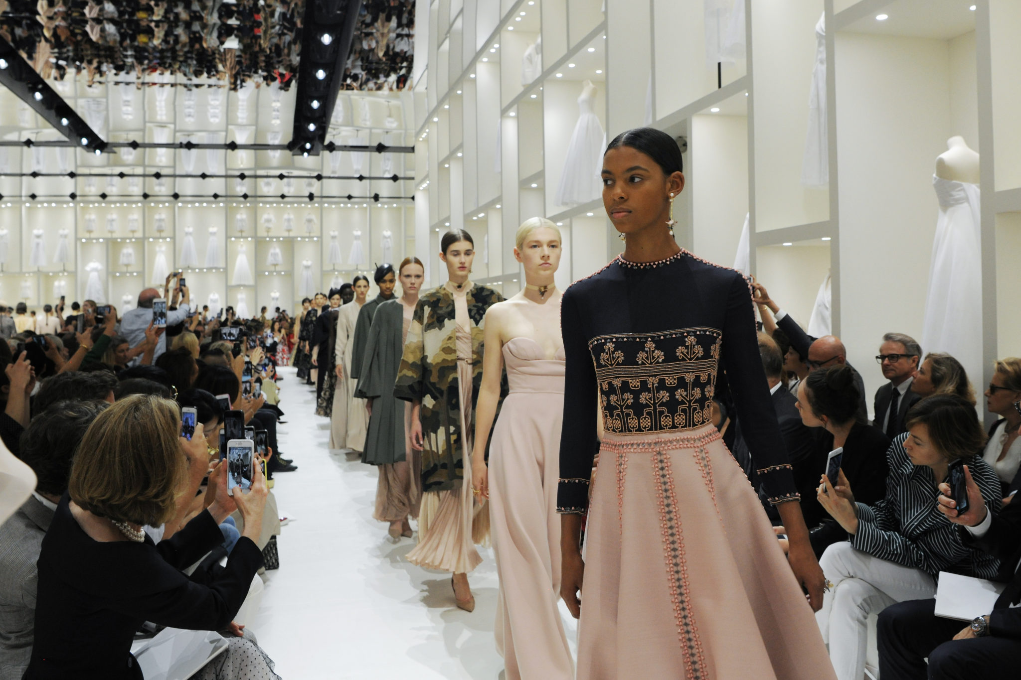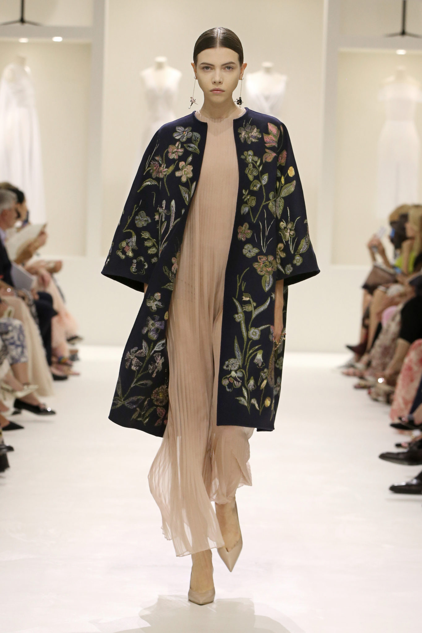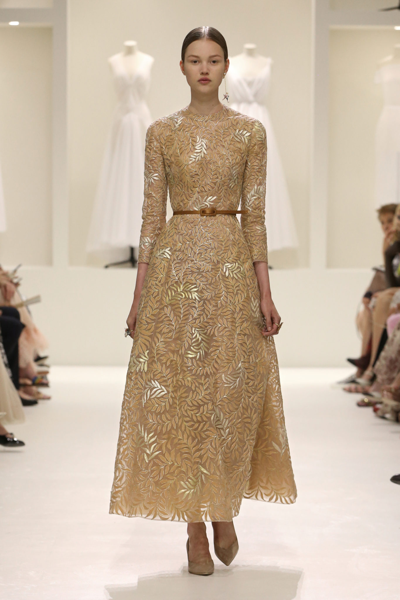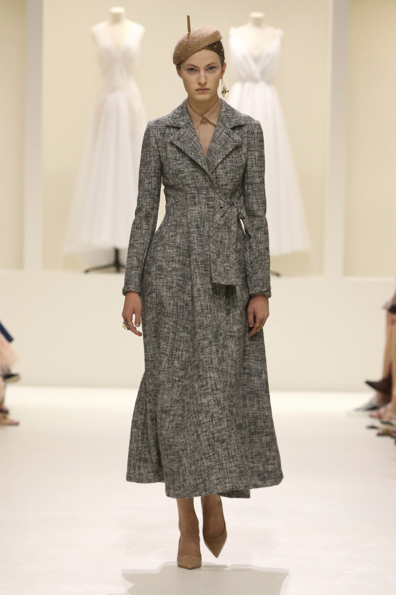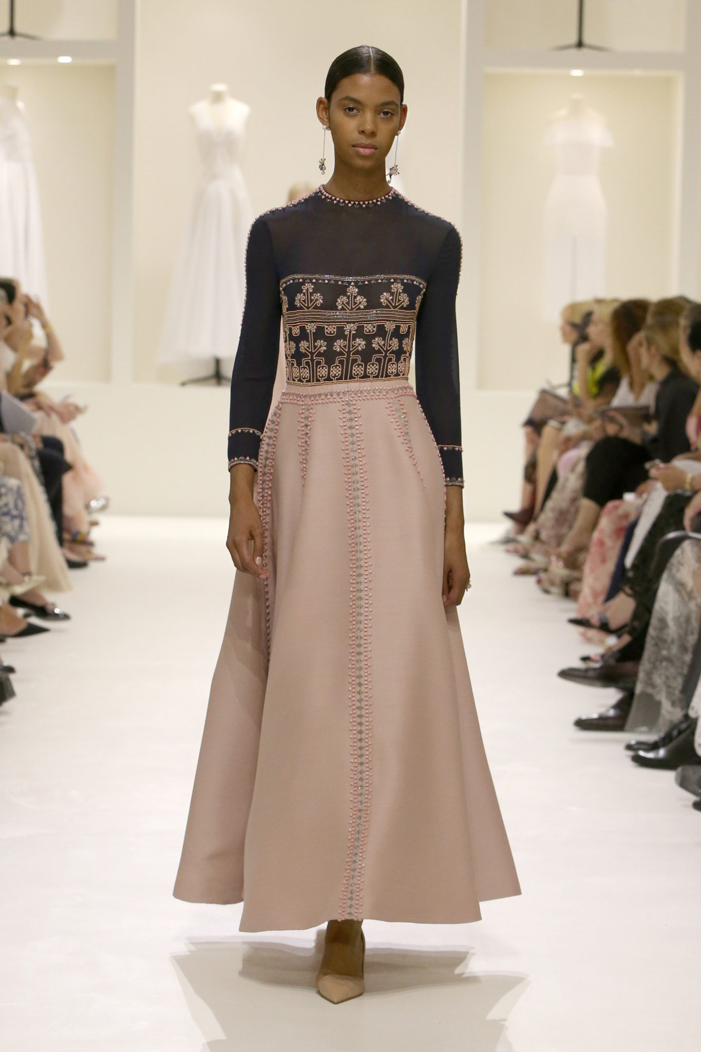 «Curieusement, c’est peut-être le désordre inhérent au désir et à la subjectivité qui rend la psychanalyse lacanienne et l’art d’avant-garde si remarquablement radicaux, faisant de tous deux des idéaux pour une négociation des créations étranges de la couture.» Alison Bancroft*Est-il possible de célébrer la haute couture tout en faisant une lecture critique de celle-ci ? Est-il possible d’être fidèle aux règles strictes édictées par la Chambre syndicale de la haute couture** tout en les décomposant pour créer un ordre nouveau ? Ce sont ces interrogations que Maria Grazia Chiuri a soulevées pour cette collection haute couture automne-hiver 2018-2019, à l’issue de l’exposition Christian Dior, couturier du rêve, qui a mis en lumière, au musée des Arts décoratifs, les créations de la haute couture en rendant hommage à ce lieu sacré et intemporel : l’atelier. Les ateliers sont des temples, gardiens de la pensée. C’est au cœur de cette mémoire de la couture – cette série d’images, de formes, de couleurs et d’attitudes – que se déploie la vision créative de Maria Grazia Chiuri. La couture est une instance de l’avant-garde, une forme d’art qui se développe grâce à l’imagination. Une réflexion qui cultive l’audace de répéter des gestes codifiés tout en cherchant à les enfreindre. Car la couture est aujourd’hui, avant tout, un geste conceptuel. A l’image d’un ready-made de Marcel Duchamp. Ce sont parfois des tissus qui guident le projet, qui sont travaillés dans d’anciennes manufactures qui ne peuvent produire que quelques mètres à la fois et auxquelles on a demandé d’introduire un élément inhabituel ou un nouveau savoir-faire ; chaque matière pouvant subir des modifications qui accentuent ses effets de manière inattendue. D’autres fois, l’idée première vient de la volonté de reconstruire le rituel et la façon de s’habiller au gré des occasions qui rythment une journée. La haute couture, c’est la possibilité de porter une qualité unique, d’adapter l’œuvre parfaite à son propre corps. Maria Grazia Chiuri revient aux fondamentaux et imagine des tailleurs dans lesquels les manches de la veste Bar deviennent des ailes de chauve-souris. La véritable transgression étant de se référer aux règles d’usage tout en détournant leur syntaxe. La palette des couleurs poudrées (brique, vert, rose ou orange), en dialogue avec le Nude, colore les vêtements, mais aussi les accessoires – bijoux fantaisie raffinés, voilettes et chapeaux – telle une continuité complémentaire du corps que la couture met à l’honneur. Les robes du soir, éblouissantes par leurs différents plissés, ou par leurs jeux de superpositions, contrastent avec des bustiers simples qui offrent une dissonance surprenante. La forme sculpturale d’une robe de soie rouge cousue d’une seule pièce ouvre la voie à une série de créations majestueuses et intimes, à la fois retenues et explosives : la couture devient alors un lieu psychologique de résistance féminine. Alison Bancroft assimile, dans un sens lacanien, la couture au mode d’expression des avant-gardes : réappropriation de pratiques séculaires rejetées par le désir de nouveauté et réinterprétation des traditions par des valeurs contemporaines. C’est par cette rencontre entre un système de règles établies et la créativité la plus libre que, pour Maria Grazia Chiuri, la couture devient rébellion : une sorte de « guérilla » idéologique qui explose aux frontières d’une tradition ancrée, sans jamais les outrepasser.