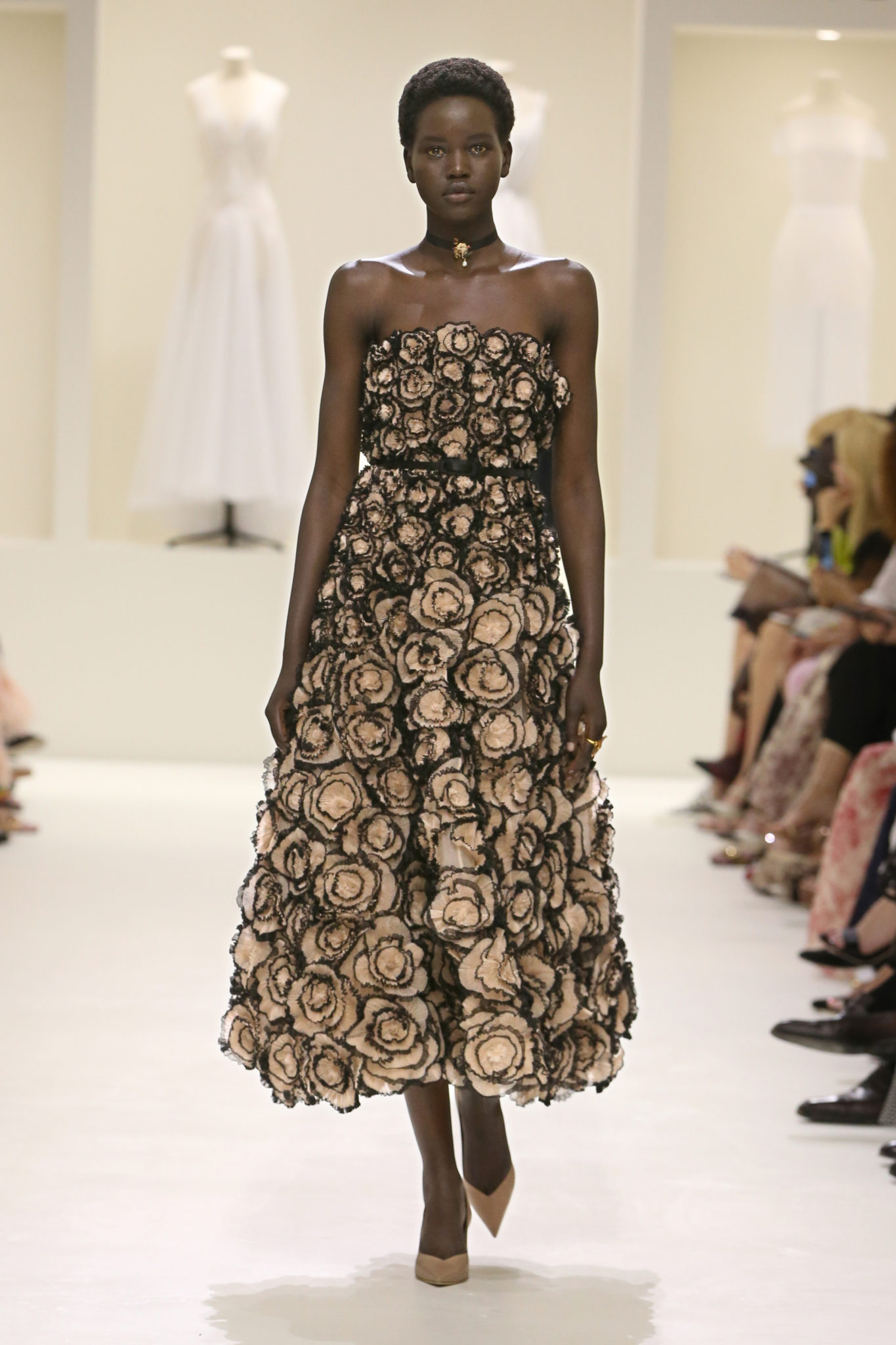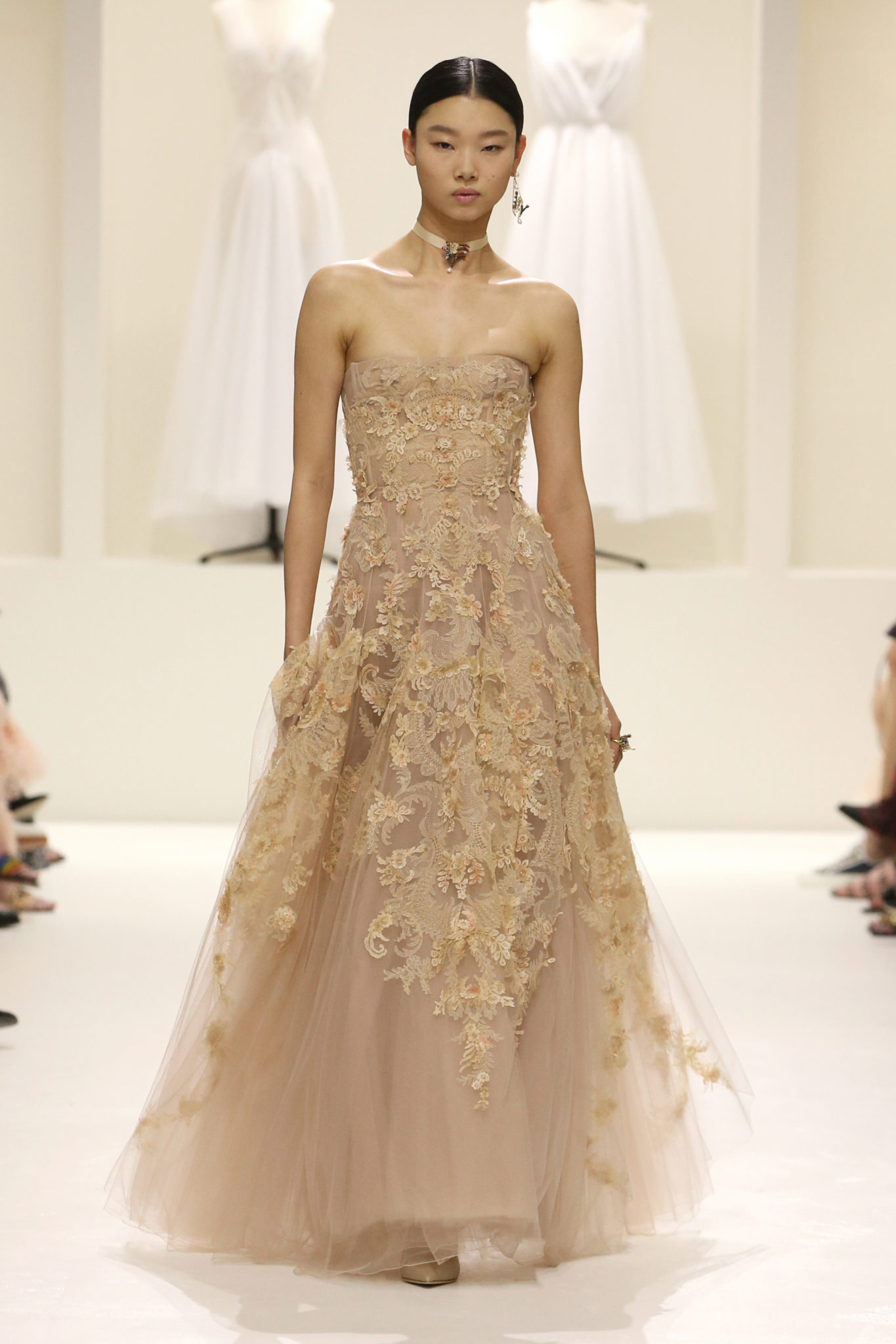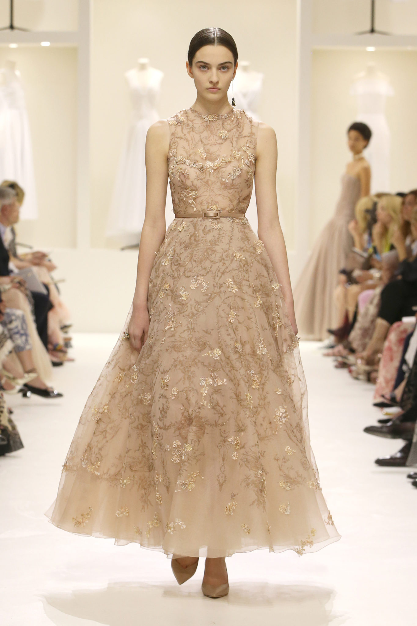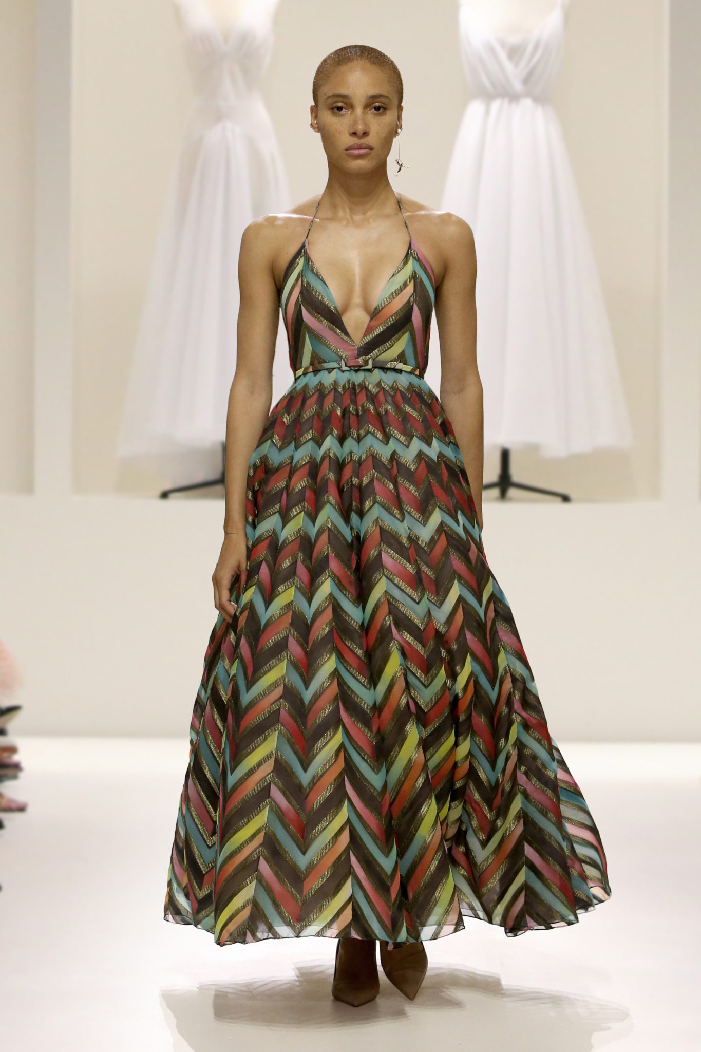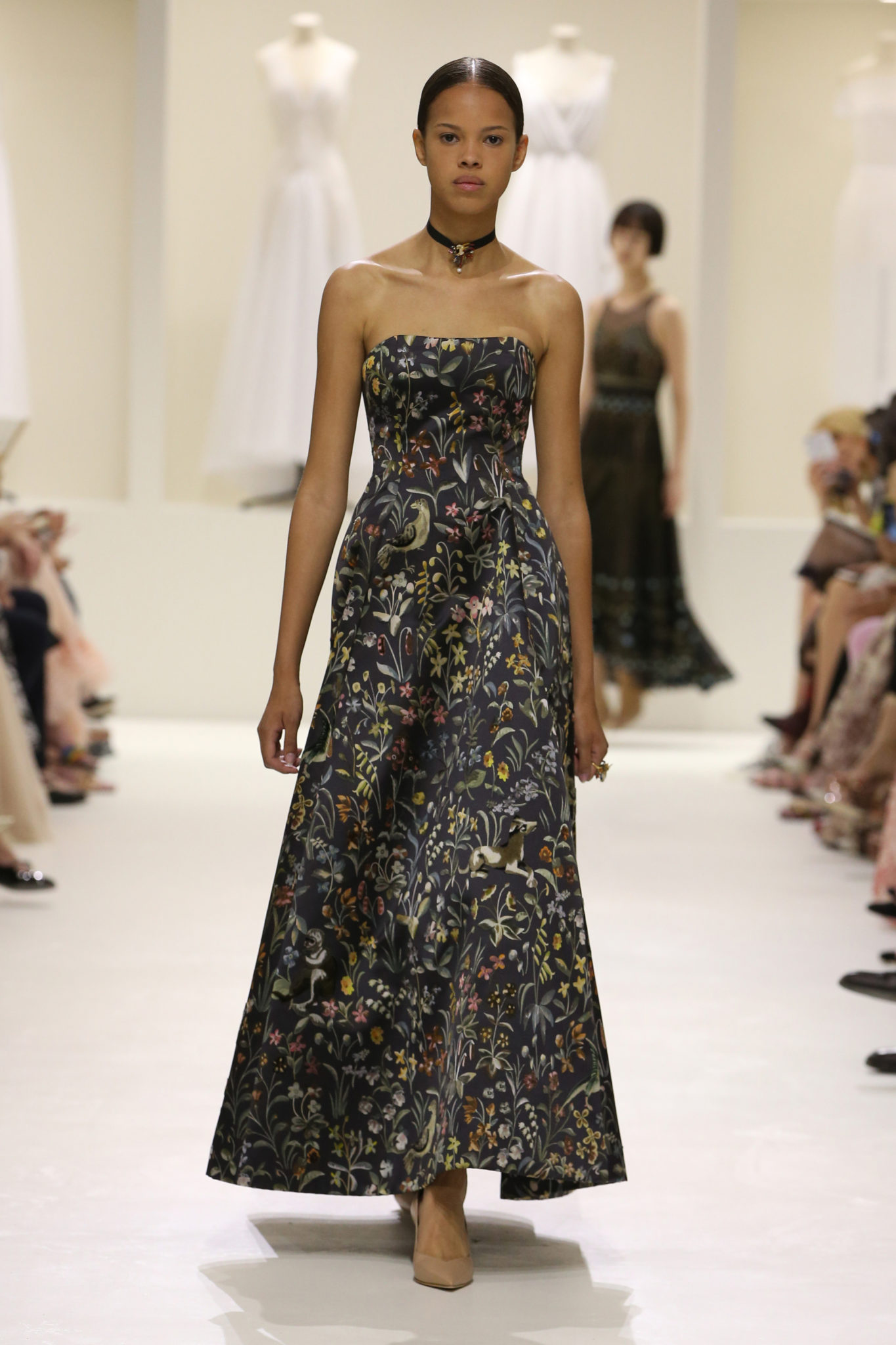«Curieusement, c’est peut-être le désordre inhérent au désir et à la subjectivité qui rend la psychanalyse lacanienne et l’art d’avant-garde si remarquablement radicaux, faisant de tous deux des idéaux pour une négociation des créations étranges de la couture.» Alison Bancroft*Est-il possible de célébrer la haute couture tout en faisant une lecture critique de celle-ci ? Est-il possible d’être fidèle aux règles strictes édictées par la Chambre syndicale de la haute couture** tout en les décomposant pour créer un ordre nouveau ? Ce sont ces interrogations que Maria Grazia Chiuri a soulevées pour cette collection haute couture automne-hiver 2018-2019, à l’issue de l’exposition Christian Dior, couturier du rêve, qui a mis en lumière, au musée des Arts décoratifs, les créations de la haute couture en rendant hommage à ce lieu sacré et intemporel : l’atelier. Les ateliers sont des temples, gardiens de la pensée. C’est au cœur de cette mémoire de la couture – cette série d’images, de formes, de couleurs et d’attitudes – que se déploie la vision créative de Maria Grazia Chiuri. La couture est une instance de l’avant-garde, une forme d’art qui se développe grâce à l’imagination. Une réflexion qui cultive l’audace de répéter des gestes codifiés tout en cherchant à les enfreindre. Car la couture est aujourd’hui, avant tout, un geste conceptuel. A l’image d’un ready-made de Marcel Duchamp. Ce sont parfois des tissus qui guident le projet, qui sont travaillés dans d’anciennes manufactures qui ne peuvent produire que quelques mètres à la fois et auxquelles on a demandé d’introduire un élément inhabituel ou un nouveau savoir-faire ; chaque matière pouvant subir des modifications qui accentuent ses effets de manière inattendue. D’autres fois, l’idée première vient de la volonté de reconstruire le rituel et la façon de s’habiller au gré des occasions qui rythment une journée. La haute couture, c’est la possibilité de porter une qualité unique, d’adapter l’œuvre parfaite à son propre corps. Maria Grazia Chiuri revient aux fondamentaux et imagine des tailleurs dans lesquels les manches de la veste Bar deviennent des ailes de chauve-souris. La véritable transgression étant de se référer aux règles d’usage tout en détournant leur syntaxe. La palette des couleurs poudrées (brique, vert, rose ou orange), en dialogue avec le Nude, colore les vêtements, mais aussi les accessoires – bijoux fantaisie raffinés, voilettes et chapeaux – telle une continuité complémentaire du corps que la couture met à l’honneur. Les robes du soir, éblouissantes par leurs différents plissés, ou par leurs jeux de superpositions, contrastent avec des bustiers simples qui offrent une dissonance surprenante. La forme sculpturale d’une robe de soie rouge cousue d’une seule pièce ouvre la voie à une série de créations majestueuses et intimes, à la fois retenues et explosives : la couture devient alors un lieu psychologique de résistance féminine. Alison Bancroft assimile, dans un sens lacanien, la couture au mode d’expression des avant-gardes : réappropriation de pratiques séculaires rejetées par le désir de nouveauté et réinterprétation des traditions par des valeurs contemporaines. C’est par cette rencontre entre un système de règles établies et la créativité la plus libre que, pour Maria Grazia Chiuri, la couture devient rébellion : une sorte de « guérilla » idéologique qui explose aux frontières d’une tradition ancrée, sans jamais les outrepasser.