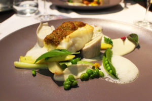 - Filet de Babonne en croûte de corail, palmiste rouge en deux textures, déclinaison de légumes BIO & émulsion basilic