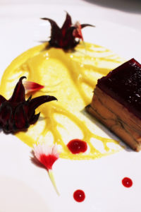 - Terrine de foie gras pressé de Saint-Joseph, gelée de bissap & compotée de kaki au gingembre mangue