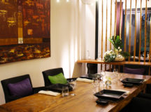 - Assiettes de bois noir, décoration élégante et vue sublime sur l’océan indien : la salle du restaurant LE MAKASSAR