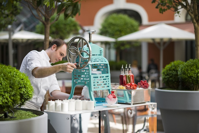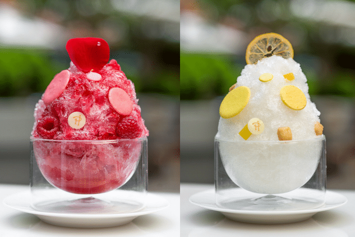 La réalisation minute de ces Kakigoris signés Pierre Hermé sur la terrasse du Royal Monceau offre un spectacle gustatif et visuel à découvrir dès à présent en cinq saveurs :