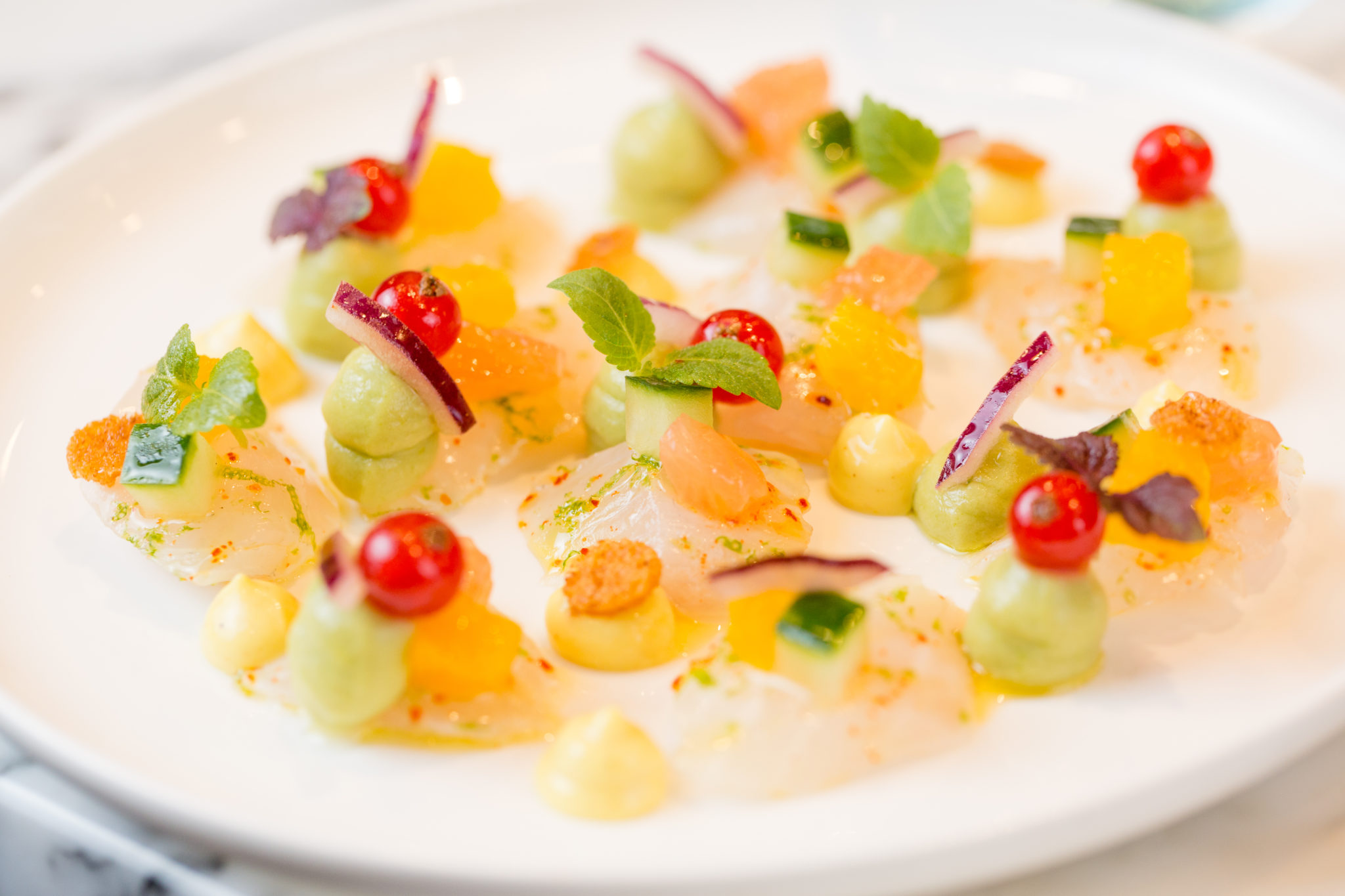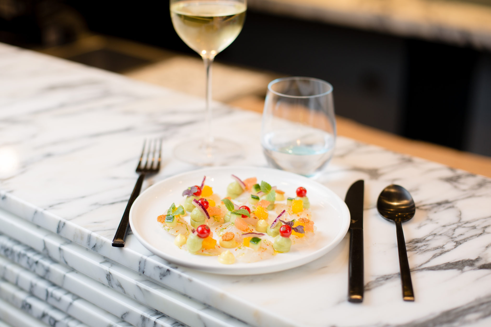 A la table d’EDERN, les tomates cerises choisies sont à l’ancienne, le pain de campagne croustillant signé Frédéric Lalos, des gages d’authenticité. Les poissons de ligne sélectionnés par le chef viennent accompagner des recettes créatives – ainsi du cabillaud artichauts et coquillages, et du Saint-Pierre vapeur et sa soupe de poissons – et la Maison Nordique ajoute ses produits d’exception, caviar de Sologne et saumon fumé entre autres. Toutes d’origine France, les viandes – à l’instar du quasi de veau de lait et de l’épaule d’agneau de lait – complètent le menu. D’autres créations – la daurade royale en ceviche aux agrumes et à l’avocat, le bœuf mariné aux épices et aux oignons caramélisés – ouvrent les esprits vers d’autres saveurs.