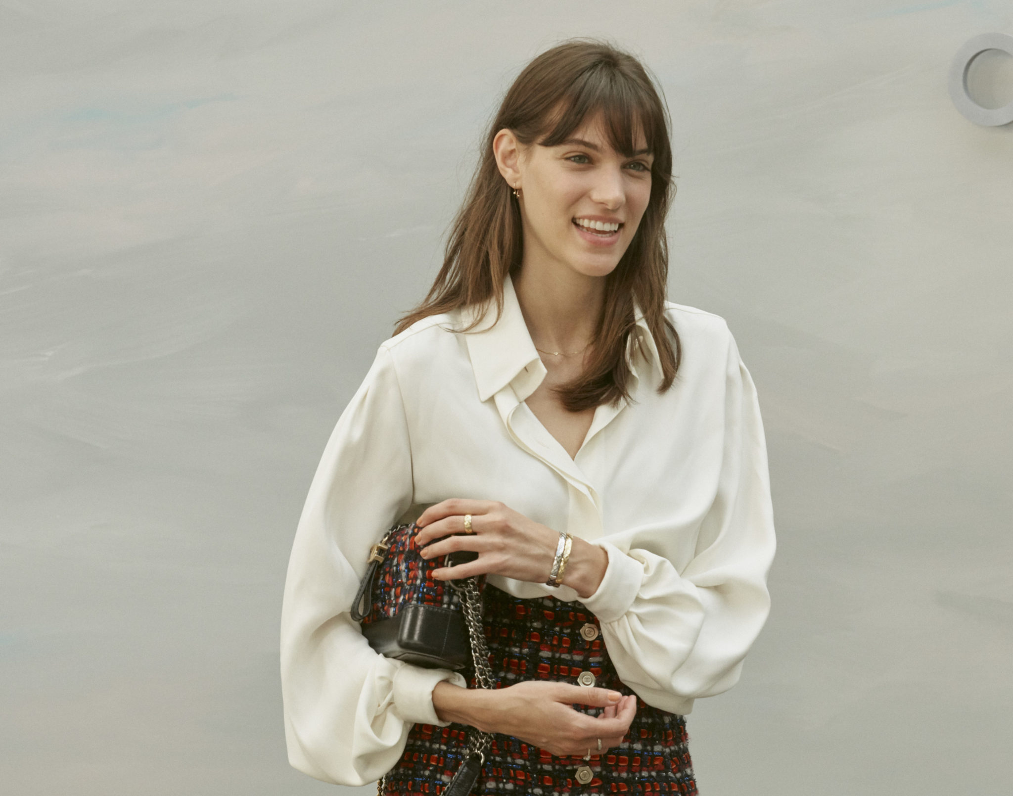 Caroline de Maigret, Ambassadrice CHANEL, portait des bagues « Coco Crush » en or blanc 18K et diamants CHANEL Joaillerie.