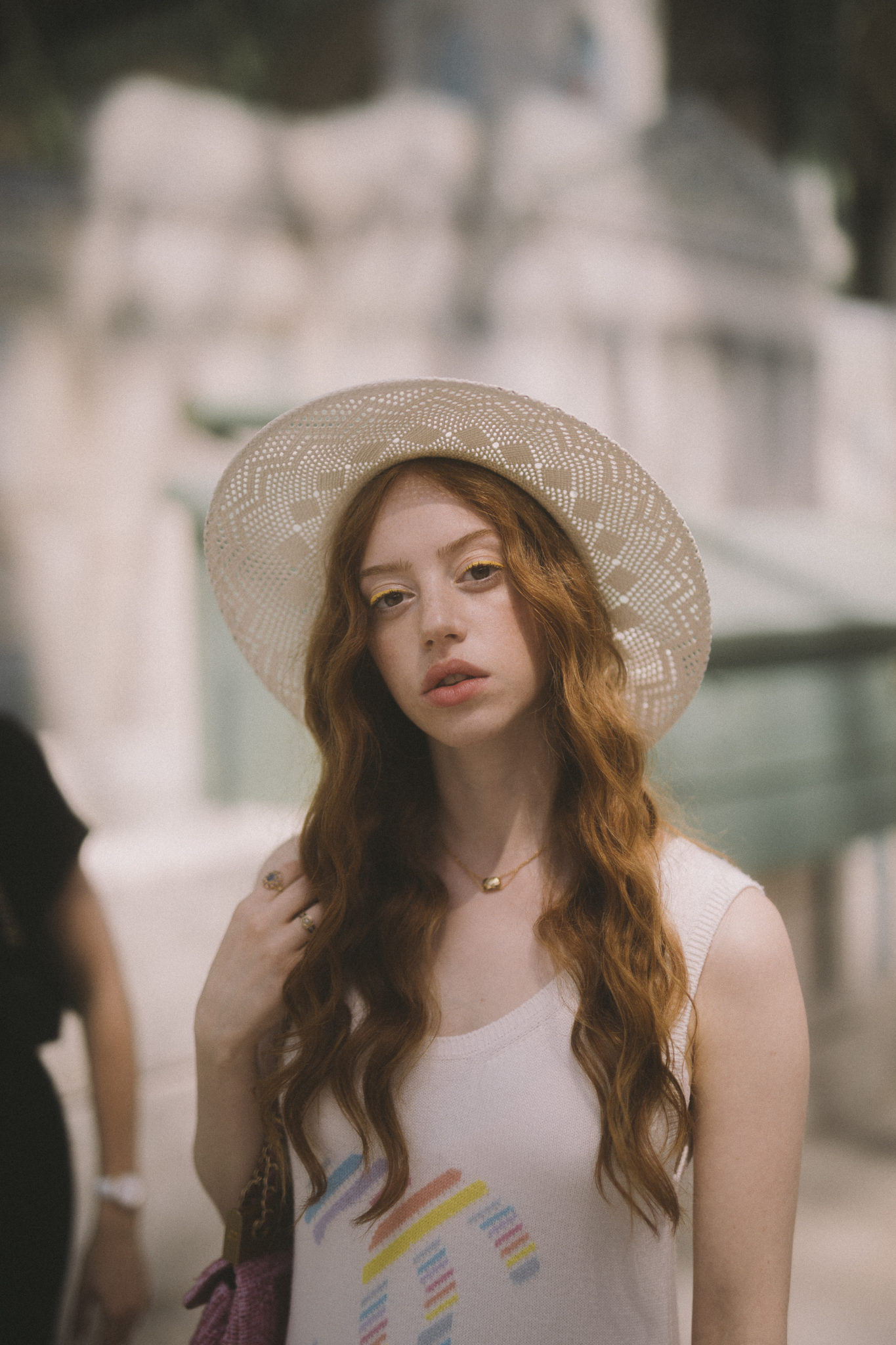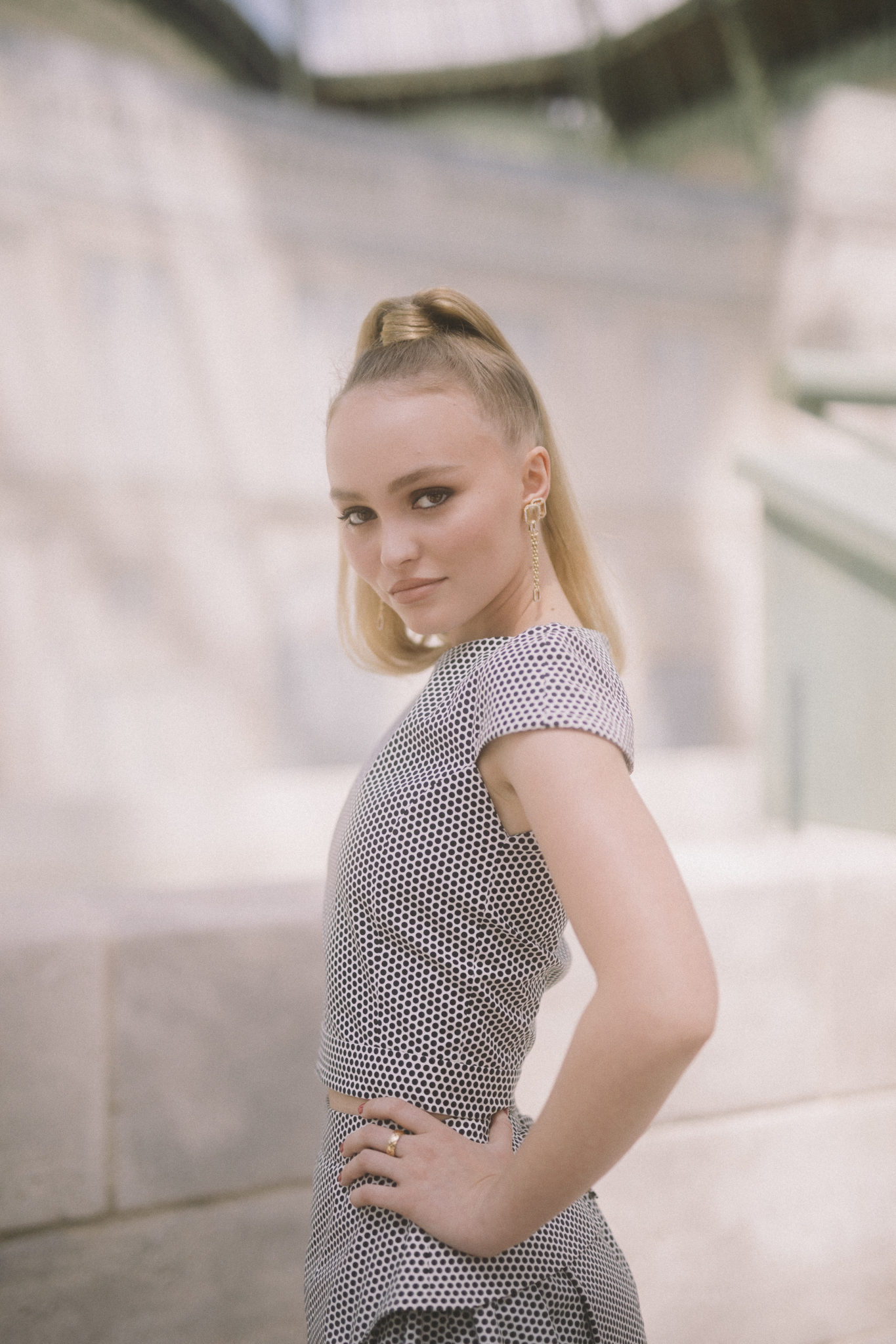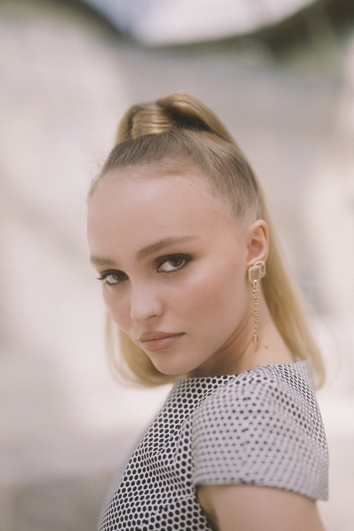 Lily Rose Depp, Comédienne et Ambassadrice CHANEL, portait des boucles d’oreilles « My Chain » en or jaune 18K, quartz fumé rutile et diamants CHANEL Joaillerie.
