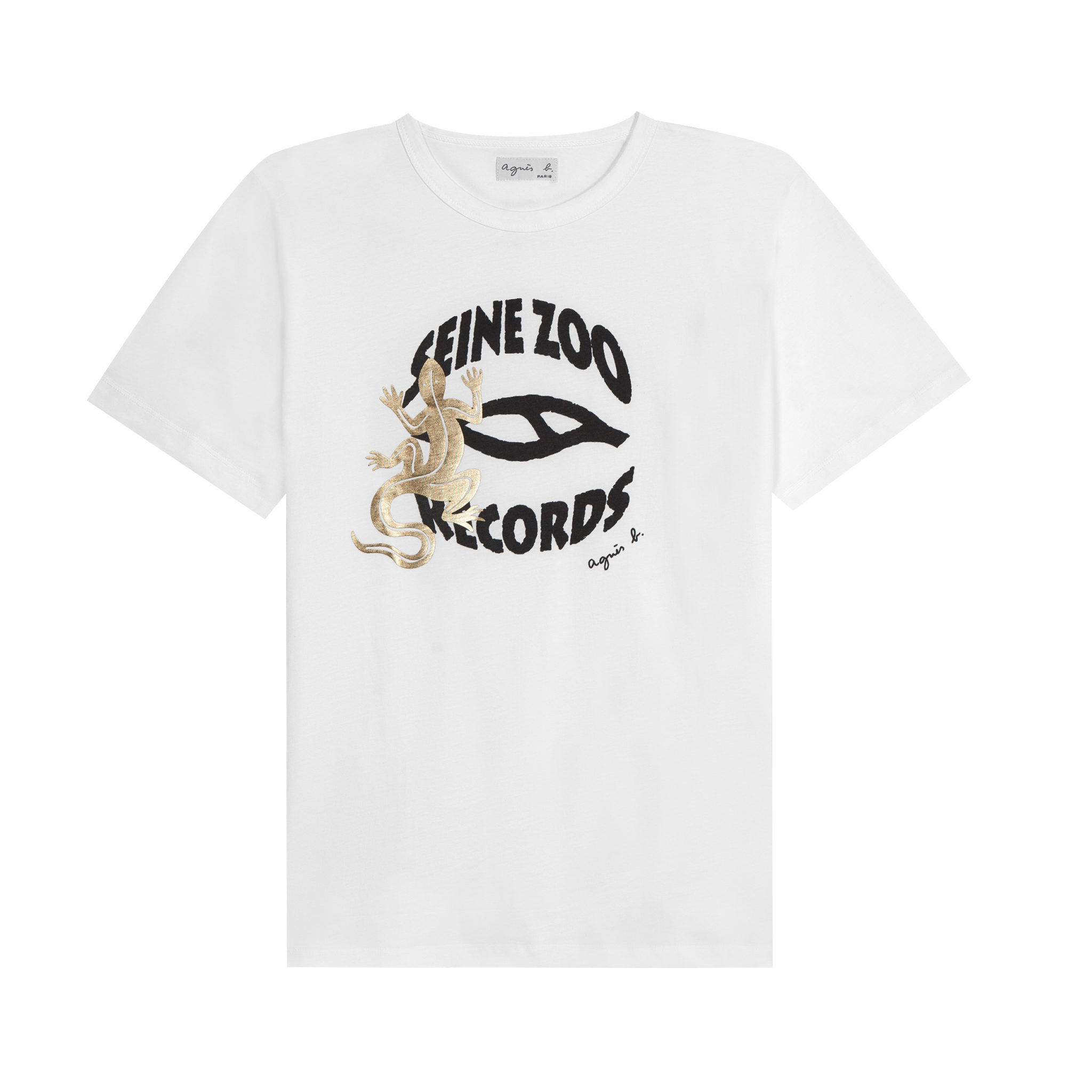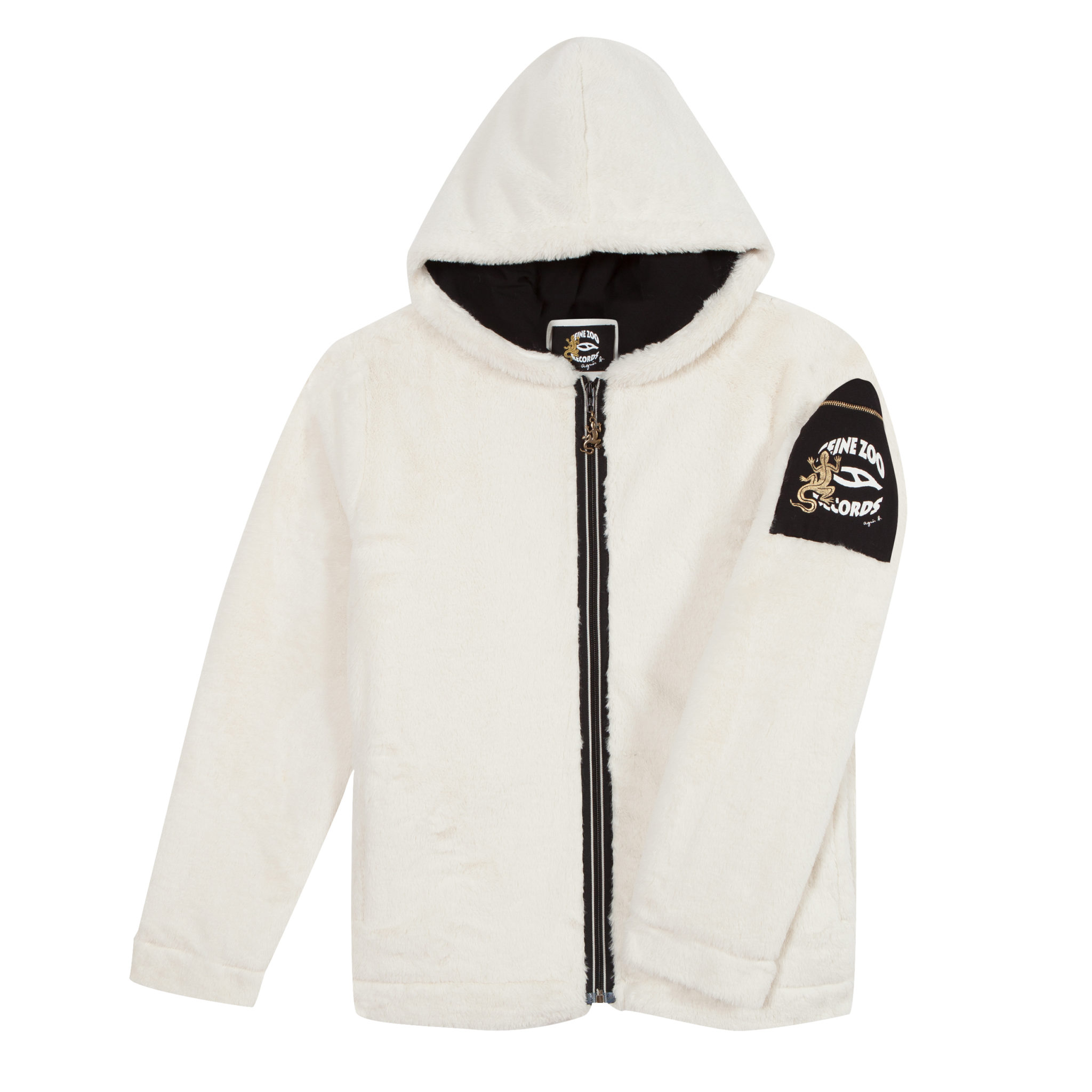 « Dans Paname y’en a qui s’perdent, y’en a qui espèrent péter des sapes agnès b. … » Nekfeu, 8 juin 2015. Un joli début d’histoire…le rappeur et la styliste se rencontrent, d’abord autour de la musique, passion commune, puis pour une bonne cause : la fondation Abbé Pierre et son « Abbé Road ». Pour cet hiver, leur dialogue artistique s’exprime via une collaboration mixte, fusion de leurs univers respectifs. Quatorze pièces de genres mélangés comme un ensemble en velours lisse noir avec un sweat à capuche orné dans le dos du logo Seine Zoo Records en jacquard, un blouson à capuche en fausse fourrure blanche, différentes vestes aux surpiqures jaune fluo, pulls et tee-shirts parés de la griffe sont également déclinés dans plusieurs coloris. Nekfeu a même revisité nos rayures iconiques 12×12 qui deviennent asymétriques ! Quant au logo de la marque de Nekfeu il a été redessiné par agnès b. ! La collection sera en vente en exclusivité dès le mois d’octobre dans les boutiques parisiennes (rue du Jour et boulevard Beaumarchais), Lyon, Marseille, Nice ainsi que sur le site internet. Prix de 55€ à 595€