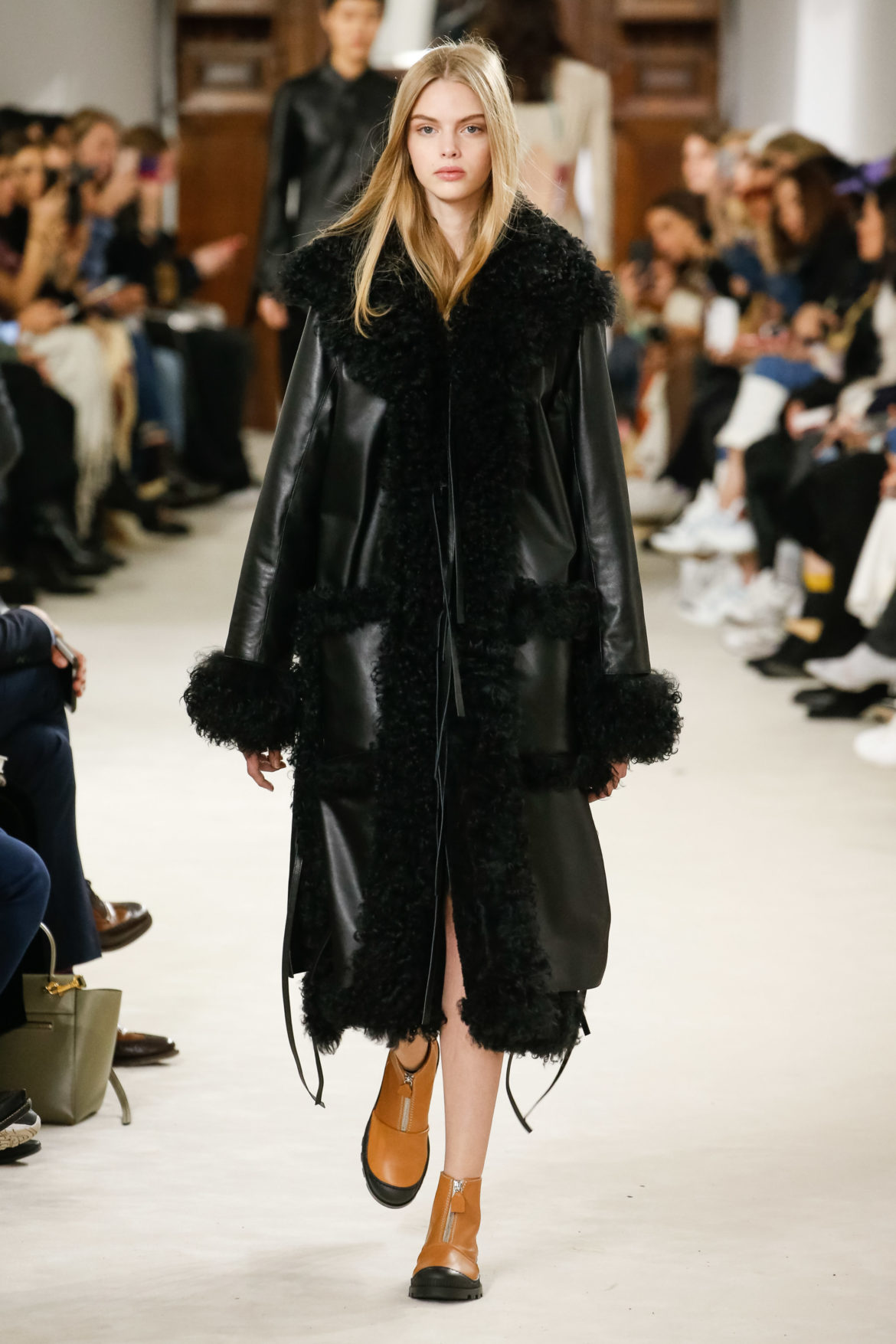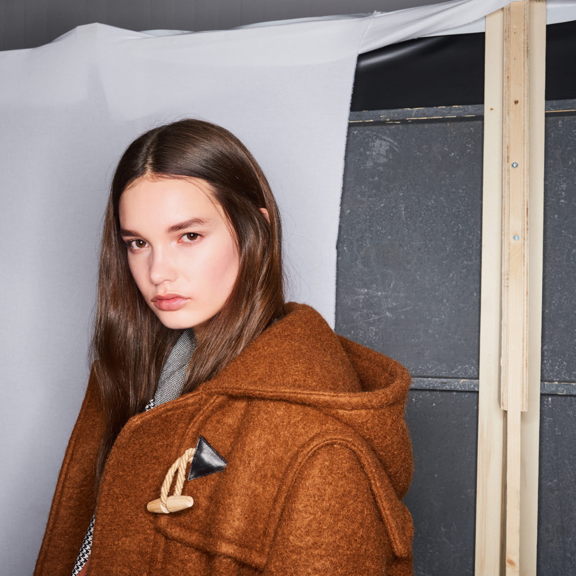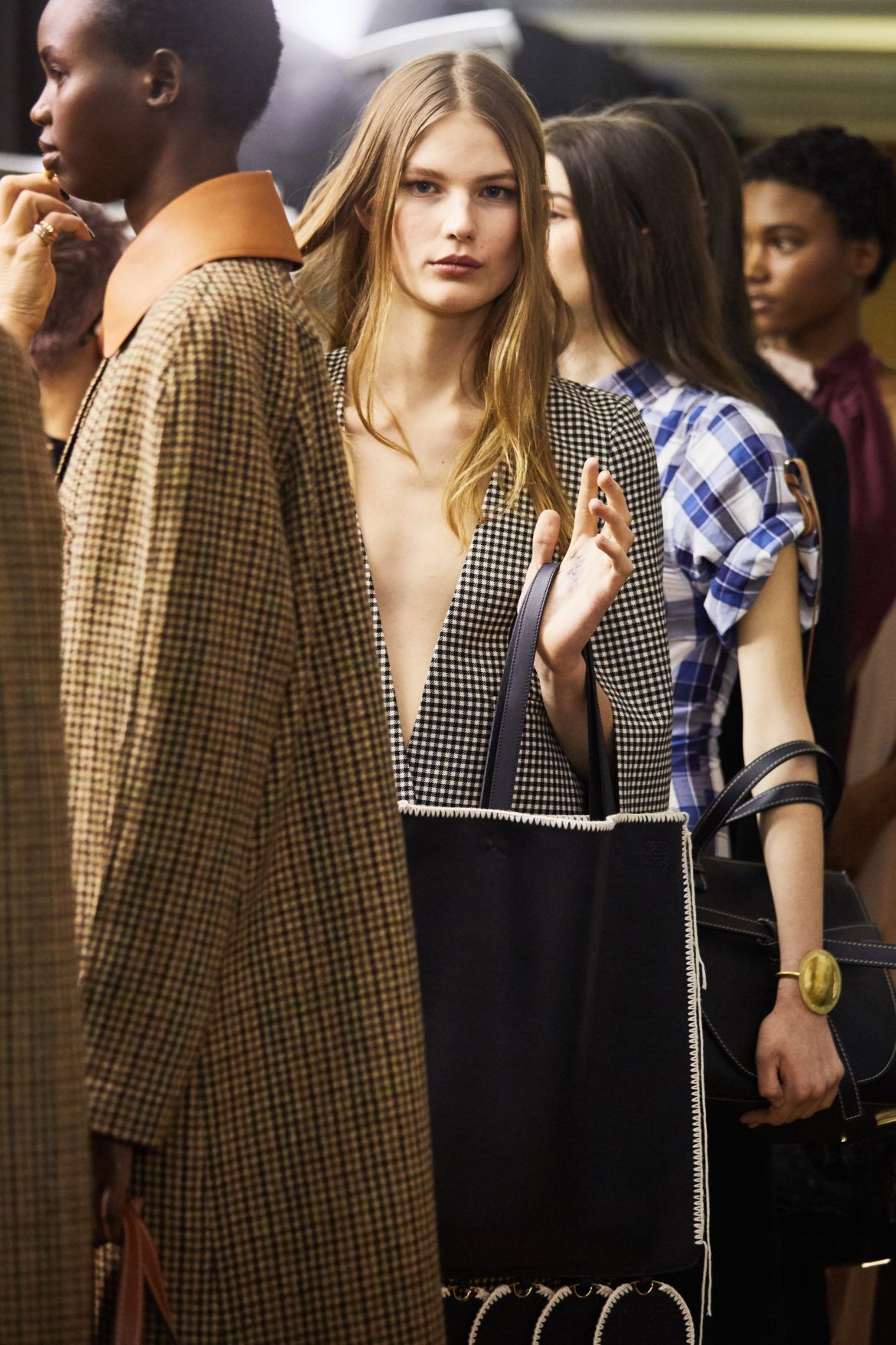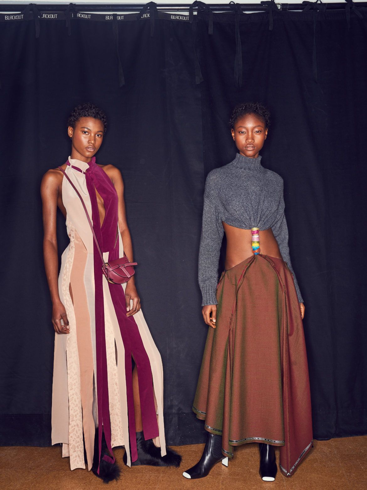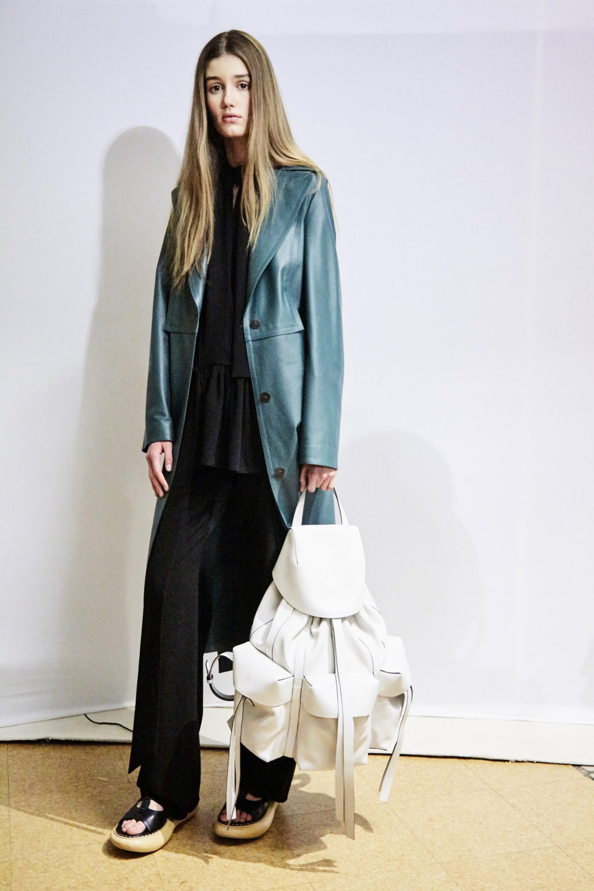 Questioning the facade of the introvert, the LOEWE Women’s Fall Winter 2018 collection designed by creative director Jonathan Anderson inhabits a pensive space where the organic meets the industrial. Disrupted by decadent moments of primitivism, austerity reigns – as shapes nod to the mid-century shifted through a contemporary lens.