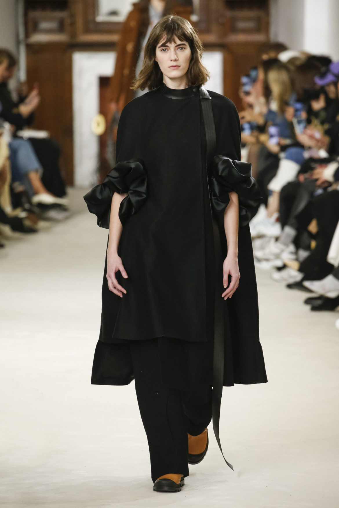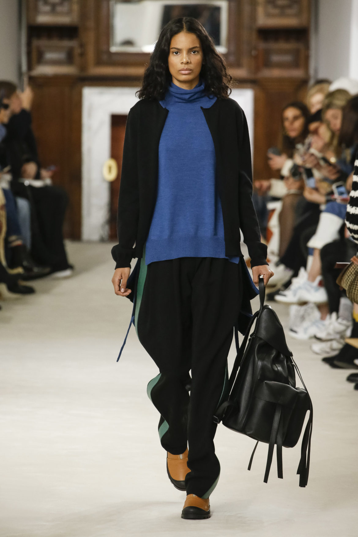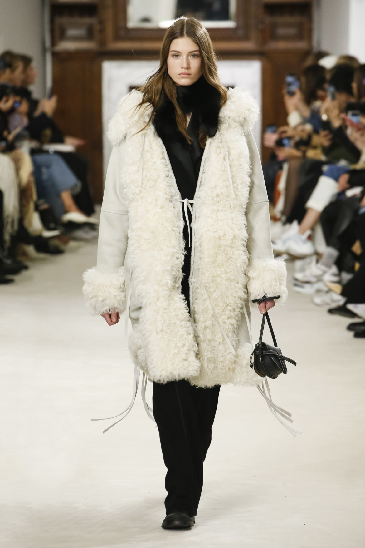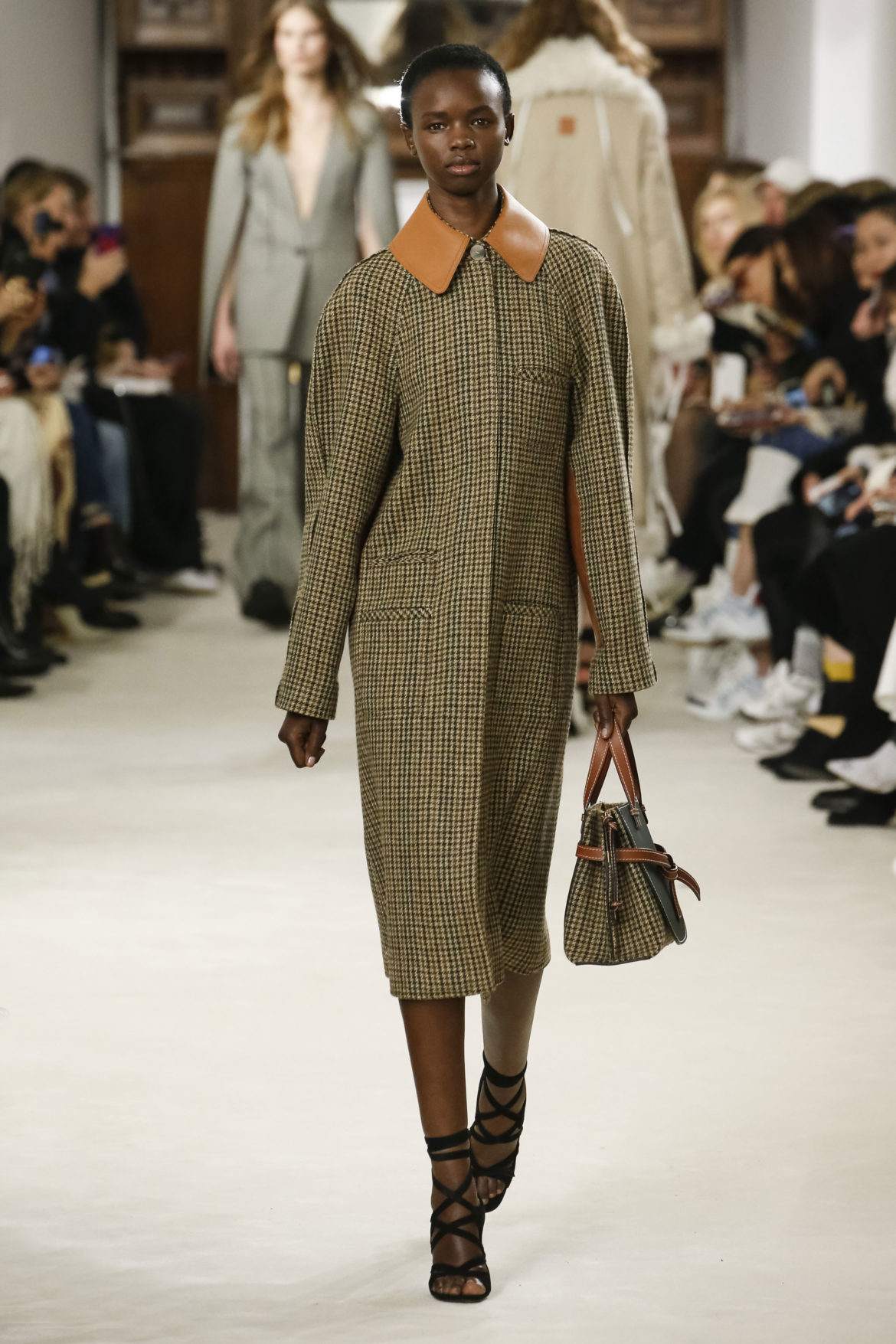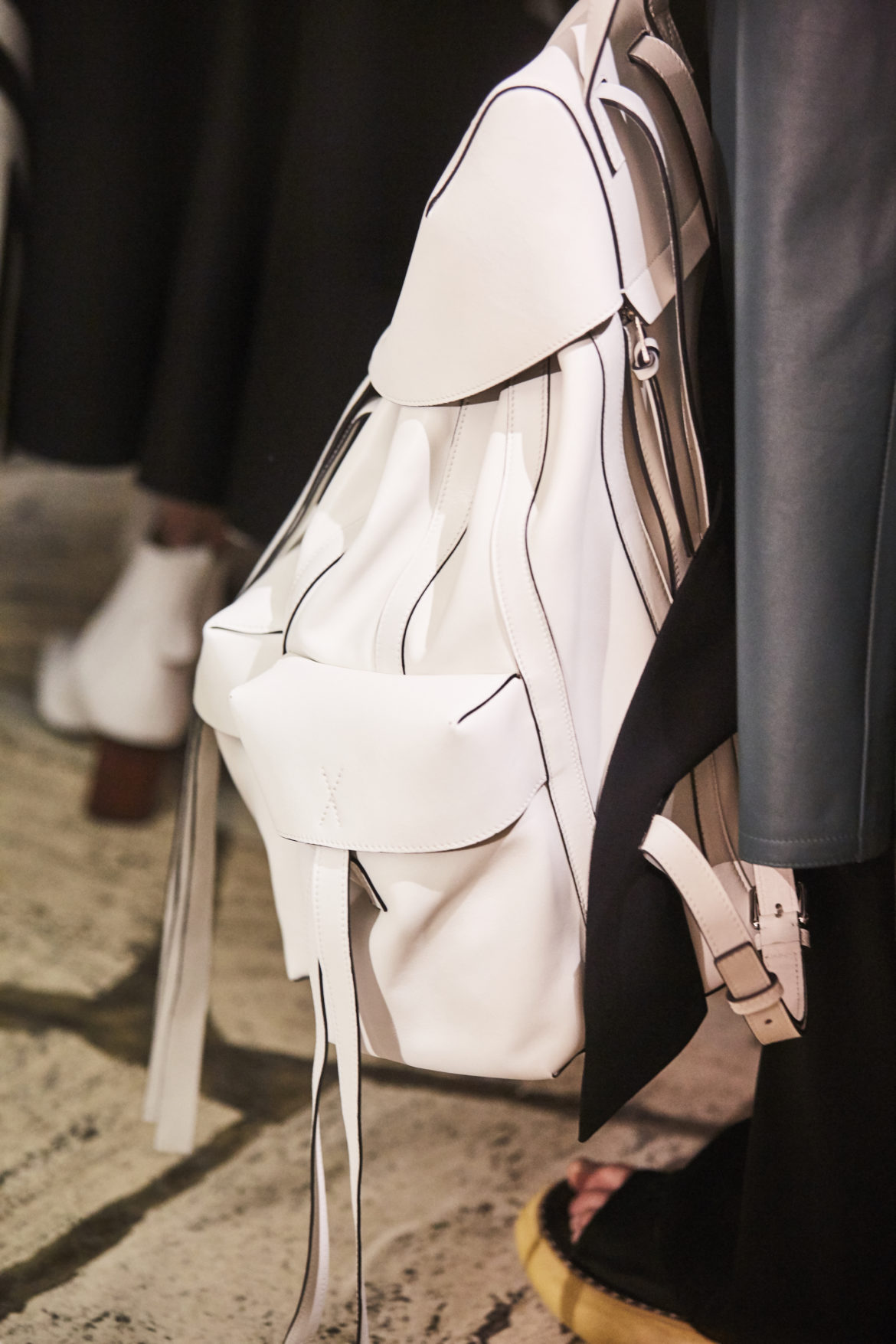 Questioning the facade of the introvert, the LOEWE Women’s Fall Winter 2018 collection designed by creative director Jonathan Anderson inhabits a pensive space where the organic meets the industrial. Disrupted by decadent moments of primitivism, austerity reigns – as shapes nod to the mid-century shifted through a contemporary lens.
