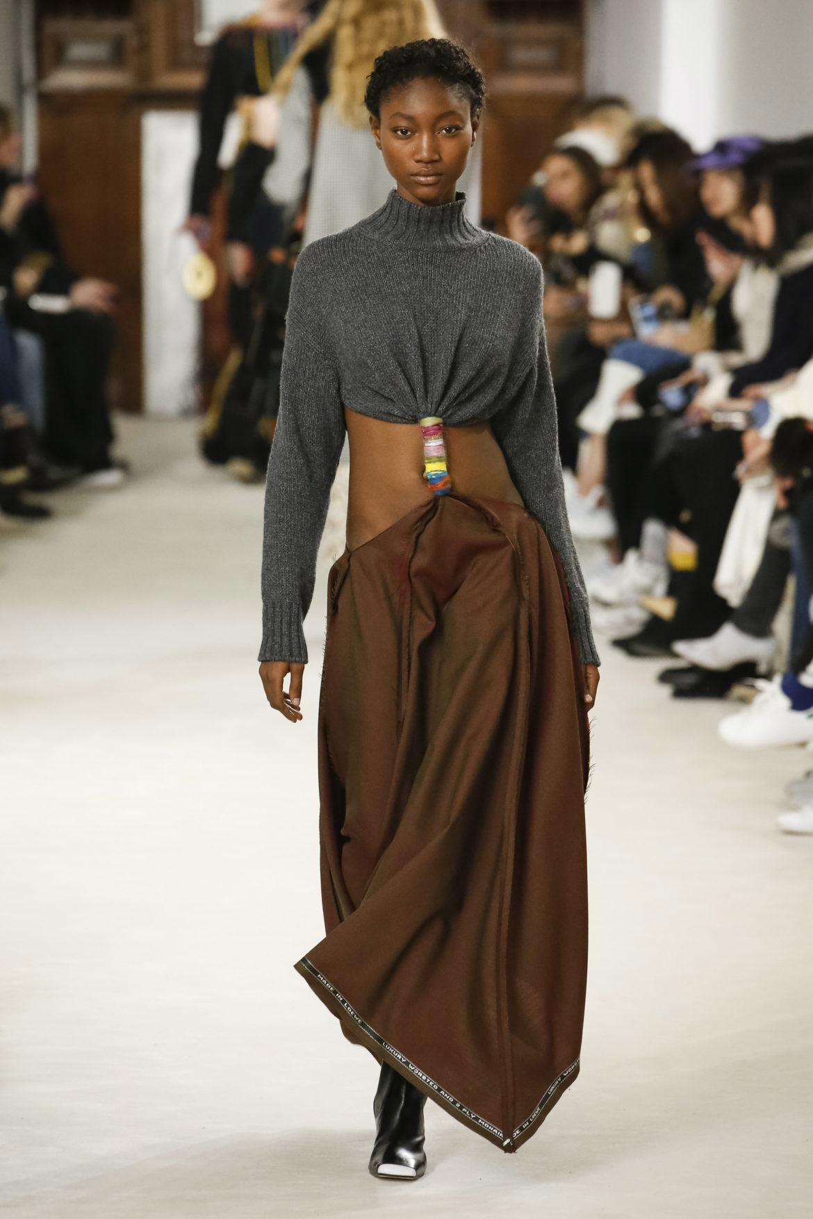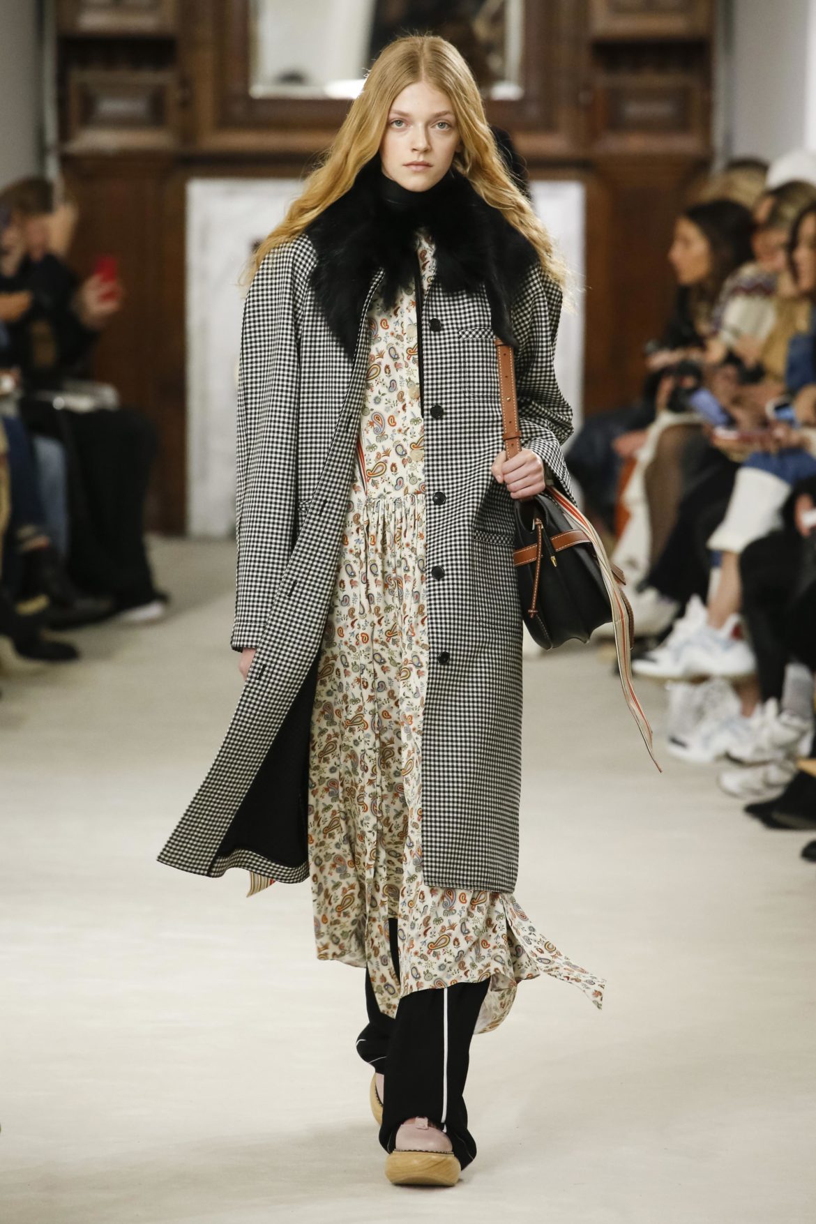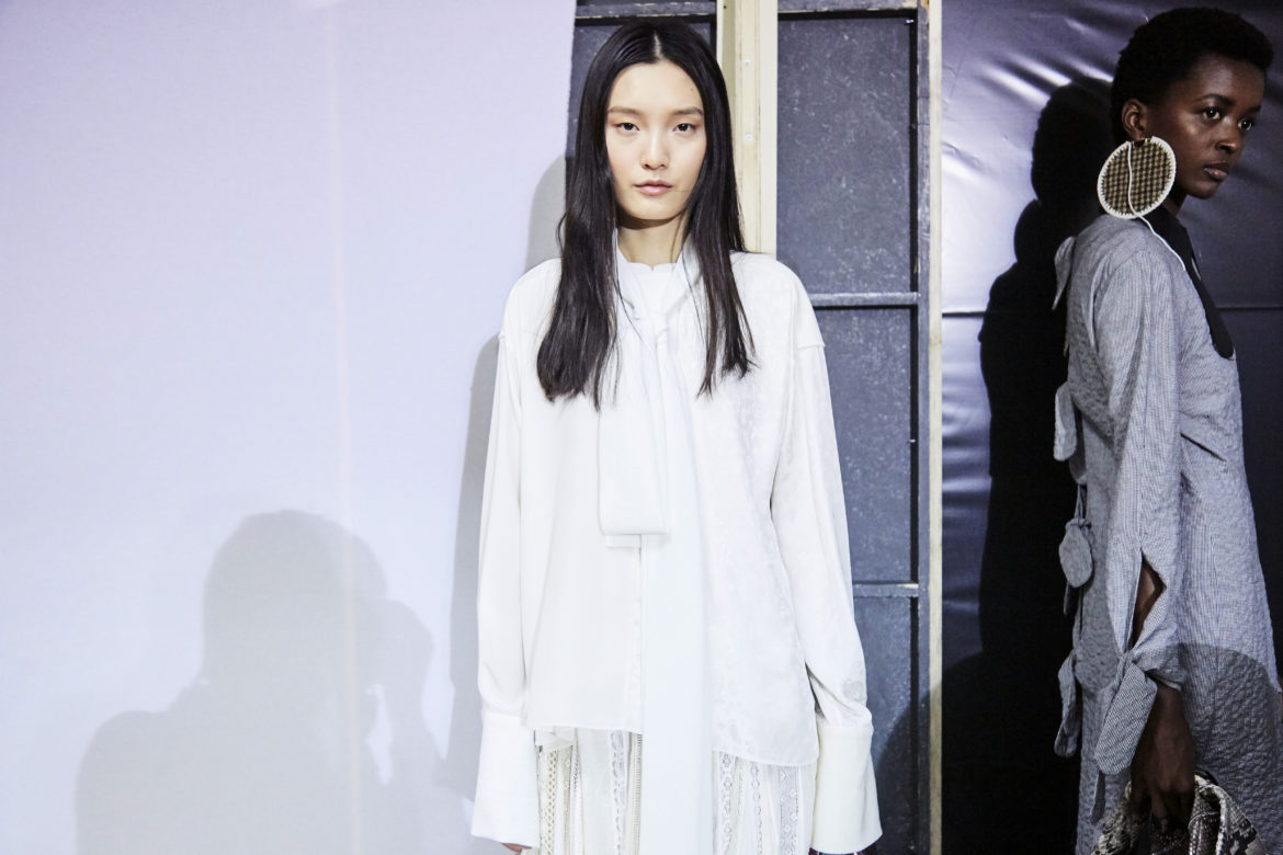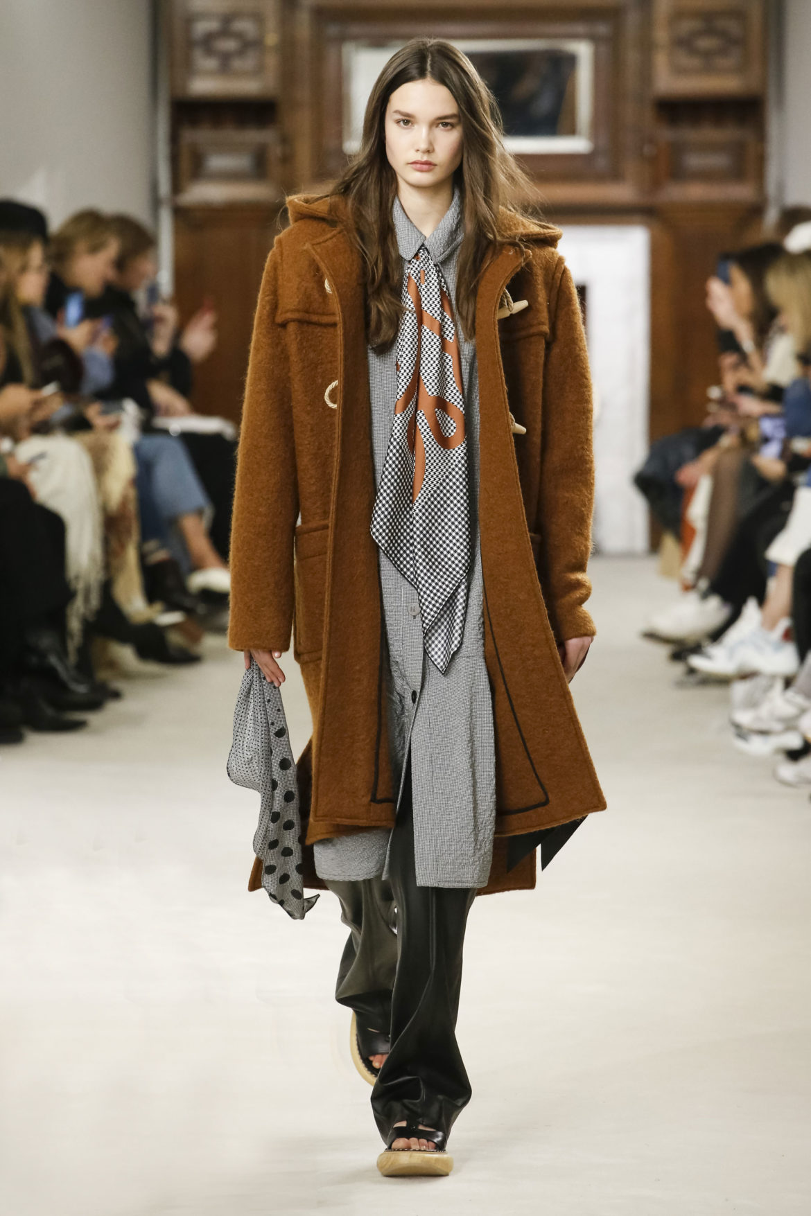 Questioning the facade of the introvert, the LOEWE Women’s Fall Winter 2018 collection designed by creative director Jonathan Anderson inhabits a pensive space where the organic meets the industrial. Disrupted by decadent moments of primitivism, austerity reigns – as shapes nod to the mid-century shifted through a contemporary lens.