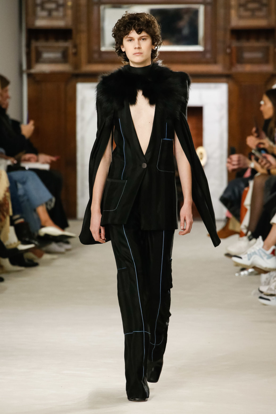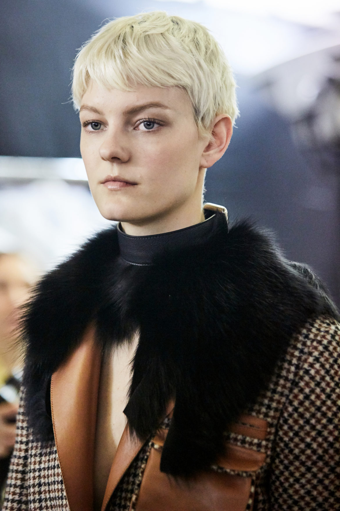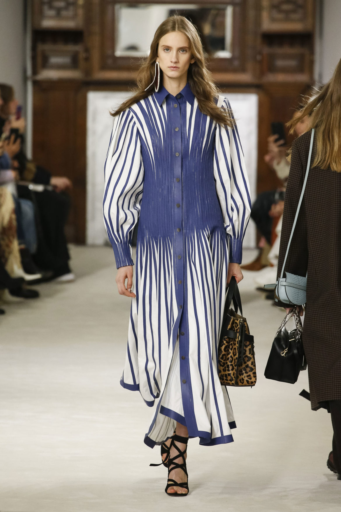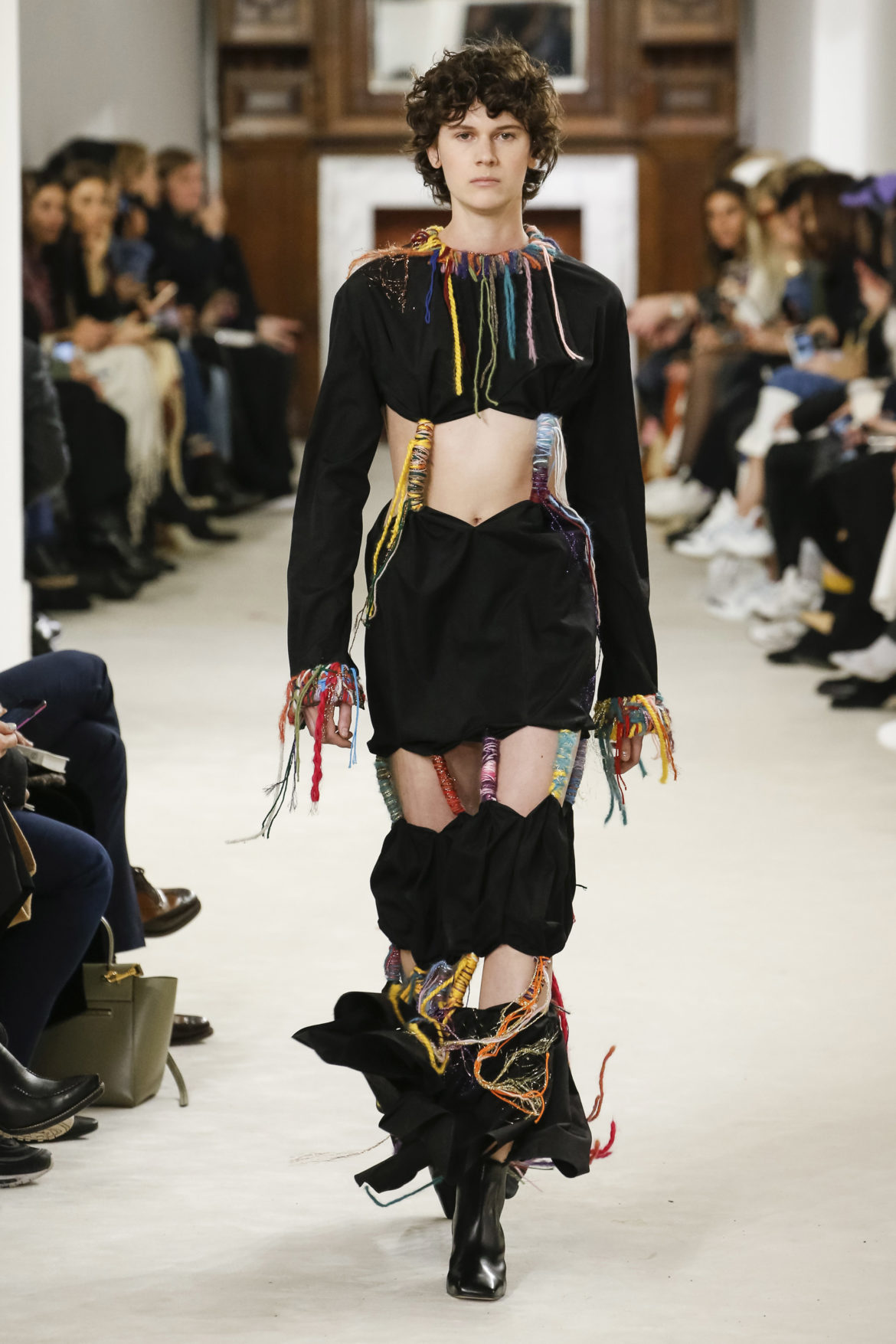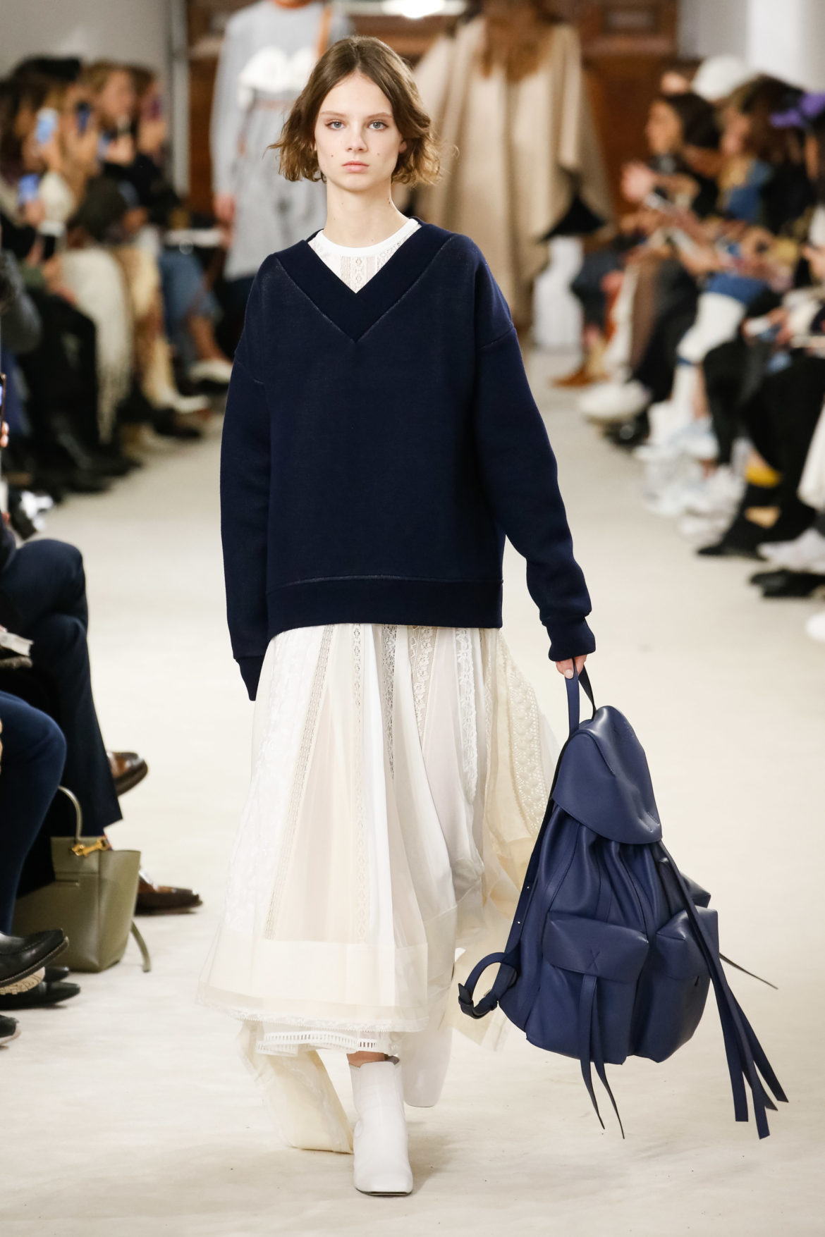 Questioning the facade of the introvert, the LOEWE Women’s Fall Winter 2018 collection designed by creative director Jonathan Anderson inhabits a pensive space where the organic meets the industrial. Disrupted by decadent moments of primitivism, austerity reigns – as shapes nod to the mid-century shifted through a contemporary lens.