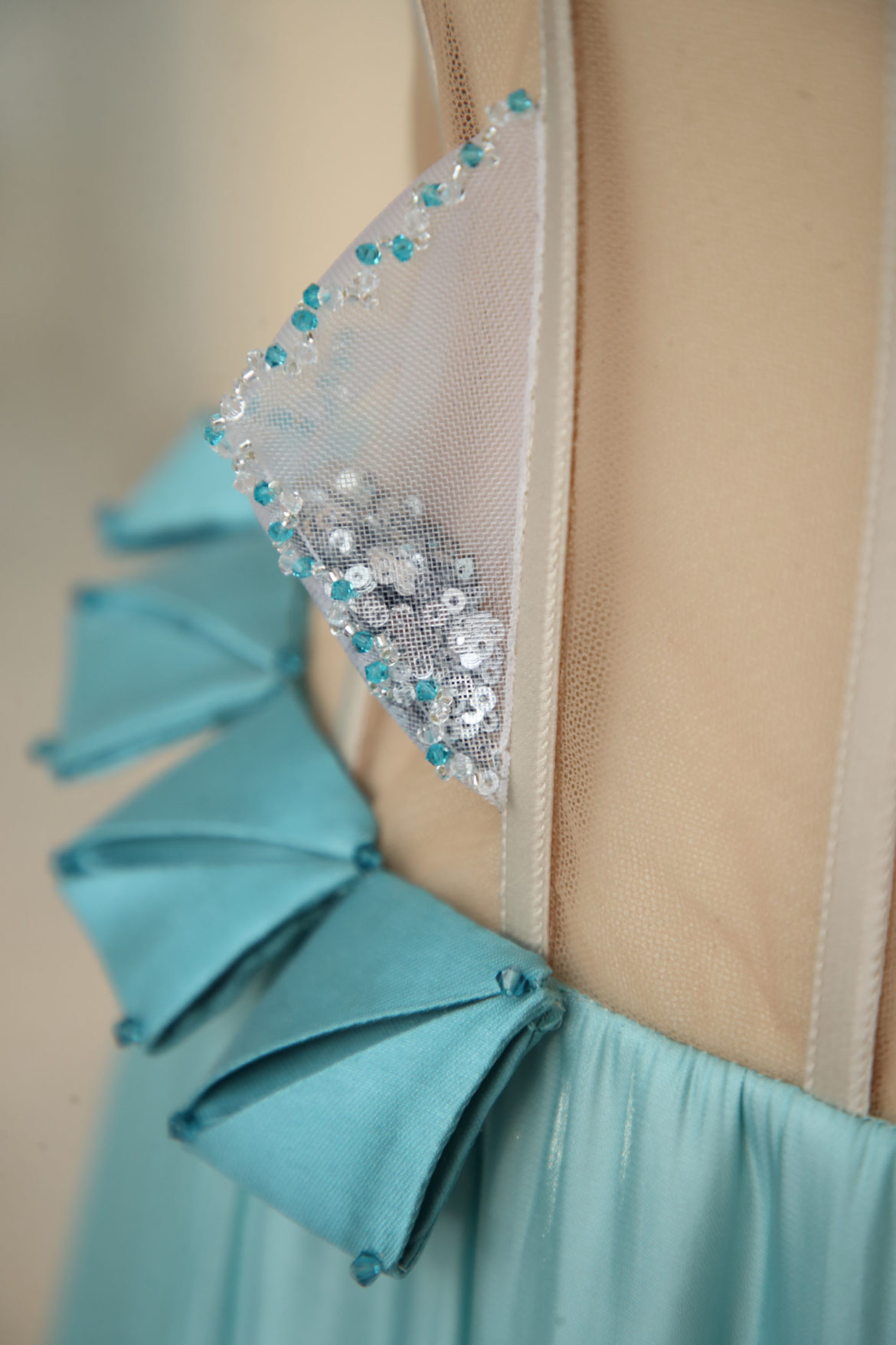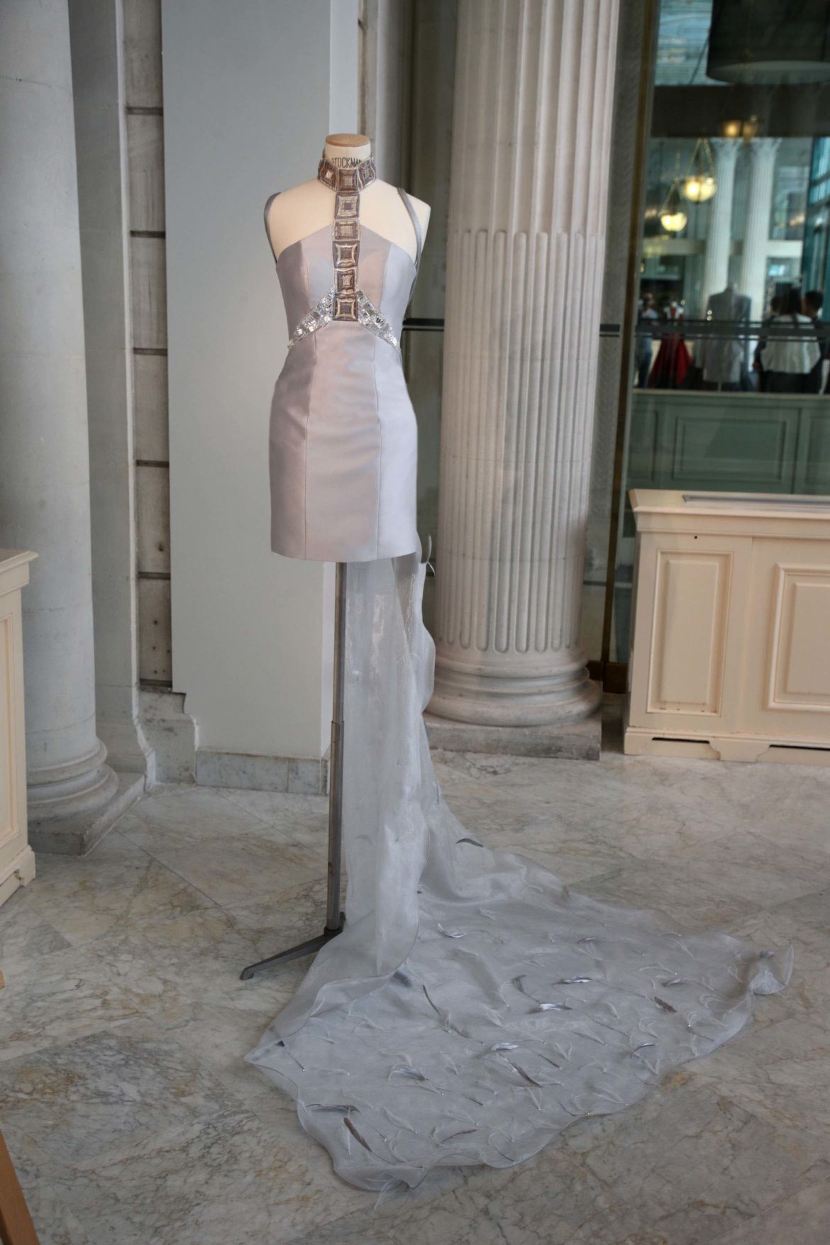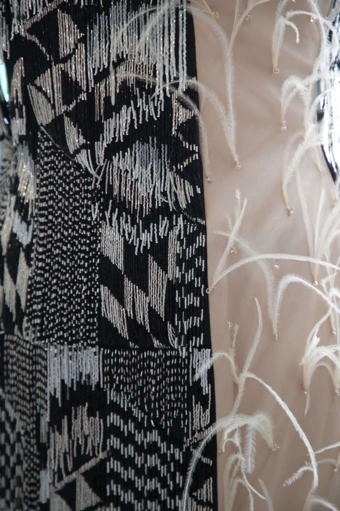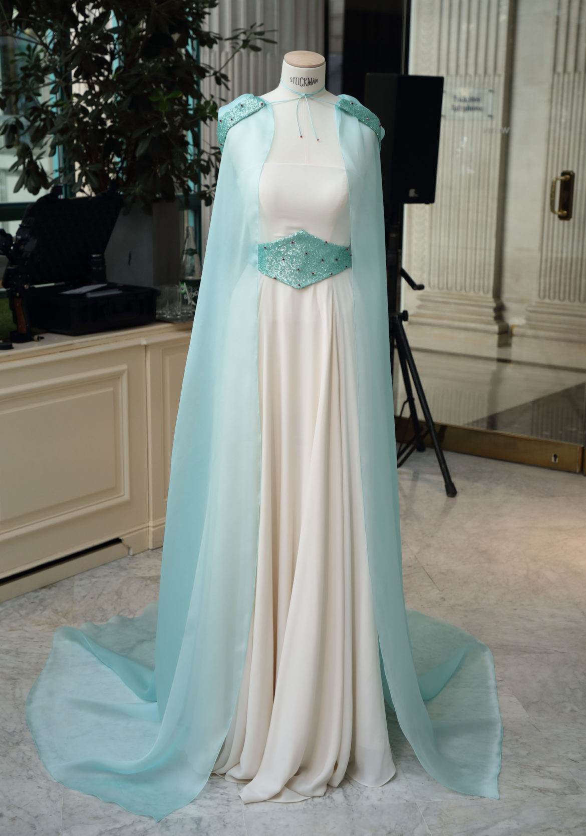 A chaotic dream merging the past with future in strong, empowering geometric shapes while featuring delicate lace, silk, crystals and feathers. Gyunel’s latest couture collection is exuberating opulence in a stunning palette of silver, grey, bronze, mint and rose gold. The feeling of power in the collection remains feminine through