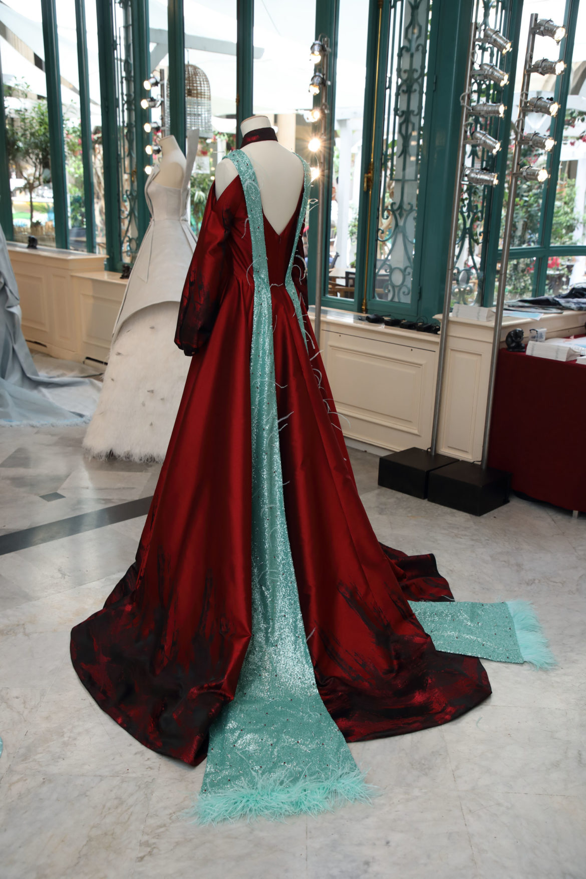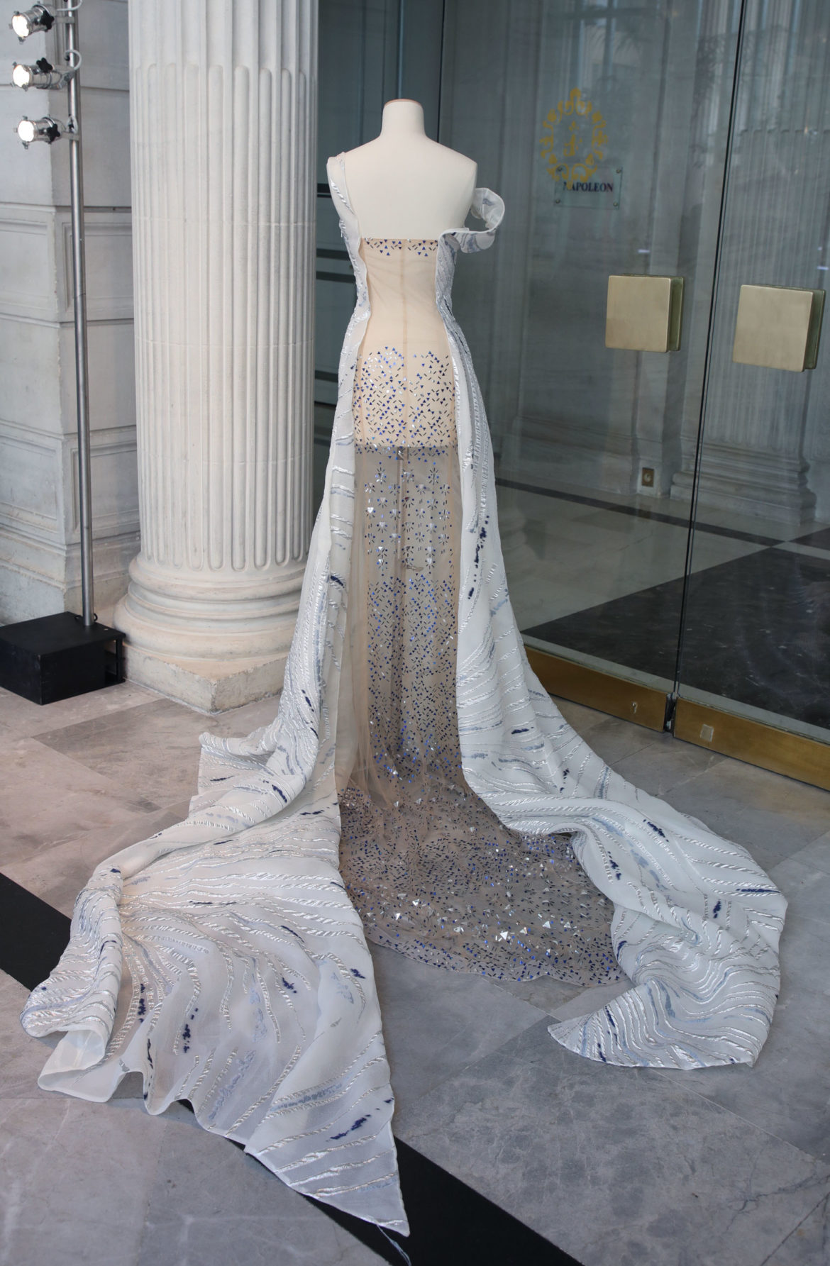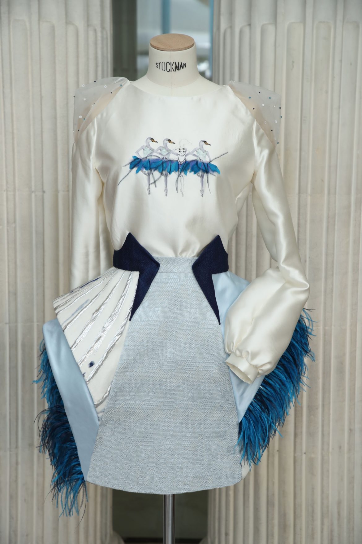 highlighting the waist with a fairytale-esque corset and princess cut gowns. Elements of deconstruction and asymmetric shapes create a 3D fantasy in reverie with déjà-vu coming to mind, while not forgetting the couturier’s signature gargoyle. This collection draws inspiration from a refusal of closure and a need for structure, while paying tribute to Gyunel’s favourite swan theme.