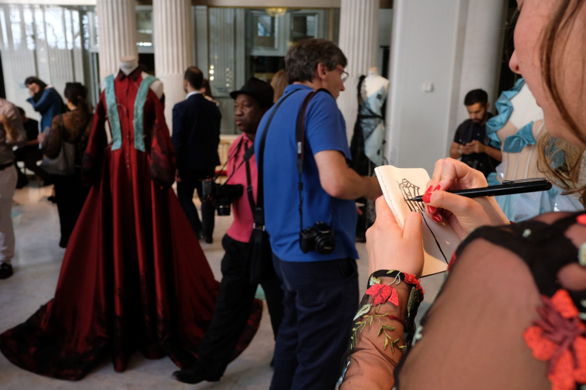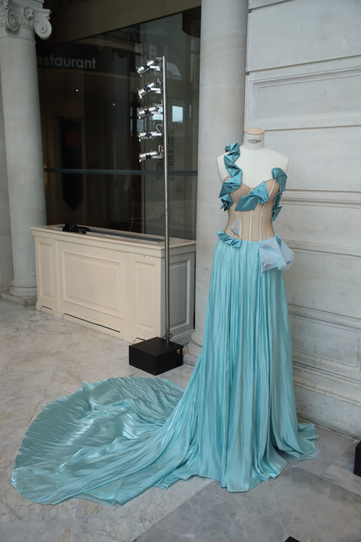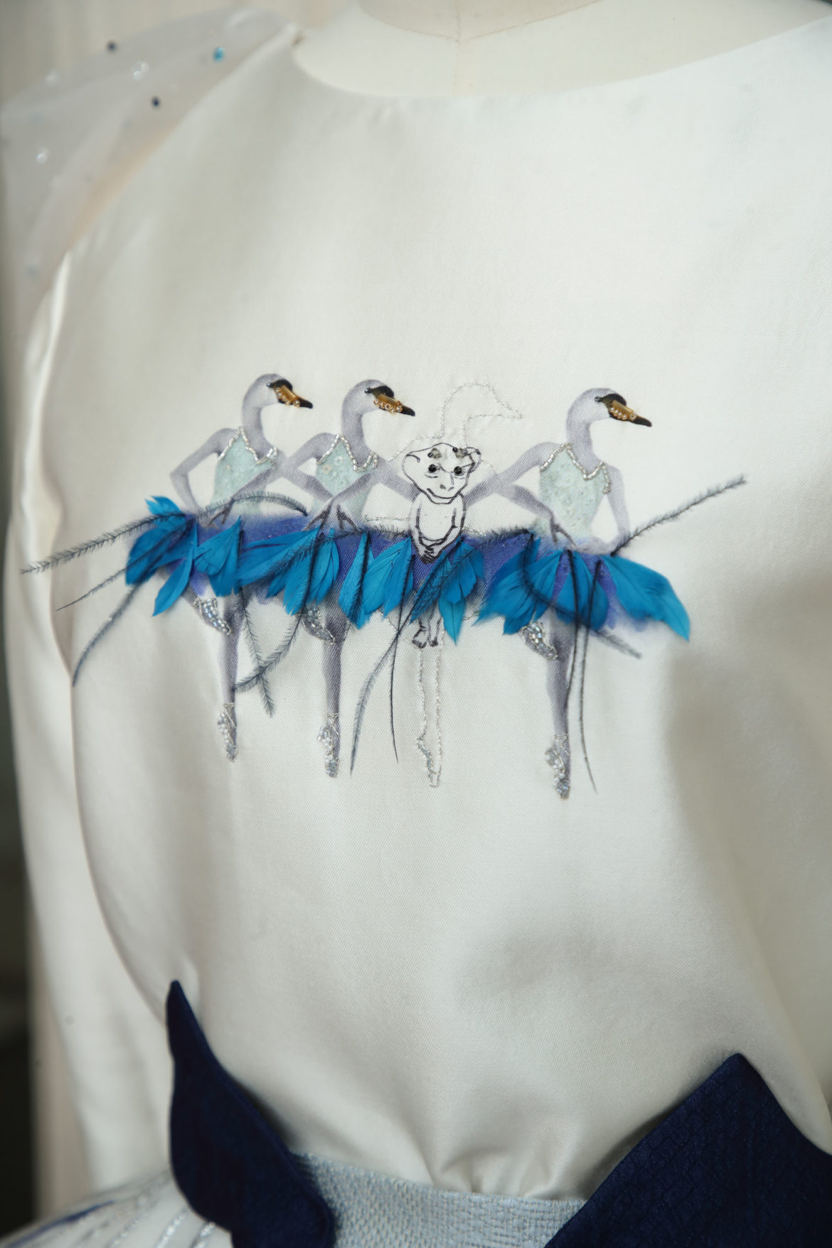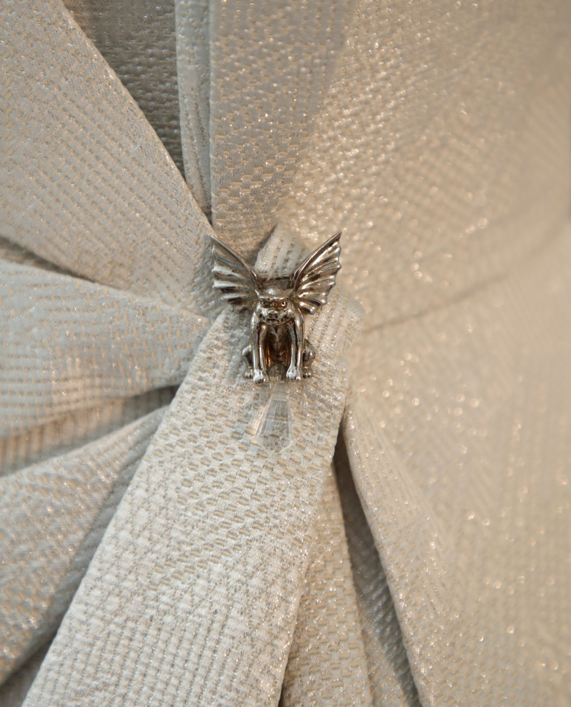 highlighting the waist with a fairytale-esque corset and princess cut gowns. Elements of deconstruction and asymmetric shapes create a 3D fantasy in reverie with déjà-vu coming to mind, while not forgetting the couturier’s signature gargoyle. This collection draws inspiration from a refusal of closure and a need for structure, while paying tribute to Gyunel’s favourite swan theme.