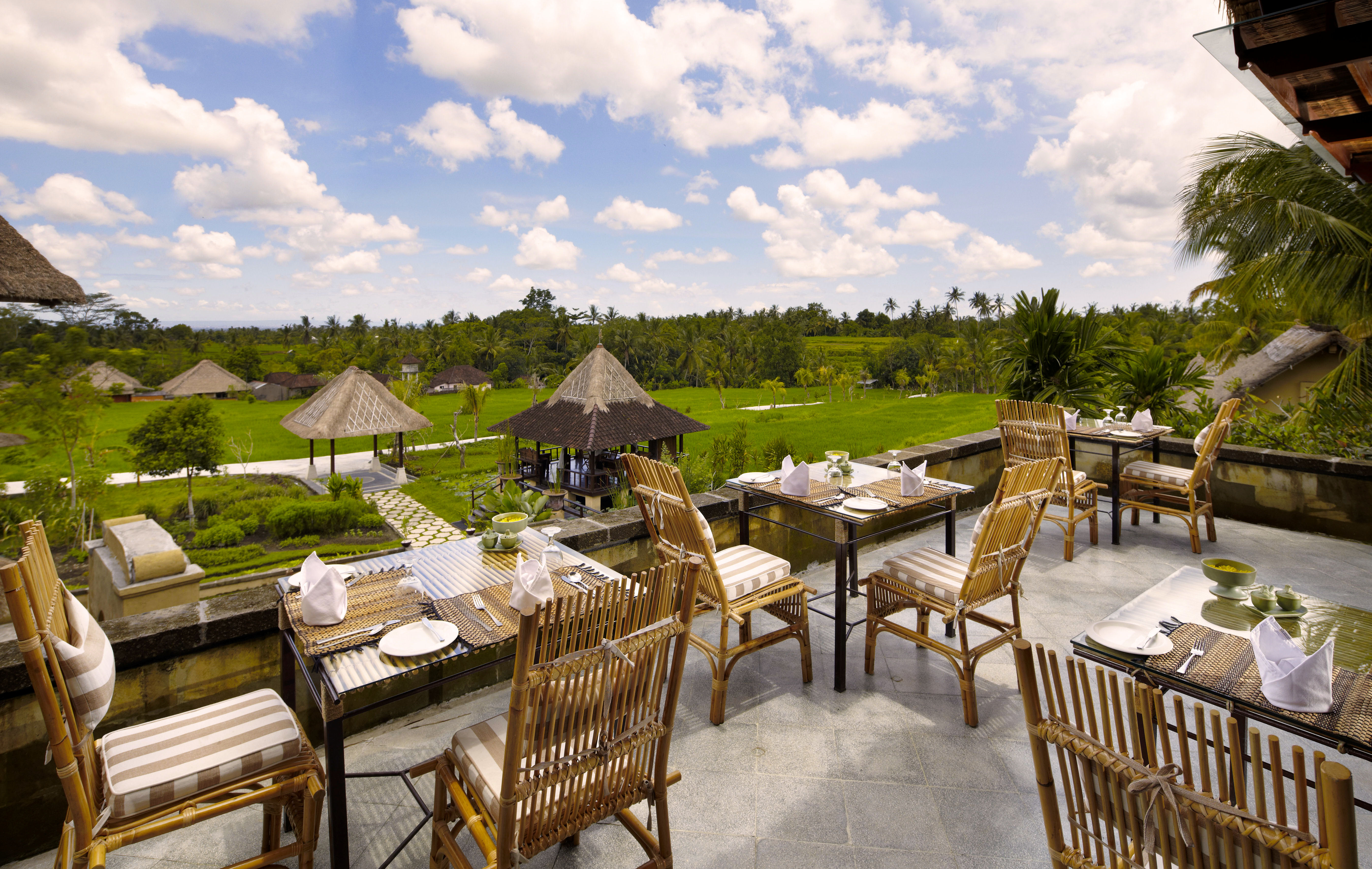 Les chambres sont aménagées dans des villas traditionnelles. Le parquet en bois et les baignoires en pierre naturelle offrent une authentique expérience balinaise. Enfin, le thé accompagné de pâtisseries locales ou le dîner dans le restaurant Padi, privilégiant la cuisine organique régionale, sont autant d’occasions de mieux connaître le patrimoine gastronomique de l’île.