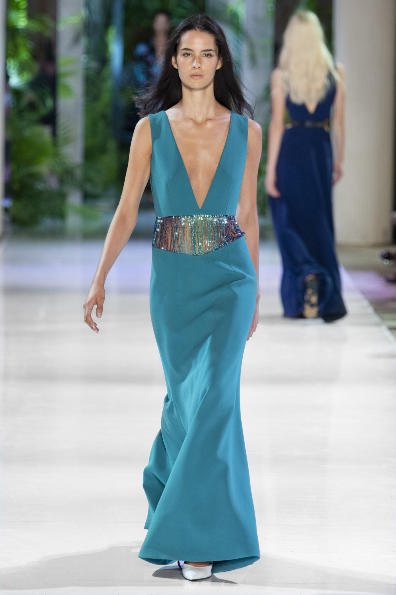 Les robes rendent hommage à l’âge d’or d’Hollywood revisité dans un exotisme épuré et flamboyant, telle la robe en