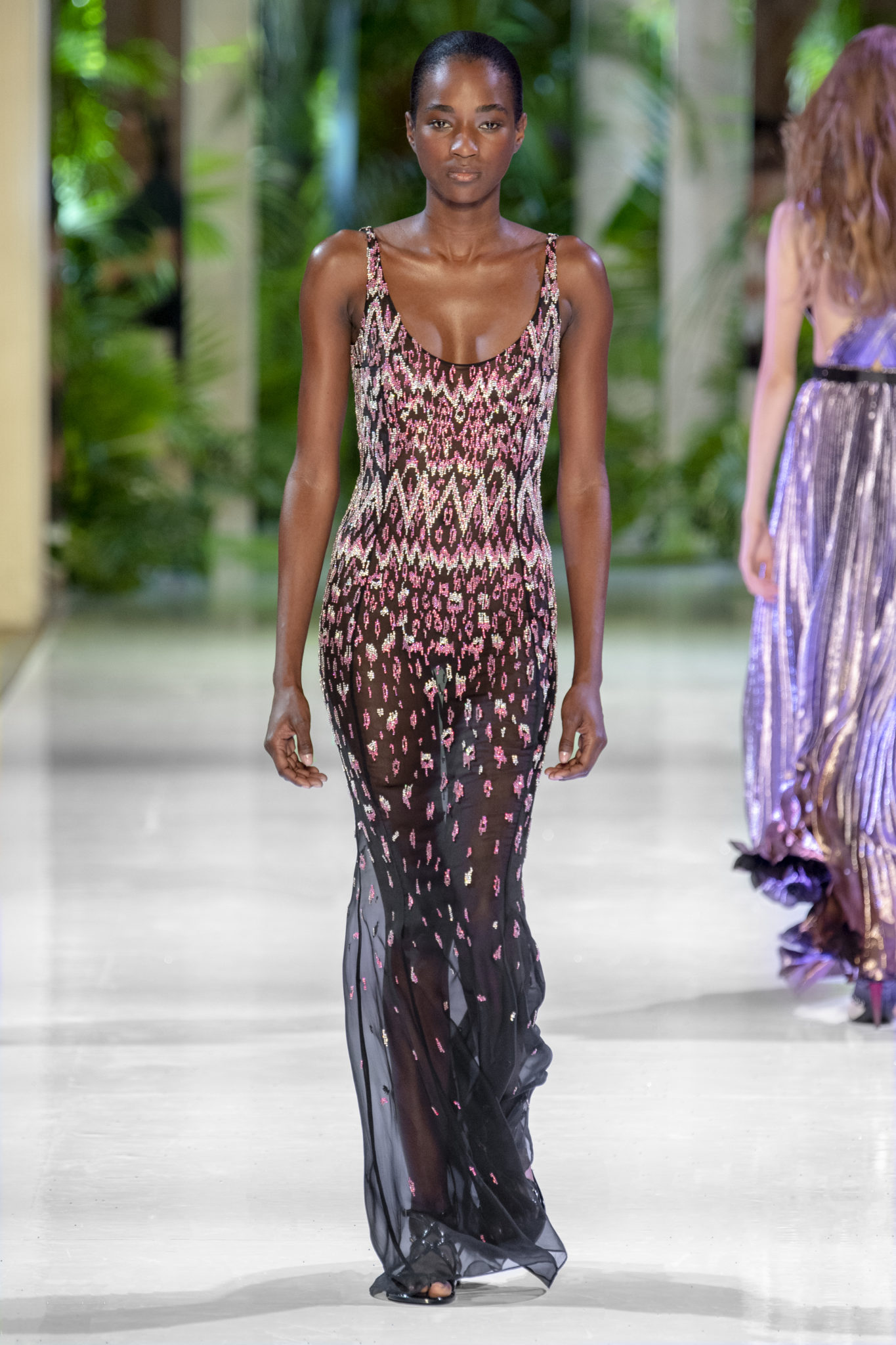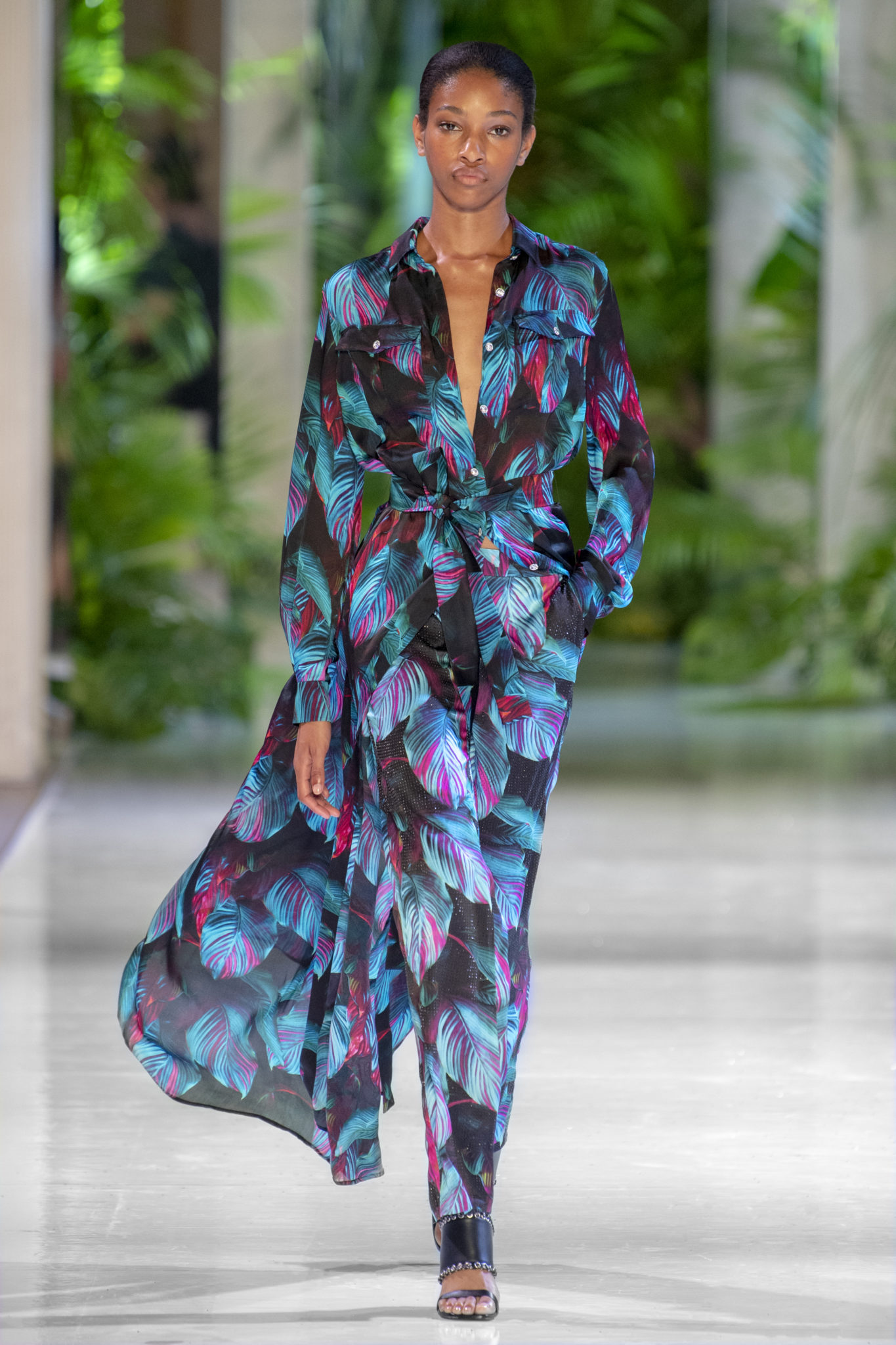 Un souffle tropical luxuriant et flamboyant sur une féminité architecturale et sophistiquée.