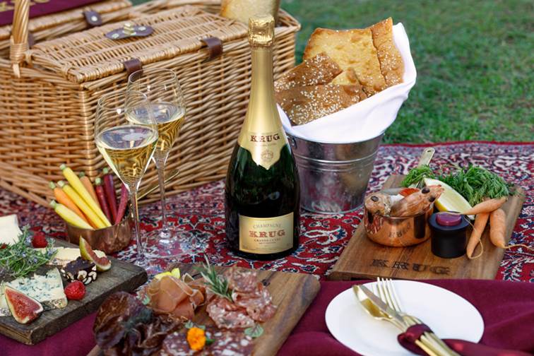 Le pique-nique Krug est parfait pour les occasions spéciales, pour le week-end romantique ou pour les amoureux de Krug qui souhaitent se livrer à un moment inoubliable et est disponible pour les clients de l’hôtel pour 560 euros par couple.