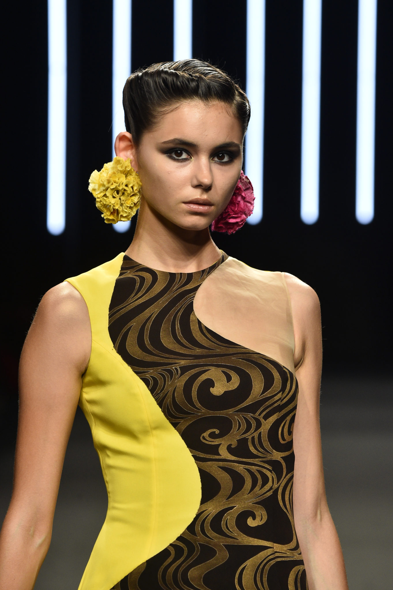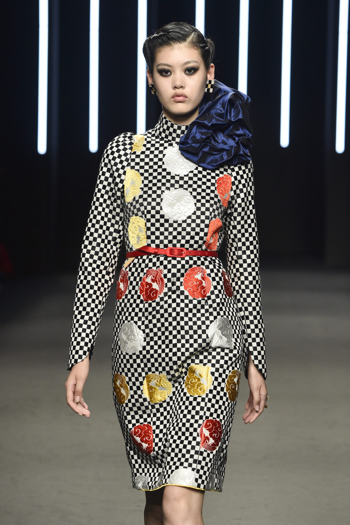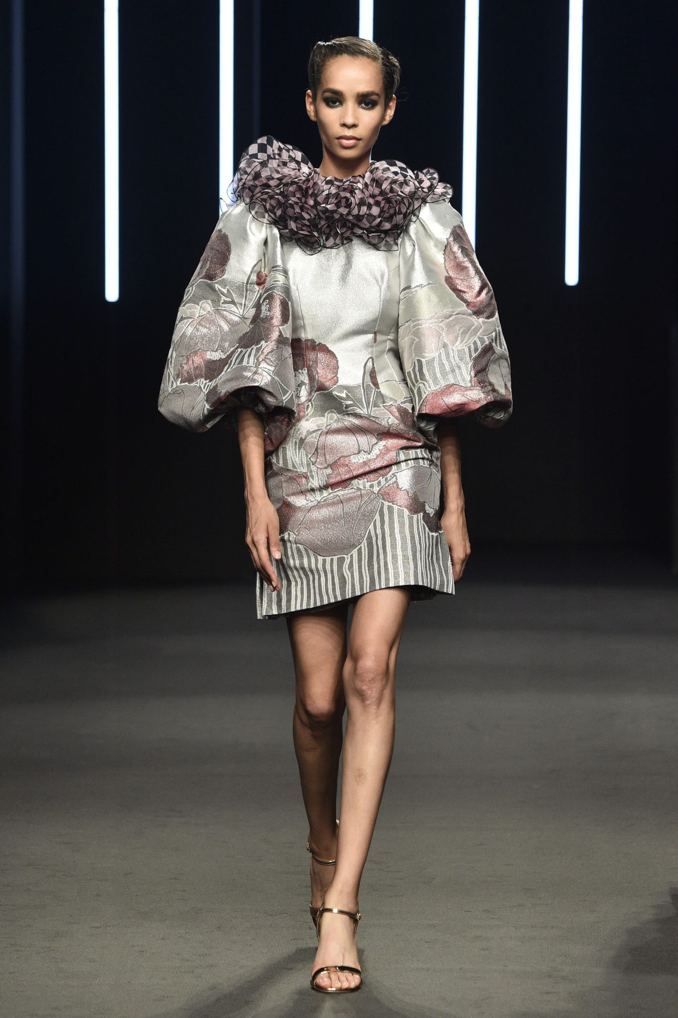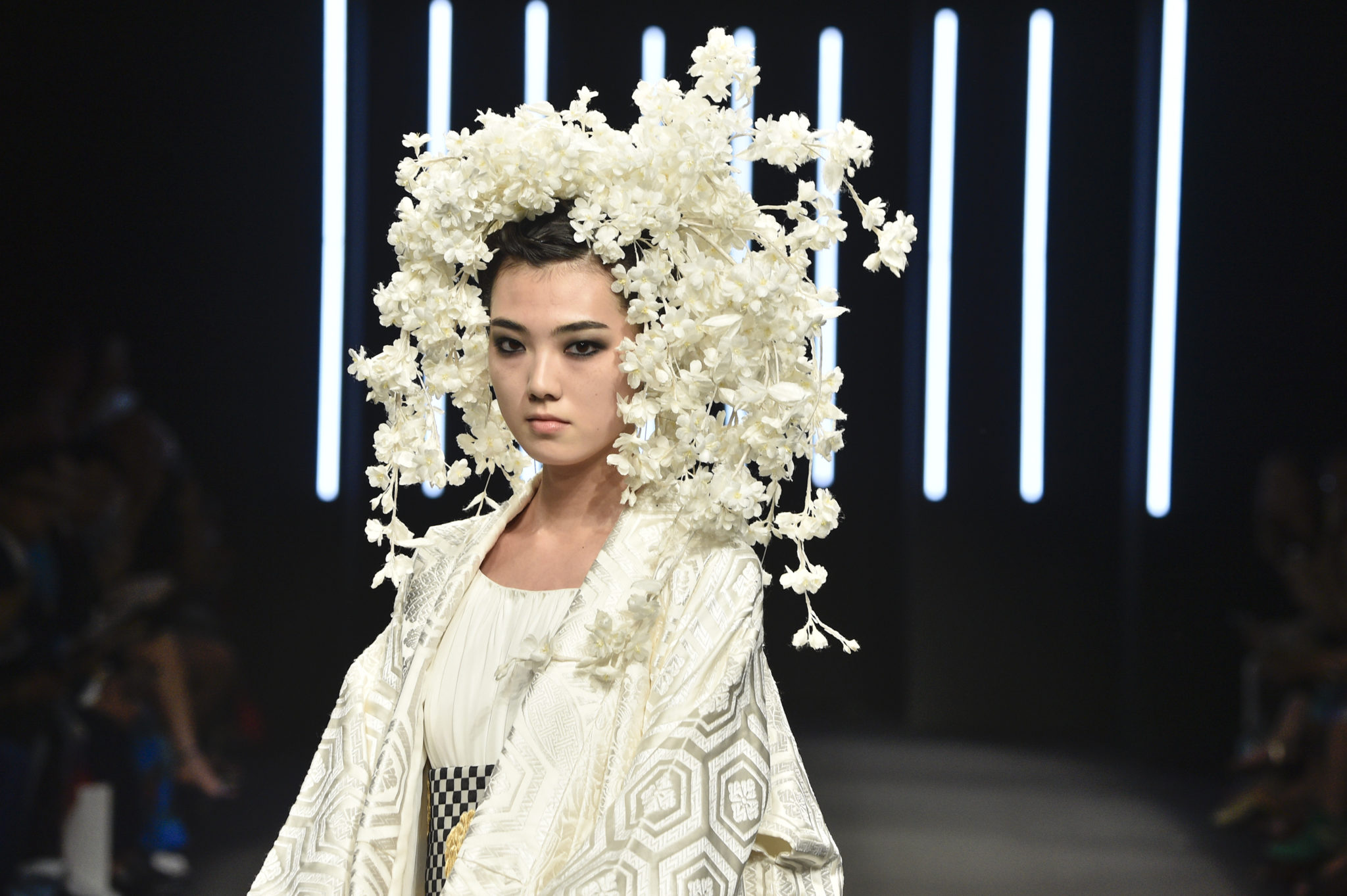 Yumi Katsura célèbre les 160 ans d’amitié qui unissent la France et le Japon en dévoilant sa collection couture Automne-Hiver 2018-2019 «La Quintessence du Japonisme». Inspirée par les grands artistes Gustave Klimt, Alfons Maria Mucha, Charles Martin et Emile Gallé, le défilé les honore en mélangeant les lignes courbes de l’Art Nouveau avec la culture du Japonisme. Yumi Katsura n’a de cesse de vouloir rapprocher les cultures en associant les techniques ancestrales japonaises, telles que le tissage Nishijin Ori et la technique traditionnelle de teinture sur soie Yuzen avec la féminité à la française, élégante, assumée et intemporelle. Yumi Katsura met à l’honneur les imprimés tels que le célèbre motif «Ichimatsu Moyo», aussi appelé «motif damier», et collabore avec l’atelier Liberty connue pour ses motifs fleuris japonais. Les matières sont précieuses, naturelles et traditionnelles, associant des couleurs audacieuses mêlant l’Orient et l’Occident. L’alliance des couleurs et des détails donne une dimension joviale et majestueuse à la collection. Yumi Katsura confirme son attachement au savoir-faire français et à son héritage japonais.