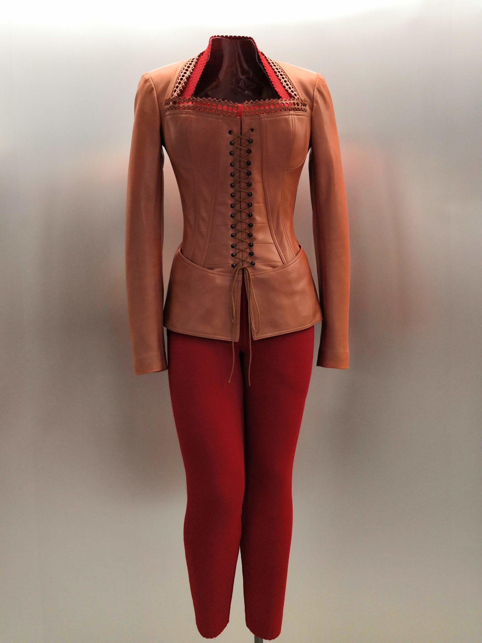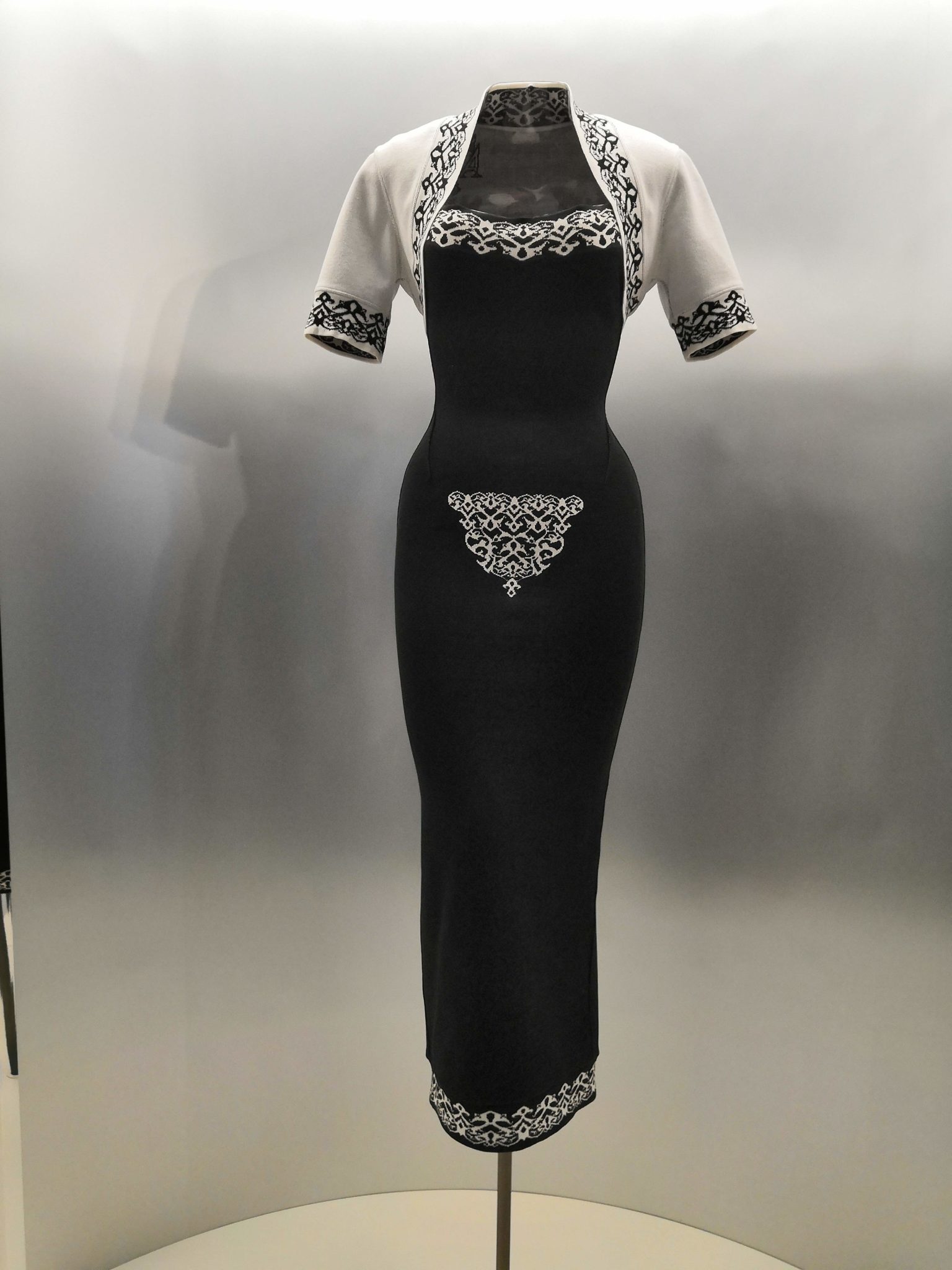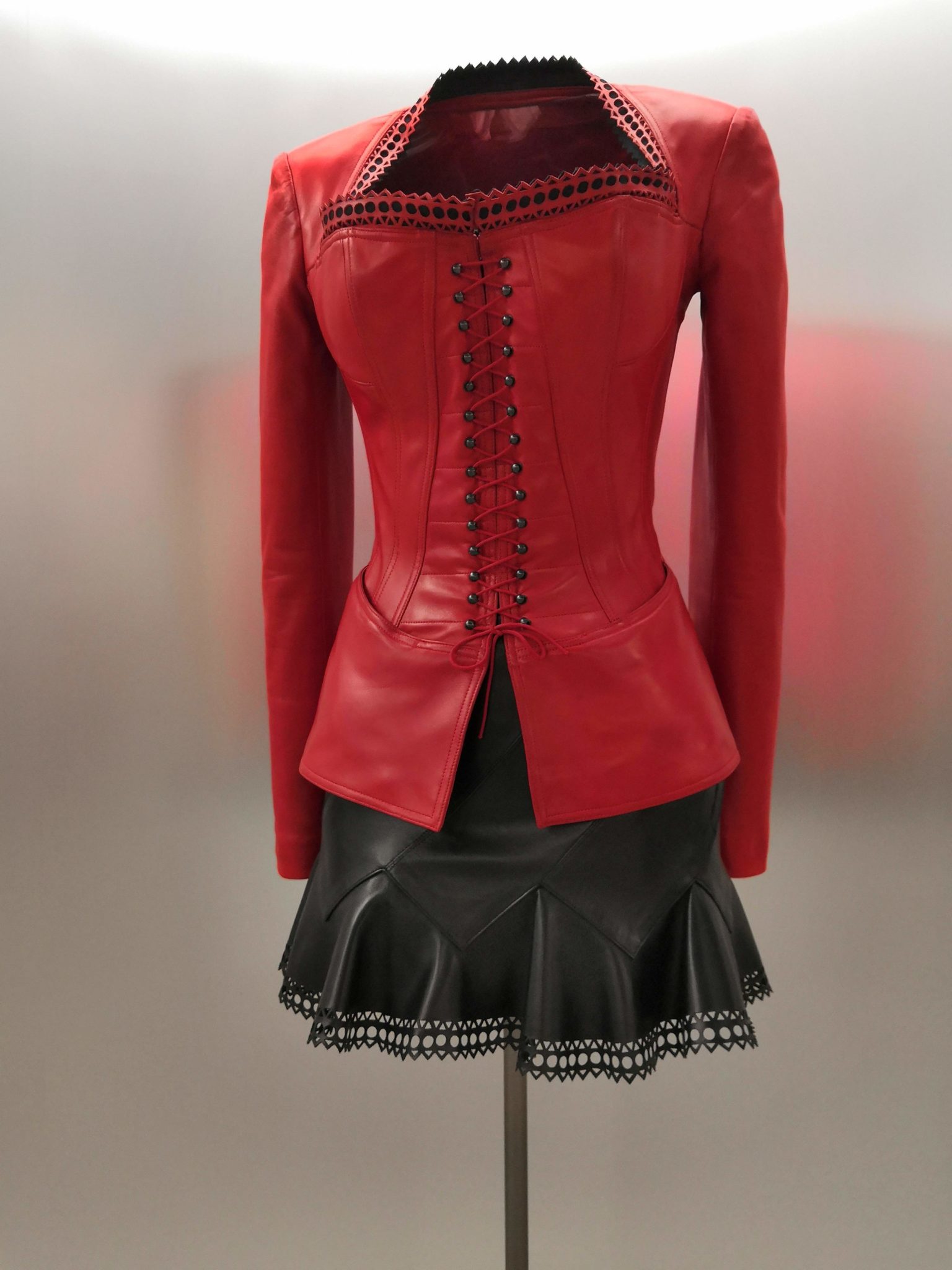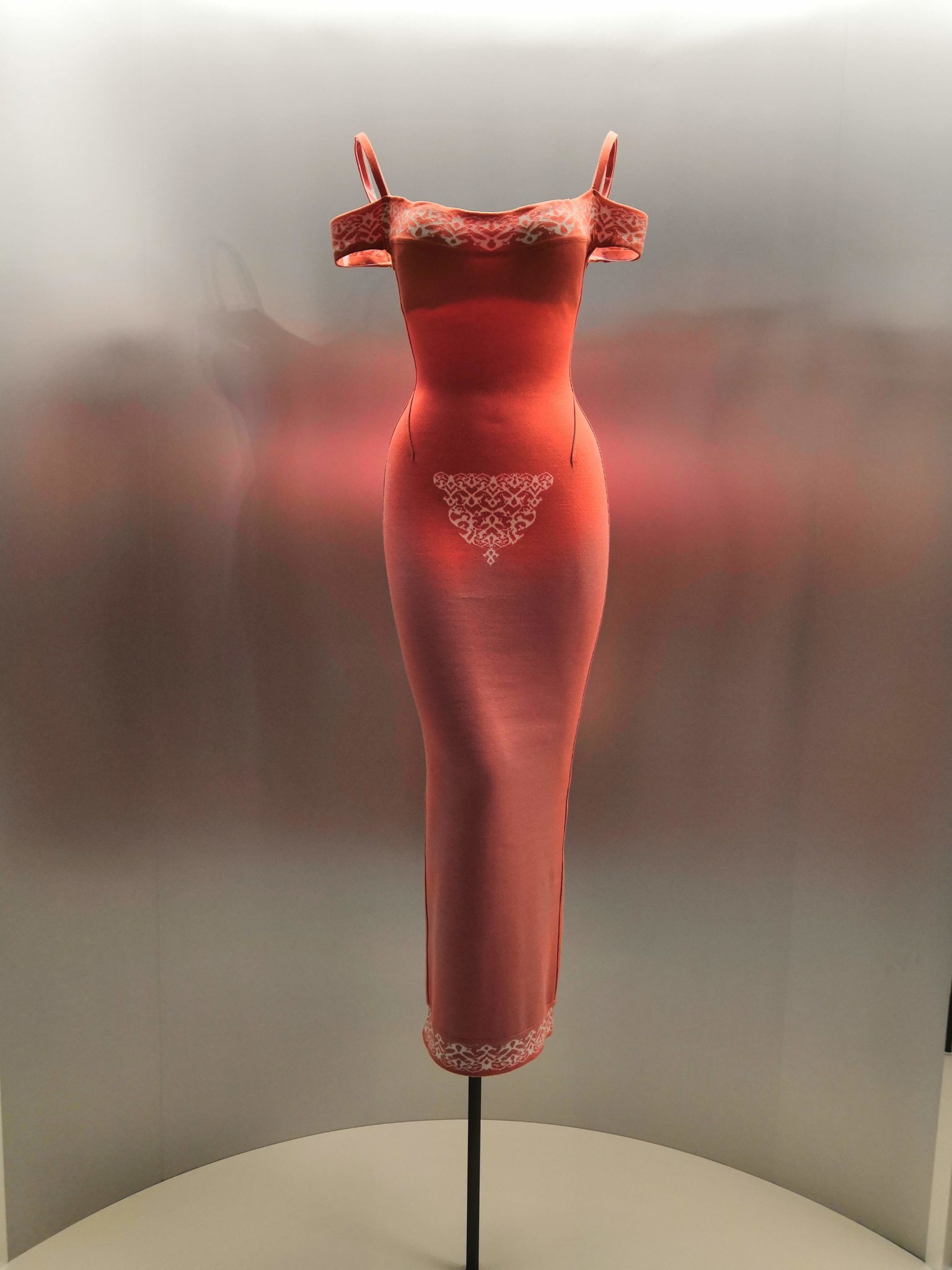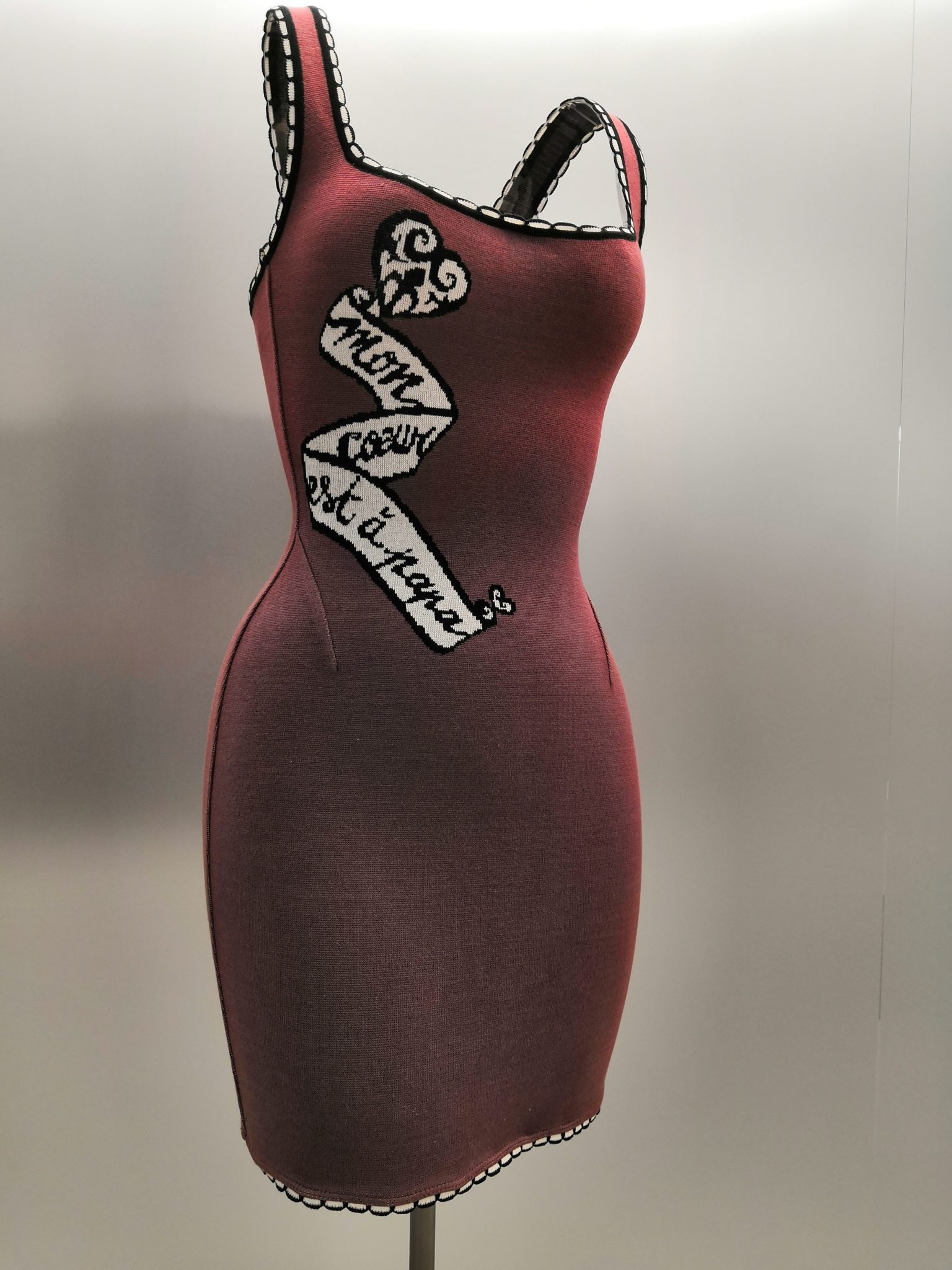 En 1991 Azzedine Alaïa s’installe avec Christoph von Weyhe au 18 rue de la Verrerie. L’année suivante, la collection printemps-été 1992 est la première qu’il conçoit dans ses nouveaux espaces. Elle est faite de références à la Marquise de Pompadour et à la cour de Versailles. Elle est aussi l’une des plus importantes que le couturier ait jamais créées. Le défilé ne compta pas moins de 115 passages. Sous des jupes longues et étroites, les broderies anglaises bordent les ourlets, soulignent les revers d’une veste et les coupes rigoureuses, elles ourlent les jupes courtes et les balconnets pigeonnants. Mais c’est avec le cuir qu’il donne l’interprétation la plus étonnante de sa vision de la grande mode du XVIIIe siècle. Perforée, dentelée, la matière brute devient dentelle et forme des bustiers, des ceintures et des corsets qui soulignent les tailles. Sur des robes en maille, il pose des motifs d’entrelacs là où s’arrête le regard, ou des rubans en trompe-l’œil ornés d’un “mon cœur est à papa”, un tatouage doux pour des robes aux décolletés audacieux.