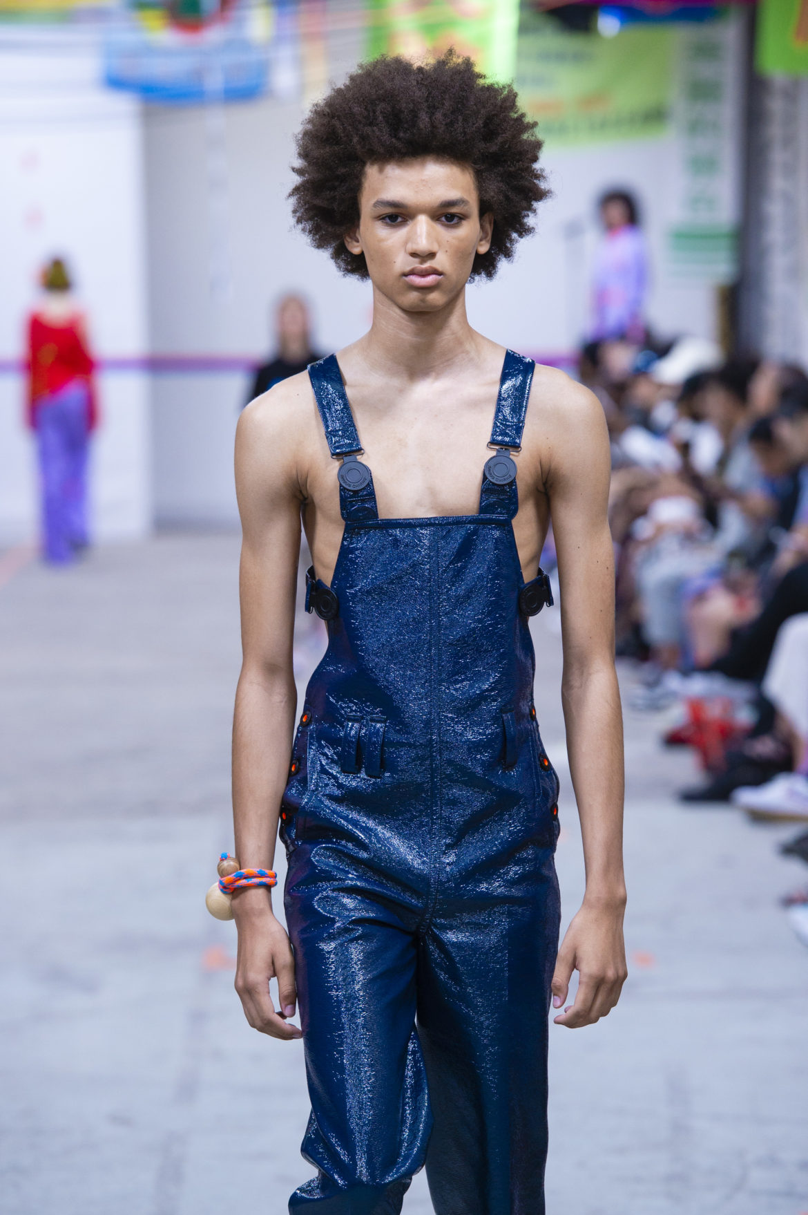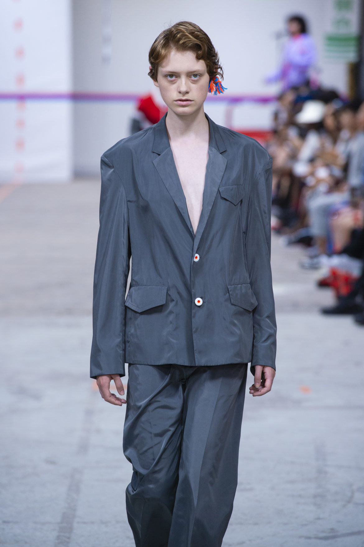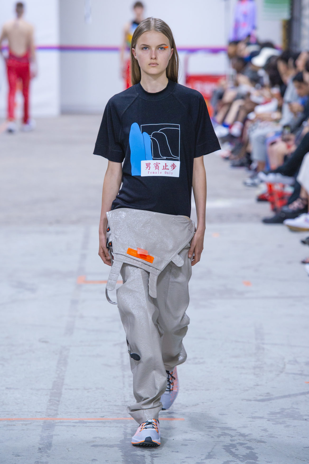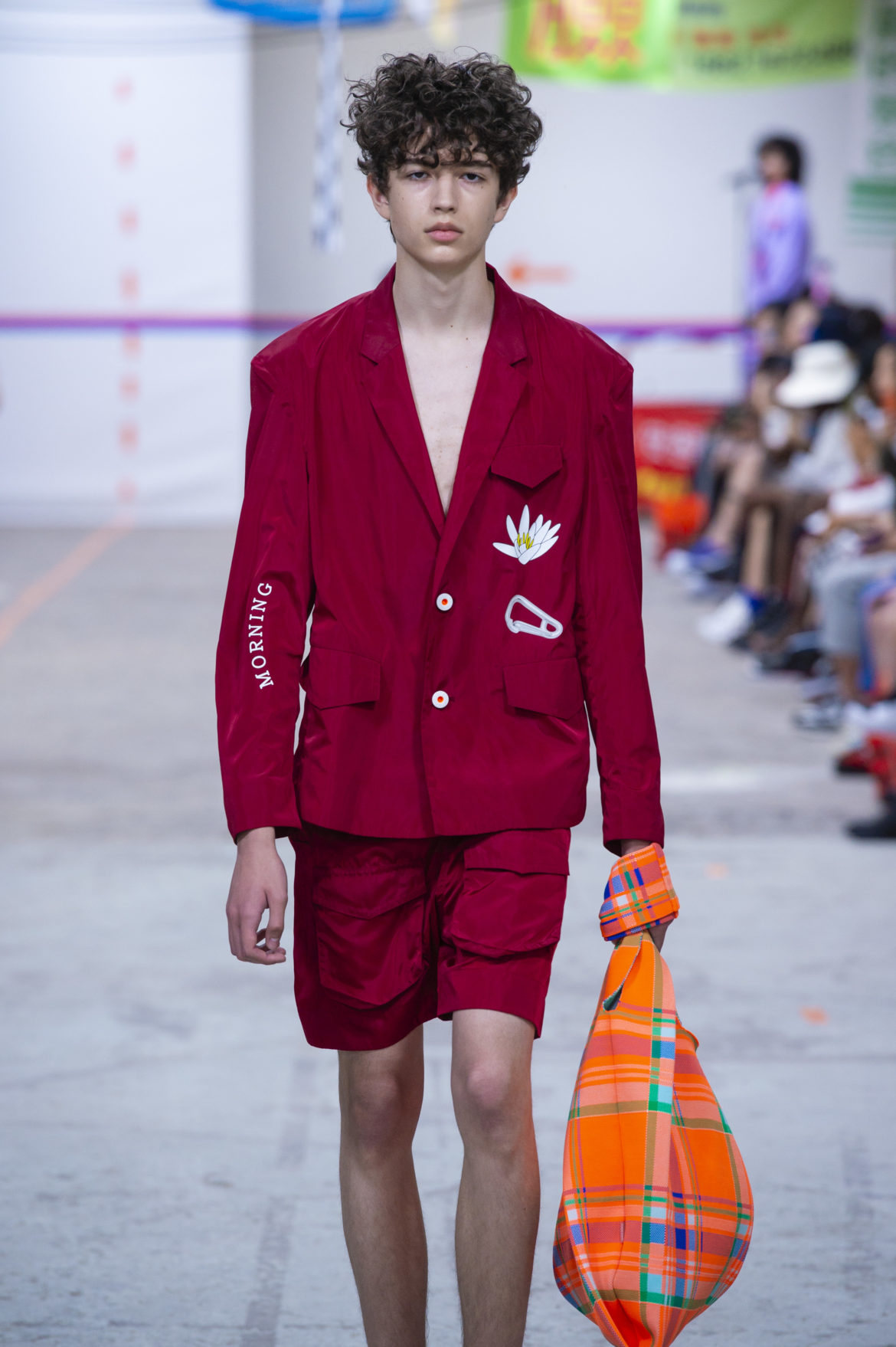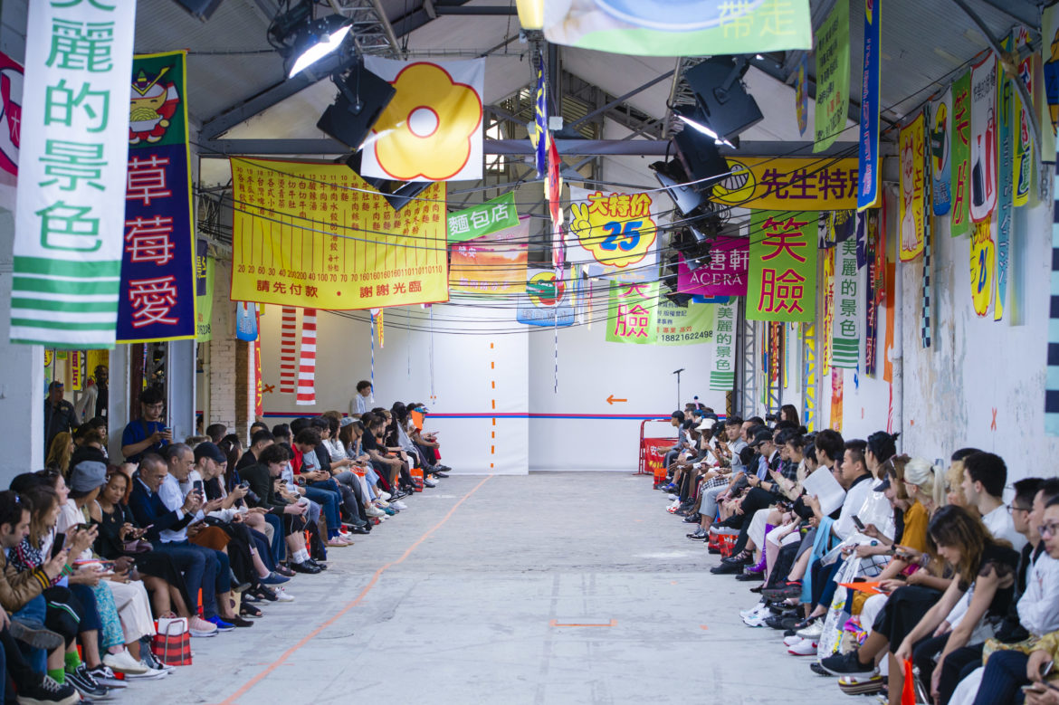 Angus Chiang’s SS19 collection focuses on the older generations preserved idea of city life. This image revolves around street art in Taiwan’s city corners known as the ‘transformer box’. The ‘transformer box’ holds much ambiguity within Taiwan, with many feeling that the presence is a hindrance whilst others argue that it allows an ageless, creative freedom. Aesthetics from each era compete with one another; each poster is patch-worked with something new, creating a masterpiece that precedes generations. Angus Chiang uses this to create a collage of Taiwan. The SS19 collection attempts to understand each individual’s story whilst viewing a new generation coexisting within an old. Looking at the everyday clothing of Aunts and Uncles at the local community centre, polo shirts, cropped pants and fake two pieces tops are reimagined in fun, youthful concepts. Chiang uses a hemming technique to interpret unruly lines and silhouettes. Through SS19, Chiang obscures gender, adding typically female elements such as strapless, backless and flounce into his collection and ‘breaking conventional wisdom’. The soft, warm, core colour comes from landscape paintings on ‘transformer boxes’. Chiang also creates a three-dimensional element through his use of denim and transparent fabric. Chiang not only explores the theme of spirit, but also has a strong focus on durability for SS19, adding leather and a plaid-print, materialized from 100% paper. Shoes are based on elders’ favorite cheap, plastic slippers and leather sandals. Combining the brand’s classic loafers and selected Leather, Chiang reinvents a fashion shoe for the elders through a fun and lively perspective. Classic pieces are re-announced in SS19, such as elastic band and outdoor climbing rope. The Taiwanese theme of ‘all in one’ also becomes a main design concept in which native’s are known to mix and match. SS19 introduces the multifunctional accessories through the ‘glasses necklace’ and ‘sling earrings’. Chiang’s SS19 collection is a multi-generational nod to Taiwanese culture. Notes to Editor As a further expression of Taiwanese culture, ANGUS CHIANG has worked with popular local brands: Wang De Chuan, PineApple Hill and Acera. Wang De Chuan’s Jinxuan Anshang Oolong Tea, PineApple Hill’s pure Chiayi pineapple cake and Acera’s yellow ceramic travel mug are placed together in the « Taiwanese Ga Ji La » retro bag echoing a warm-hearted and gift giving culture. Additionally, continuing the brands year’s fifth season, January Paris Fashion Week and March’s collaboration with NIKE at Shanghai Fashion Week, ANGUS CHIANG has selected NIKE EXP-X14 to echo with the main theme and add highlights to the show. Credits Taiwanese artists and National treasures: Jui-Chin Chiu and Wang-Hao Chang have both played a pivotal role in ANGUS CHIANG’s SS19 collection. Chiu is an artist who paints on transformer boxes and is the only Taiwanese citizen invited by the Swiss Alpine Museum to paint the transformer boxes in Bern, Switzerland. Chiu’s landscape paintings inspired the colours and reinterpretation seen throughout Chiang’s SS19 collection. Chang, who is often known as ‘information Grandpa’ for his work, teaching elders in local communities to use computers has lead groups of elders to create unique greeting graphics. Through this, Chang is narrowing the generation’s age gap. For SS19, ANGUS CHIANG will introduce a new music style, working with Taiwan Golden Melody Awards nominated Hip-Hop, Jazz Band, LE037+SOSS and Soul, Jazz vocalist 9m88. The SS19 catwalk will include a live performance by 9m88. Taiwanese artist, John Yuyi, is known for her unique tattooing. As SS19’s guest visional stylist, Yuyi will convey a different level of conflicting aesthetics through her distinctive perspective and taste. 9m88 and John Yuyi’s participation in the SS19 catwalk show creates a new-generation reunion, in which the former classmates have come together to complete SS19’s core concept and showcase the collaborative work of past generations.