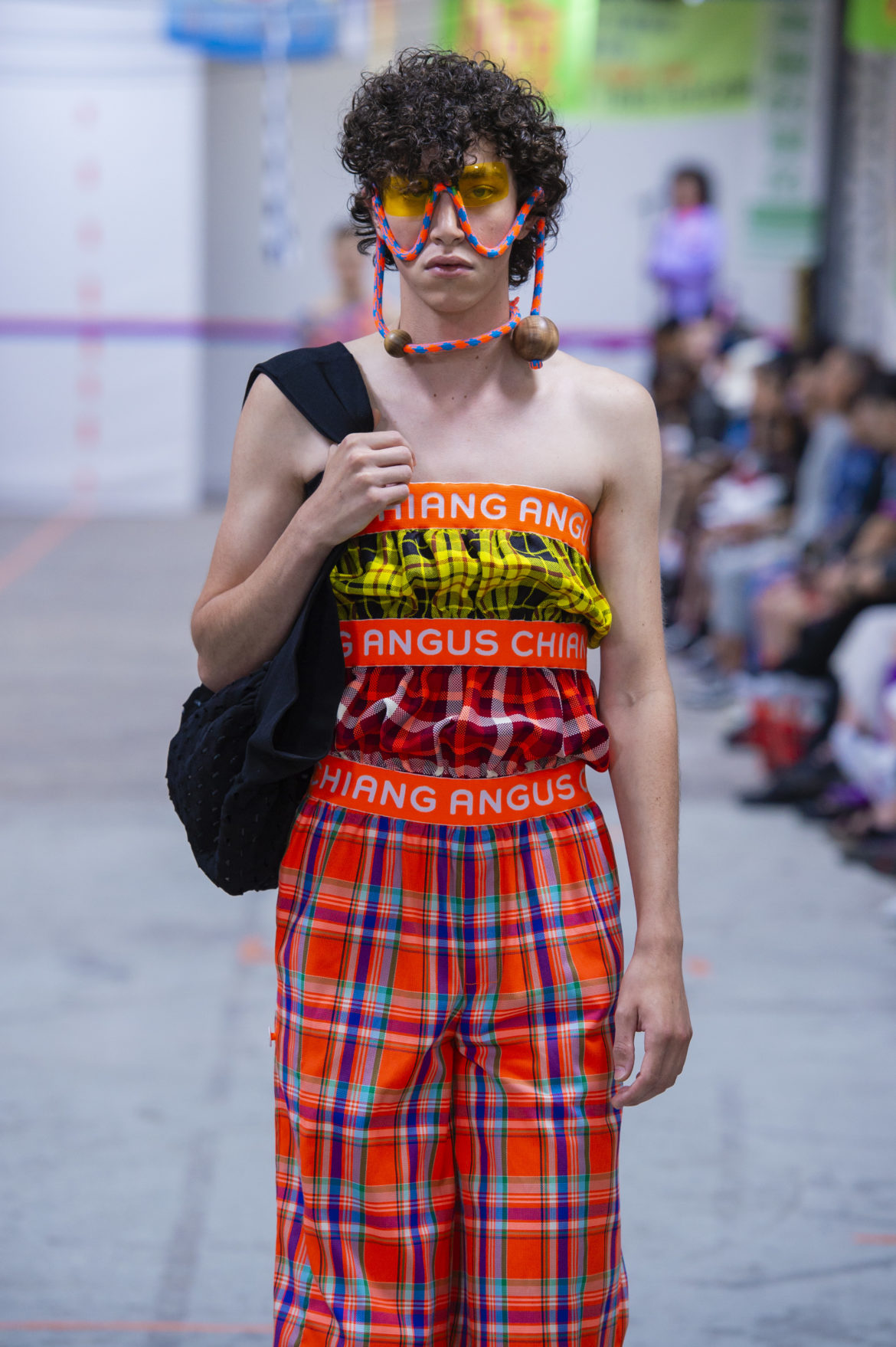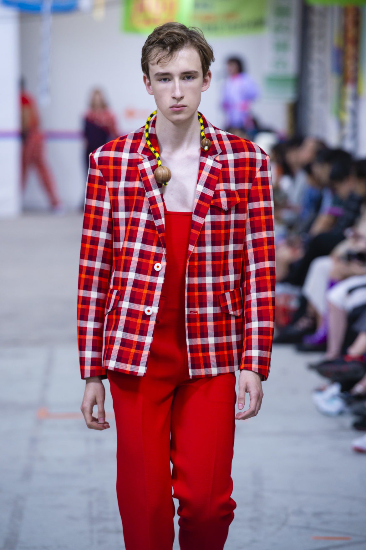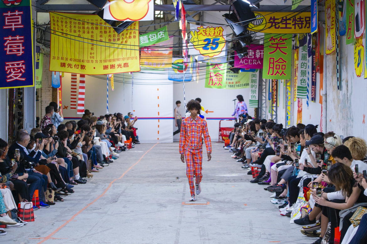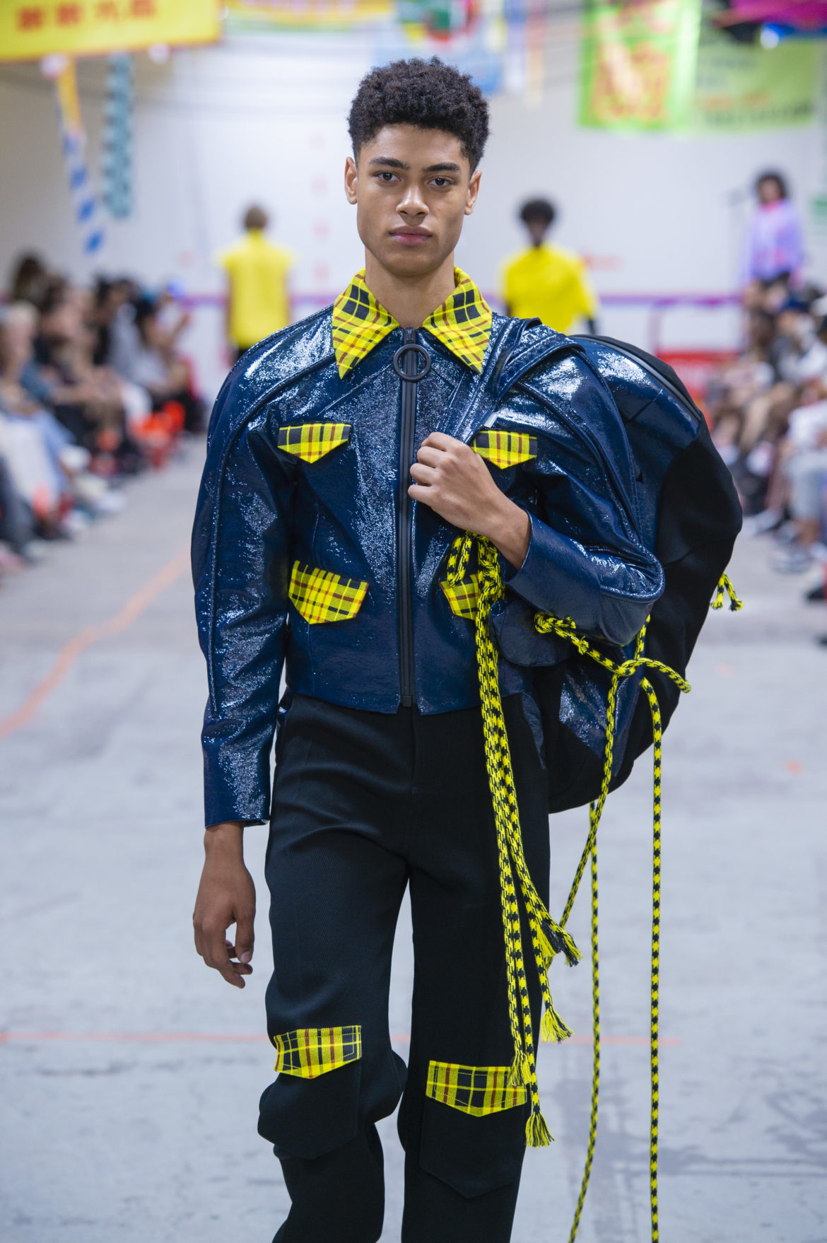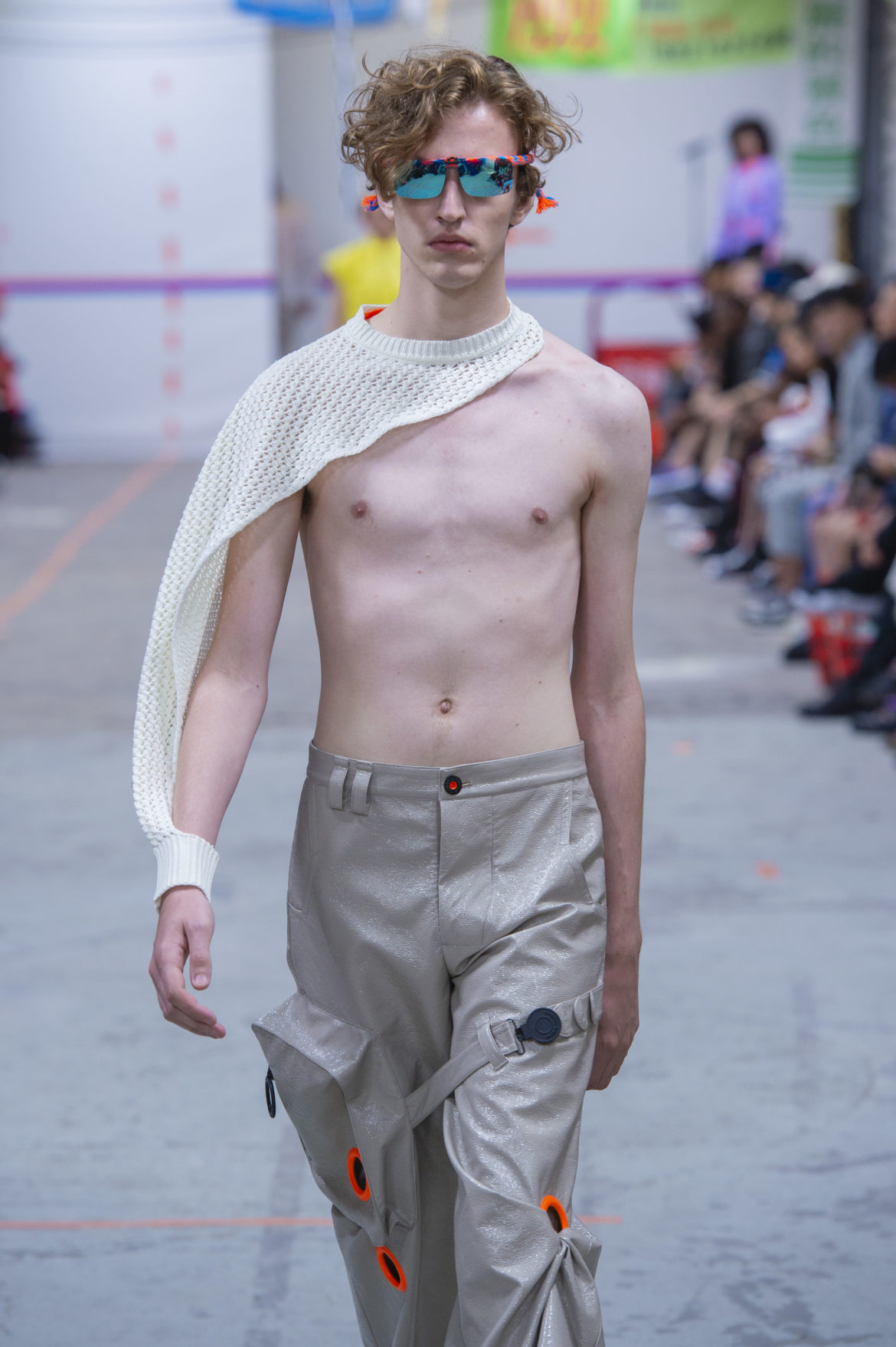 Angus Chiang’s SS19 collection focuses on the older generations preserved idea of city life. This image revolves around street art in Taiwan’s city corners known as the ‘transformer box’. The ‘transformer box’ holds much ambiguity within Taiwan, with many feeling that the presence is a hindrance whilst others argue that it allows an ageless, creative freedom. Aesthetics from each era compete with one another; each poster is patch-worked with something new, creating a masterpiece that precedes generations. Angus Chiang uses this to create a collage of Taiwan. The SS19 collection attempts to understand each individual’s story whilst viewing a new generation coexisting within an old. Looking at the everyday clothing of Aunts and Uncles at the local community centre, polo shirts, cropped pants and fake two pieces tops are reimagined in fun, youthful concepts. Chiang uses a hemming technique to interpret unruly lines and silhouettes. Through SS19, Chiang obscures gender, adding typically female elements such as strapless, backless and flounce into his collection and ‘breaking conventional wisdom’. The soft, warm, core colour comes from landscape paintings on ‘transformer boxes’. Chiang also creates a three-dimensional element through his use of denim and transparent fabric. Chiang not only explores the theme of spirit, but also has a strong focus on durability for SS19, adding leather and a plaid-print, materialized from 100% paper. Shoes are based on elders’ favorite cheap, plastic slippers and leather sandals. Combining the brand’s classic loafers and selected Leather, Chiang reinvents a fashion shoe for the elders through a fun and lively perspective. Classic pieces are re-announced in SS19, such as elastic band and outdoor climbing rope. The Taiwanese theme of ‘all in one’ also becomes a main design concept in which native’s are known to mix and match. SS19 introduces the multifunctional accessories through the ‘glasses necklace’ and ‘sling earrings’. Chiang’s SS19 collection is a multi-generational nod to Taiwanese culture. Notes to Editor As a further expression of Taiwanese culture, ANGUS CHIANG has worked with popular local brands: Wang De Chuan, PineApple Hill and Acera. Wang De Chuan’s Jinxuan Anshang Oolong Tea, PineApple Hill’s pure Chiayi pineapple cake and Acera’s yellow ceramic travel mug are placed together in the « Taiwanese Ga Ji La » retro bag echoing a warm-hearted and gift giving culture. Additionally, continuing the brands year’s fifth season, January Paris Fashion Week and March’s collaboration with NIKE at Shanghai Fashion Week, ANGUS CHIANG has selected NIKE EXP-X14 to echo with the main theme and add highlights to the show. Credits Taiwanese artists and National treasures: Jui-Chin Chiu and Wang-Hao Chang have both played a pivotal role in ANGUS CHIANG’s SS19 collection. Chiu is an artist who paints on transformer boxes and is the only Taiwanese citizen invited by the Swiss Alpine Museum to paint the transformer boxes in Bern, Switzerland. Chiu’s landscape paintings inspired the colours and reinterpretation seen throughout Chiang’s SS19 collection. Chang, who is often known as ‘information Grandpa’ for his work, teaching elders in local communities to use computers has lead groups of elders to create unique greeting graphics. Through this, Chang is narrowing the generation’s age gap. For SS19, ANGUS CHIANG will introduce a new music style, working with Taiwan Golden Melody Awards nominated Hip-Hop, Jazz Band, LE037+SOSS and Soul, Jazz vocalist 9m88. The SS19 catwalk will include a live performance by 9m88. Taiwanese artist, John Yuyi, is known for her unique tattooing. As SS19’s guest visional stylist, Yuyi will convey a different level of conflicting aesthetics through her distinctive perspective and taste. 9m88 and John Yuyi’s participation in the SS19 catwalk show creates a new-generation reunion, in which the former classmates have come together to complete SS19’s core concept and showcase the collaborative work of past generations.