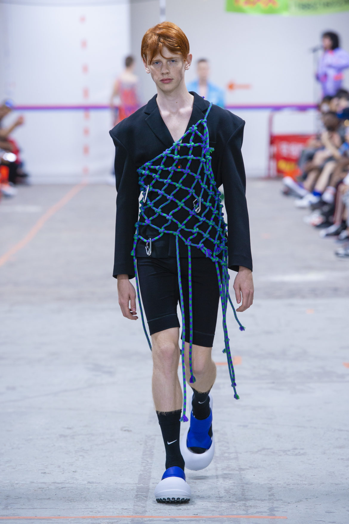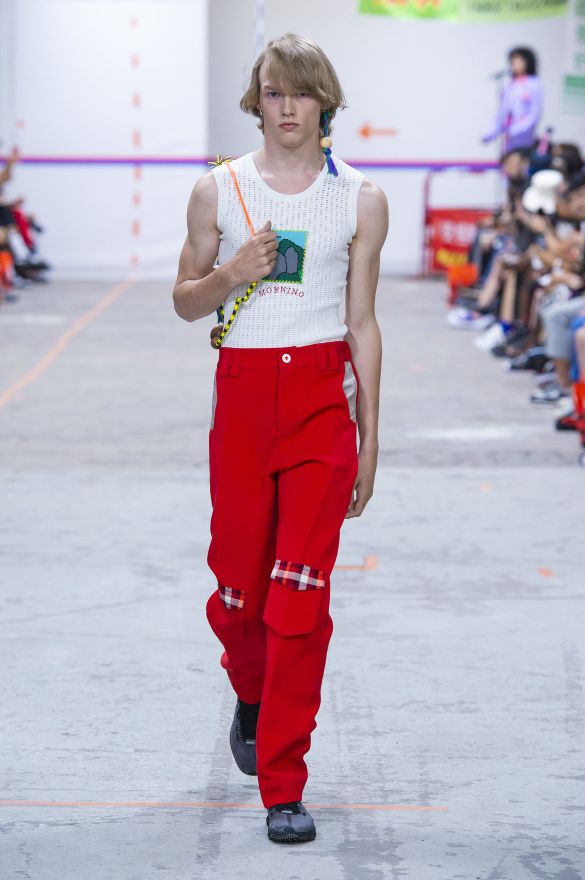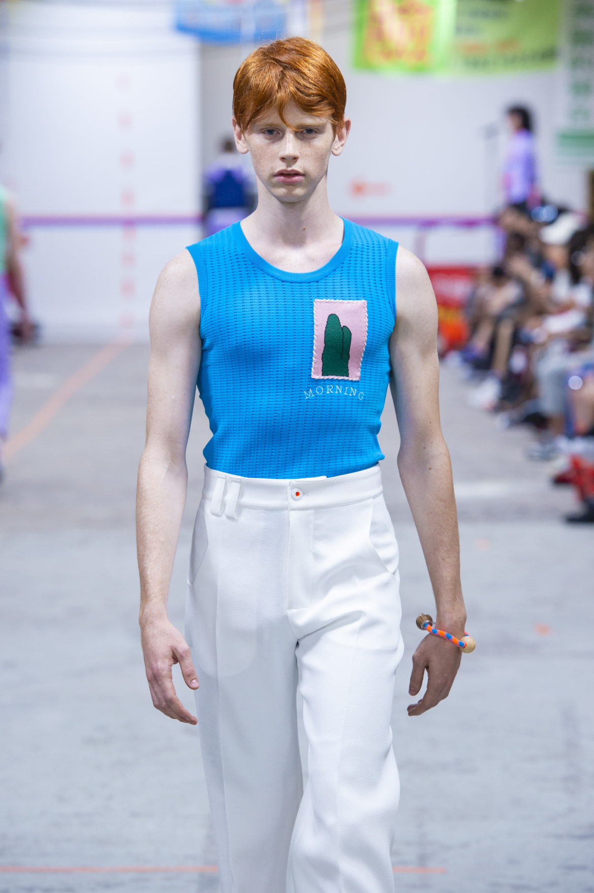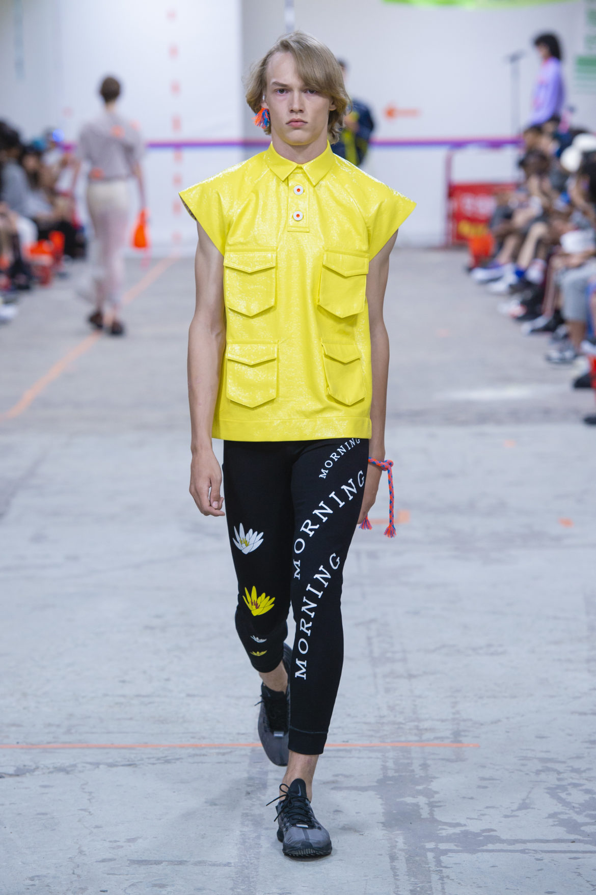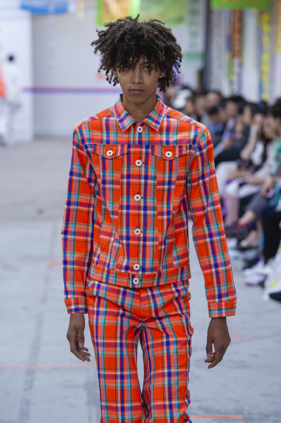 Angus Chiang’s SS19 collection focuses on the older generations preserved idea of city life. This image revolves around street art in Taiwan’s city corners known as the ‘transformer box’. The ‘transformer box’ holds much ambiguity within Taiwan, with many feeling that the presence is a hindrance whilst others argue that it allows an ageless, creative freedom. Aesthetics from each era compete with one another; each poster is patch-worked with something new, creating a masterpiece that precedes generations. Angus Chiang uses this to create a collage of Taiwan. The SS19 collection attempts to understand each individual’s story whilst viewing a new generation coexisting within an old. Looking at the everyday clothing of Aunts and Uncles at the local community centre, polo shirts, cropped pants and fake two pieces tops are reimagined in fun, youthful concepts. Chiang uses a hemming technique to interpret unruly lines and silhouettes. Through SS19, Chiang obscures gender, adding typically female elements such as strapless, backless and flounce into his collection and ‘breaking conventional wisdom’. The soft, warm, core colour comes from landscape paintings on ‘transformer boxes’. Chiang also creates a three-dimensional element through his use of denim and transparent fabric. Chiang not only explores the theme of spirit, but also has a strong focus on durability for SS19, adding leather and a plaid-print, materialized from 100% paper. Shoes are based on elders’ favorite cheap, plastic slippers and leather sandals. Combining the brand’s classic loafers and selected Leather, Chiang reinvents a fashion shoe for the elders through a fun and lively perspective. Classic pieces are re-announced in SS19, such as elastic band and outdoor climbing rope. The Taiwanese theme of ‘all in one’ also becomes a main design concept in which native’s are known to mix and match. SS19 introduces the multifunctional accessories through the ‘glasses necklace’ and ‘sling earrings’. Chiang’s SS19 collection is a multi-generational nod to Taiwanese culture. Notes to Editor As a further expression of Taiwanese culture, ANGUS CHIANG has worked with popular local brands: Wang De Chuan, PineApple Hill and Acera. Wang De Chuan’s Jinxuan Anshang Oolong Tea, PineApple Hill’s pure Chiayi pineapple cake and Acera’s yellow ceramic travel mug are placed together in the « Taiwanese Ga Ji La » retro bag echoing a warm-hearted and gift giving culture. Additionally, continuing the brands year’s fifth season, January Paris Fashion Week and March’s collaboration with NIKE at Shanghai Fashion Week, ANGUS CHIANG has selected NIKE EXP-X14 to echo with the main theme and add highlights to the show. Credits Taiwanese artists and National treasures: Jui-Chin Chiu and Wang-Hao Chang have both played a pivotal role in ANGUS CHIANG’s SS19 collection. Chiu is an artist who paints on transformer boxes and is the only Taiwanese citizen invited by the Swiss Alpine Museum to paint the transformer boxes in Bern, Switzerland. Chiu’s landscape paintings inspired the colours and reinterpretation seen throughout Chiang’s SS19 collection. Chang, who is often known as ‘information Grandpa’ for his work, teaching elders in local communities to use computers has lead groups of elders to create unique greeting graphics. Through this, Chang is narrowing the generation’s age gap. For SS19, ANGUS CHIANG will introduce a new music style, working with Taiwan Golden Melody Awards nominated Hip-Hop, Jazz Band, LE037+SOSS and Soul, Jazz vocalist 9m88. The SS19 catwalk will include a live performance by 9m88. Taiwanese artist, John Yuyi, is known for her unique tattooing. As SS19’s guest visional stylist, Yuyi will convey a different level of conflicting aesthetics through her distinctive perspective and taste. 9m88 and John Yuyi’s participation in the SS19 catwalk show creates a new-generation reunion, in which the former classmates have come together to complete SS19’s core concept and showcase the collaborative work of past generations.