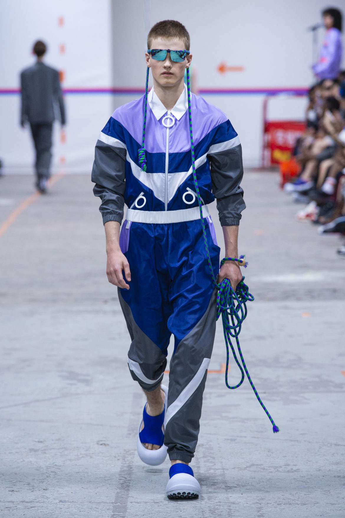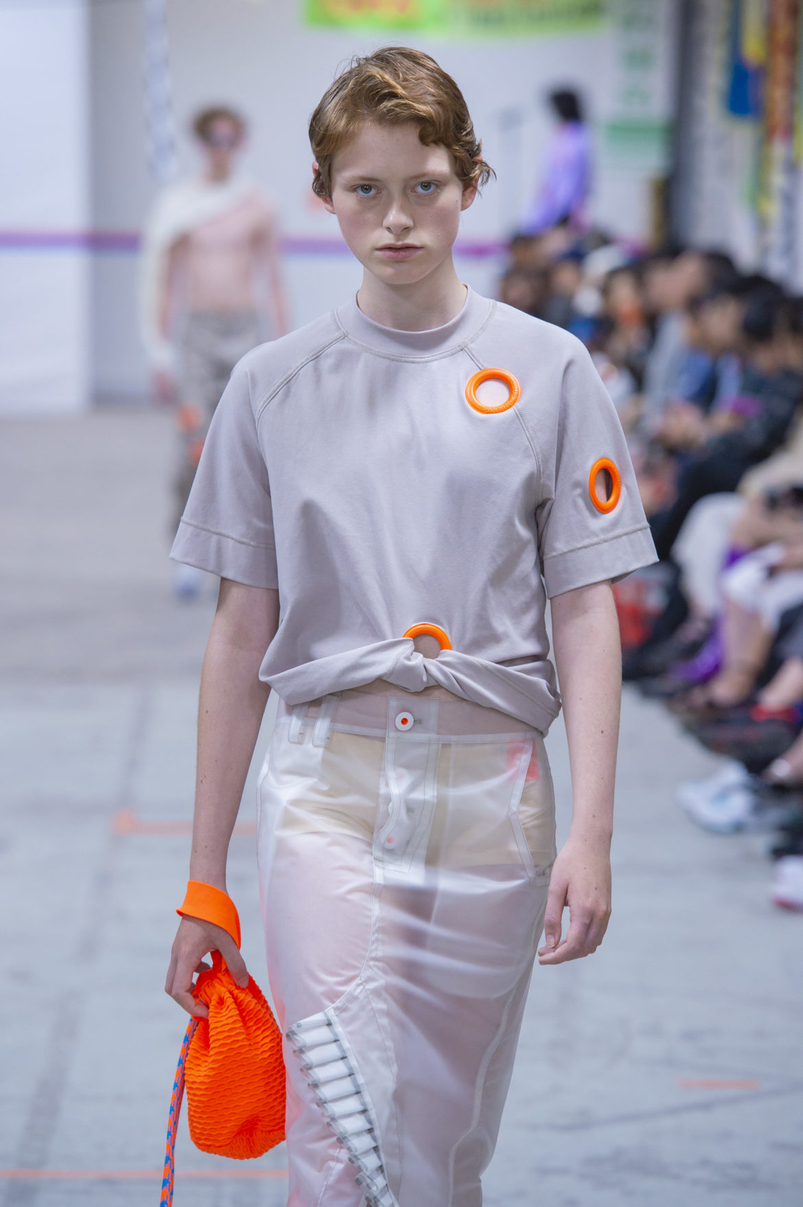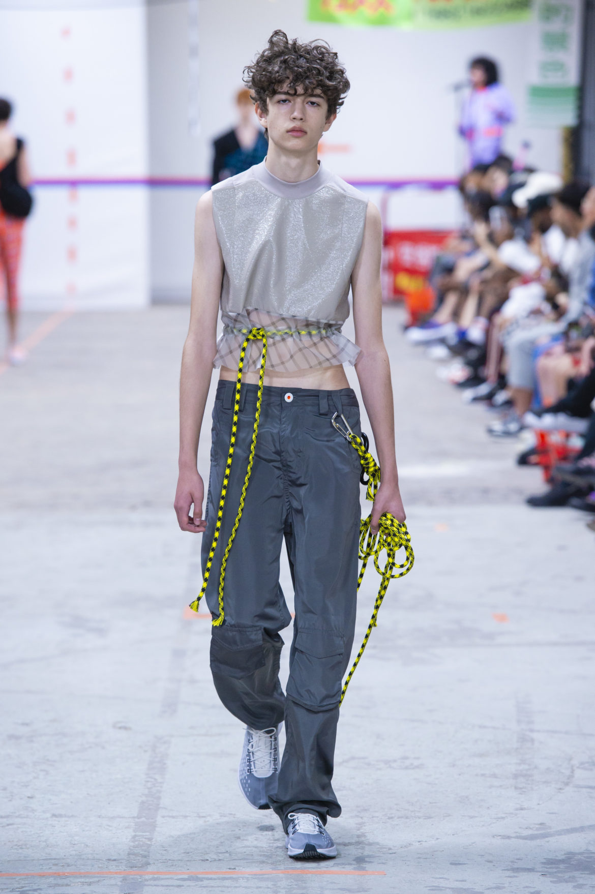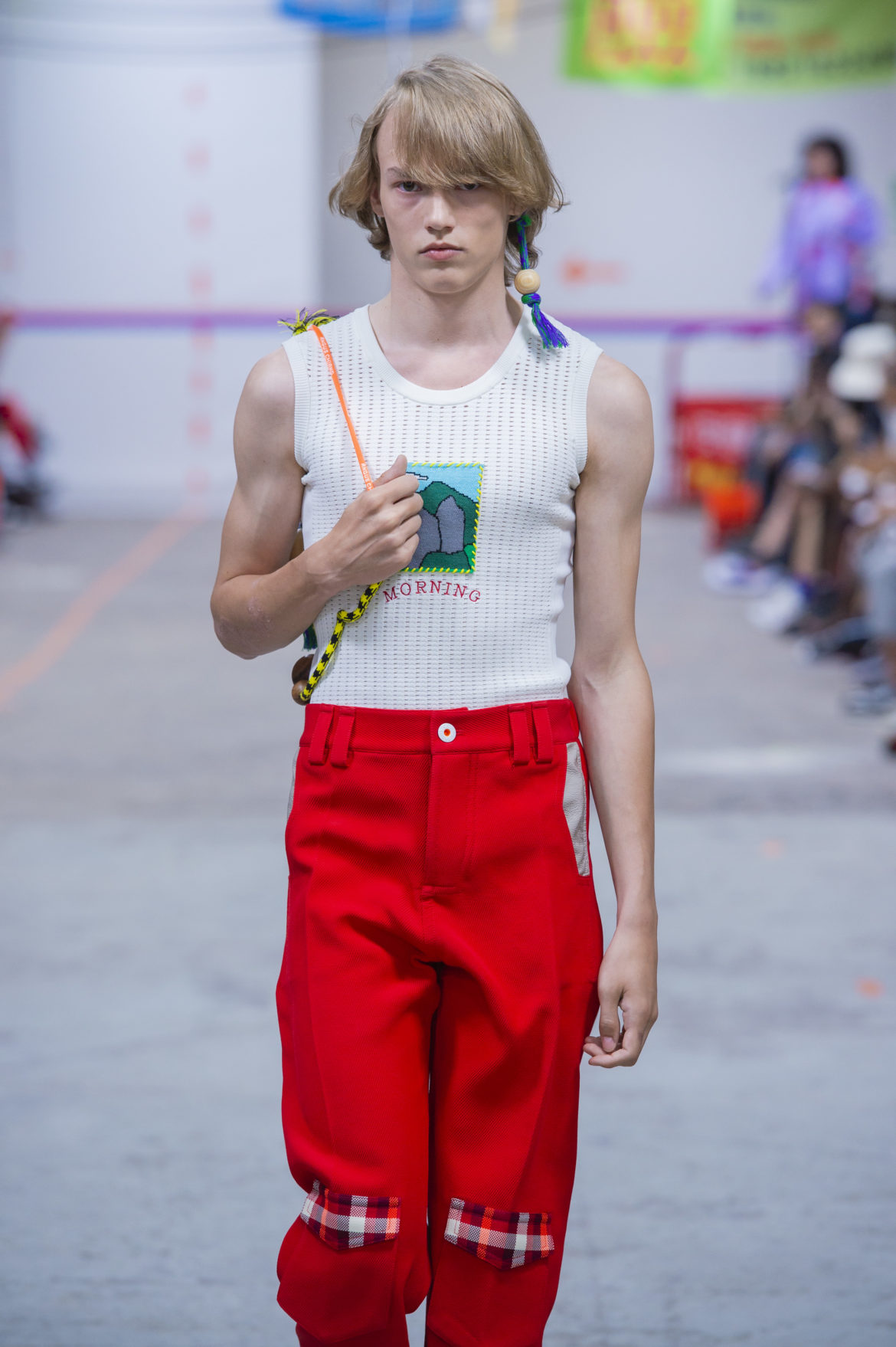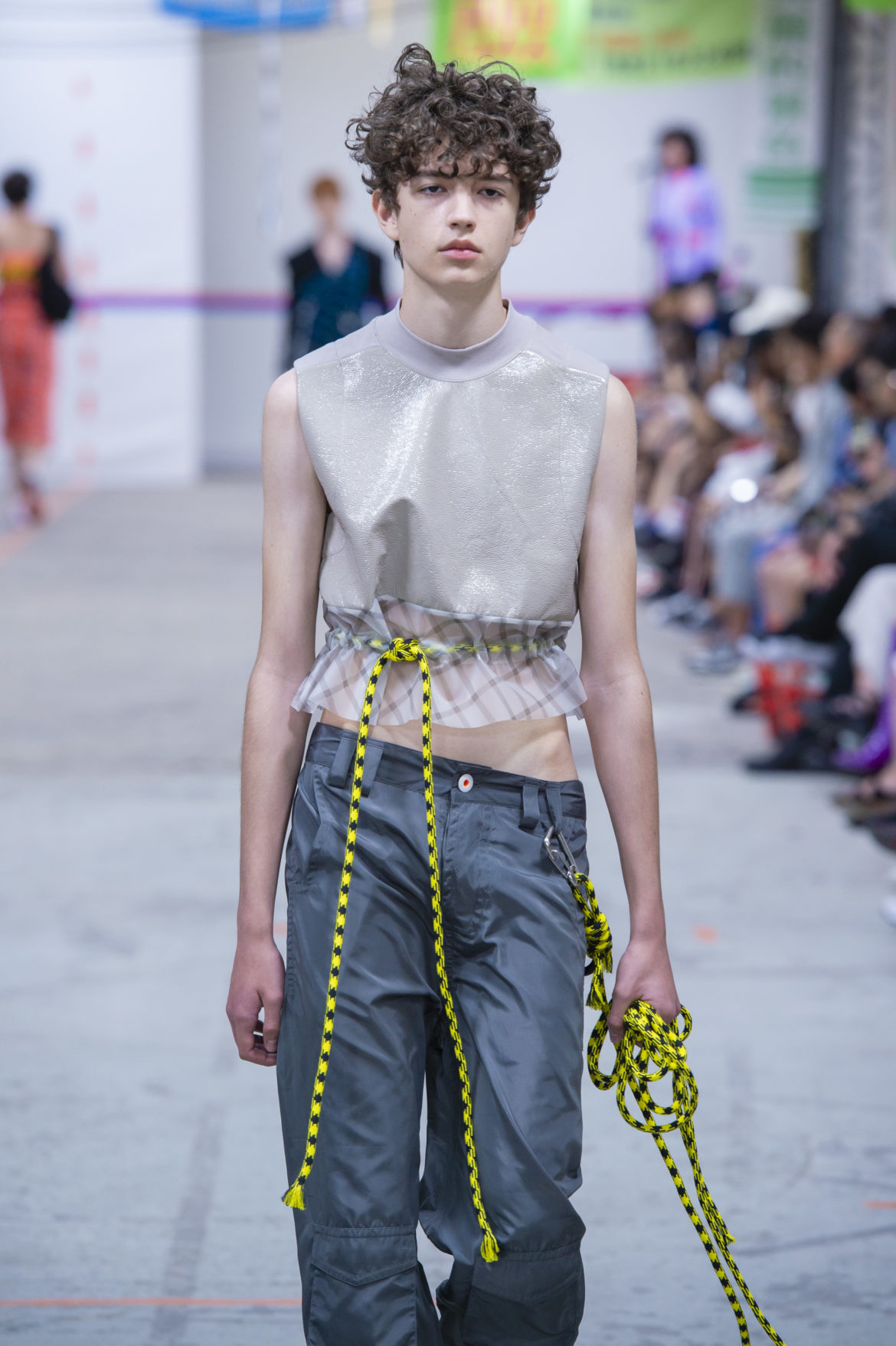 Angus Chiang’s SS19 collection focuses on the older generations preserved idea of city life. This image revolves around street art in Taiwan’s city corners known as the ‘transformer box’. The ‘transformer box’ holds much ambiguity within Taiwan, with many feeling that the presence is a hindrance whilst others argue that it allows an ageless, creative freedom. Aesthetics from each era compete with one another; each poster is patch-worked with something new, creating a masterpiece that precedes generations. Angus Chiang uses this to create a collage of Taiwan. The SS19 collection attempts to understand each individual’s story whilst viewing a new generation coexisting within an old. Looking at the everyday clothing of Aunts and Uncles at the local community centre, polo shirts, cropped pants and fake two pieces tops are reimagined in fun, youthful concepts. Chiang uses a hemming technique to interpret unruly lines and silhouettes. Through SS19, Chiang obscures gender, adding typically female elements such as strapless, backless and flounce into his collection and ‘breaking conventional wisdom’. The soft, warm, core colour comes from landscape paintings on ‘transformer boxes’. Chiang also creates a three-dimensional element through his use of denim and transparent fabric. Chiang not only explores the theme of spirit, but also has a strong focus on durability for SS19, adding leather and a plaid-print, materialized from 100% paper. Shoes are based on elders’ favorite cheap, plastic slippers and leather sandals. Combining the brand’s classic loafers and selected Leather, Chiang reinvents a fashion shoe for the elders through a fun and lively perspective. Classic pieces are re-announced in SS19, such as elastic band and outdoor climbing rope. The Taiwanese theme of ‘all in one’ also becomes a main design concept in which native’s are known to mix and match. SS19 introduces the multifunctional accessories through the ‘glasses necklace’ and ‘sling earrings’. Chiang’s SS19 collection is a multi-generational nod to Taiwanese culture. Notes to Editor As a further expression of Taiwanese culture, ANGUS CHIANG has worked with popular local brands: Wang De Chuan, PineApple Hill and Acera. Wang De Chuan’s Jinxuan Anshang Oolong Tea, PineApple Hill’s pure Chiayi pineapple cake and Acera’s yellow ceramic travel mug are placed together in the « Taiwanese Ga Ji La » retro bag echoing a warm-hearted and gift giving culture. Additionally, continuing the brands year’s fifth season, January Paris Fashion Week and March’s collaboration with NIKE at Shanghai Fashion Week, ANGUS CHIANG has selected NIKE EXP-X14 to echo with the main theme and add highlights to the show. Credits Taiwanese artists and National treasures: Jui-Chin Chiu and Wang-Hao Chang have both played a pivotal role in ANGUS CHIANG’s SS19 collection. Chiu is an artist who paints on transformer boxes and is the only Taiwanese citizen invited by the Swiss Alpine Museum to paint the transformer boxes in Bern, Switzerland. Chiu’s landscape paintings inspired the colours and reinterpretation seen throughout Chiang’s SS19 collection. Chang, who is often known as ‘information Grandpa’ for his work, teaching elders in local communities to use computers has lead groups of elders to create unique greeting graphics. Through this, Chang is narrowing the generation’s age gap. For SS19, ANGUS CHIANG will introduce a new music style, working with Taiwan Golden Melody Awards nominated Hip-Hop, Jazz Band, LE037+SOSS and Soul, Jazz vocalist 9m88. The SS19 catwalk will include a live performance by 9m88. Taiwanese artist, John Yuyi, is known for her unique tattooing. As SS19’s guest visional stylist, Yuyi will convey a different level of conflicting aesthetics through her distinctive perspective and taste. 9m88 and John Yuyi’s participation in the SS19 catwalk show creates a new-generation reunion, in which the former classmates have come together to complete SS19’s core concept and showcase the collaborative work of past generations.