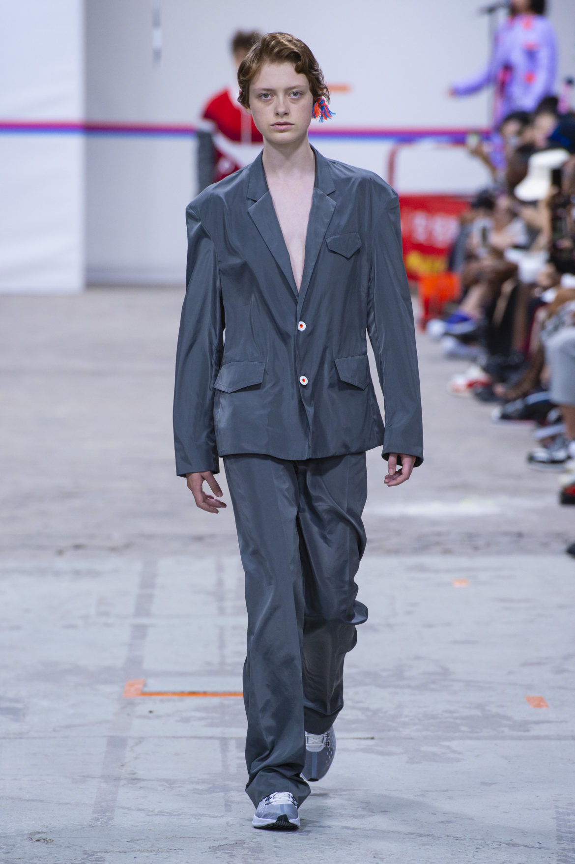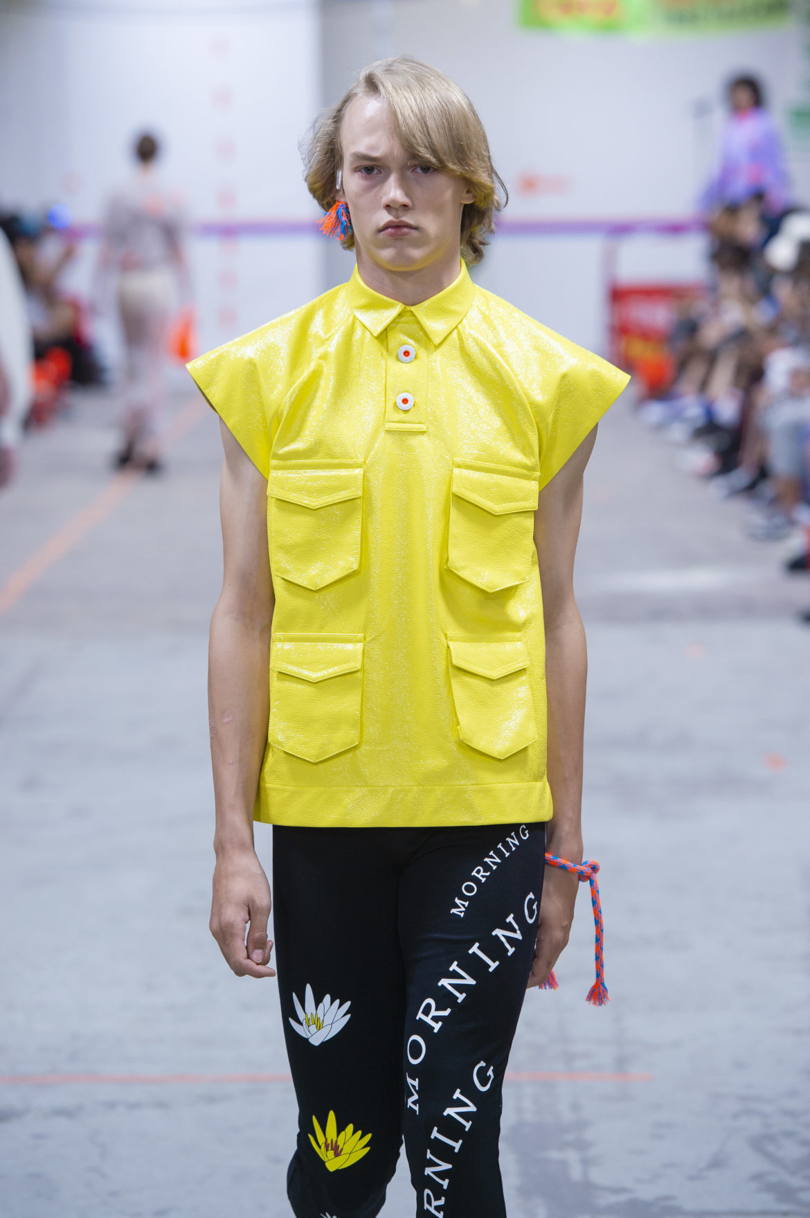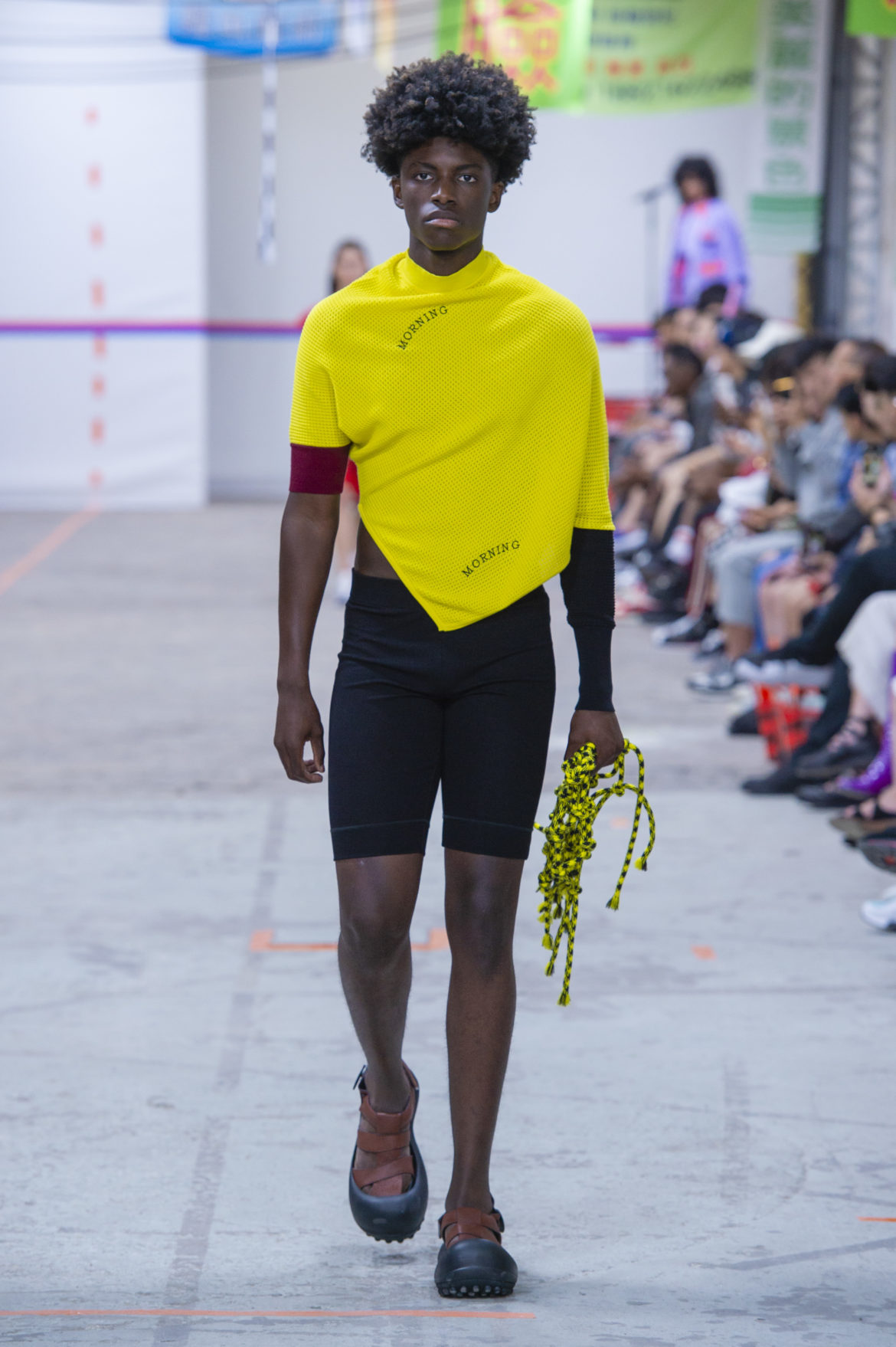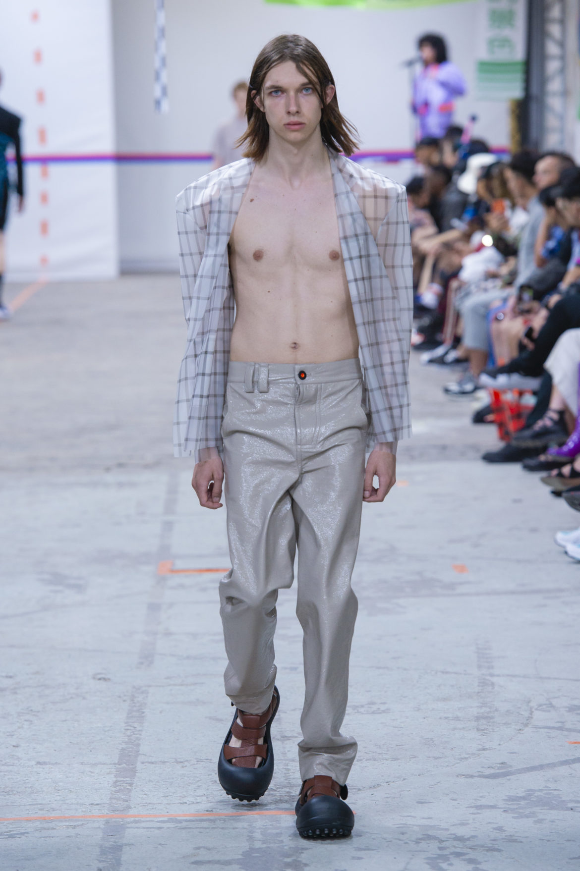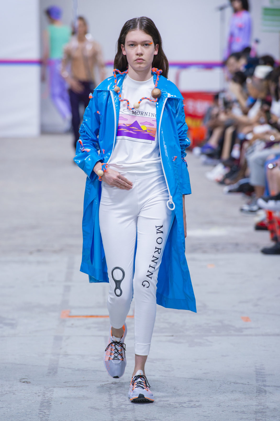 Angus Chiang’s SS19 collection focuses on the older generations preserved idea of city life. This image revolves around street art in Taiwan’s city corners known as the ‘transformer box’. The ‘transformer box’ holds much ambiguity within Taiwan, with many feeling that the presence is a hindrance whilst others argue that it allows an ageless, creative freedom. Aesthetics from each era compete with one another; each poster is patch-worked with something new, creating a masterpiece that precedes generations. Angus Chiang uses this to create a collage of Taiwan. The SS19 collection attempts to understand each individual’s story whilst viewing a new generation coexisting within an old. Looking at the everyday clothing of Aunts and Uncles at the local community centre, polo shirts, cropped pants and fake two pieces tops are reimagined in fun, youthful concepts. Chiang uses a hemming technique to interpret unruly lines and silhouettes. Through SS19, Chiang obscures gender, adding typically female elements such as strapless, backless and flounce into his collection and ‘breaking conventional wisdom’. The soft, warm, core colour comes from landscape paintings on ‘transformer boxes’. Chiang also creates a three-dimensional element through his use of denim and transparent fabric. Chiang not only explores the theme of spirit, but also has a strong focus on durability for SS19, adding leather and a plaid-print, materialized from 100% paper. Shoes are based on elders’ favorite cheap, plastic slippers and leather sandals. Combining the brand’s classic loafers and selected Leather, Chiang reinvents a fashion shoe for the elders through a fun and lively perspective. Classic pieces are re-announced in SS19, such as elastic band and outdoor climbing rope. The Taiwanese theme of ‘all in one’ also becomes a main design concept in which native’s are known to mix and match. SS19 introduces the multifunctional accessories through the ‘glasses necklace’ and ‘sling earrings’. Chiang’s SS19 collection is a multi-generational nod to Taiwanese culture. Notes to Editor As a further expression of Taiwanese culture, ANGUS CHIANG has worked with popular local brands: Wang De Chuan, PineApple Hill and Acera. Wang De Chuan’s Jinxuan Anshang Oolong Tea, PineApple Hill’s pure Chiayi pineapple cake and Acera’s yellow ceramic travel mug are placed together in the « Taiwanese Ga Ji La » retro bag echoing a warm-hearted and gift giving culture. Additionally, continuing the brands year’s fifth season, January Paris Fashion Week and March’s collaboration with NIKE at Shanghai Fashion Week, ANGUS CHIANG has selected NIKE EXP-X14 to echo with the main theme and add highlights to the show. Credits Taiwanese artists and National treasures: Jui-Chin Chiu and Wang-Hao Chang have both played a pivotal role in ANGUS CHIANG’s SS19 collection. Chiu is an artist who paints on transformer boxes and is the only Taiwanese citizen invited by the Swiss Alpine Museum to paint the transformer boxes in Bern, Switzerland. Chiu’s landscape paintings inspired the colours and reinterpretation seen throughout Chiang’s SS19 collection. Chang, who is often known as ‘information Grandpa’ for his work, teaching elders in local communities to use computers has lead groups of elders to create unique greeting graphics. Through this, Chang is narrowing the generation’s age gap. For SS19, ANGUS CHIANG will introduce a new music style, working with Taiwan Golden Melody Awards nominated Hip-Hop, Jazz Band, LE037+SOSS and Soul, Jazz vocalist 9m88. The SS19 catwalk will include a live performance by 9m88. Taiwanese artist, John Yuyi, is known for her unique tattooing. As SS19’s guest visional stylist, Yuyi will convey a different level of conflicting aesthetics through her distinctive perspective and taste. 9m88 and John Yuyi’s participation in the SS19 catwalk show creates a new-generation reunion, in which the former classmates have come together to complete SS19’s core concept and showcase the collaborative work of past generations.