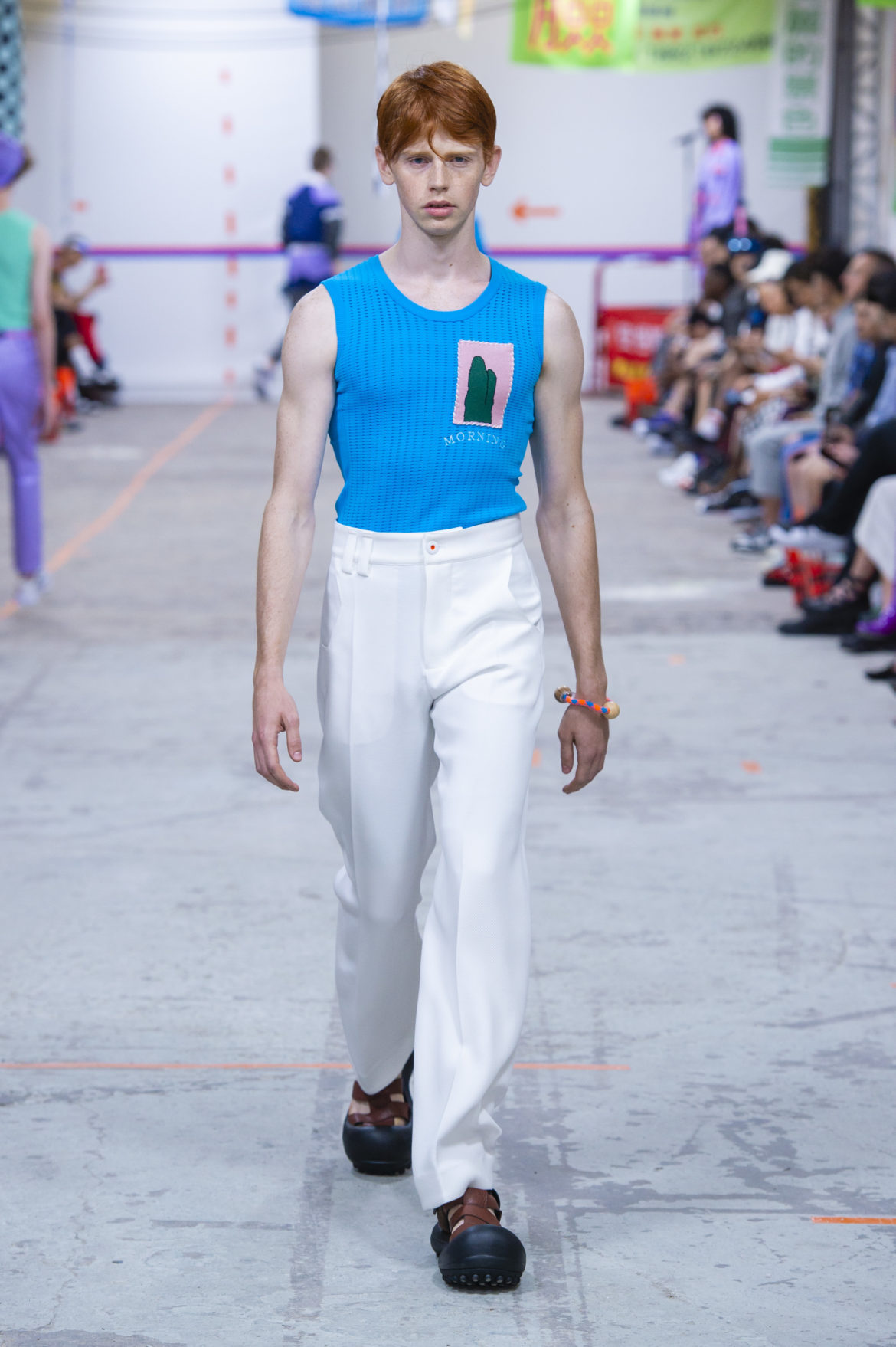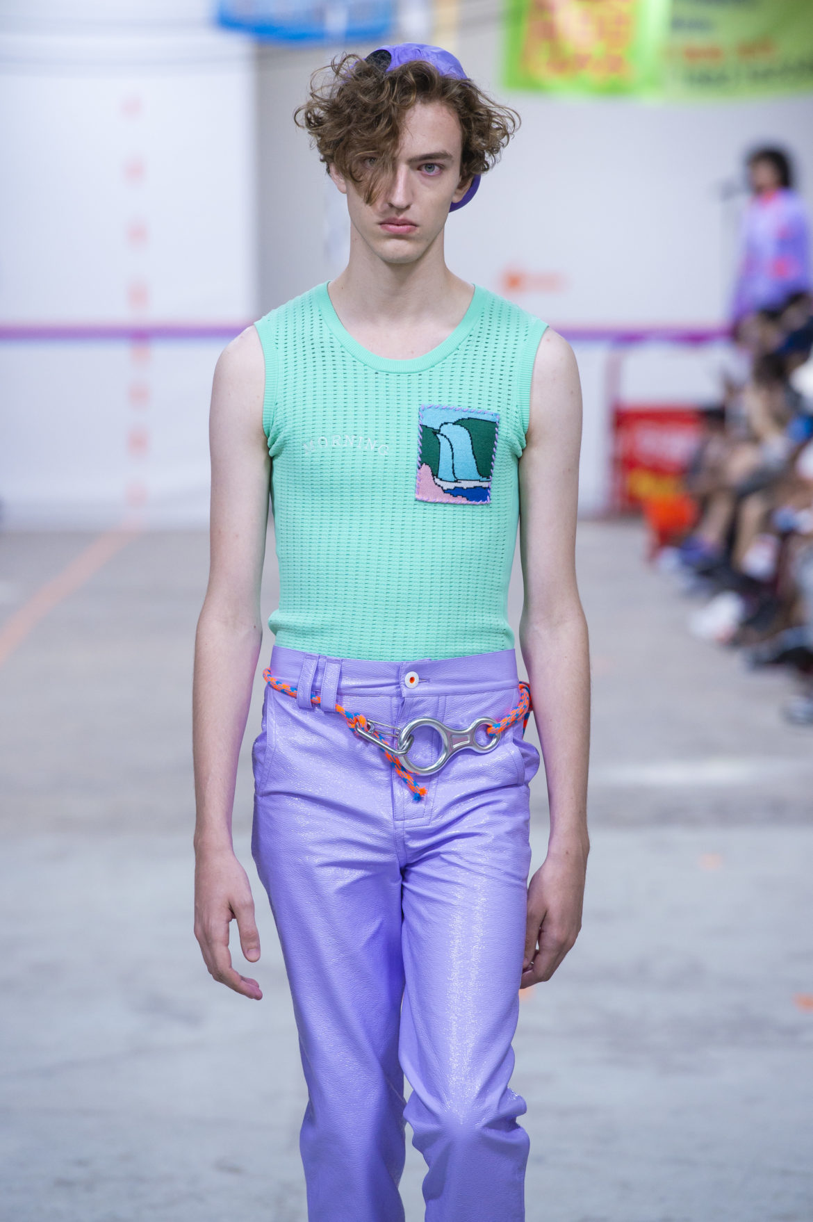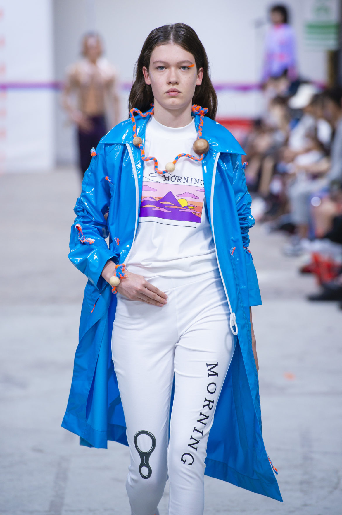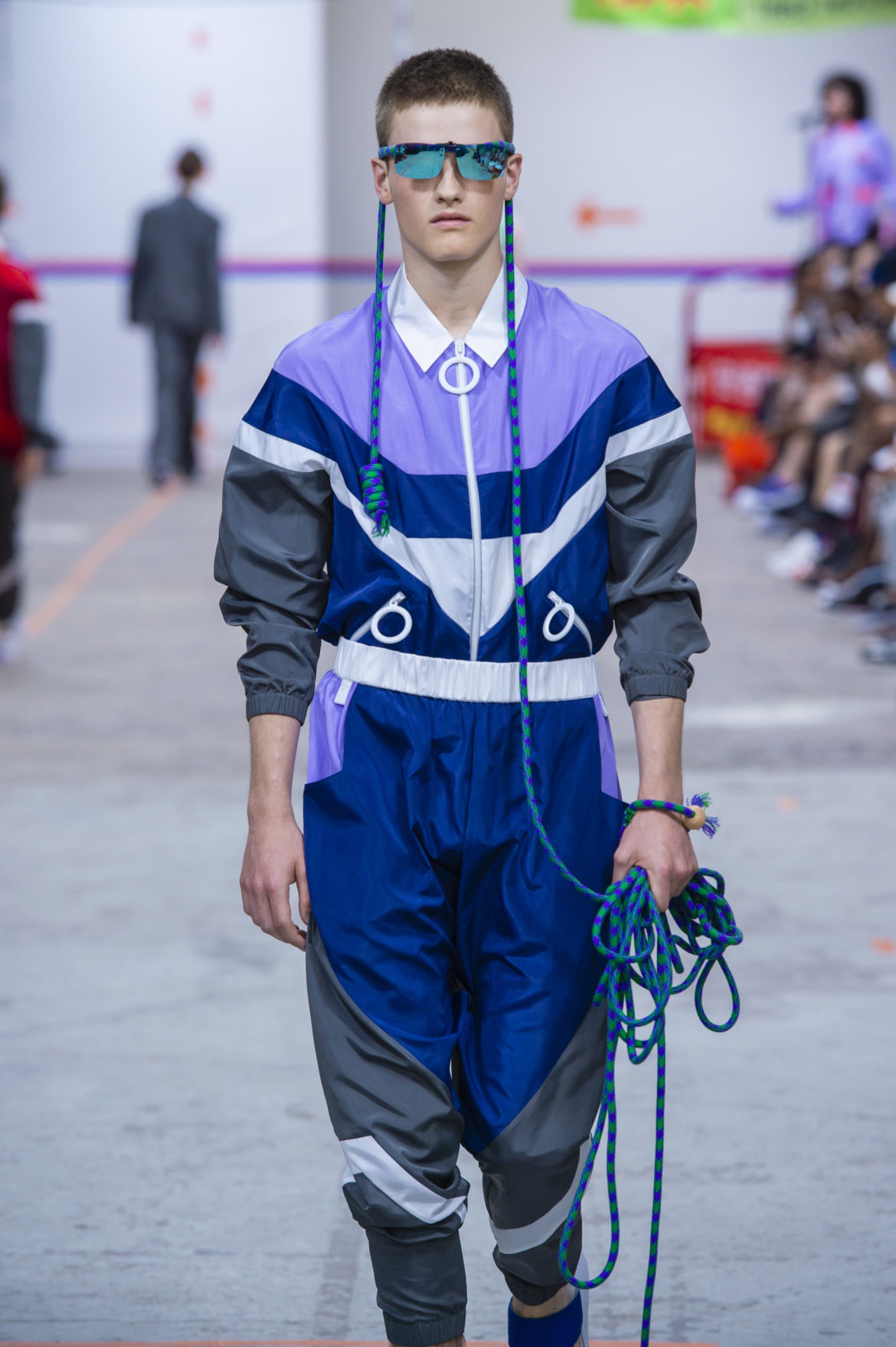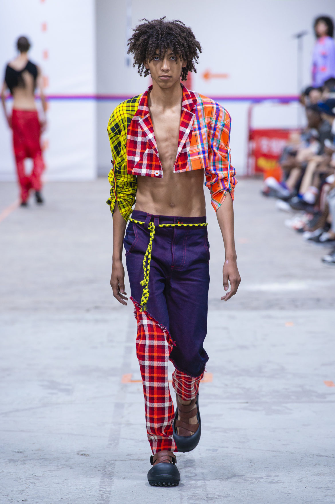Angus Chiang’s SS19 collection focuses on the older generations preserved idea of city life. This image revolves around street art in Taiwan’s city corners known as the ‘transformer box’. The ‘transformer box’ holds much ambiguity within Taiwan, with many feeling that the presence is a hindrance whilst others argue that it allows an ageless, creative freedom. Aesthetics from each era compete with one another; each poster is patch-worked with something new, creating a masterpiece that precedes generations. Angus Chiang uses this to create a collage of Taiwan. The SS19 collection attempts to understand each individual’s story whilst viewing a new generation coexisting within an old. Looking at the everyday clothing of Aunts and Uncles at the local community centre, polo shirts, cropped pants and fake two pieces tops are reimagined in fun, youthful concepts. Chiang uses a hemming technique to interpret unruly lines and silhouettes. Through SS19, Chiang obscures gender, adding typically female elements such as strapless, backless and flounce into his collection and ‘breaking conventional wisdom’. The soft, warm, core colour comes from landscape paintings on ‘transformer boxes’. Chiang also creates a three-dimensional element through his use of denim and transparent fabric. Chiang not only explores the theme of spirit, but also has a strong focus on durability for SS19, adding leather and a plaid-print, materialized from 100% paper. Shoes are based on elders’ favorite cheap, plastic slippers and leather sandals. Combining the brand’s classic loafers and selected Leather, Chiang reinvents a fashion shoe for the elders through a fun and lively perspective. Classic pieces are re-announced in SS19, such as elastic band and outdoor climbing rope. The Taiwanese theme of ‘all in one’ also becomes a main design concept in which native’s are known to mix and match. SS19 introduces the multifunctional accessories through the ‘glasses necklace’ and ‘sling earrings’. Chiang’s SS19 collection is a multi-generational nod to Taiwanese culture. Notes to Editor As a further expression of Taiwanese culture, ANGUS CHIANG has worked with popular local brands: Wang De Chuan, PineApple Hill and Acera. Wang De Chuan’s Jinxuan Anshang Oolong Tea, PineApple Hill’s pure Chiayi pineapple cake and Acera’s yellow ceramic travel mug are placed together in the « Taiwanese Ga Ji La » retro bag echoing a warm-hearted and gift giving culture. Additionally, continuing the brands year’s fifth season, January Paris Fashion Week and March’s collaboration with NIKE at Shanghai Fashion Week, ANGUS CHIANG has selected NIKE EXP-X14 to echo with the main theme and add highlights to the show. Credits Taiwanese artists and National treasures: Jui-Chin Chiu and Wang-Hao Chang have both played a pivotal role in ANGUS CHIANG’s SS19 collection. Chiu is an artist who paints on transformer boxes and is the only Taiwanese citizen invited by the Swiss Alpine Museum to paint the transformer boxes in Bern, Switzerland. Chiu’s landscape paintings inspired the colours and reinterpretation seen throughout Chiang’s SS19 collection. Chang, who is often known as ‘information Grandpa’ for his work, teaching elders in local communities to use computers has lead groups of elders to create unique greeting graphics. Through this, Chang is narrowing the generation’s age gap. For SS19, ANGUS CHIANG will introduce a new music style, working with Taiwan Golden Melody Awards nominated Hip-Hop, Jazz Band, LE037+SOSS and Soul, Jazz vocalist 9m88. The SS19 catwalk will include a live performance by 9m88. Taiwanese artist, John Yuyi, is known for her unique tattooing. As SS19’s guest visional stylist, Yuyi will convey a different level of conflicting aesthetics through her distinctive perspective and taste. 9m88 and John Yuyi’s participation in the SS19 catwalk show creates a new-generation reunion, in which the former classmates have come together to complete SS19’s core concept and showcase the collaborative work of past generations.