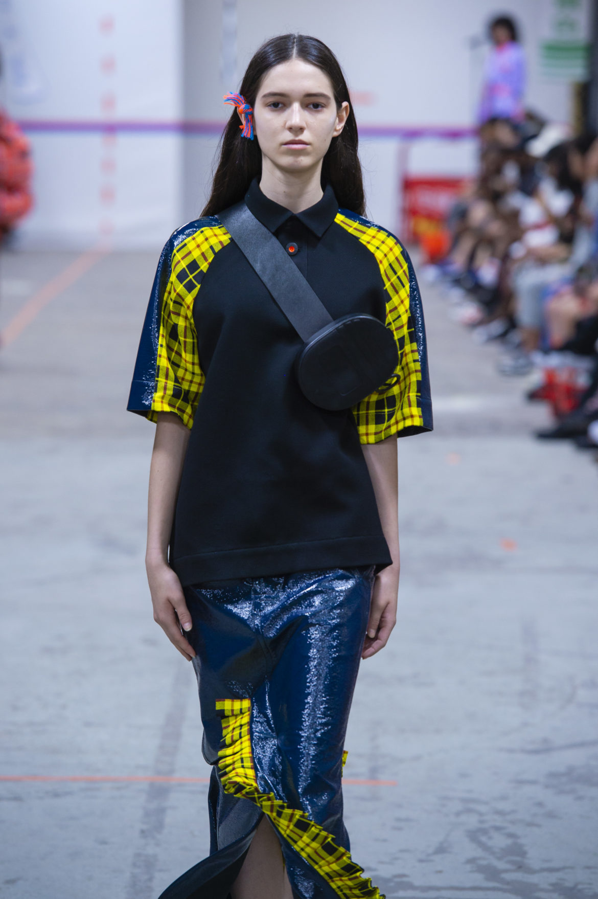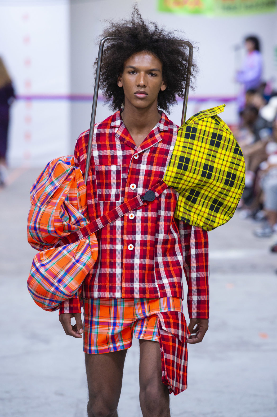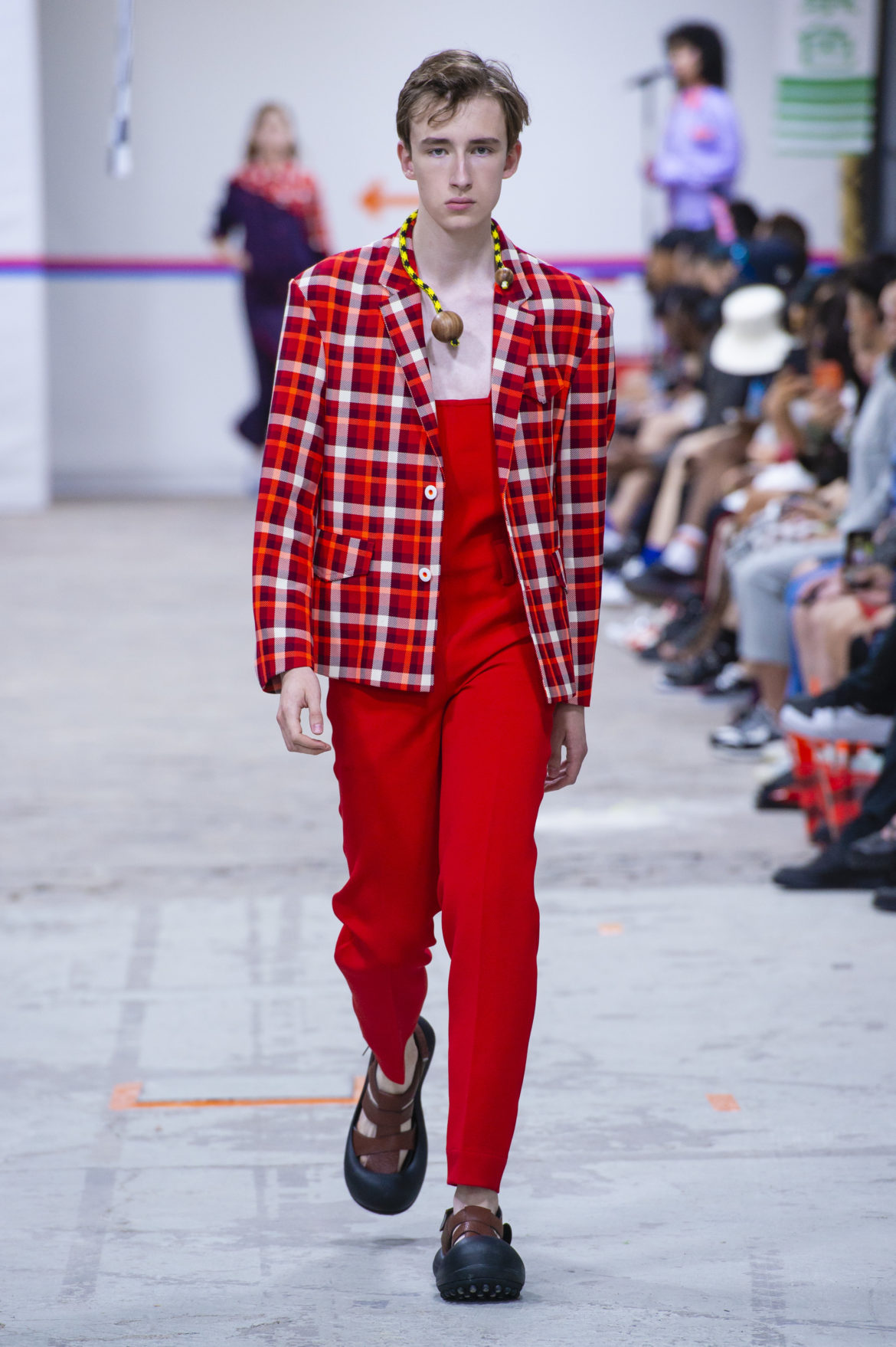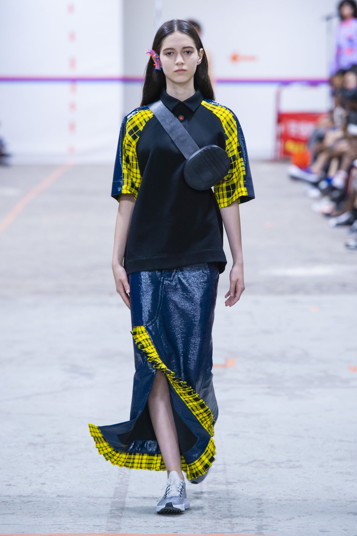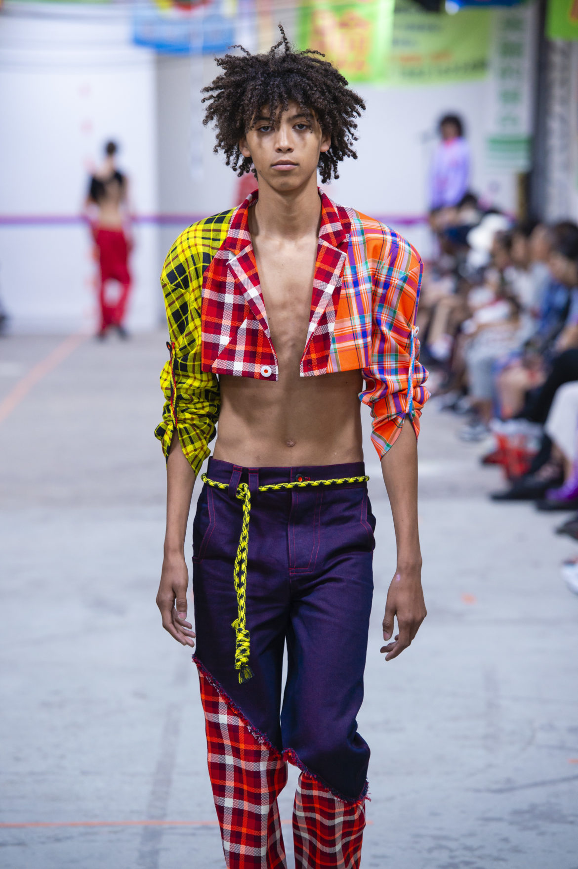 Angus Chiang’s SS19 collection focuses on the older generations preserved idea of city life. This image revolves around street art in Taiwan’s city corners known as the ‘transformer box’. The ‘transformer box’ holds much ambiguity within Taiwan, with many feeling that the presence is a hindrance whilst others argue that it allows an ageless, creative freedom. Aesthetics from each era compete with one another; each poster is patch-worked with something new, creating a masterpiece that precedes generations. Angus Chiang uses this to create a collage of Taiwan. The SS19 collection attempts to understand each individual’s story whilst viewing a new generation coexisting within an old. Looking at the everyday clothing of Aunts and Uncles at the local community centre, polo shirts, cropped pants and fake two pieces tops are reimagined in fun, youthful concepts. Chiang uses a hemming technique to interpret unruly lines and silhouettes. Through SS19, Chiang obscures gender, adding typically female elements such as strapless, backless and flounce into his collection and ‘breaking conventional wisdom’. The soft, warm, core colour comes from landscape paintings on ‘transformer boxes’. Chiang also creates a three-dimensional element through his use of denim and transparent fabric. Chiang not only explores the theme of spirit, but also has a strong focus on durability for SS19, adding leather and a plaid-print, materialized from 100% paper. Shoes are based on elders’ favorite cheap, plastic slippers and leather sandals. Combining the brand’s classic loafers and selected Leather, Chiang reinvents a fashion shoe for the elders through a fun and lively perspective. Classic pieces are re-announced in SS19, such as elastic band and outdoor climbing rope. The Taiwanese theme of ‘all in one’ also becomes a main design concept in which native’s are known to mix and match. SS19 introduces the multifunctional accessories through the ‘glasses necklace’ and ‘sling earrings’. Chiang’s SS19 collection is a multi-generational nod to Taiwanese culture. Notes to Editor As a further expression of Taiwanese culture, ANGUS CHIANG has worked with popular local brands: Wang De Chuan, PineApple Hill and Acera. Wang De Chuan’s Jinxuan Anshang Oolong Tea, PineApple Hill’s pure Chiayi pineapple cake and Acera’s yellow ceramic travel mug are placed together in the « Taiwanese Ga Ji La » retro bag echoing a warm-hearted and gift giving culture. Additionally, continuing the brands year’s fifth season, January Paris Fashion Week and March’s collaboration with NIKE at Shanghai Fashion Week, ANGUS CHIANG has selected NIKE EXP-X14 to echo with the main theme and add highlights to the show. Credits Taiwanese artists and National treasures: Jui-Chin Chiu and Wang-Hao Chang have both played a pivotal role in ANGUS CHIANG’s SS19 collection. Chiu is an artist who paints on transformer boxes and is the only Taiwanese citizen invited by the Swiss Alpine Museum to paint the transformer boxes in Bern, Switzerland. Chiu’s landscape paintings inspired the colours and reinterpretation seen throughout Chiang’s SS19 collection. Chang, who is often known as ‘information Grandpa’ for his work, teaching elders in local communities to use computers has lead groups of elders to create unique greeting graphics. Through this, Chang is narrowing the generation’s age gap. For SS19, ANGUS CHIANG will introduce a new music style, working with Taiwan Golden Melody Awards nominated Hip-Hop, Jazz Band, LE037+SOSS and Soul, Jazz vocalist 9m88. The SS19 catwalk will include a live performance by 9m88. Taiwanese artist, John Yuyi, is known for her unique tattooing. As SS19’s guest visional stylist, Yuyi will convey a different level of conflicting aesthetics through her distinctive perspective and taste. 9m88 and John Yuyi’s participation in the SS19 catwalk show creates a new-generation reunion, in which the former classmates have come together to complete SS19’s core concept and showcase the collaborative work of past generations.