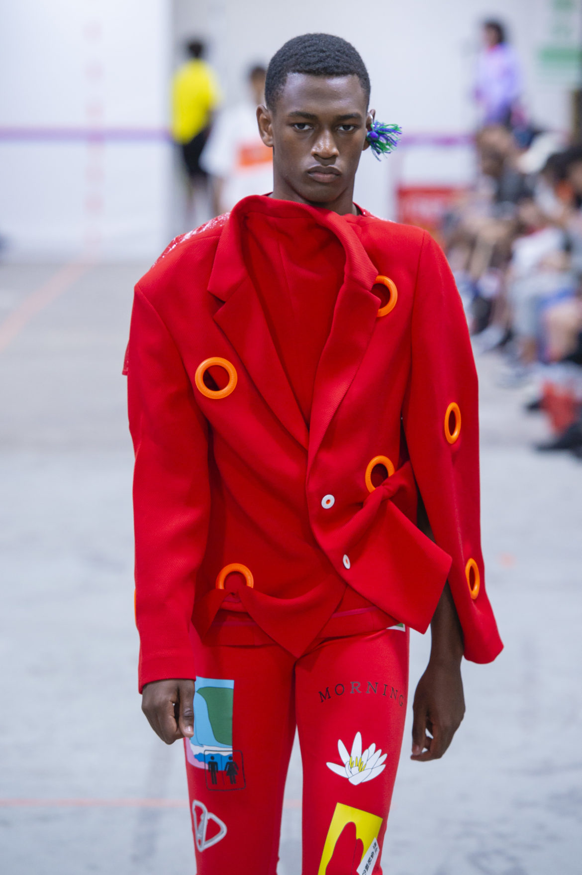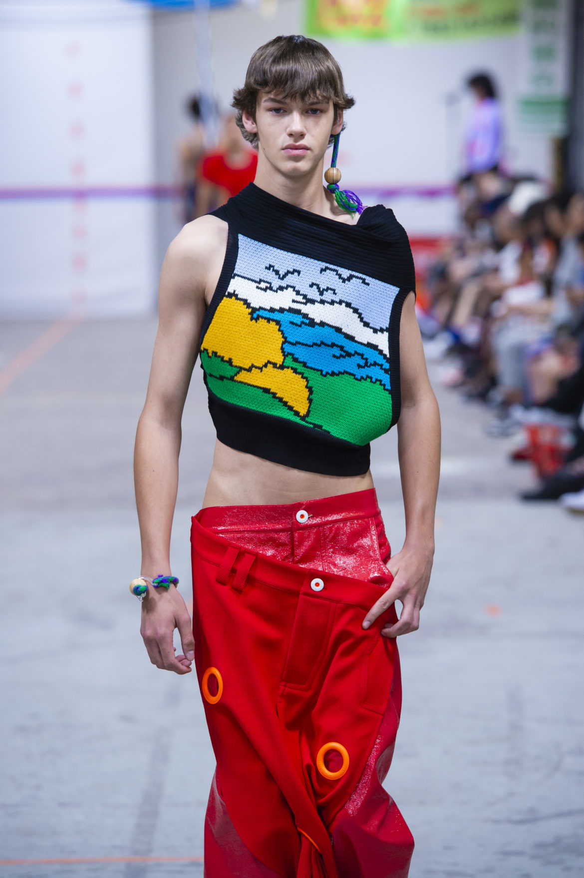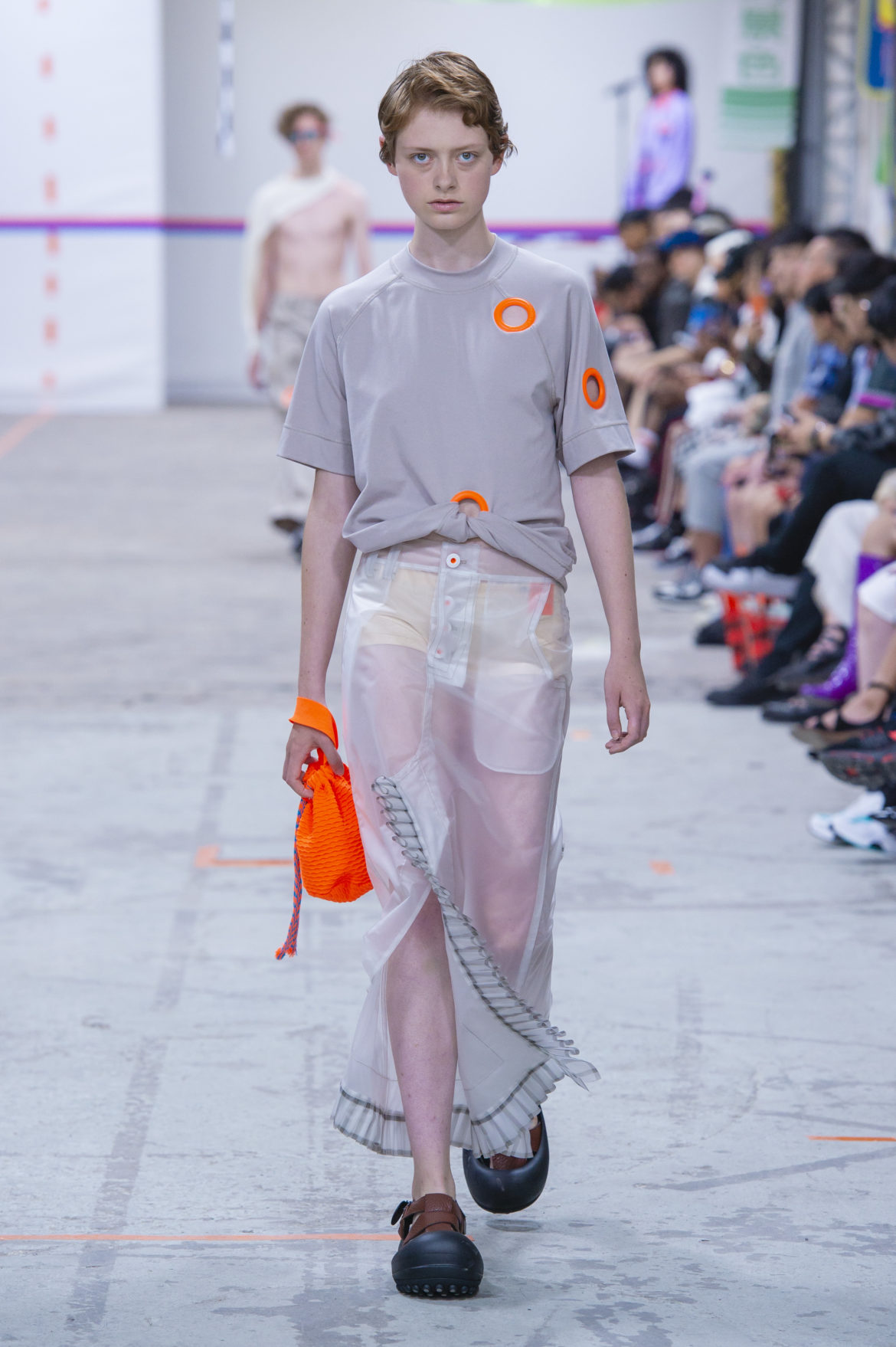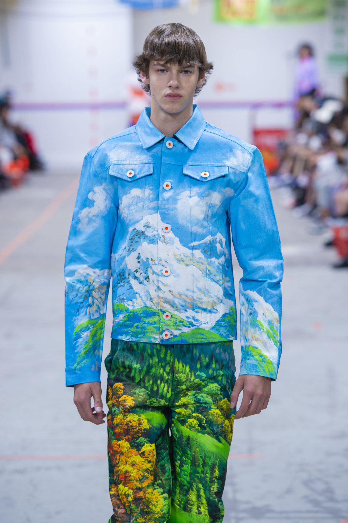 Angus Chiang’s SS19 collection focuses on the older generations preserved idea of city life. This image revolves around street art in Taiwan’s city corners known as the ‘transformer box’. The ‘transformer box’ holds much ambiguity within Taiwan, with many feeling that the presence is a hindrance whilst others argue that it allows an ageless, creative freedom. Aesthetics from each era compete with one another; each poster is patch-worked with something new, creating a masterpiece that precedes generations. Angus Chiang uses this to create a collage of Taiwan. The SS19 collection attempts to understand each individual’s story whilst viewing a new generation coexisting within an old. Looking at the everyday clothing of Aunts and Uncles at the local community centre, polo shirts, cropped pants and fake two pieces tops are reimagined in fun, youthful concepts. Chiang uses a hemming technique to interpret unruly lines and silhouettes. Through SS19, Chiang obscures gender, adding typically female elements such as strapless, backless and flounce into his collection and ‘breaking conventional wisdom’. The soft, warm, core colour comes from landscape paintings on ‘transformer boxes’. Chiang also creates a three-dimensional element through his use of denim and transparent fabric. Chiang not only explores the theme of spirit, but also has a strong focus on durability for SS19, adding leather and a plaid-print, materialized from 100% paper. Shoes are based on elders’ favorite cheap, plastic slippers and leather sandals. Combining the brand’s classic loafers and selected Leather, Chiang reinvents a fashion shoe for the elders through a fun and lively perspective. Classic pieces are re-announced in SS19, such as elastic band and outdoor climbing rope. The Taiwanese theme of ‘all in one’ also becomes a main design concept in which native’s are known to mix and match. SS19 introduces the multifunctional accessories through the ‘glasses necklace’ and ‘sling earrings’. Chiang’s SS19 collection is a multi-generational nod to Taiwanese culture. Notes to Editor As a further expression of Taiwanese culture, ANGUS CHIANG has worked with popular local brands: Wang De Chuan, PineApple Hill and Acera. Wang De Chuan’s Jinxuan Anshang Oolong Tea, PineApple Hill’s pure Chiayi pineapple cake and Acera’s yellow ceramic travel mug are placed together in the « Taiwanese Ga Ji La » retro bag echoing a warm-hearted and gift giving culture. Additionally, continuing the brands year’s fifth season, January Paris Fashion Week and March’s collaboration with NIKE at Shanghai Fashion Week, ANGUS CHIANG has selected NIKE EXP-X14 to echo with the main theme and add highlights to the show. Credits Taiwanese artists and National treasures: Jui-Chin Chiu and Wang-Hao Chang have both played a pivotal role in ANGUS CHIANG’s SS19 collection. Chiu is an artist who paints on transformer boxes and is the only Taiwanese citizen invited by the Swiss Alpine Museum to paint the transformer boxes in Bern, Switzerland. Chiu’s landscape paintings inspired the colours and reinterpretation seen throughout Chiang’s SS19 collection. Chang, who is often known as ‘information Grandpa’ for his work, teaching elders in local communities to use computers has lead groups of elders to create unique greeting graphics. Through this, Chang is narrowing the generation’s age gap. For SS19, ANGUS CHIANG will introduce a new music style, working with Taiwan Golden Melody Awards nominated Hip-Hop, Jazz Band, LE037+SOSS and Soul, Jazz vocalist 9m88. The SS19 catwalk will include a live performance by 9m88. Taiwanese artist, John Yuyi, is known for her unique tattooing. As SS19’s guest visional stylist, Yuyi will convey a different level of conflicting aesthetics through her distinctive perspective and taste. 9m88 and John Yuyi’s participation in the SS19 catwalk show creates a new-generation reunion, in which the former classmates have come together to complete SS19’s core concept and showcase the collaborative work of past generations.