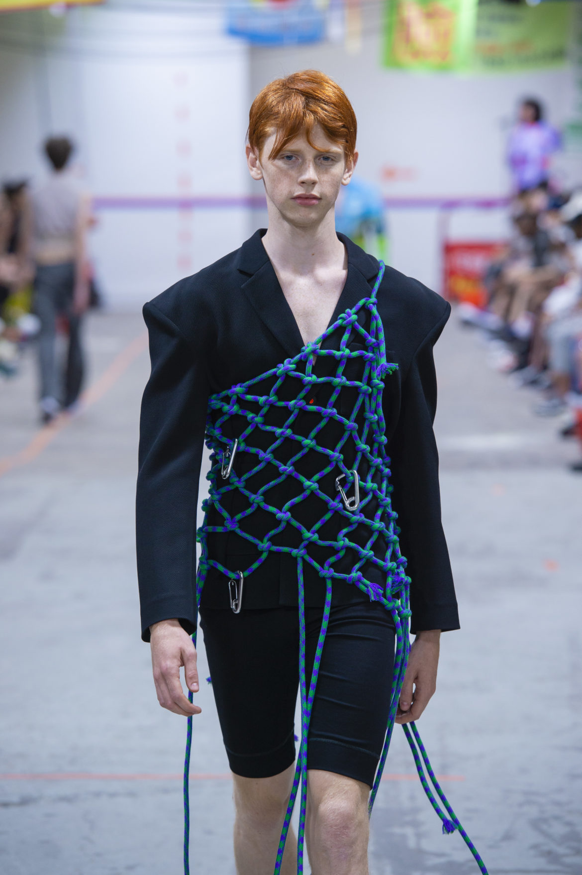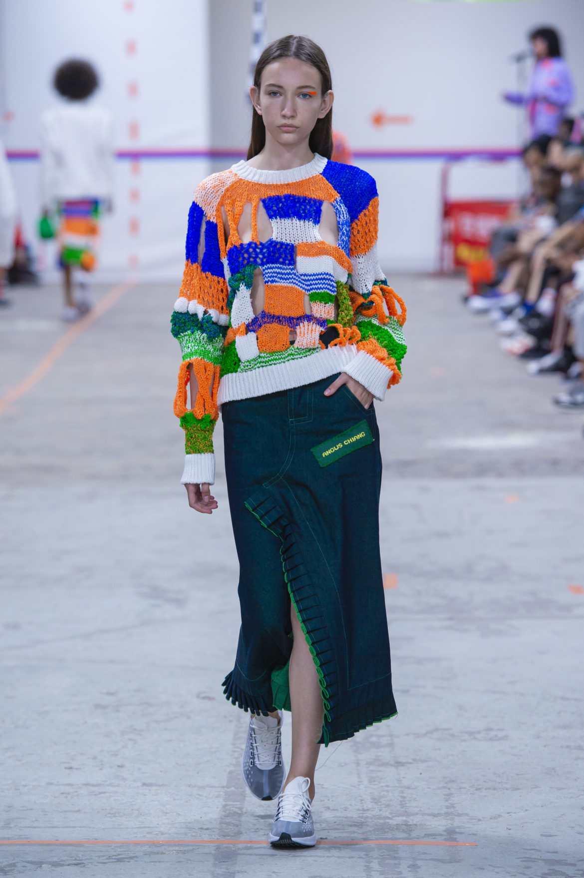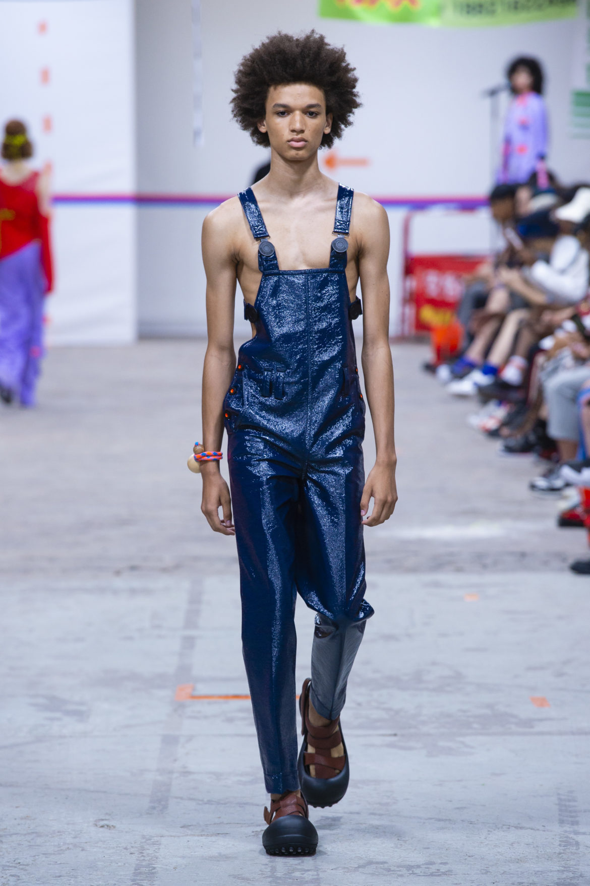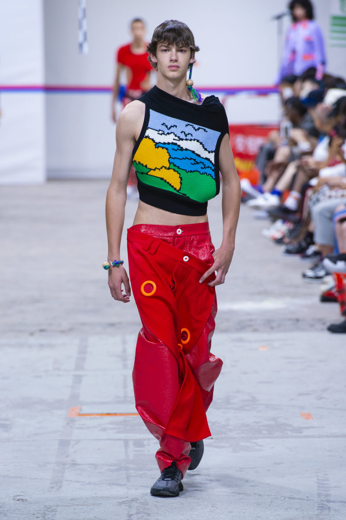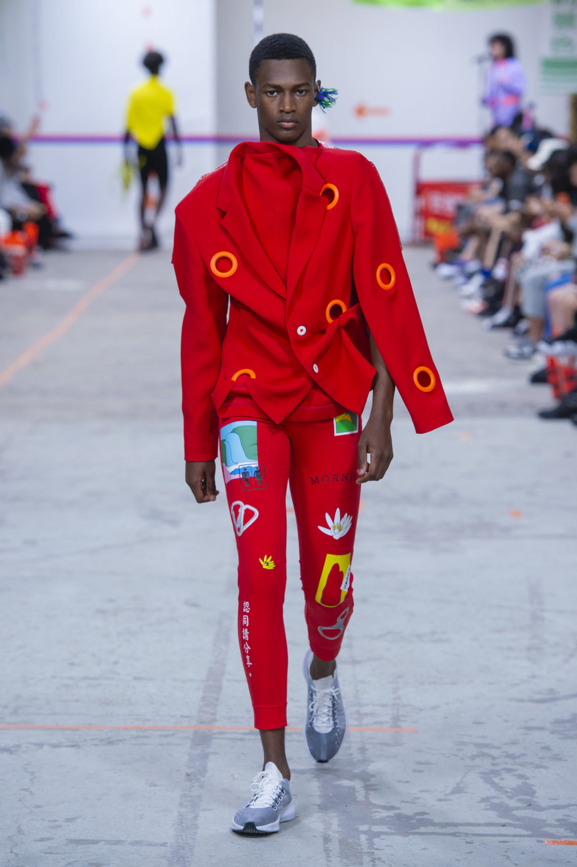 Angus Chiang’s SS19 collection focuses on the older generations preserved idea of city life. This image revolves around street art in Taiwan’s city corners known as the ‘transformer box’. The ‘transformer box’ holds much ambiguity within Taiwan, with many feeling that the presence is a hindrance whilst others argue that it allows an ageless, creative freedom. Aesthetics from each era compete with one another; each poster is patch-worked with something new, creating a masterpiece that precedes generations. Angus Chiang uses this to create a collage of Taiwan. The SS19 collection attempts to understand each individual’s story whilst viewing a new generation coexisting within an old. Looking at the everyday clothing of Aunts and Uncles at the local community centre, polo shirts, cropped pants and fake two pieces tops are reimagined in fun, youthful concepts. Chiang uses a hemming technique to interpret unruly lines and silhouettes. Through SS19, Chiang obscures gender, adding typically female elements such as strapless, backless and flounce into his collection and ‘breaking conventional wisdom’. The soft, warm, core colour comes from landscape paintings on ‘transformer boxes’. Chiang also creates a three-dimensional element through his use of denim and transparent fabric. Chiang not only explores the theme of spirit, but also has a strong focus on durability for SS19, adding leather and a plaid-print, materialized from 100% paper. Shoes are based on elders’ favorite cheap, plastic slippers and leather sandals. Combining the brand’s classic loafers and selected Leather, Chiang reinvents a fashion shoe for the elders through a fun and lively perspective. Classic pieces are re-announced in SS19, such as elastic band and outdoor climbing rope. The Taiwanese theme of ‘all in one’ also becomes a main design concept in which native’s are known to mix and match. SS19 introduces the multifunctional accessories through the ‘glasses necklace’ and ‘sling earrings’. Chiang’s SS19 collection is a multi-generational nod to Taiwanese culture. Notes to Editor As a further expression of Taiwanese culture, ANGUS CHIANG has worked with popular local brands: Wang De Chuan, PineApple Hill and Acera. Wang De Chuan’s Jinxuan Anshang Oolong Tea, PineApple Hill’s pure Chiayi pineapple cake and Acera’s yellow ceramic travel mug are placed together in the « Taiwanese Ga Ji La » retro bag echoing a warm-hearted and gift giving culture. Additionally, continuing the brands year’s fifth season, January Paris Fashion Week and March’s collaboration with NIKE at Shanghai Fashion Week, ANGUS CHIANG has selected NIKE EXP-X14 to echo with the main theme and add highlights to the show. Credits Taiwanese artists and National treasures: Jui-Chin Chiu and Wang-Hao Chang have both played a pivotal role in ANGUS CHIANG’s SS19 collection. Chiu is an artist who paints on transformer boxes and is the only Taiwanese citizen invited by the Swiss Alpine Museum to paint the transformer boxes in Bern, Switzerland. Chiu’s landscape paintings inspired the colours and reinterpretation seen throughout Chiang’s SS19 collection. Chang, who is often known as ‘information Grandpa’ for his work, teaching elders in local communities to use computers has lead groups of elders to create unique greeting graphics. Through this, Chang is narrowing the generation’s age gap. For SS19, ANGUS CHIANG will introduce a new music style, working with Taiwan Golden Melody Awards nominated Hip-Hop, Jazz Band, LE037+SOSS and Soul, Jazz vocalist 9m88. The SS19 catwalk will include a live performance by 9m88. Taiwanese artist, John Yuyi, is known for her unique tattooing. As SS19’s guest visional stylist, Yuyi will convey a different level of conflicting aesthetics through her distinctive perspective and taste. 9m88 and John Yuyi’s participation in the SS19 catwalk show creates a new-generation reunion, in which the former classmates have come together to complete SS19’s core concept and showcase the collaborative work of past generations.