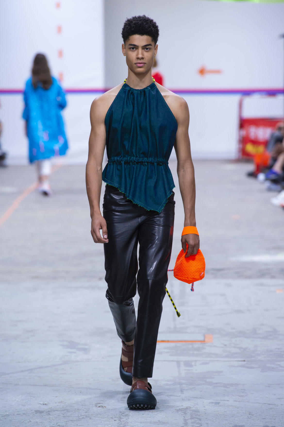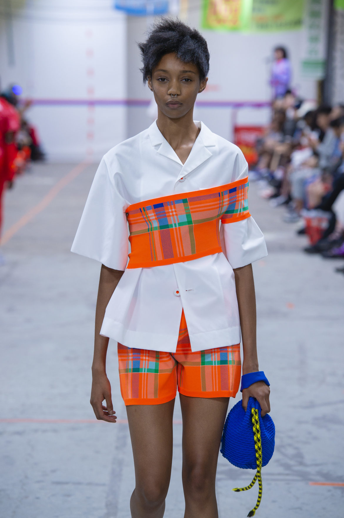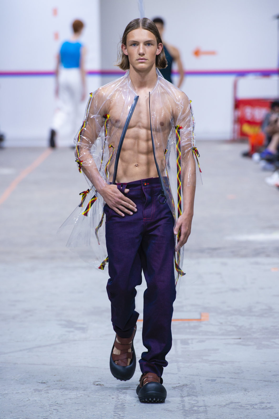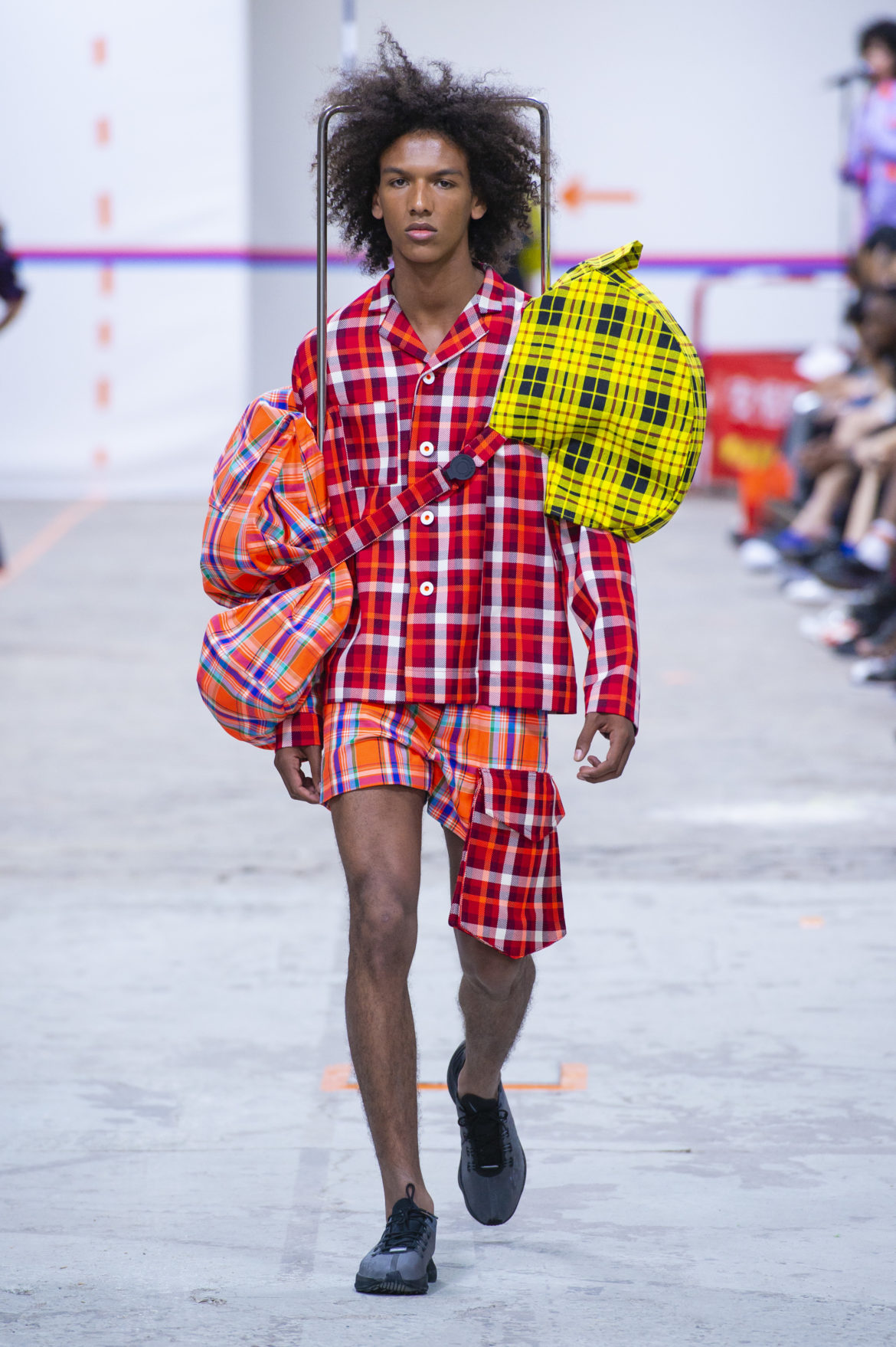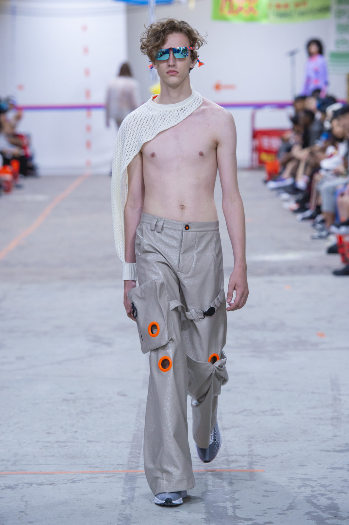 Angus Chiang’s SS19 collection focuses on the older generations preserved idea of city life. This image revolves around street art in Taiwan’s city corners known as the ‘transformer box’. The ‘transformer box’ holds much ambiguity within Taiwan, with many feeling that the presence is a hindrance whilst others argue that it allows an ageless, creative freedom. Aesthetics from each era compete with one another; each poster is patch-worked with something new, creating a masterpiece that precedes generations. Angus Chiang uses this to create a collage of Taiwan. The SS19 collection attempts to understand each individual’s story whilst viewing a new generation coexisting within an old. Looking at the everyday clothing of Aunts and Uncles at the local community centre, polo shirts, cropped pants and fake two pieces tops are reimagined in fun, youthful concepts. Chiang uses a hemming technique to interpret unruly lines and silhouettes. Through SS19, Chiang obscures gender, adding typically female elements such as strapless, backless and flounce into his collection and ‘breaking conventional wisdom’. The soft, warm, core colour comes from landscape paintings on ‘transformer boxes’. Chiang also creates a three-dimensional element through his use of denim and transparent fabric. Chiang not only explores the theme of spirit, but also has a strong focus on durability for SS19, adding leather and a plaid-print, materialized from 100% paper. Shoes are based on elders’ favorite cheap, plastic slippers and leather sandals. Combining the brand’s classic loafers and selected Leather, Chiang reinvents a fashion shoe for the elders through a fun and lively perspective. Classic pieces are re-announced in SS19, such as elastic band and outdoor climbing rope. The Taiwanese theme of ‘all in one’ also becomes a main design concept in which native’s are known to mix and match. SS19 introduces the multifunctional accessories through the ‘glasses necklace’ and ‘sling earrings’. Chiang’s SS19 collection is a multi-generational nod to Taiwanese culture. Notes to Editor As a further expression of Taiwanese culture, ANGUS CHIANG has worked with popular local brands: Wang De Chuan, PineApple Hill and Acera. Wang De Chuan’s Jinxuan Anshang Oolong Tea, PineApple Hill’s pure Chiayi pineapple cake and Acera’s yellow ceramic travel mug are placed together in the « Taiwanese Ga Ji La » retro bag echoing a warm-hearted and gift giving culture. Additionally, continuing the brands year’s fifth season, January Paris Fashion Week and March’s collaboration with NIKE at Shanghai Fashion Week, ANGUS CHIANG has selected NIKE EXP-X14 to echo with the main theme and add highlights to the show. Credits Taiwanese artists and National treasures: Jui-Chin Chiu and Wang-Hao Chang have both played a pivotal role in ANGUS CHIANG’s SS19 collection. Chiu is an artist who paints on transformer boxes and is the only Taiwanese citizen invited by the Swiss Alpine Museum to paint the transformer boxes in Bern, Switzerland. Chiu’s landscape paintings inspired the colours and reinterpretation seen throughout Chiang’s SS19 collection. Chang, who is often known as ‘information Grandpa’ for his work, teaching elders in local communities to use computers has lead groups of elders to create unique greeting graphics. Through this, Chang is narrowing the generation’s age gap. For SS19, ANGUS CHIANG will introduce a new music style, working with Taiwan Golden Melody Awards nominated Hip-Hop, Jazz Band, LE037+SOSS and Soul, Jazz vocalist 9m88. The SS19 catwalk will include a live performance by 9m88. Taiwanese artist, John Yuyi, is known for her unique tattooing. As SS19’s guest visional stylist, Yuyi will convey a different level of conflicting aesthetics through her distinctive perspective and taste. 9m88 and John Yuyi’s participation in the SS19 catwalk show creates a new-generation reunion, in which the former classmates have come together to complete SS19’s core concept and showcase the collaborative work of past generations.