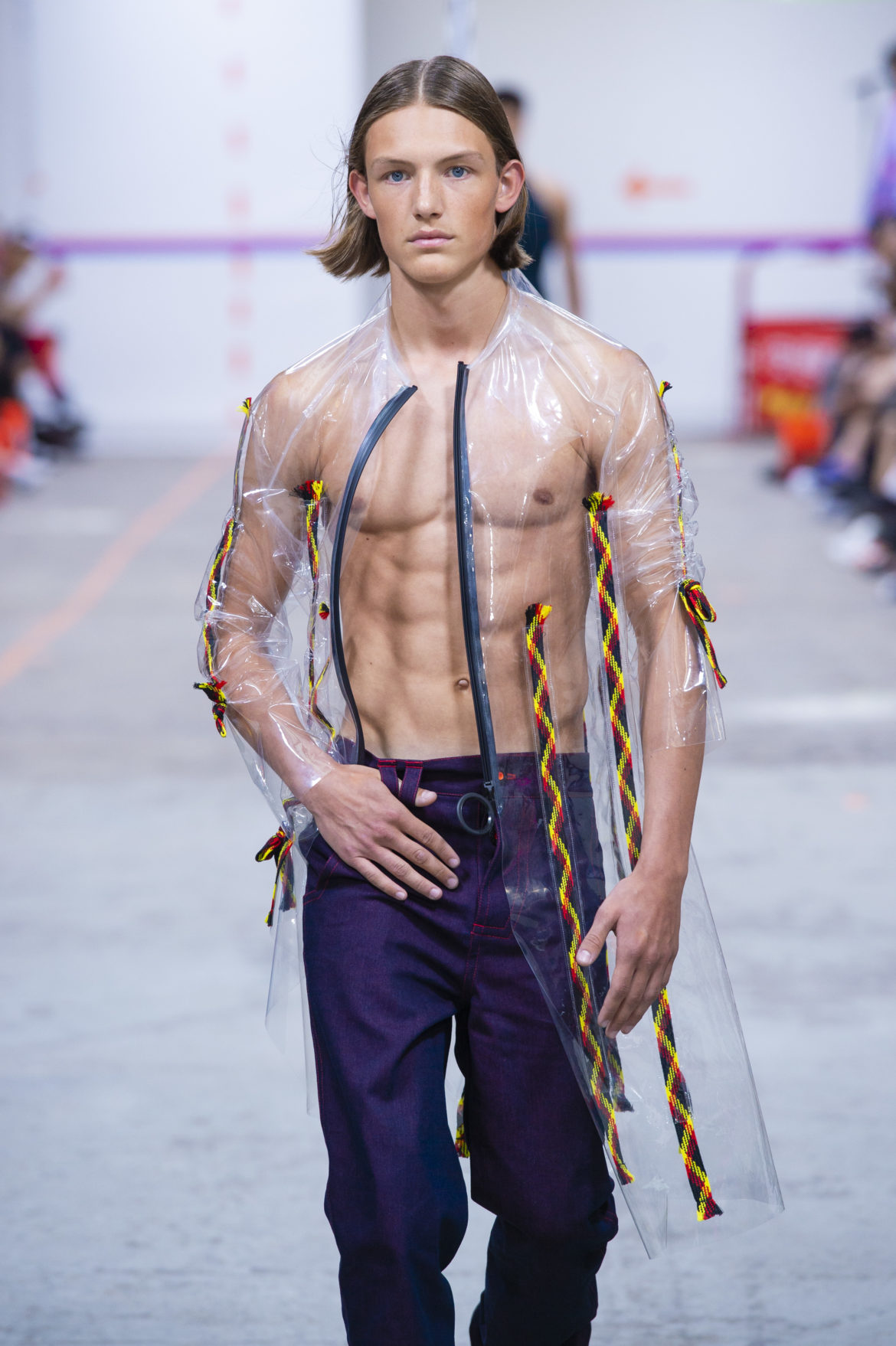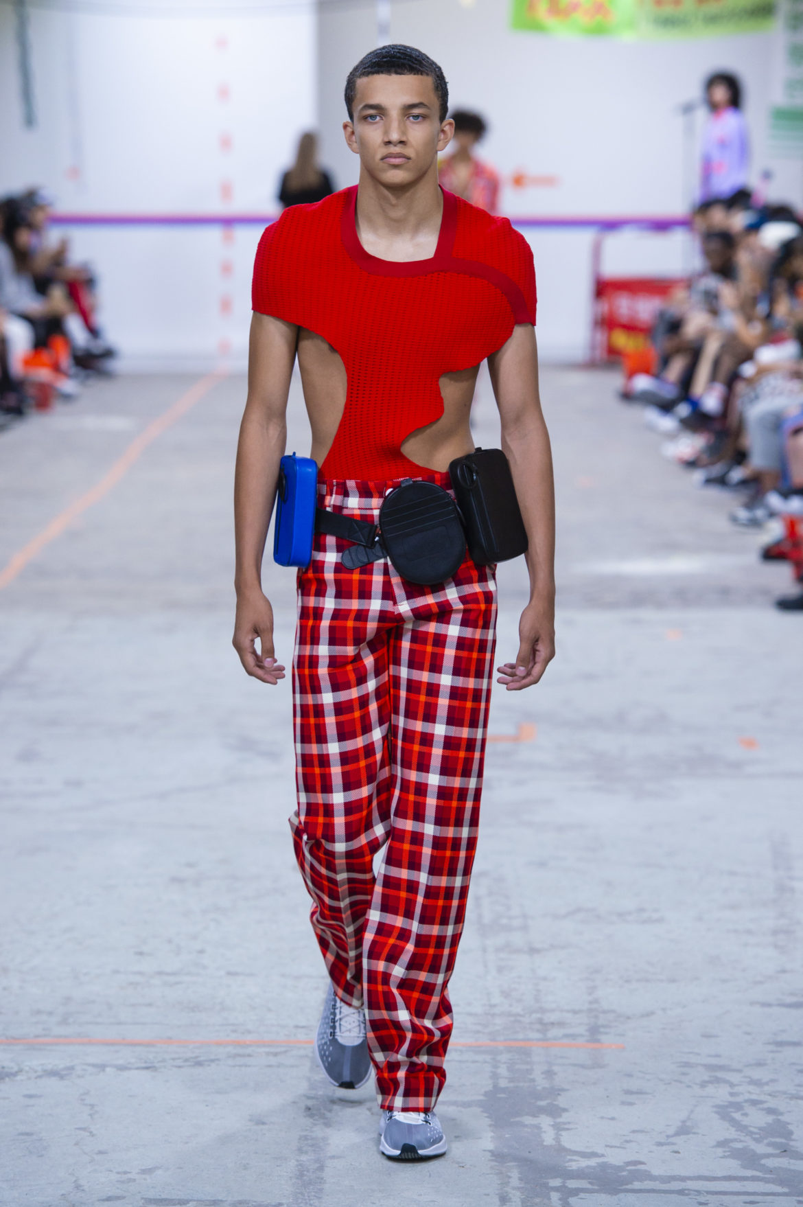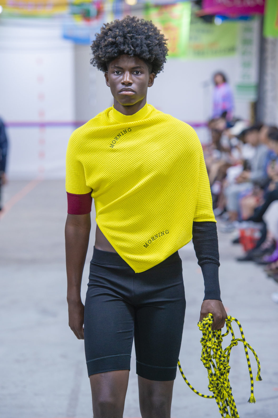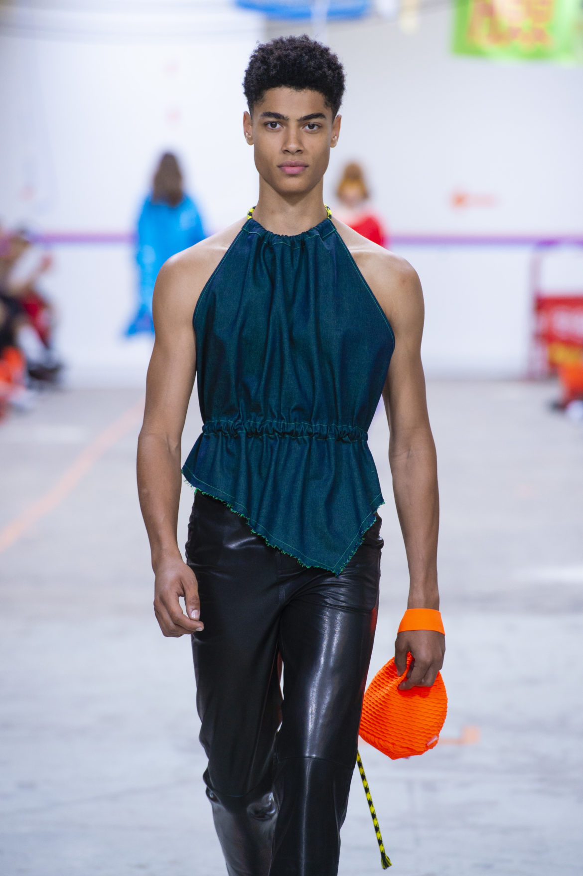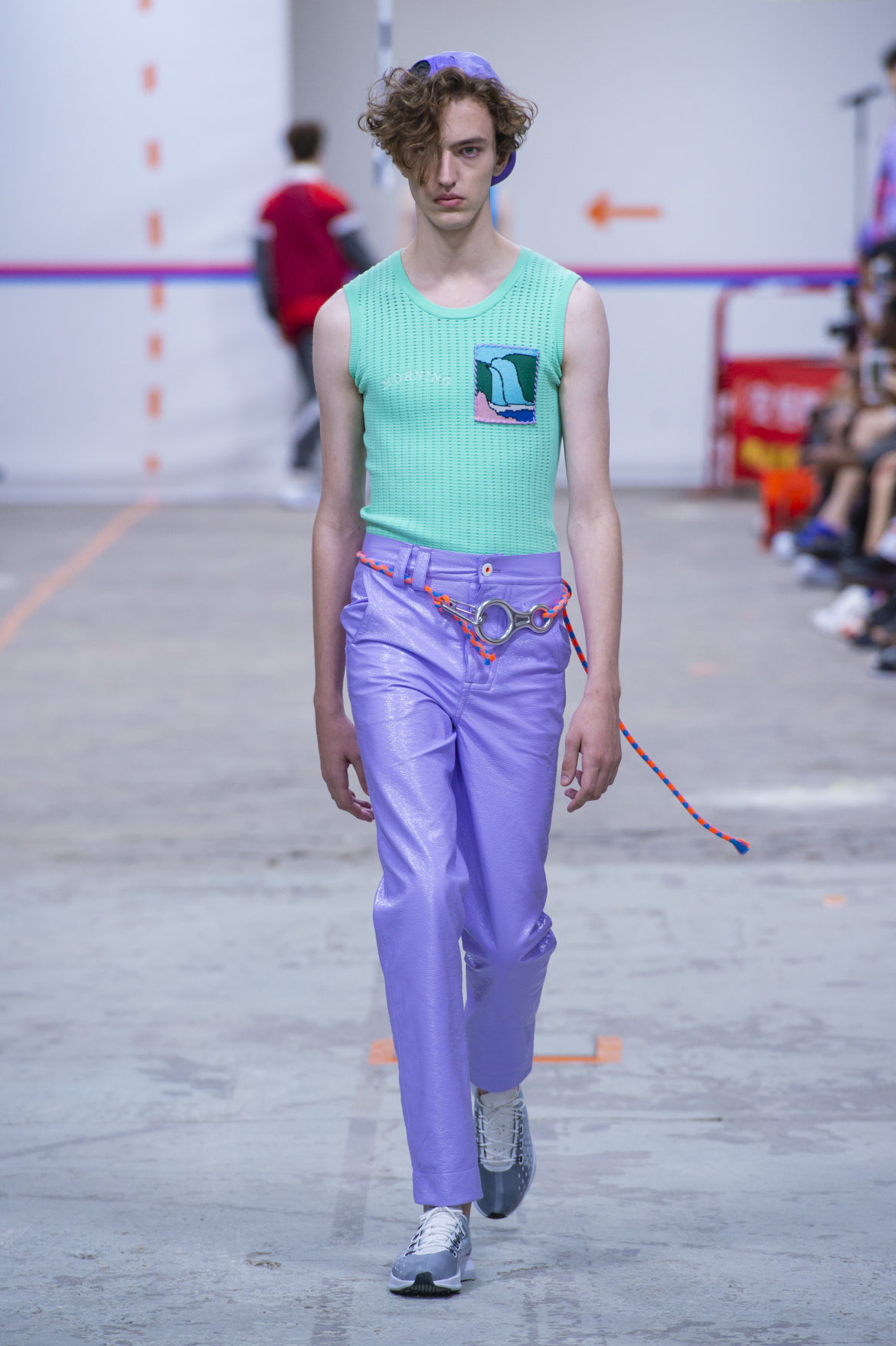 Angus Chiang’s SS19 collection focuses on the older generations preserved idea of city life. This image revolves around street art in Taiwan’s city corners known as the ‘transformer box’. The ‘transformer box’ holds much ambiguity within Taiwan, with many feeling that the presence is a hindrance whilst others argue that it allows an ageless, creative freedom. Aesthetics from each era compete with one another; each poster is patch-worked with something new, creating a masterpiece that precedes generations. Angus Chiang uses this to create a collage of Taiwan. The SS19 collection attempts to understand each individual’s story whilst viewing a new generation coexisting within an old. Looking at the everyday clothing of Aunts and Uncles at the local community centre, polo shirts, cropped pants and fake two pieces tops are reimagined in fun, youthful concepts. Chiang uses a hemming technique to interpret unruly lines and silhouettes. Through SS19, Chiang obscures gender, adding typically female elements such as strapless, backless and flounce into his collection and ‘breaking conventional wisdom’. The soft, warm, core colour comes from landscape paintings on ‘transformer boxes’. Chiang also creates a three-dimensional element through his use of denim and transparent fabric. Chiang not only explores the theme of spirit, but also has a strong focus on durability for SS19, adding leather and a plaid-print, materialized from 100% paper. Shoes are based on elders’ favorite cheap, plastic slippers and leather sandals. Combining the brand’s classic loafers and selected Leather, Chiang reinvents a fashion shoe for the elders through a fun and lively perspective. Classic pieces are re-announced in SS19, such as elastic band and outdoor climbing rope. The Taiwanese theme of ‘all in one’ also becomes a main design concept in which native’s are known to mix and match. SS19 introduces the multifunctional accessories through the ‘glasses necklace’ and ‘sling earrings’. Chiang’s SS19 collection is a multi-generational nod to Taiwanese culture. Notes to Editor As a further expression of Taiwanese culture, ANGUS CHIANG has worked with popular local brands: Wang De Chuan, PineApple Hill and Acera. Wang De Chuan’s Jinxuan Anshang Oolong Tea, PineApple Hill’s pure Chiayi pineapple cake and Acera’s yellow ceramic travel mug are placed together in the « Taiwanese Ga Ji La » retro bag echoing a warm-hearted and gift giving culture. Additionally, continuing the brands year’s fifth season, January Paris Fashion Week and March’s collaboration with NIKE at Shanghai Fashion Week, ANGUS CHIANG has selected NIKE EXP-X14 to echo with the main theme and add highlights to the show. Credits Taiwanese artists and National treasures: Jui-Chin Chiu and Wang-Hao Chang have both played a pivotal role in ANGUS CHIANG’s SS19 collection. Chiu is an artist who paints on transformer boxes and is the only Taiwanese citizen invited by the Swiss Alpine Museum to paint the transformer boxes in Bern, Switzerland. Chiu’s landscape paintings inspired the colours and reinterpretation seen throughout Chiang’s SS19 collection. Chang, who is often known as ‘information Grandpa’ for his work, teaching elders in local communities to use computers has lead groups of elders to create unique greeting graphics. Through this, Chang is narrowing the generation’s age gap. For SS19, ANGUS CHIANG will introduce a new music style, working with Taiwan Golden Melody Awards nominated Hip-Hop, Jazz Band, LE037+SOSS and Soul, Jazz vocalist 9m88. The SS19 catwalk will include a live performance by 9m88. Taiwanese artist, John Yuyi, is known for her unique tattooing. As SS19’s guest visional stylist, Yuyi will convey a different level of conflicting aesthetics through her distinctive perspective and taste. 9m88 and John Yuyi’s participation in the SS19 catwalk show creates a new-generation reunion, in which the former classmates have come together to complete SS19’s core concept and showcase the collaborative work of past generations.