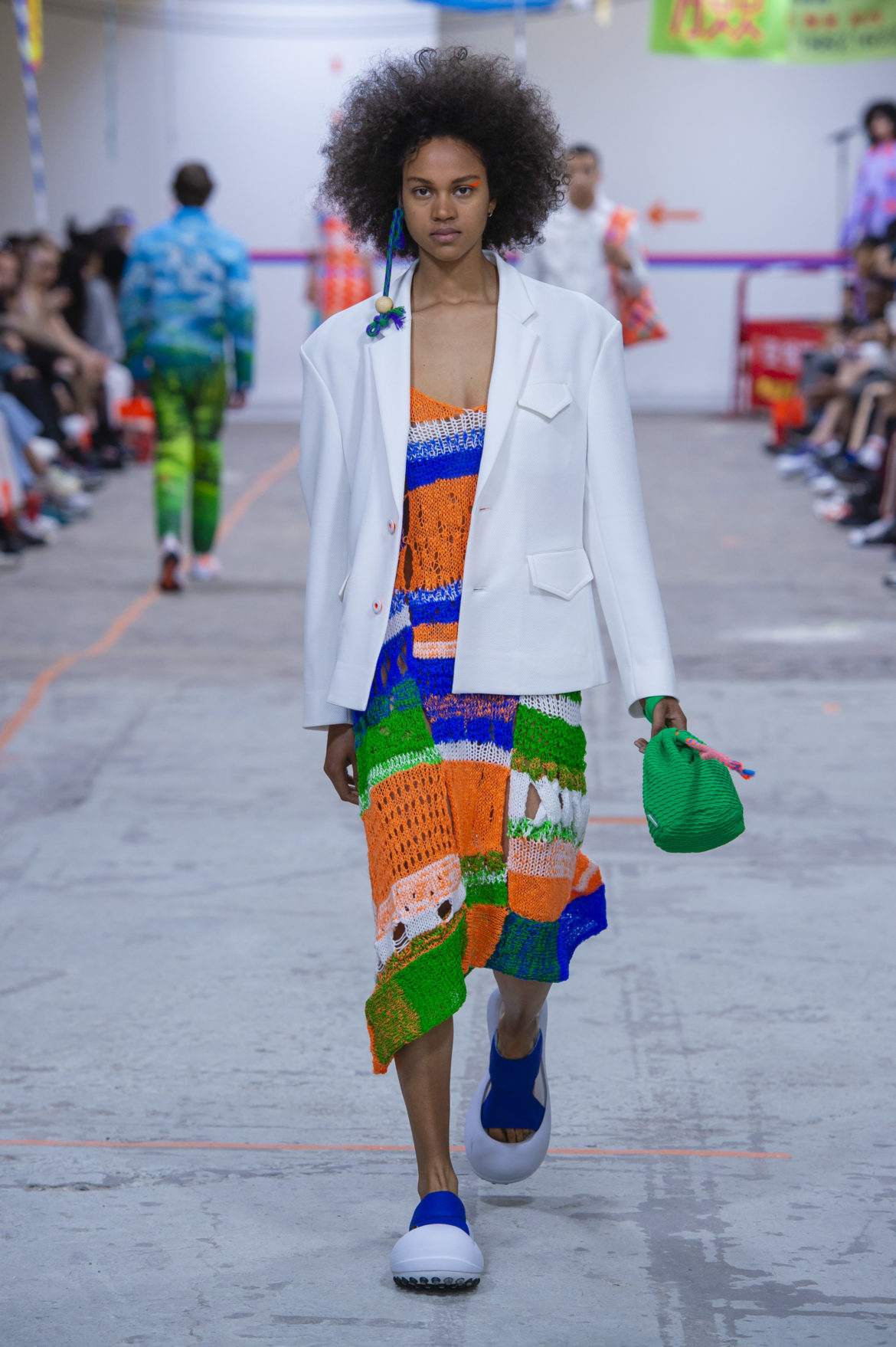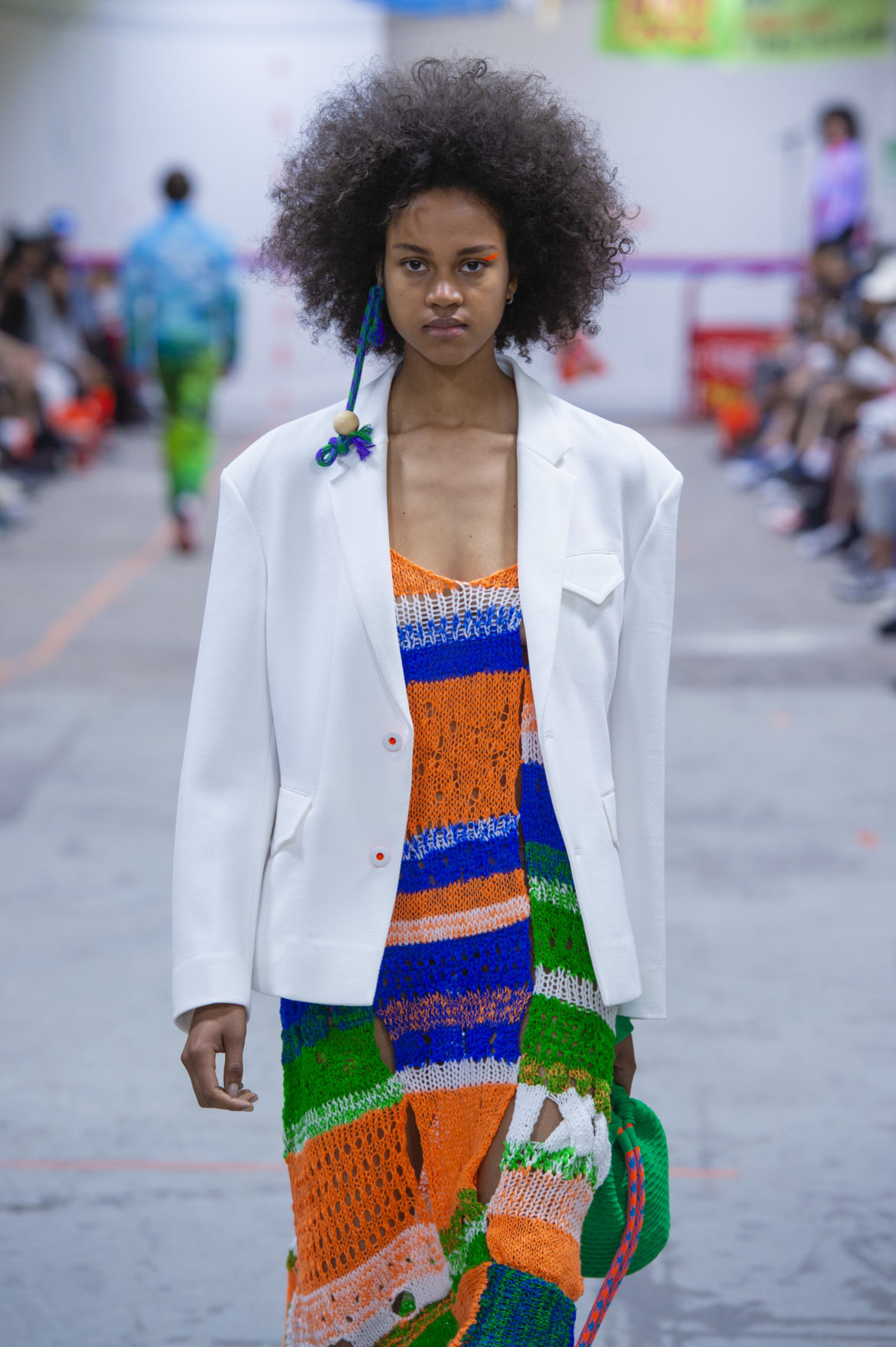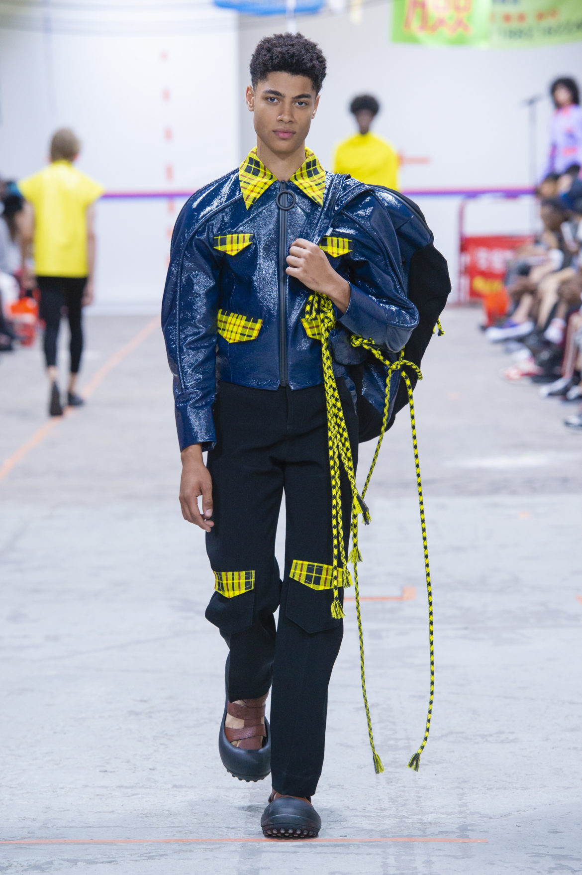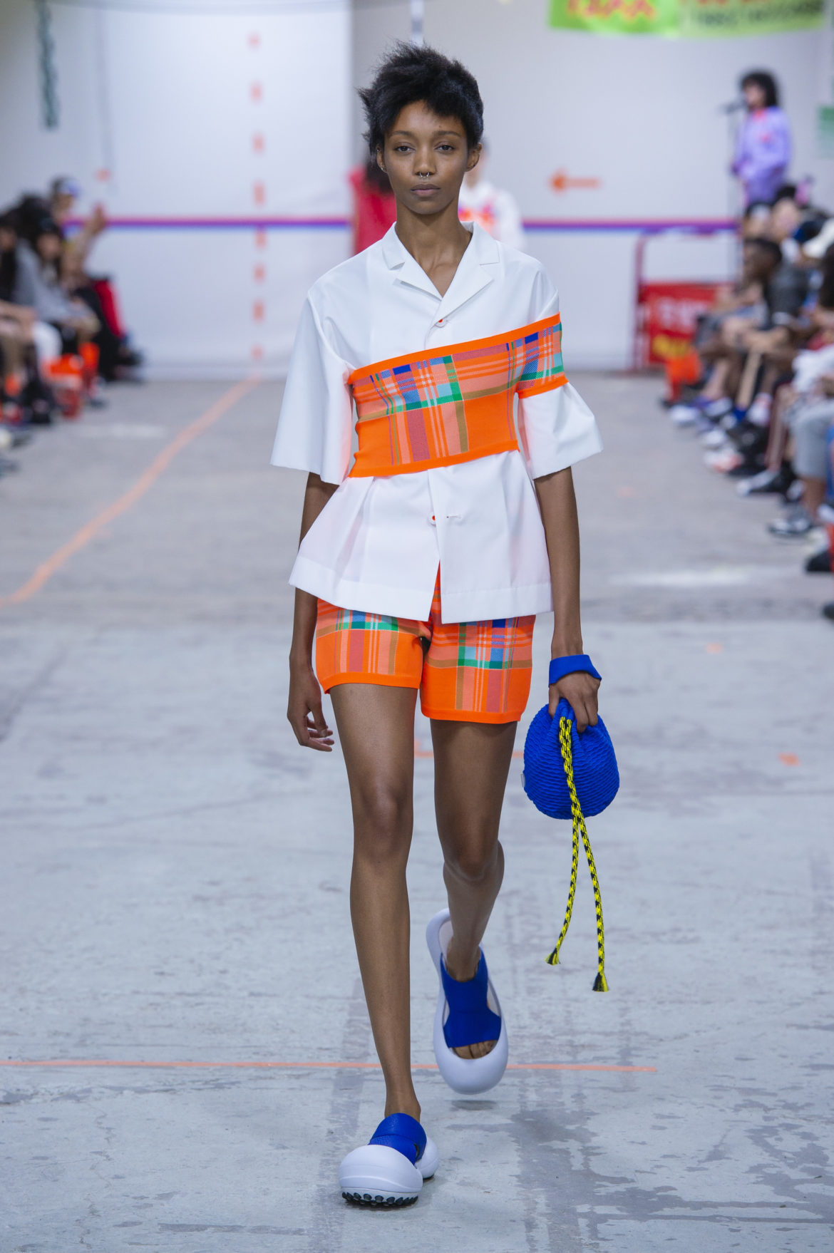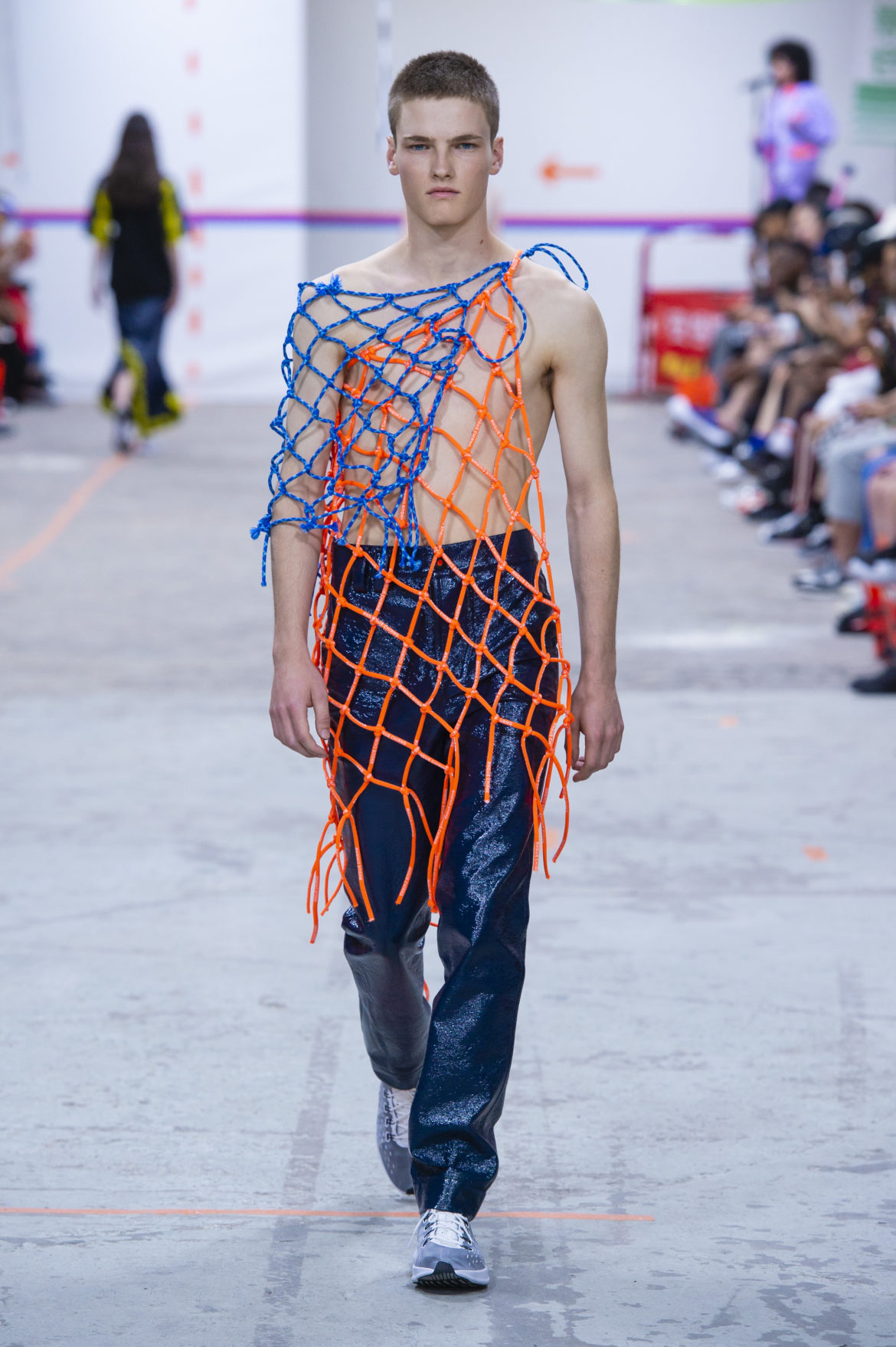 Angus Chiang’s SS19 collection focuses on the older generations preserved idea of city life. This image revolves around street art in Taiwan’s city corners known as the ‘transformer box’. The ‘transformer box’ holds much ambiguity within Taiwan, with many feeling that the presence is a hindrance whilst others argue that it allows an ageless, creative freedom. Aesthetics from each era compete with one another; each poster is patch-worked with something new, creating a masterpiece that precedes generations. Angus Chiang uses this to create a collage of Taiwan. The SS19 collection attempts to understand each individual’s story whilst viewing a new generation coexisting within an old. Looking at the everyday clothing of Aunts and Uncles at the local community centre, polo shirts, cropped pants and fake two pieces tops are reimagined in fun, youthful concepts. Chiang uses a hemming technique to interpret unruly lines and silhouettes. Through SS19, Chiang obscures gender, adding typically female elements such as strapless, backless and flounce into his collection and ‘breaking conventional wisdom’. The soft, warm, core colour comes from landscape paintings on ‘transformer boxes’. Chiang also creates a three-dimensional element through his use of denim and transparent fabric. Chiang not only explores the theme of spirit, but also has a strong focus on durability for SS19, adding leather and a plaid-print, materialized from 100% paper. Shoes are based on elders’ favorite cheap, plastic slippers and leather sandals. Combining the brand’s classic loafers and selected Leather, Chiang reinvents a fashion shoe for the elders through a fun and lively perspective. Classic pieces are re-announced in SS19, such as elastic band and outdoor climbing rope. The Taiwanese theme of ‘all in one’ also becomes a main design concept in which native’s are known to mix and match. SS19 introduces the multifunctional accessories through the ‘glasses necklace’ and ‘sling earrings’. Chiang’s SS19 collection is a multi-generational nod to Taiwanese culture. Notes to Editor As a further expression of Taiwanese culture, ANGUS CHIANG has worked with popular local brands: Wang De Chuan, PineApple Hill and Acera. Wang De Chuan’s Jinxuan Anshang Oolong Tea, PineApple Hill’s pure Chiayi pineapple cake and Acera’s yellow ceramic travel mug are placed together in the « Taiwanese Ga Ji La » retro bag echoing a warm-hearted and gift giving culture. Additionally, continuing the brands year’s fifth season, January Paris Fashion Week and March’s collaboration with NIKE at Shanghai Fashion Week, ANGUS CHIANG has selected NIKE EXP-X14 to echo with the main theme and add highlights to the show. Credits Taiwanese artists and National treasures: Jui-Chin Chiu and Wang-Hao Chang have both played a pivotal role in ANGUS CHIANG’s SS19 collection. Chiu is an artist who paints on transformer boxes and is the only Taiwanese citizen invited by the Swiss Alpine Museum to paint the transformer boxes in Bern, Switzerland. Chiu’s landscape paintings inspired the colours and reinterpretation seen throughout Chiang’s SS19 collection. Chang, who is often known as ‘information Grandpa’ for his work, teaching elders in local communities to use computers has lead groups of elders to create unique greeting graphics. Through this, Chang is narrowing the generation’s age gap. For SS19, ANGUS CHIANG will introduce a new music style, working with Taiwan Golden Melody Awards nominated Hip-Hop, Jazz Band, LE037+SOSS and Soul, Jazz vocalist 9m88. The SS19 catwalk will include a live performance by 9m88. Taiwanese artist, John Yuyi, is known for her unique tattooing. As SS19’s guest visional stylist, Yuyi will convey a different level of conflicting aesthetics through her distinctive perspective and taste. 9m88 and John Yuyi’s participation in the SS19 catwalk show creates a new-generation reunion, in which the former classmates have come together to complete SS19’s core concept and showcase the collaborative work of past generations.