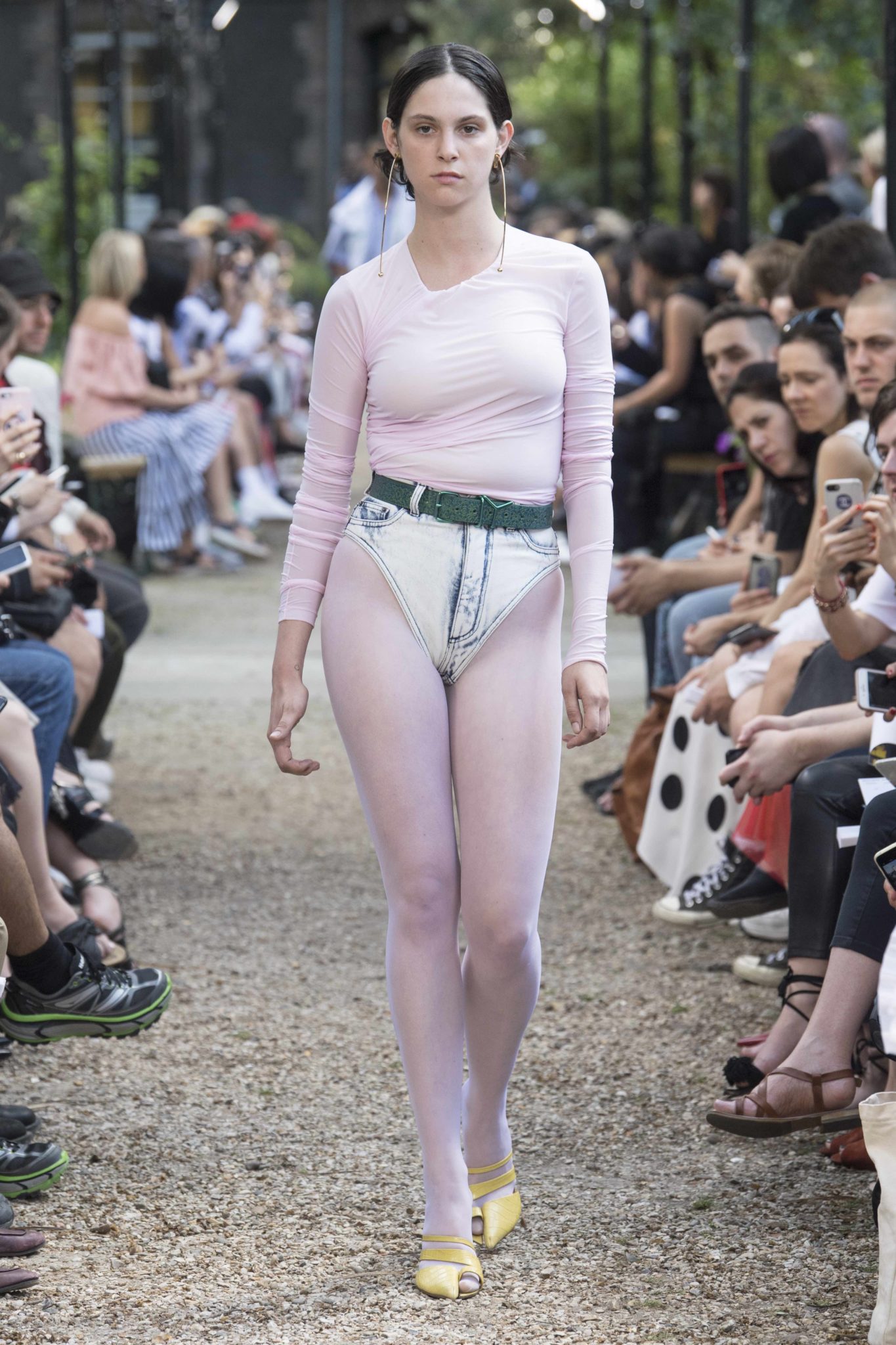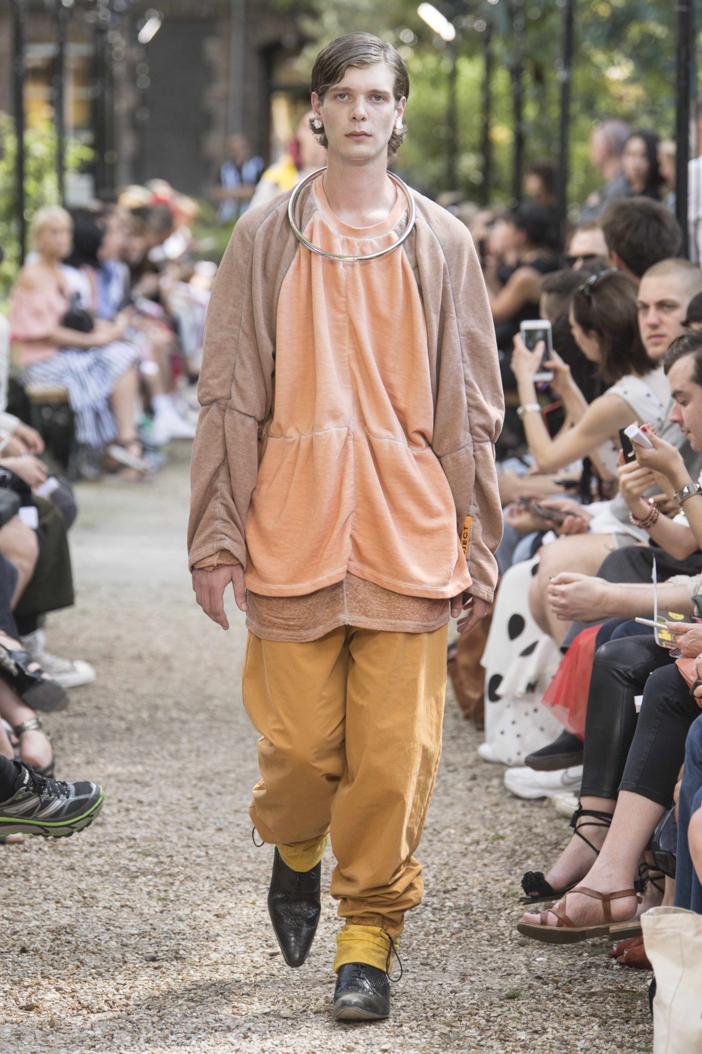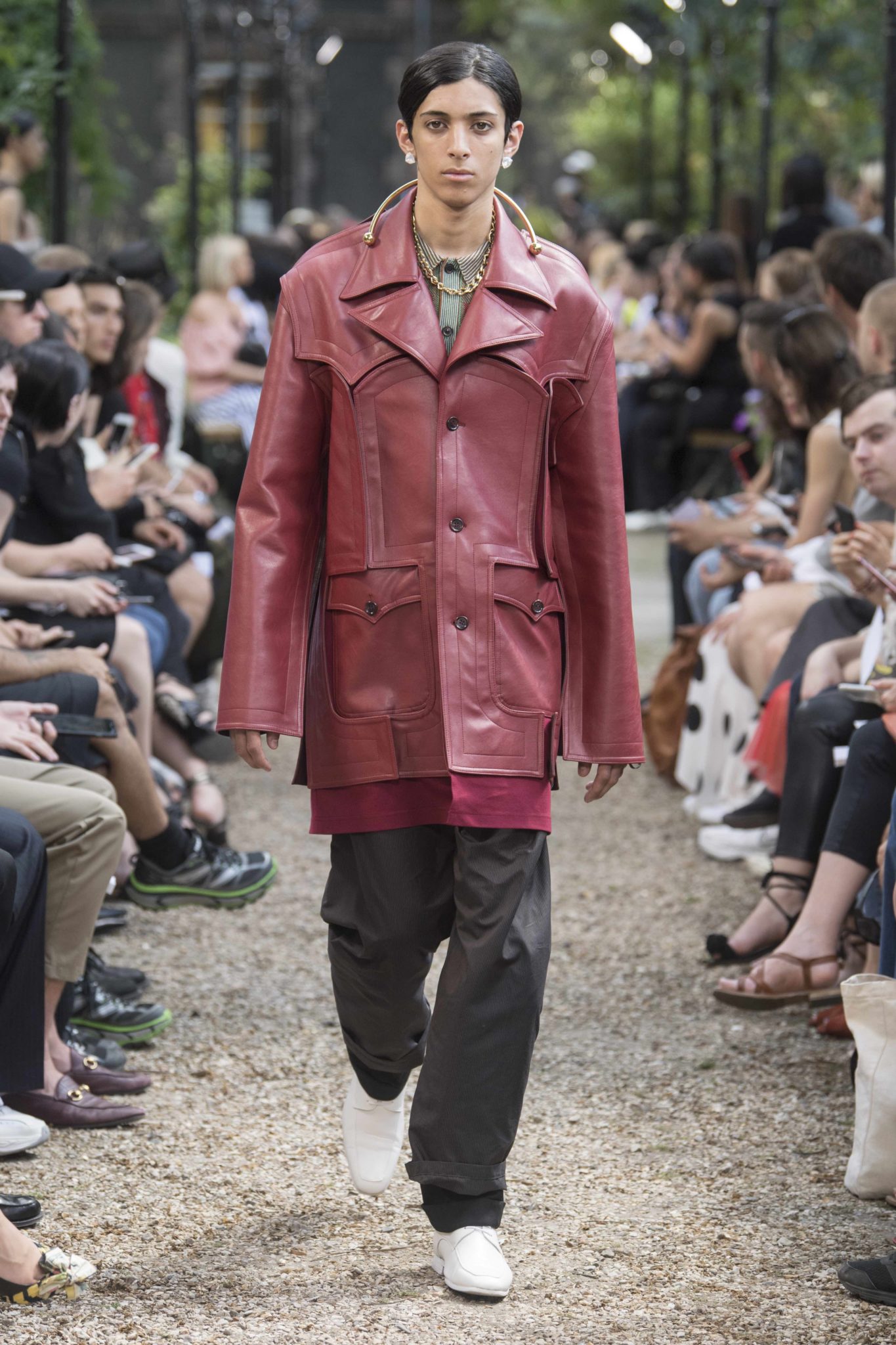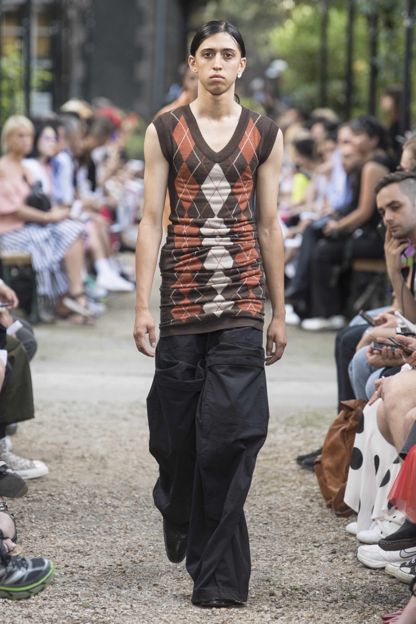 La collection SS19 introduit également une nouvelle technique de travail des volumes, avec des constructions 3D « pop out » sur les vestes en denim et jeans. Des tissus polychromes sont retravaillés à la main, percés par des clous décoratifs.