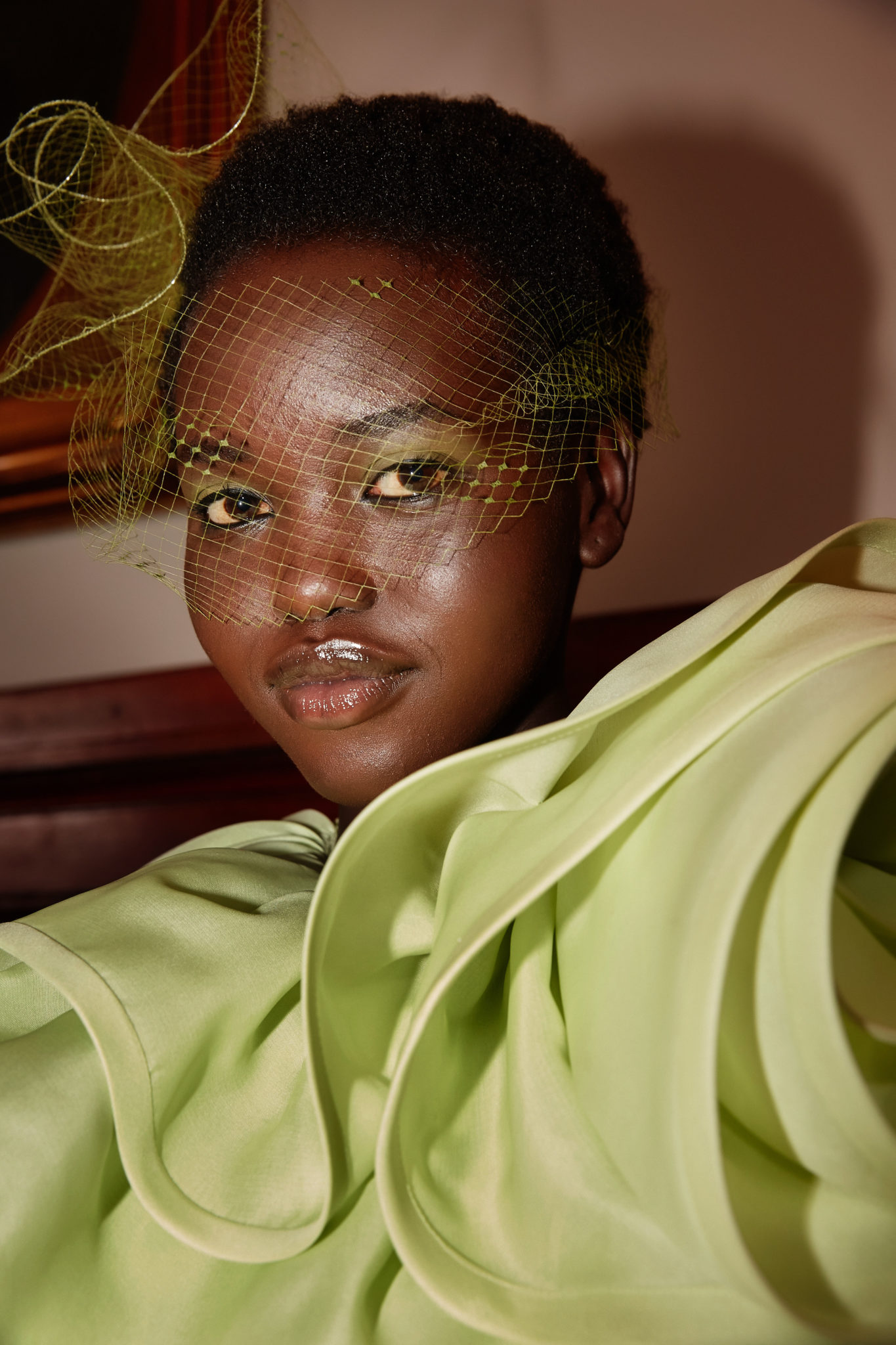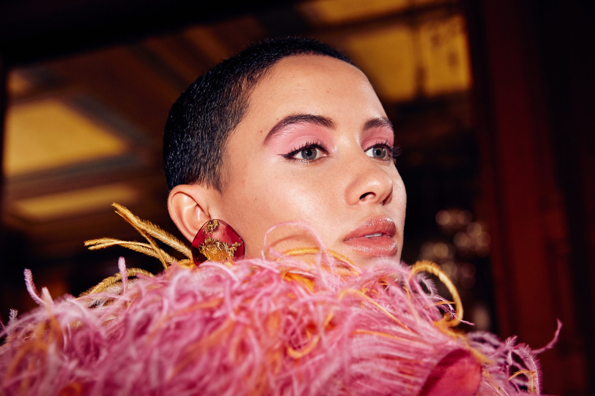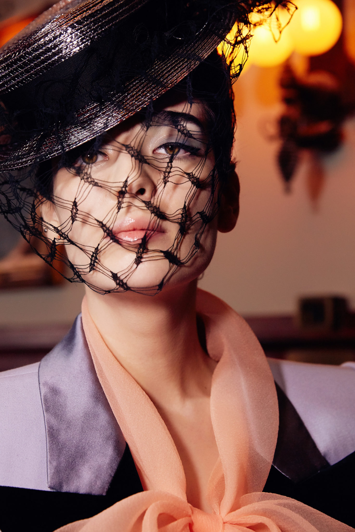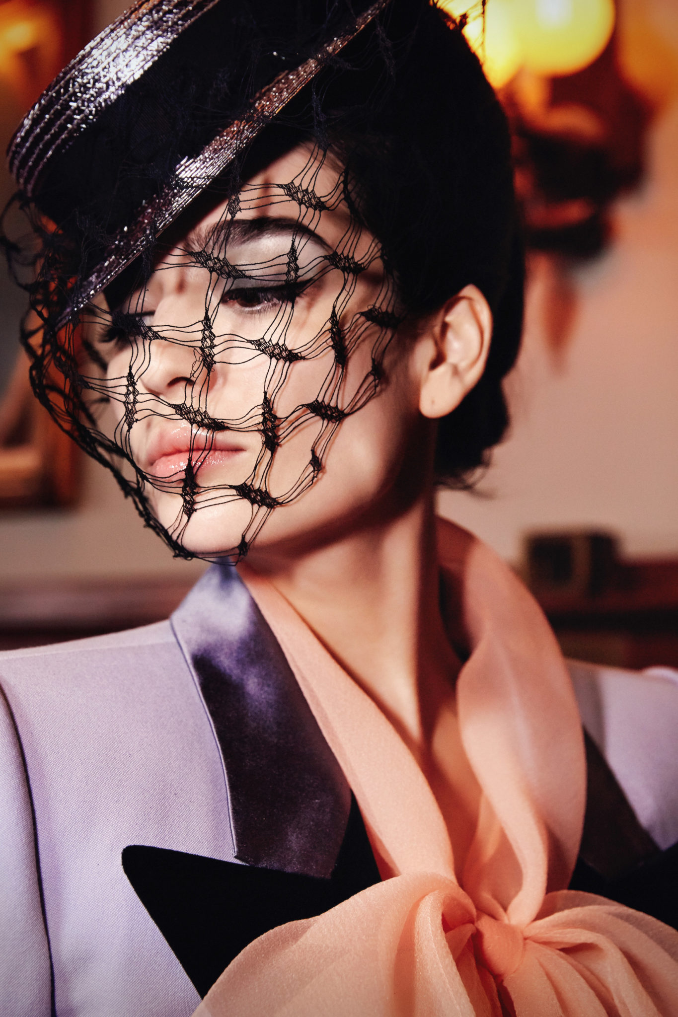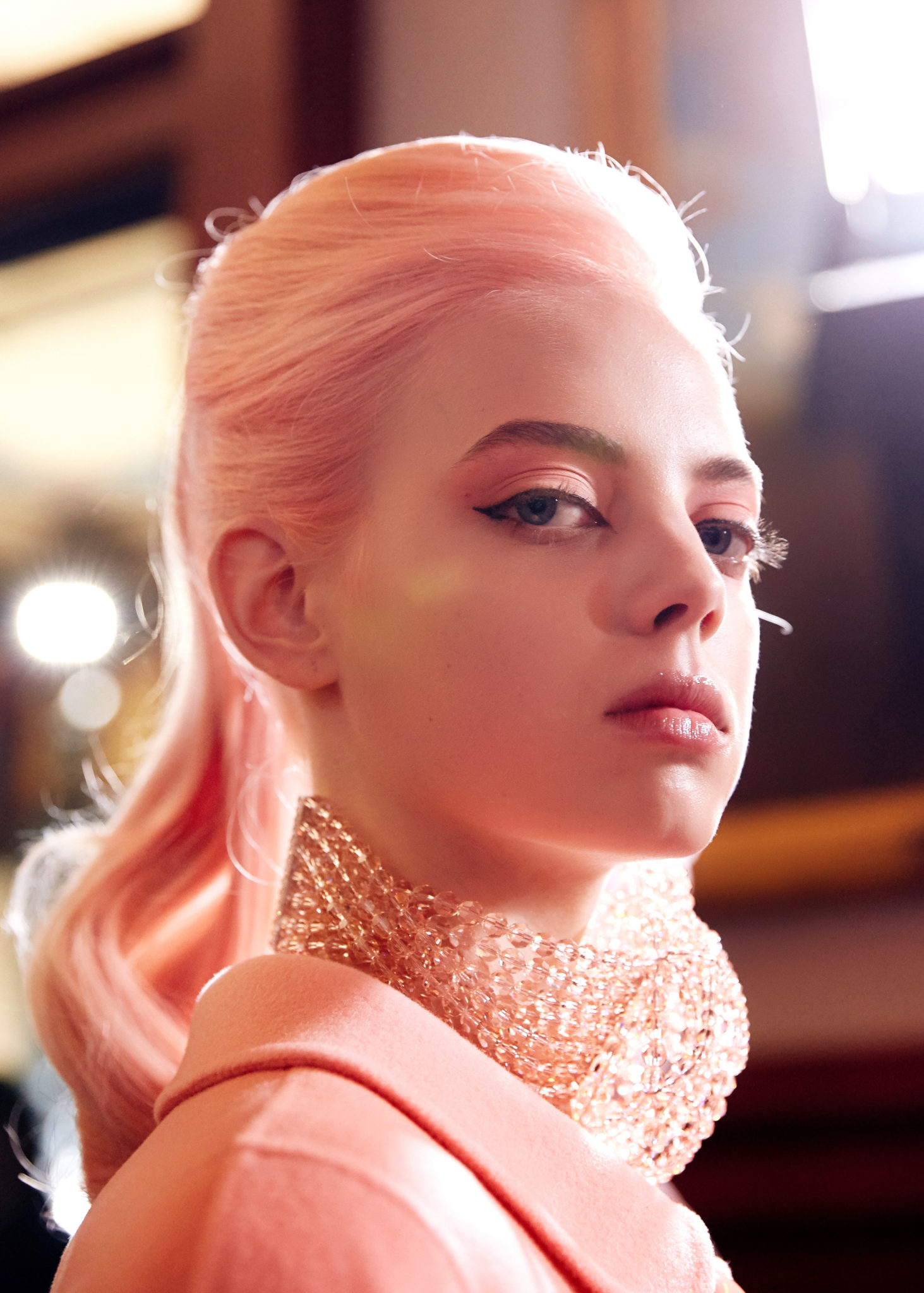 conseil beauté: il n’y a pas eu d’application de blush au teint pour ne pas donner un côté trop “retro” au look