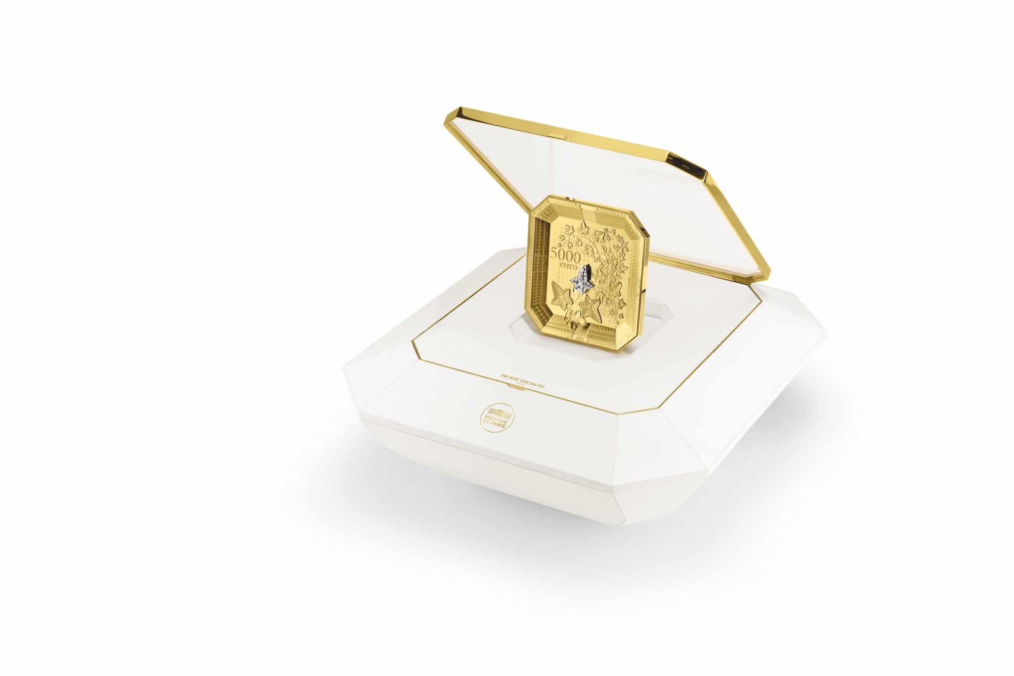 En 2018, la Monnaie de Paris et Boucheron imaginent, dans un dialogue abouti entre haute-joaillerie et frappe du métal, une monnaie d’un kilo en or pur, sertie de diamants, qui célèbre majestueusement l’alliance de leurs deux patrimoines.