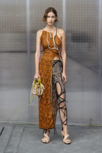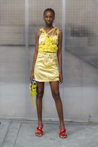 Marine Serre, Koché, BOTH ou Anrealage semblent avoir chacun émis une réponse à ce constat. La » jeune génération » de créateur- si tenté que le terme « jeune » ai un sens à la vue de la maturité de leur projet– donne de la profondeur à la mode ; elle,cette simple « vanité » esthétique. Introduire un échange entre les cultures, les classes sociales, entre la nature et les technologies : autant de projets qui ont été au centre des propositions vestimentaires « post-post moderne ». S’il faut utiliser des repères générationels, cette journée rappelle les années 80 – pas esthétiquement-mais une évocation du tournant qui se trame alors. L’arrivée dans le champ de la mode, d’une réflexion post-moderne : une manière de remettre en question un système de la mode en inadéquation avec le contexte social. Ça donne un refus du partage genré des vestiaires chez Issey Myake ou Rei Kawakubo. Pour Galliano ou McQueen c’est la place du beau, de l’abject comme archétype moderne qui semblent faire tâche. Margiela explorera tous ces problèmes avec des vêtements « inachevés ». La mode se cite car elle a besoin de changer son système. Alors, il serait peu constructif de comparer Marine Serre à ce qui a déjà était fait puisqu’il s’agit d’un défilé qui invite à penser un nouveau système de la mode. Une mode qui peut s’emparer des stéréotypes puis les réfondre dans des produits: des baskets Made In China chez BOTH, ou des manteaux pluriculturels chez Koché. Pendant ce temps là, la garde de l’aura couture française repeint la Tour Eiffel en blanc et fait jaillir un podium des eaux. Apparemment les 0,8cm d’eau chez Saint Laurent, ont plutôt symbolisé la perte narcissique d’une maison dans son reflet plutôt qu’une « renaissance ».