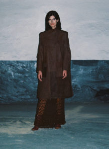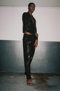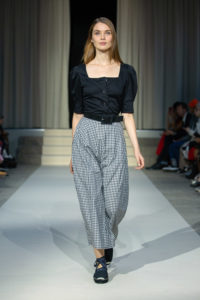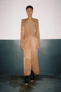 The Situationist est crée en 2015 par Irakli Rusadze, un jeune créateur Géorgien. Pour la deuxième fois il présente sa collection à Paris. Une collection ou il y a des hommes et des femmes, des robes et des costumes,des tranches cosat et des robes qu’on qualifiera de « sexy » si l’on respecte la grammaire des magazines » féminins ». Le créateur confiait en mars dernier à Fashion Network « J’ai grandi entouré de femmes géorgiennes qui faisaient face aux défis quotidiens de la Géorgie post-soviétique, où le concept de féminité est directement lié à la force intérieure de la femme (…) C’est pour cette raison que mes habits ne parlent pas de la forme du corps, c’est la forme de la personnalité que je souhaite présenter ». Rien de misérabiliste dans l’esthétique de ces vêtements. Plutôt que de réduire ces femmes à des guerrières affranchies ou victimes – en somme une flopée de stéréotypes, les pièces de cette collection explorent le lien entre l’identité nationale Géorgienne et les constructions identitaires de la jeunesse actuelle. Le résultat de ce dialogue : des pièces monochromes, du tailoring, des constructions géométriques et des lignes fortes.