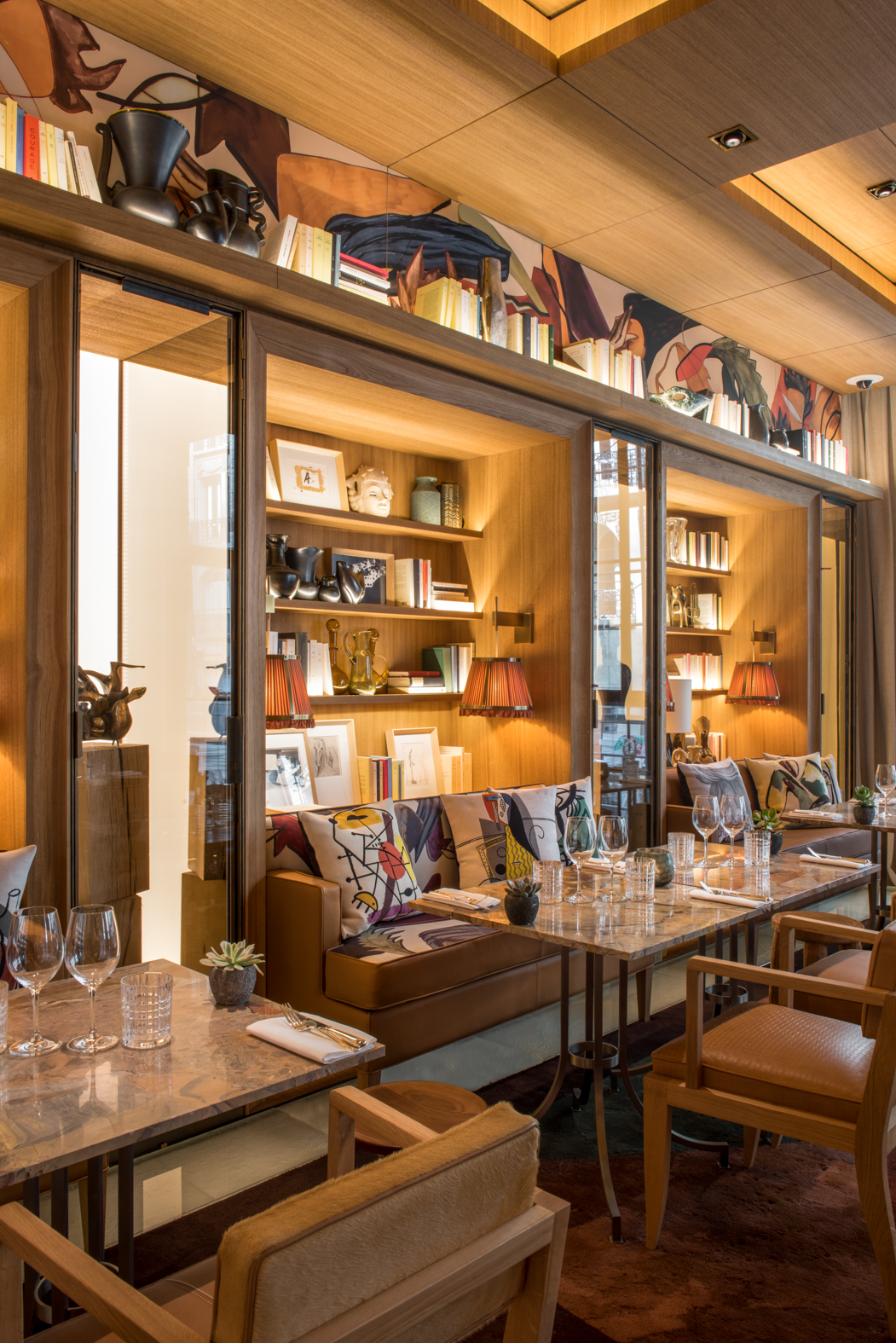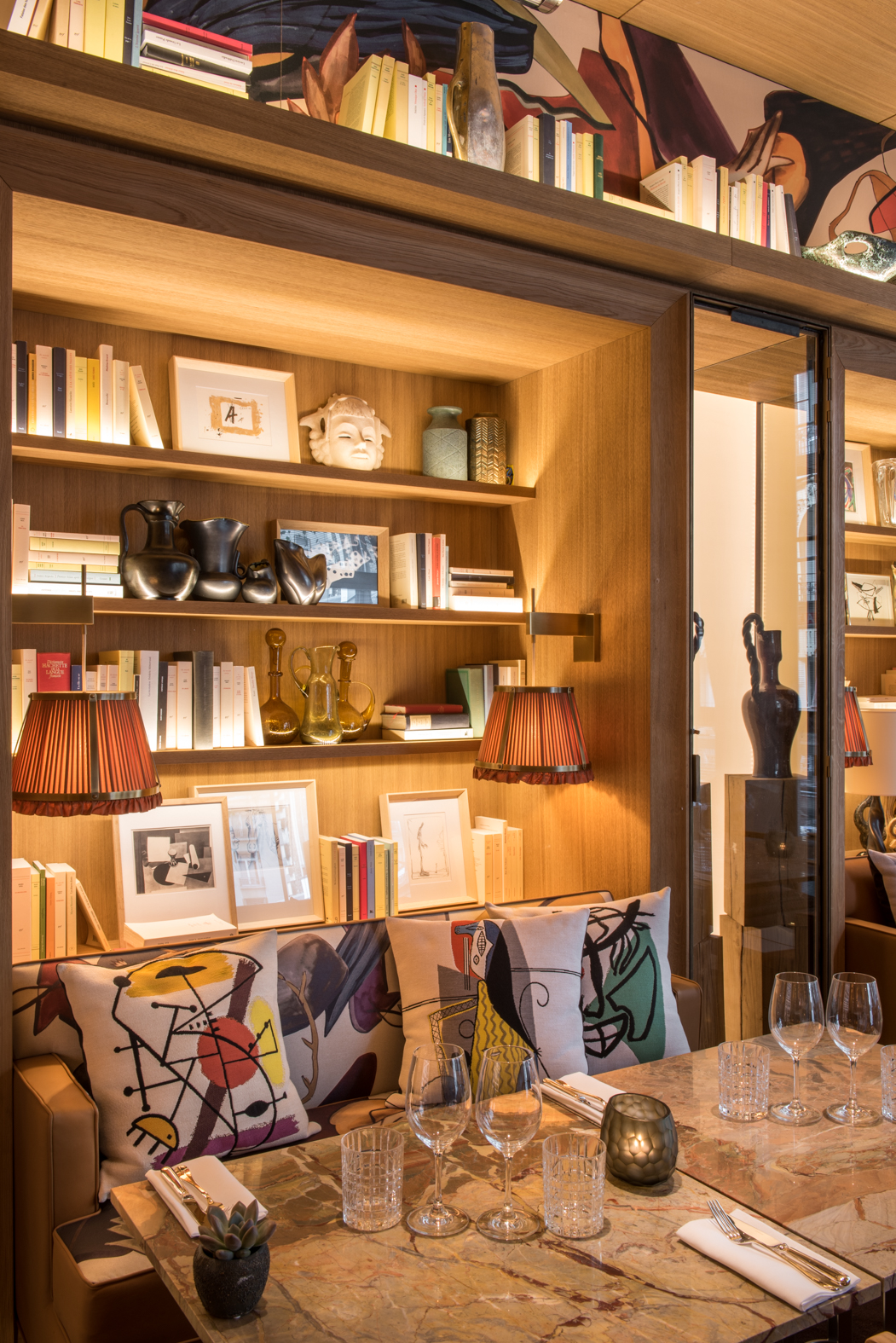 Le restaurant est une porte d’entrée vers l’univers de Brach. Situé au rez-de-chaussée et accessible à tous, le restaurant du Brach est convivial et généreux. Le Restaurant est une immersion dans toutes les cuisines du bassin méditerranéen. Résolument saine, volontairement basée sur un équilibre et des saveurs, la cuisine s’articule autour des produits de ces terroirs baignés de soleil, d’épices et d’odeurs d’ailleurs, sélectionnés auprès de producteurs inspirés et inspirants. « Je ne sais pas si c’est la cuisine d’aujourd’hui, ni celle probablement de demain, c’est juste la cuisine que j’ai envie de faire maintenant » confie le chef Adam Bentalha. C’est à Paris qu’Adam Bentalha a fait ses armes dans les plus grandes cuisines parisiennes, celle du Ritz, du Shangri-La, du Royal Monceau ou encore du Prince de Galles. Chef Exécutif du Brach, sa philosophie est simple : la cuisine peut être saine et équilibrée sans perdre le goût et la gourmandise. La cuisine est une histoire de rencontres : celles entre des producteurs et des gourmets, entre le bien-être et le bien-manger. Derrière l’impressionnant comptoir de 20 mètres de long ouvert sur les cuisines, s’alignent pâtisserie, bar à cocktail, épicerie fine, armoire à légumes frais, caves à vins et à fromages. La salle peut accueillir jusqu’à 160 couverts répartis entre le comptoir, les tables d’hôtes et les tables plus intimes. Une vingtaine de tables sont dressées sur la terrasse couverte du restaurant. Imaginé par Philippe Starck, chaleureux, confortable, intemporel, c’est un espace aux multiples influences culturelles qui, comme la cuisine, invite au voyage et au partage. Les matières brutes, chêne naturel, métal, cuir et marbre, créent une atmosphère chaleureuse. Les lumières chaudes révèlent des objets insolites, des surprises, des sculptures et oeuvres d’art inattendues. Ara Starck a réalisé la peinture murale telle une balade surréaliste d’abérrations poétiques qui courent s’accrochant les unes aux autres au fil de la toile à la manière d’une comptine pour ne faire qu’une seule boucle. DJ set les jeudis, vendredis, samedis soirs.