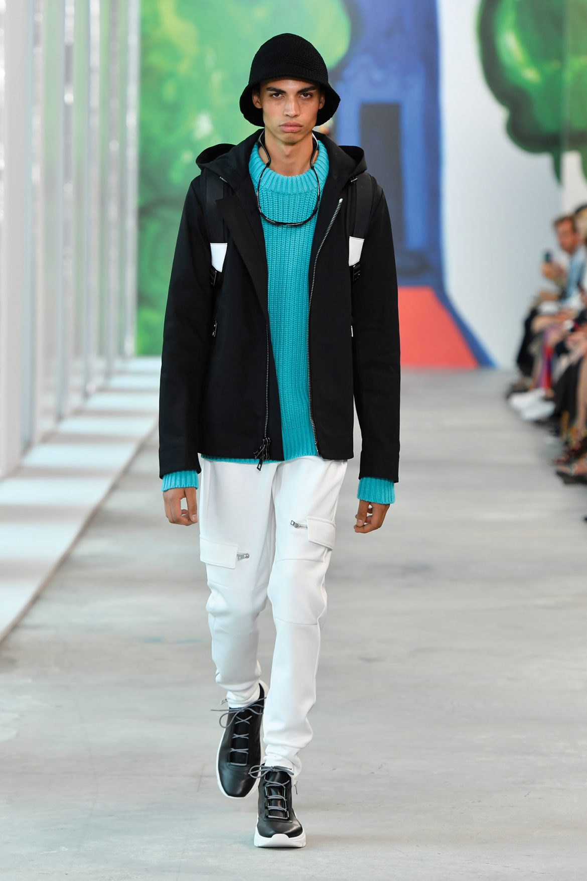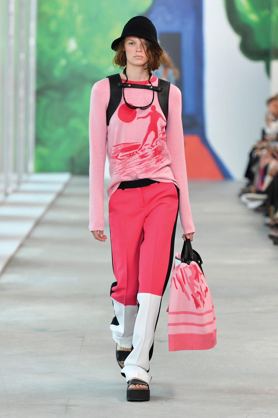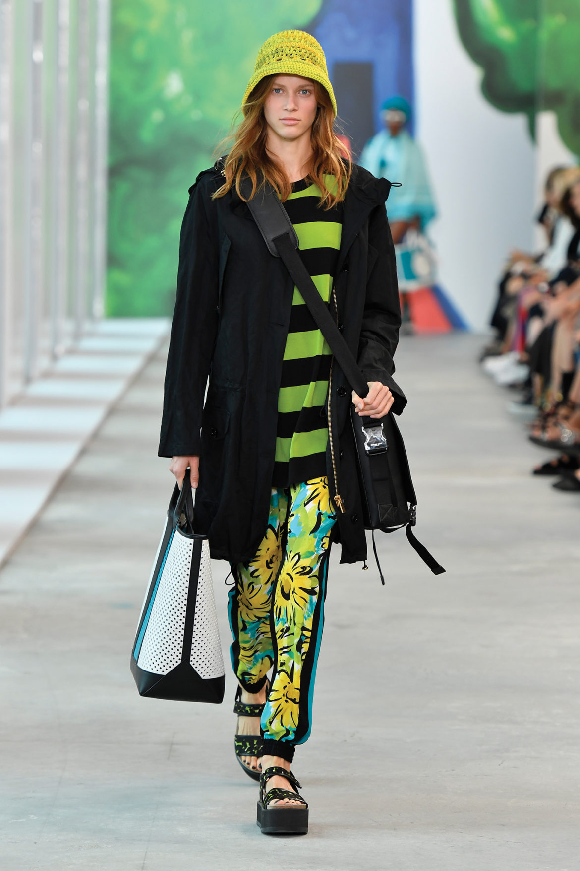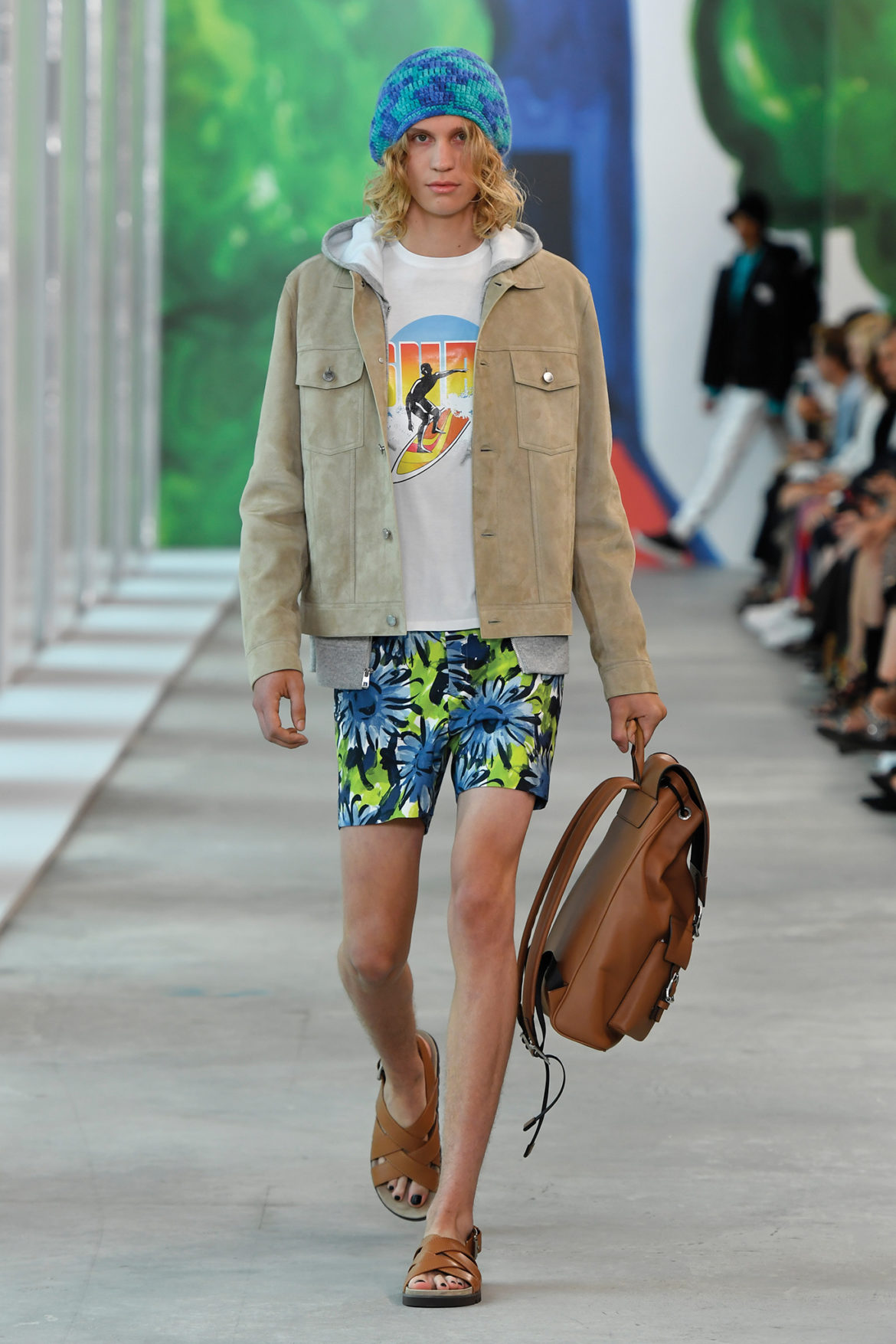 Global getaway was the theme of Michael Kors’ Spring 2019 runway show, which took place this morning at 10 AM in New York City. From the venue—Pier 17, in the city’s historic and newly revitalized Seaport District—to the original Christina Zimpel artwork and the clothes themselves, the show celebrated the spirit and style of the modern globe-trotter.