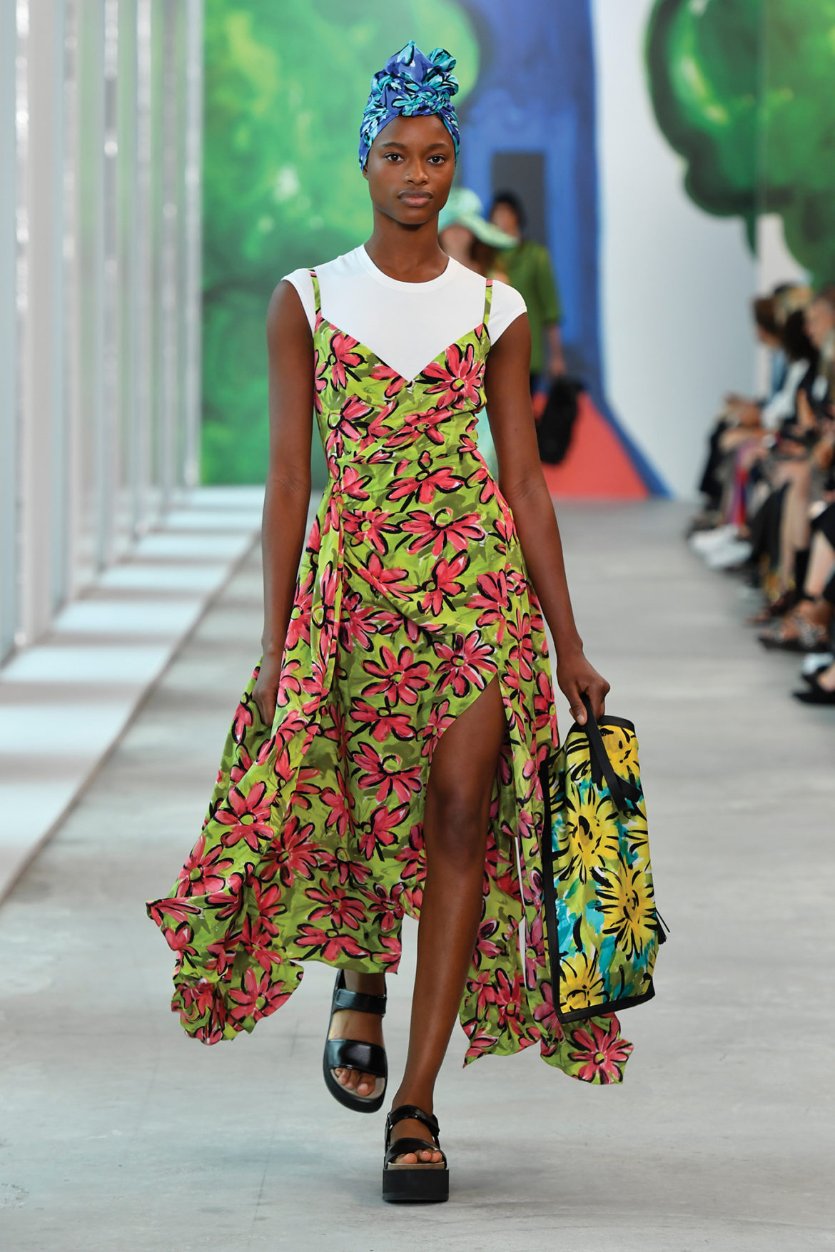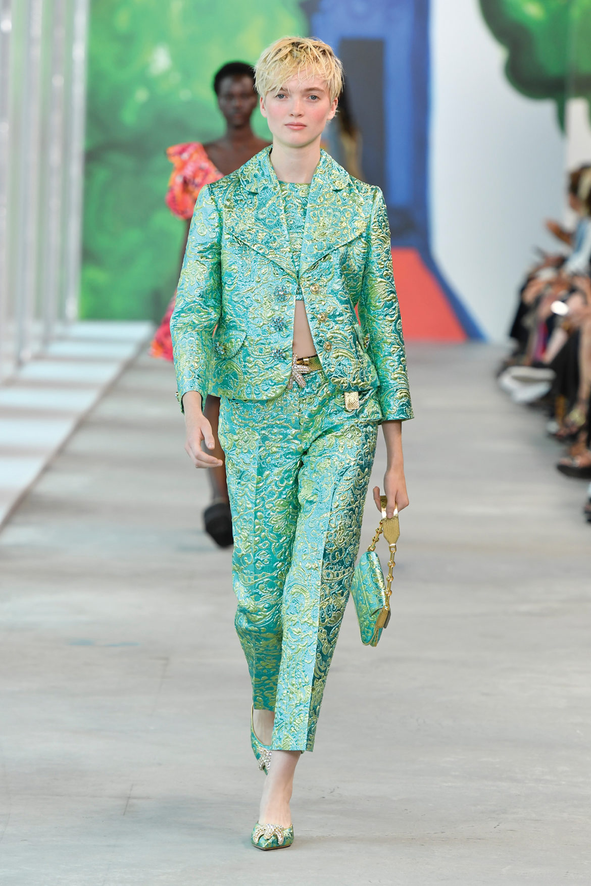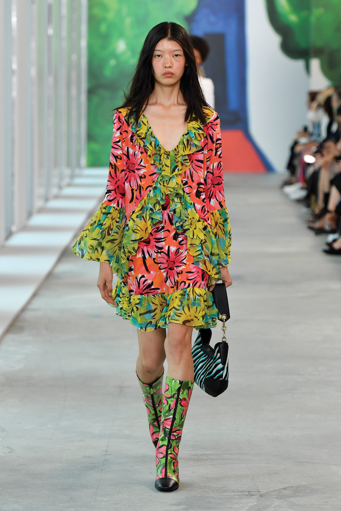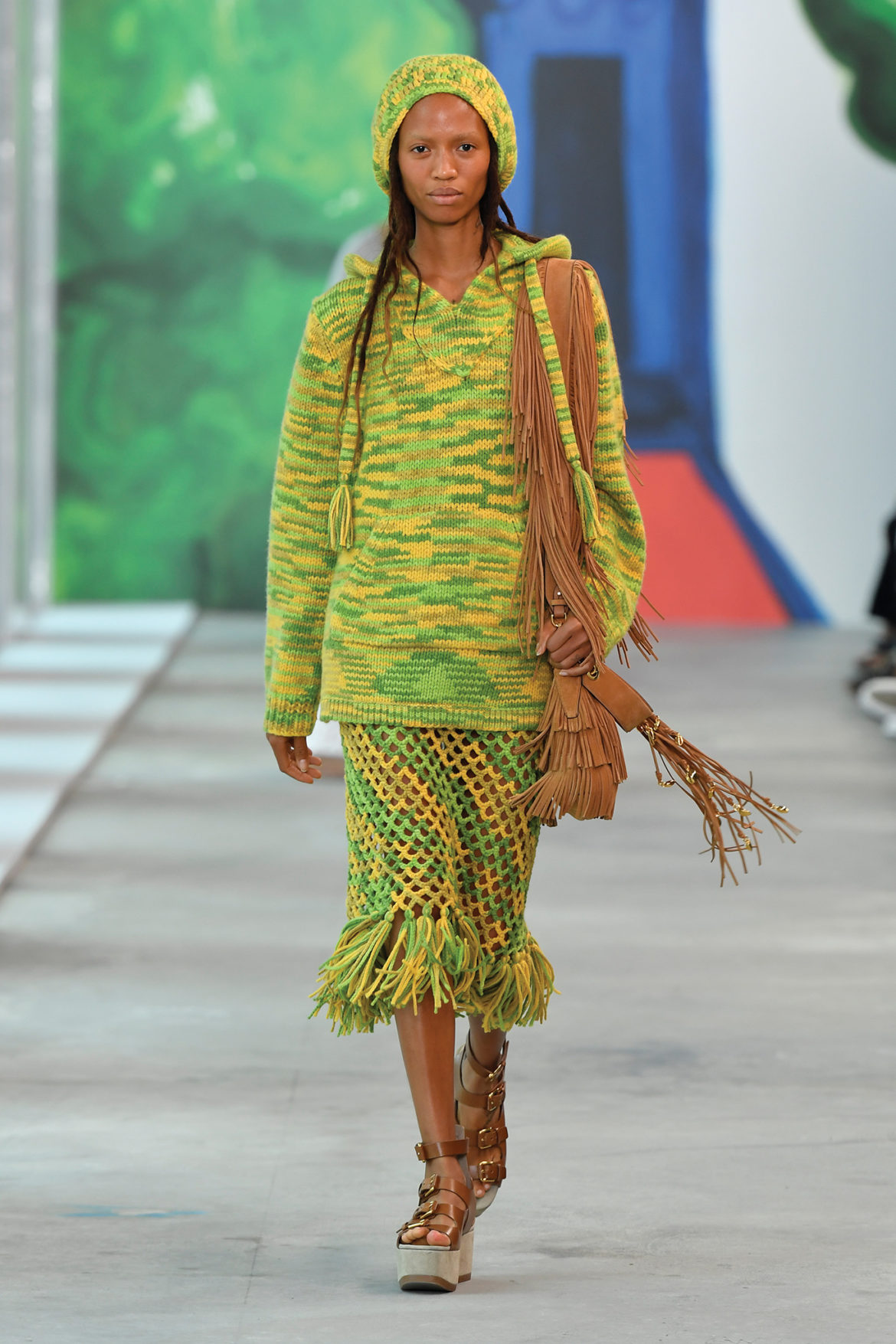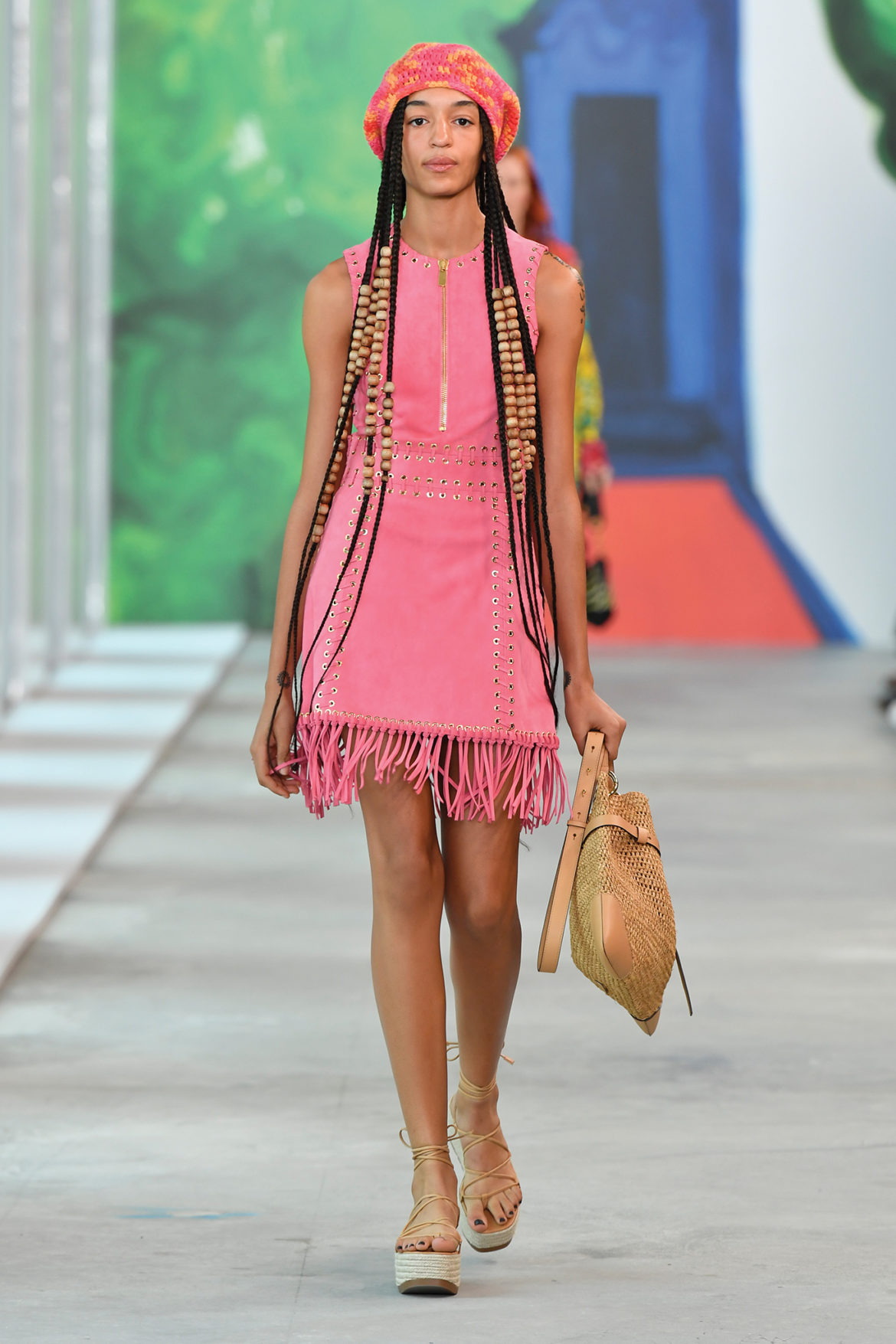 “I wanted the show to feel like a global getaway,” says Michael Kors. “I find travel to be the ultimate inspiration and this collection takes a little bit from all of my favorite destinations around the world. And showing at Pier 17, a place that emphasizes the island nature of our city, surrounded by the optimistic, colorful artwork of Christina Zimpel, was the best way to transport our guests.”