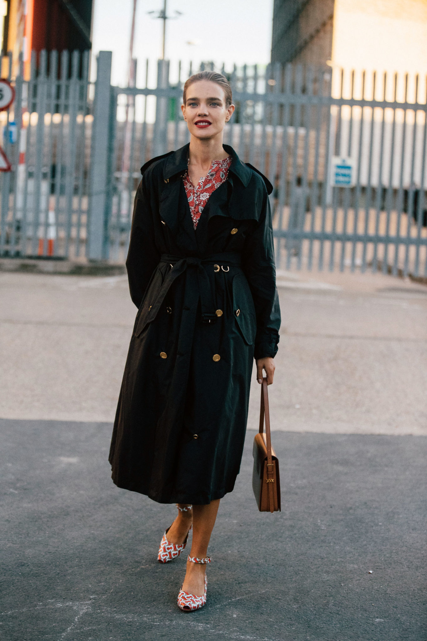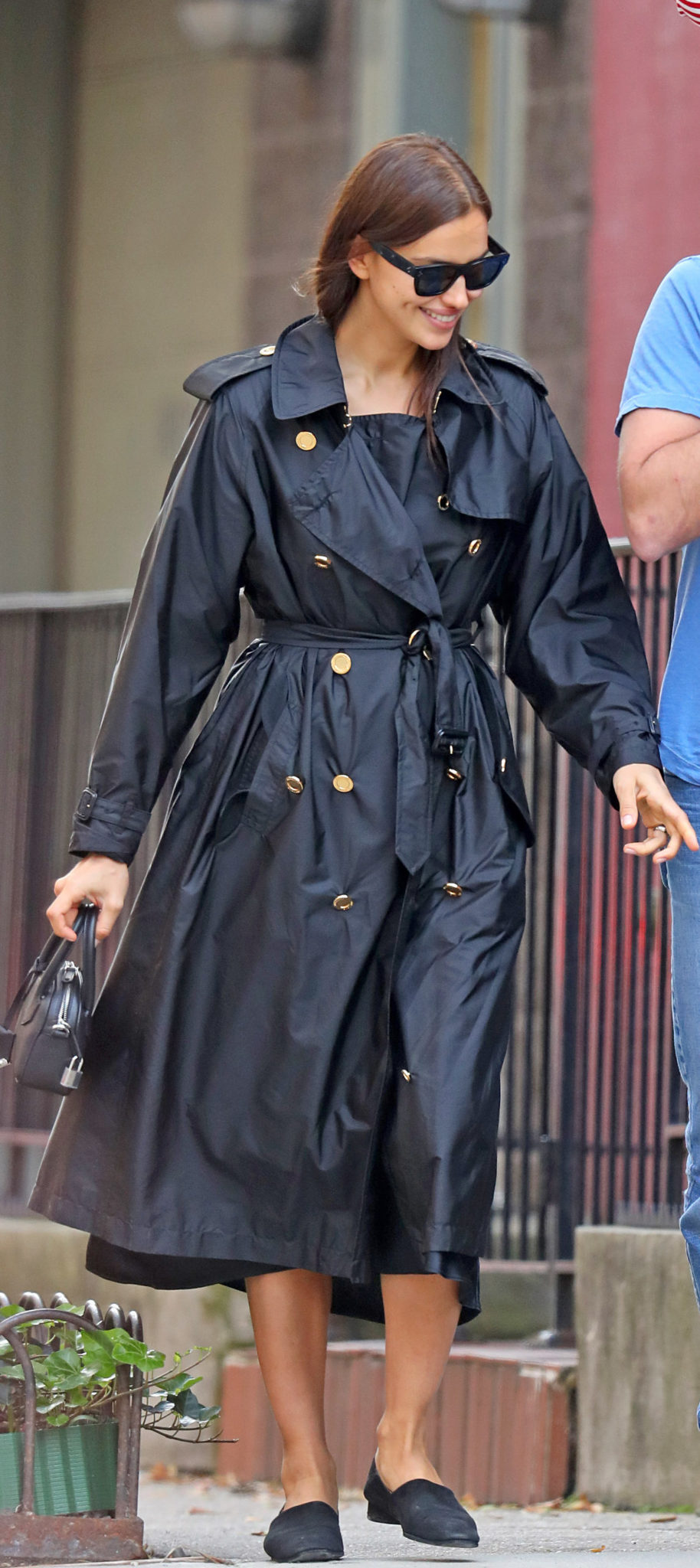 Irina Shayk a porté un trench Burberry en nylon à New York. Natalia Vodianova l’avait également porté lors de son arrivée au défilé Burberry Printemps/Eté 2019.